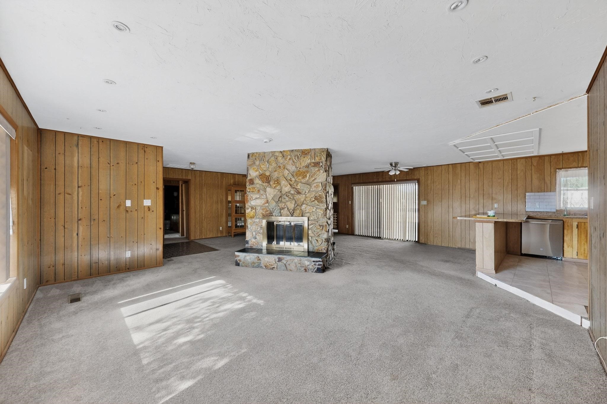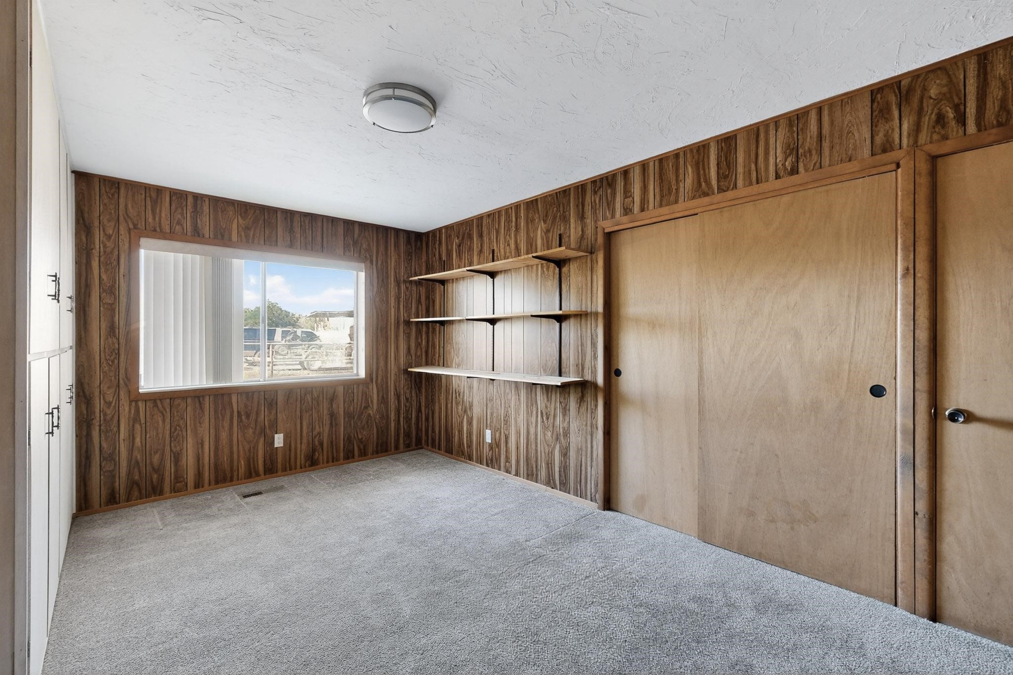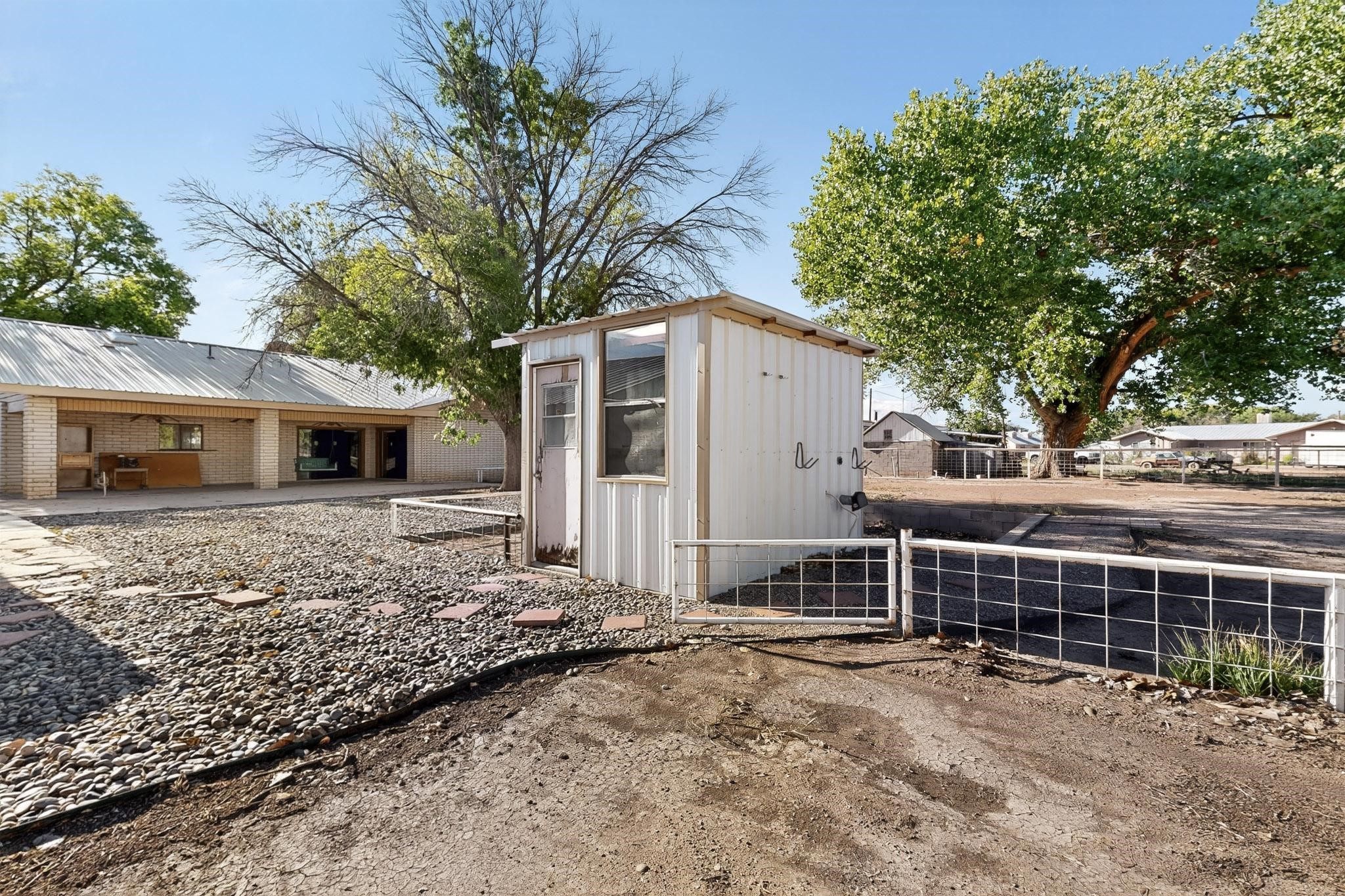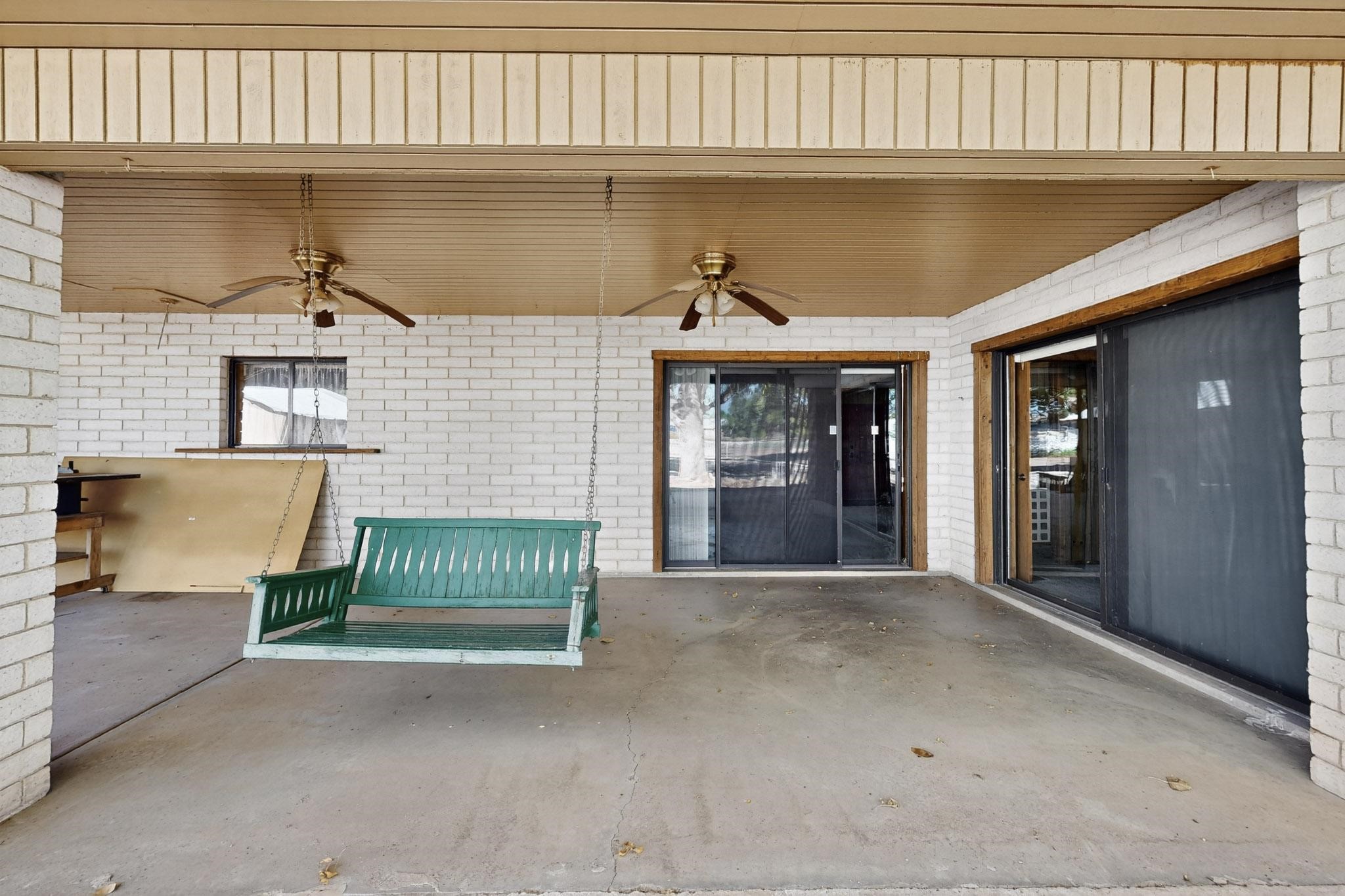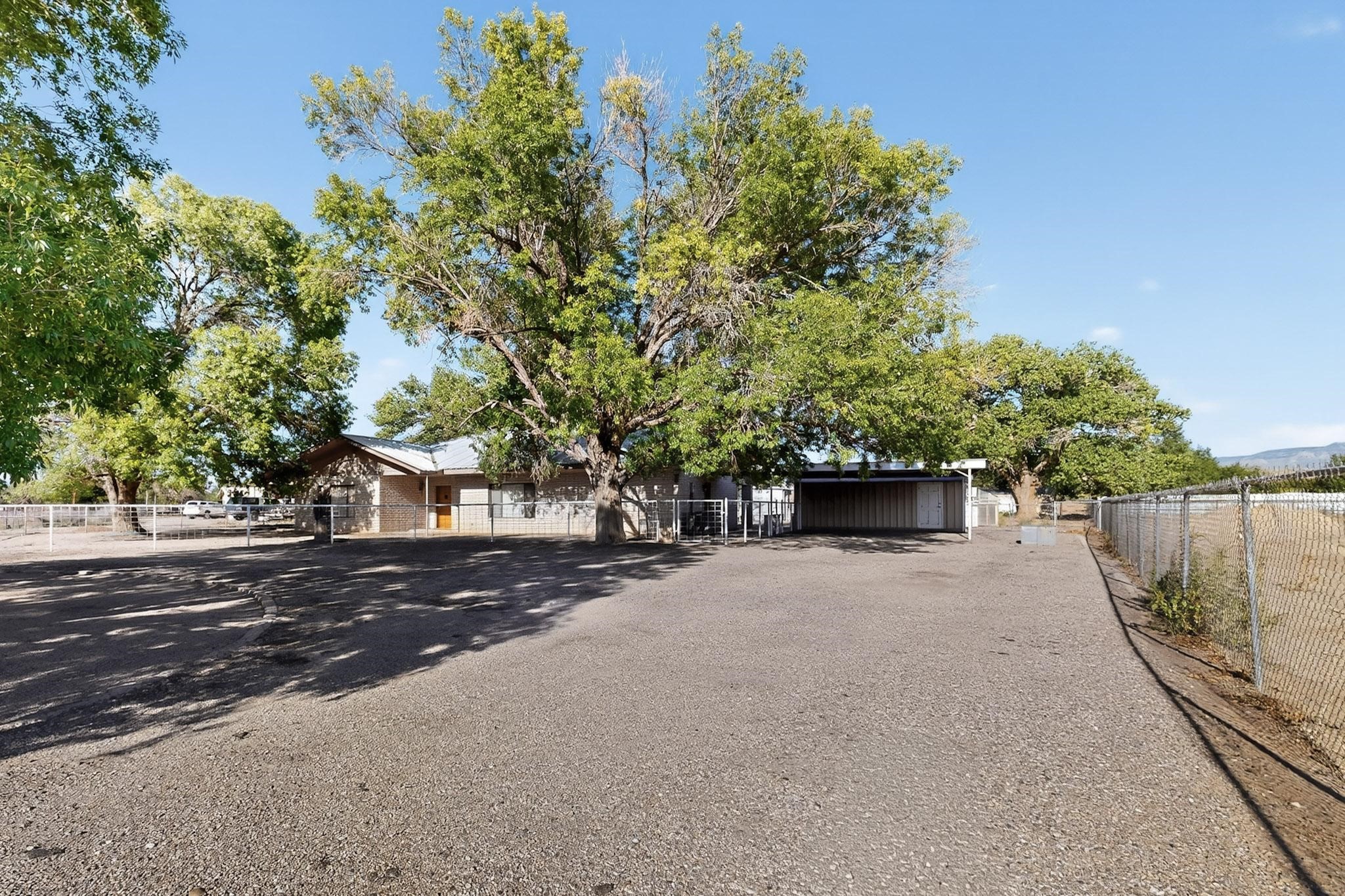 Spacious Los Lunas home with unique features! The open living and dining room is anchored by a double-sided fireplace, creating a warm focal point. The kitchen is generously sized with an island and plenty of room to personalize. Step outside to a covered patio with ceiling fans, perfect for relaxing or entertaining. A separate studio in the backyard adds flexibility for hobbies, work, or guests. This home offers great space and character, ready for your vision and updates. Land comes with a manufactured home next door to the North.