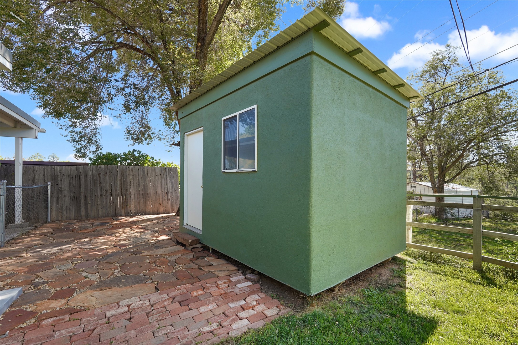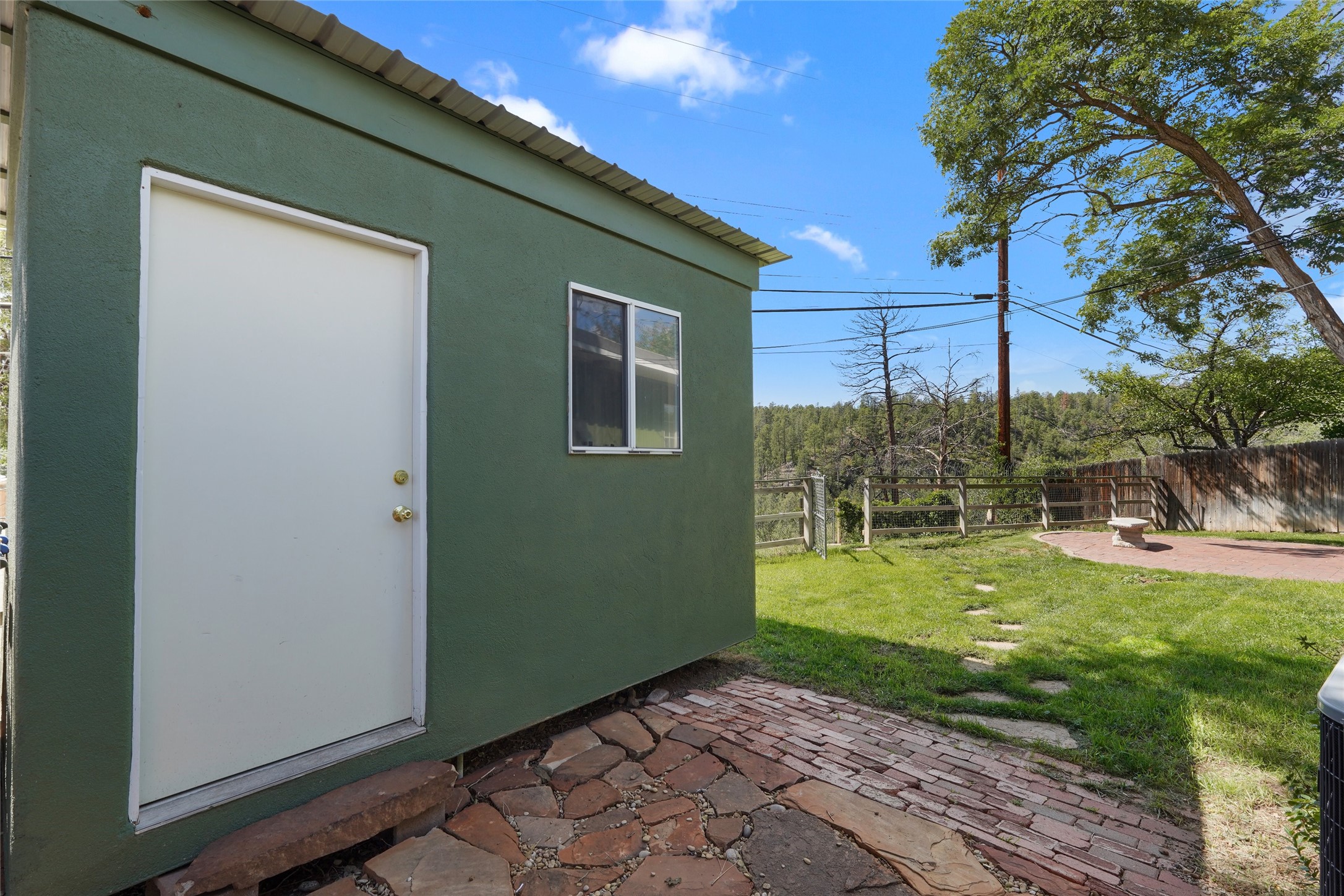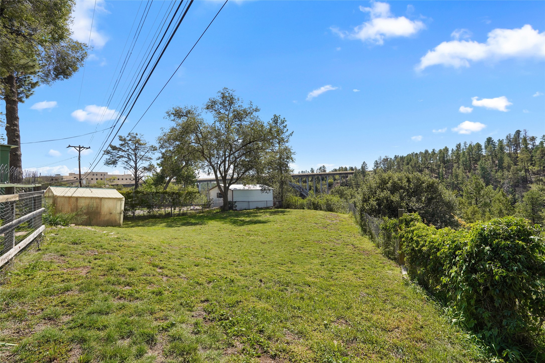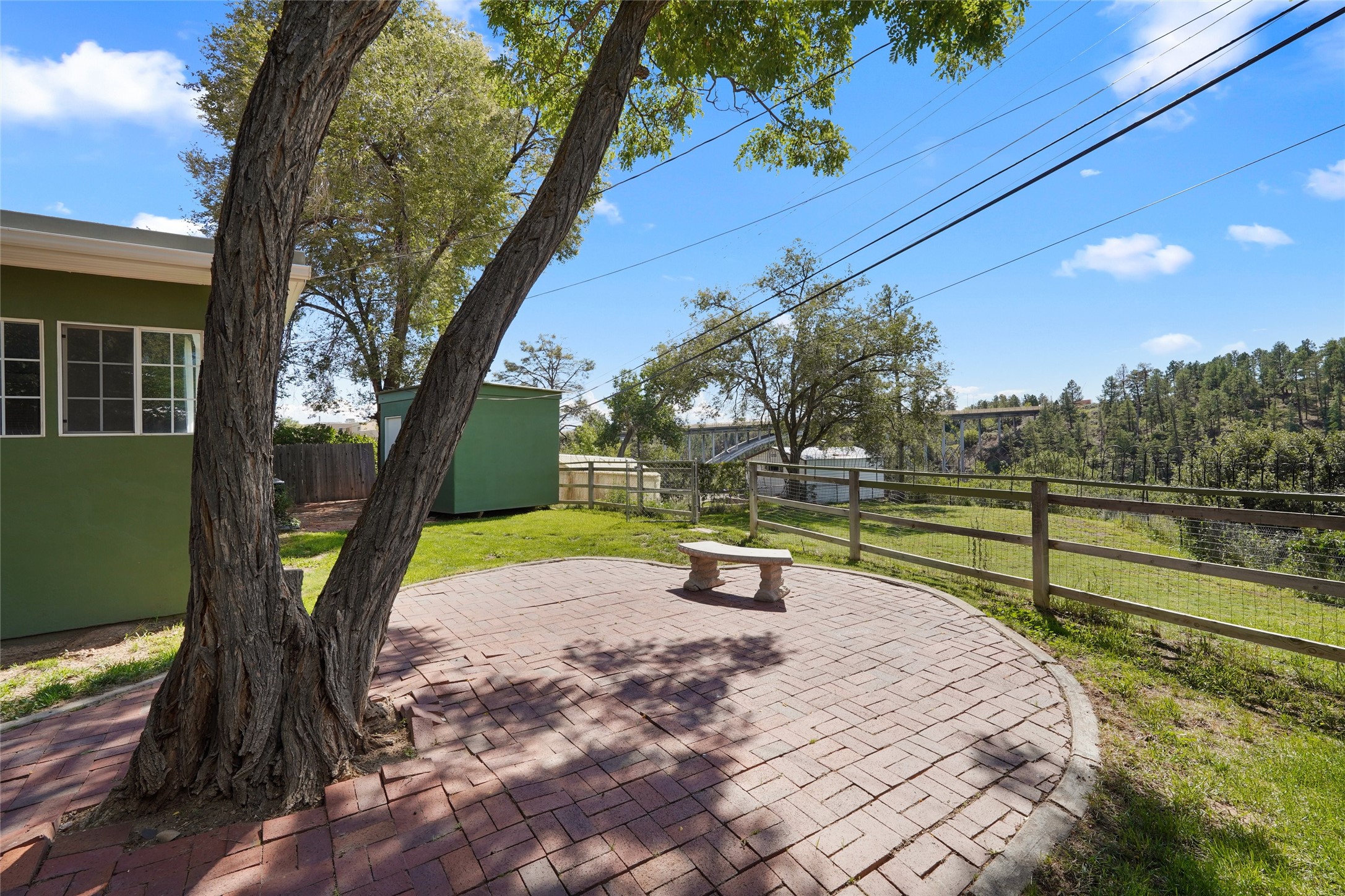 Spectacular Omega Bridge Views minutes from LANL. Come experience the fresh air of this 2-bedroom, 1-bath home with over 1,018 sq ft of hassle-free private living on nearly acre.This well-maintained home features restored hardwood floors, recessed lighting in the kitchen, and a brick wood-burning fireplace with built-in blower. The kitchen includes stainless steel dishwasher, refrigerator and ventilation hood all complemented by Hunter Douglas blinds through out the main living areas. ("Wolf" Freestanding Range does NOT convey)This well maintained kitchen area boasts plenty of light with clean cabinetry, lower lights and plenty of space. The updated bathroom speaks refinement and class with new fixtures and clean finishes from floor to ceiling. The dedicated laundry room offers added convenience, with new in-wall integrated plumbing, washer/dryer included, and option for laundry sink with plumbing available.Enjoy the ease of a "2022" gravel-on-foam roof which has a 10yr Transferable Warranty upon inspection, new furnace with forced air heating & Central Air A/C combo unit including an installed ductwork system in the lower crawlspace. Along with, a newer water heater recently installed you can sleep at peace knowing your long hot shower awaits you in the morning. Don't let the winter chill leave you holding your hot chocolate tight on those cold winter evenings instead cozy up to the center piece of the living room, it's your very own fully functioning wood burning stove. Slowly make your retreat to your very own paved private patio area with astonishing views of "Los Alamos Canyon" and the historic "Omega" Bridge. The lush area in both the back(upper fence line) and front yard are kept irrigated with functioning watering system. Also on the property you'll find a storage shed with built-in receptacles for available power and right around the corner within the lower back yard is your private micro garden greenhouse, all this along with direct trail access to Los Alamos Canyon trails leading to the well-known Los Alamos reservoir.Conveniently located: 15 minutes by foot or bike to LANL and UNM-LA, 3 minutes to Los Alamos High School, and 15 minutes to downtown. Local hospital, ice rink, and ski hill nearby. With alternative access to the ski area-- no LANL checkpoint required