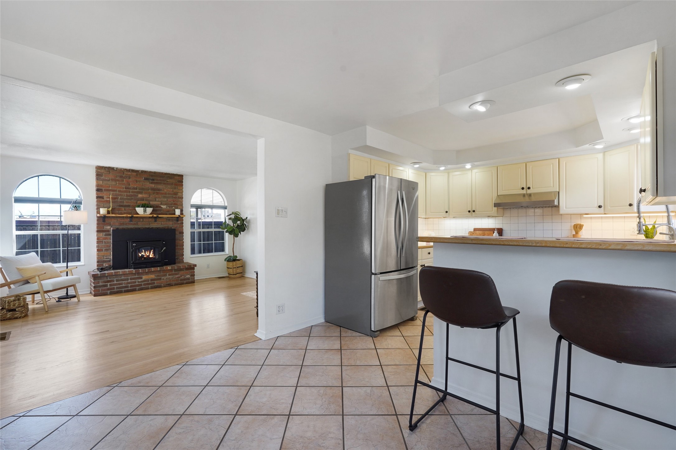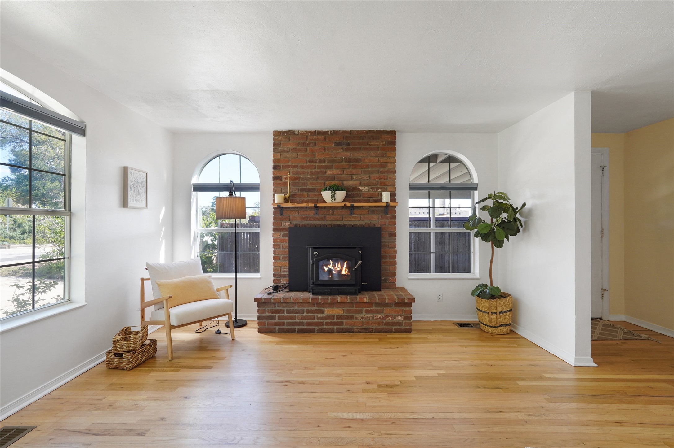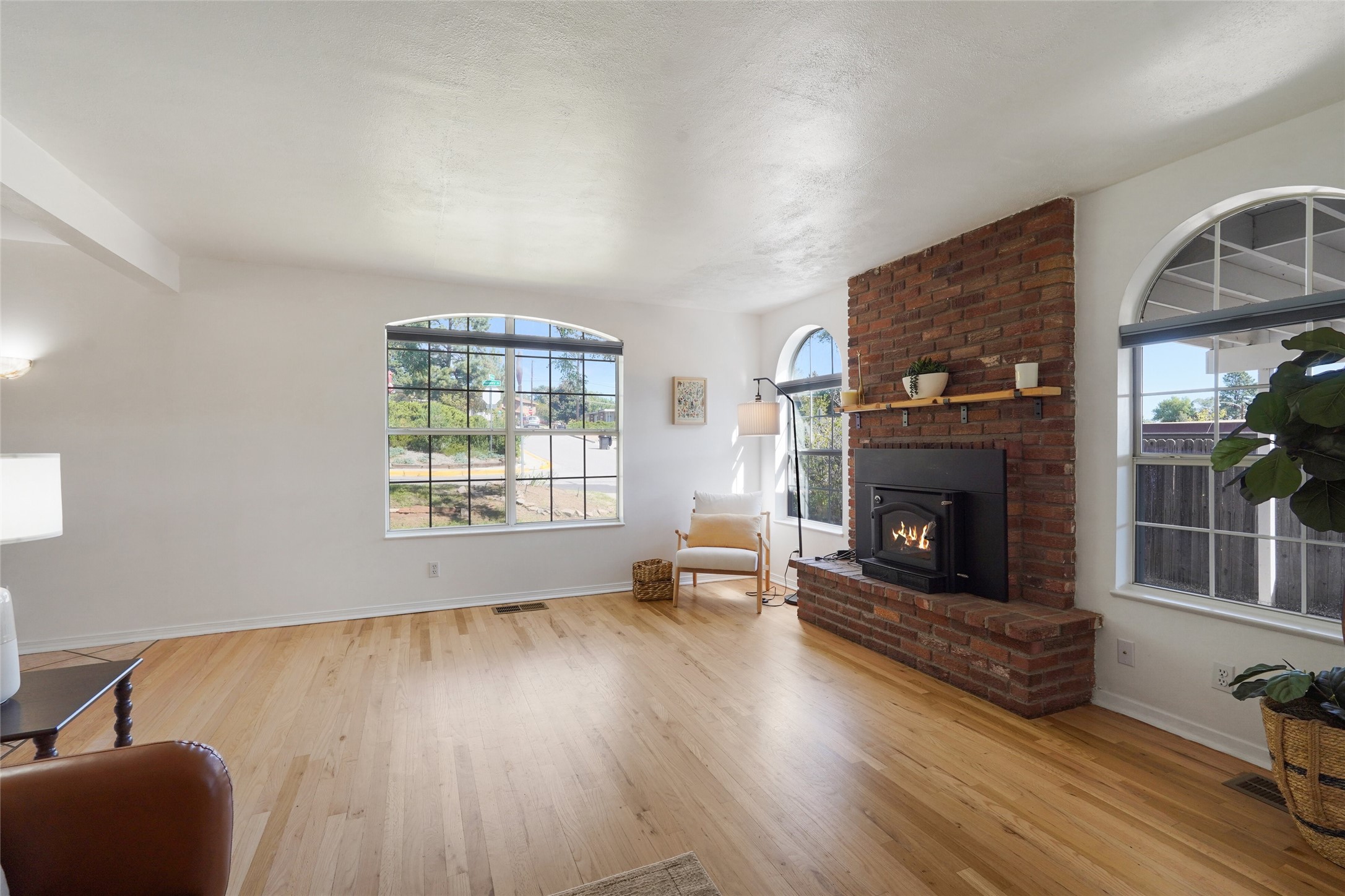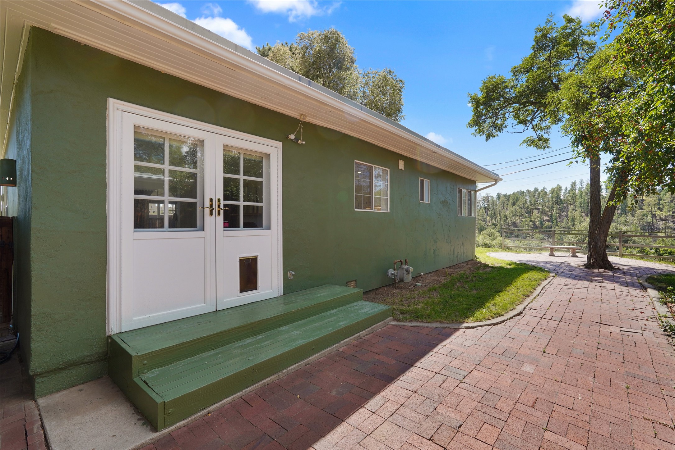Spectacular Omega Bridge Views minutes from LANL. Come experience the fresh air of this 2-bedroom, 1-bath home with over 1,018 sq ft of hassle-free private living on nearly acre.This well-maintained home features restored hardwood floors, recessed lighting in the kitchen, and a brick wood-burning fireplace with built-in blower. The kitchen includes stainless steel dishwasher, refrigerator and ventilation hood all complemented by Hunter Douglas blinds through out the main living areas. ("Wolf" Freestanding Range does NOT convey)This well maintained kitchen area boasts plenty of light with clean cabinetry, lower lights and plenty of space. The updated bathroom speaks refinement and class with new fixtures and clean finishes from floor to ceiling. The dedicated laundry room offers added convenience, with new in-wall integrated plumbing, washer/dryer included, and option for laundry sink with plumbing available.Enjoy the ease of a "2022" gravel-on-foam roof which has a 10yr Transferable Warranty upon inspection, new furnace with forced air heating & Central Air A/C combo unit including an installed ductwork system in the lower crawlspace. Along with, a newer water heater recently installed you can sleep at peace knowing your long hot shower awaits you in the morning. Don't let the winter chill leave you holding your hot chocolate tight on those cold winter evenings instead cozy up to the center piece of the living room, it's your very own fully functioning wood burning stove. Slowly make your retreat to your very own paved private patio area with astonishing views of "Los Alamos Canyon" and the historic "Omega" Bridge. The lush area in both the back(upper fence line) and front yard are kept irrigated with functioning watering system. Also on the property you'll find a storage shed with built-in receptacles for available power and right around the corner within the lower back yard is your private micro garden greenhouse, all this along with direct trail access to Los Alamos Canyon trails leading to the well-known Los Alamos reservoir.Conveniently located: 15 minutes by foot or bike to LANL and UNM-LA, 3 minutes to Los Alamos High School, and 15 minutes to downtown. Local hospital, ice rink, and ski hill nearby. With alternative access to the ski area-- no LANL checkpoint required
