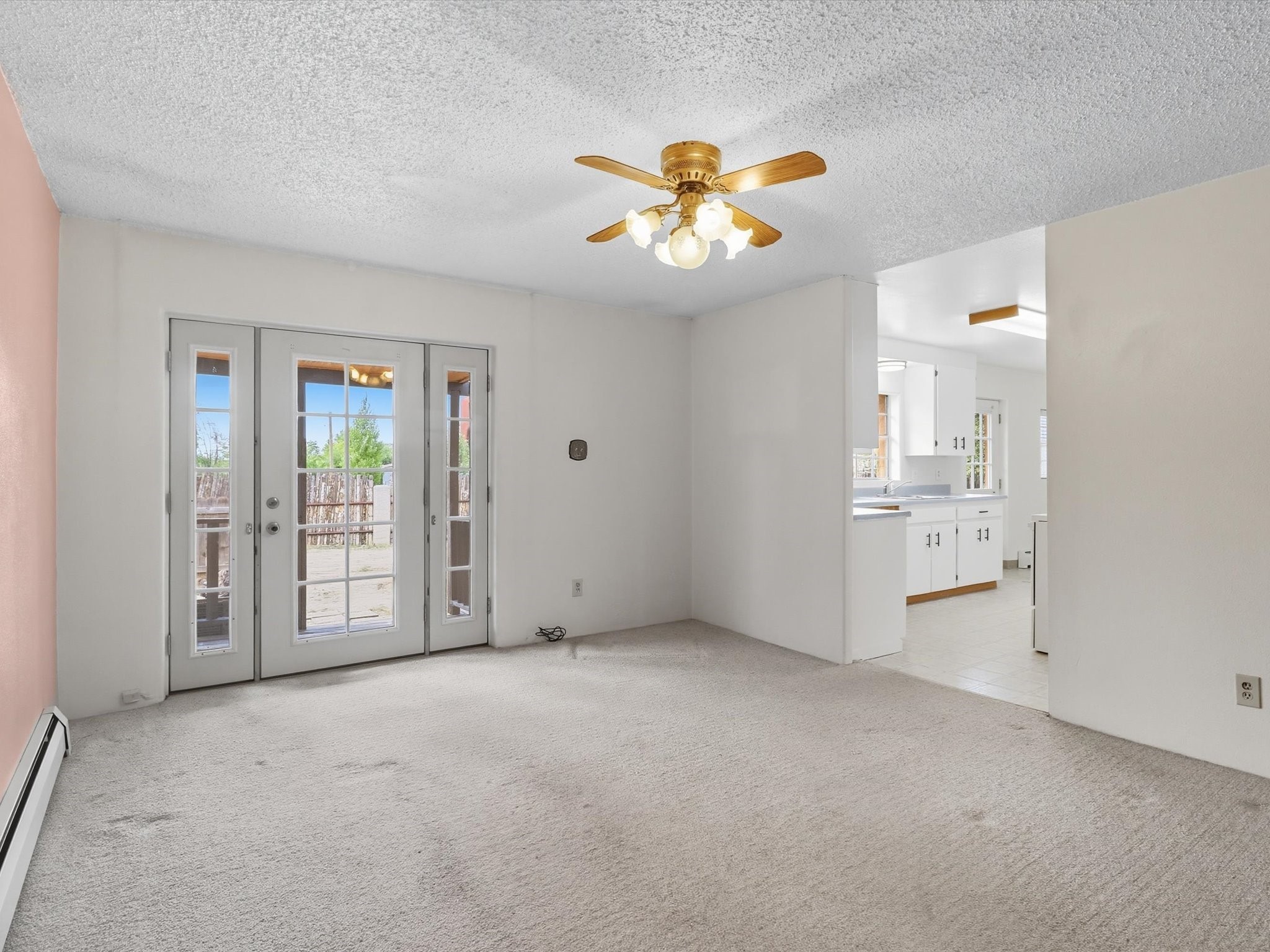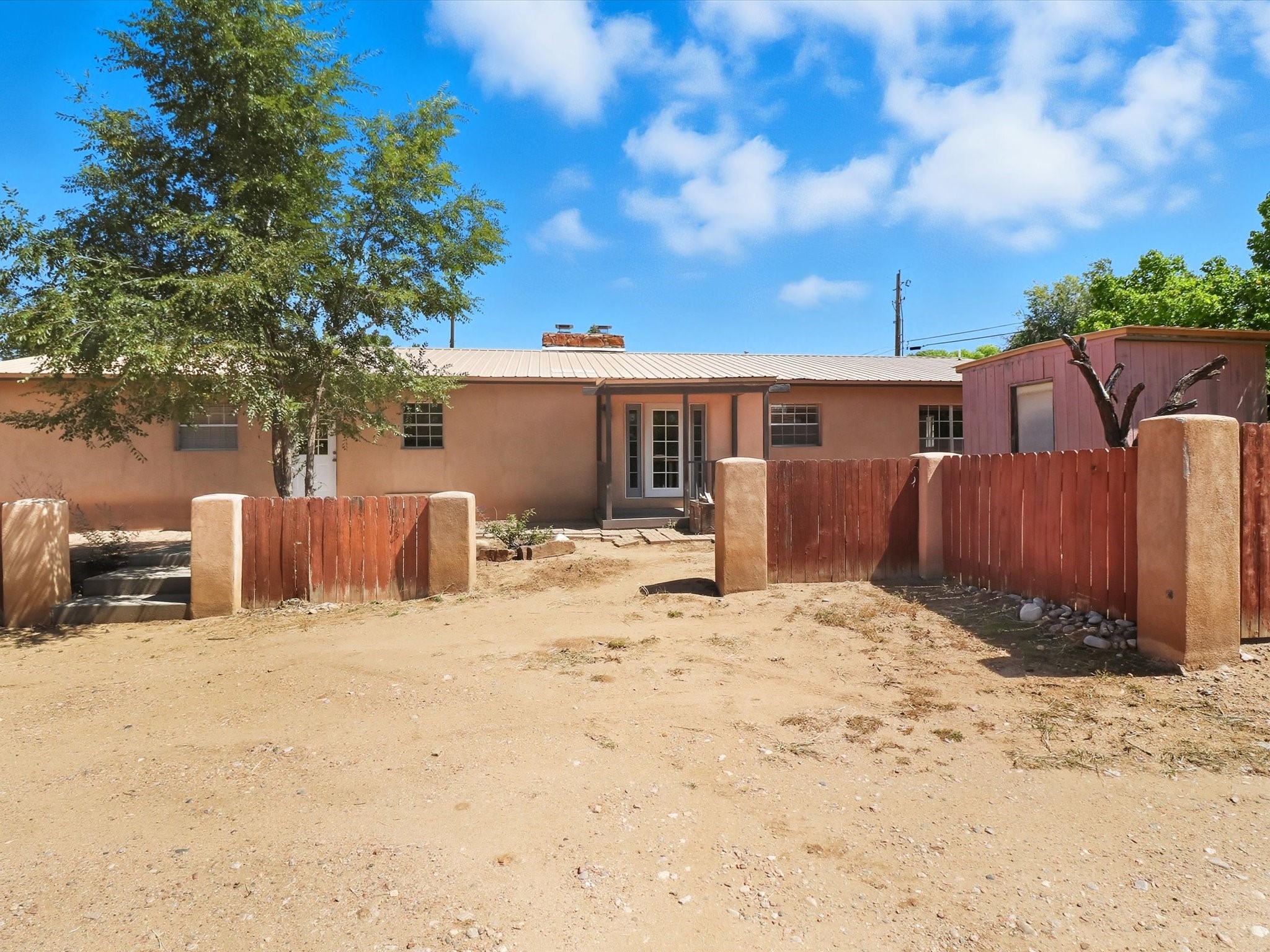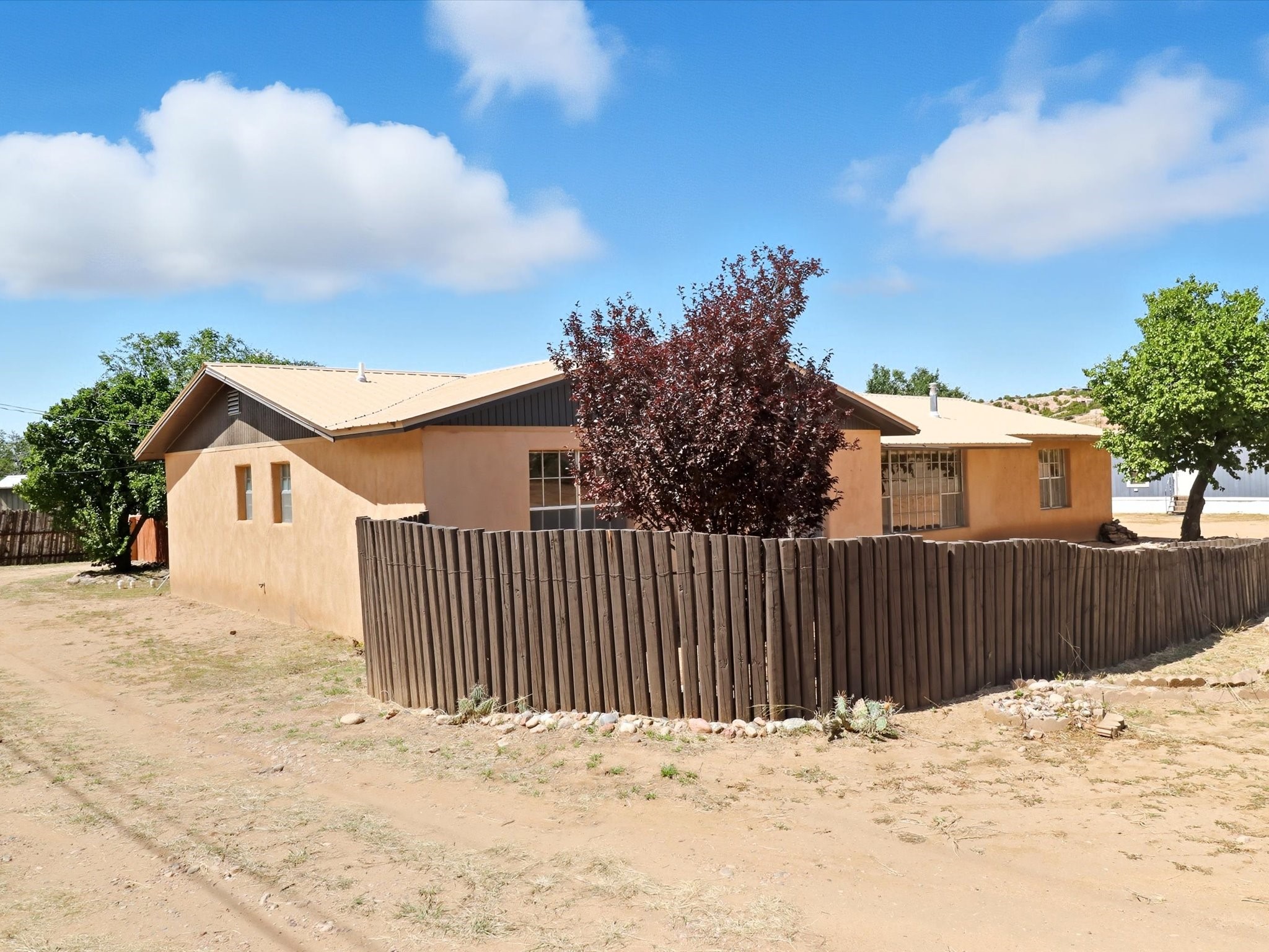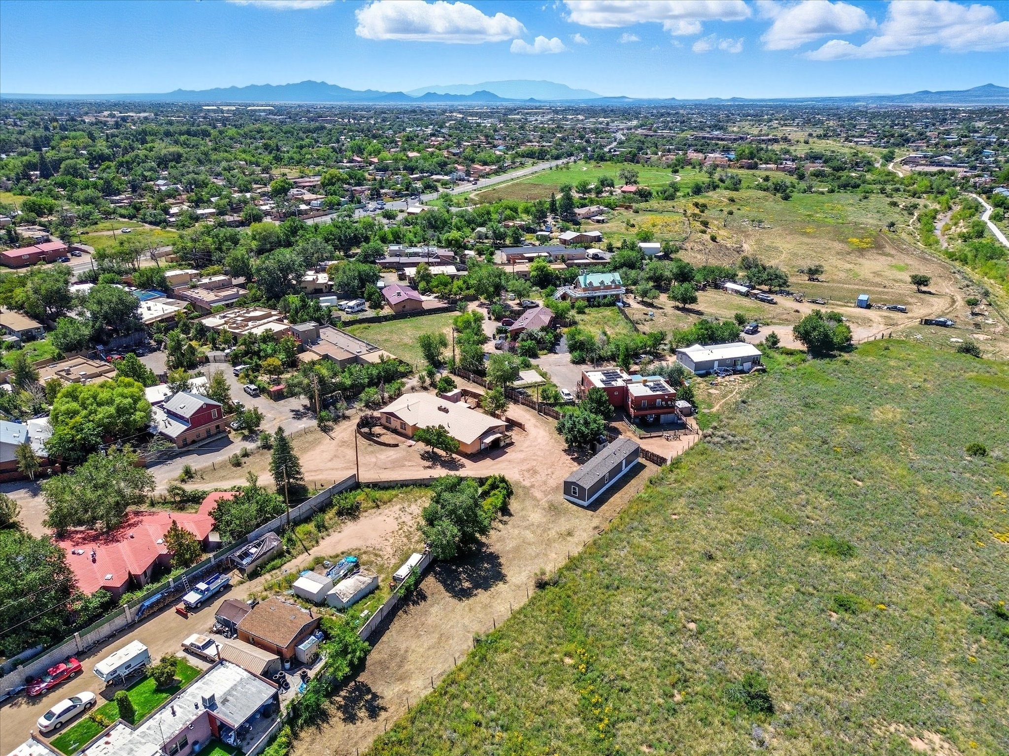 Exceptional opportunity on acre, backing to open land with the Santa Fe River just beyond. This unique property offers a main residence, a private studio apartment, and a manufactured home--ideal for guest quarters, multi-generational living, or income potential. The main house is adobe and has original hardwood floors throughout (under the carpet), a wood burning double-sided fireplace, four bedrooms and two bathrooms. The studio has a large living space, kitchen and full bathroom. The 2019 manufactured home includes two bedrooms, two bathrooms and refrigerated air. Enjoy privacy, space and mountain views, just 3 miles from the Santa Fe plaza and near trails, shopping, dining, parks, and schools.