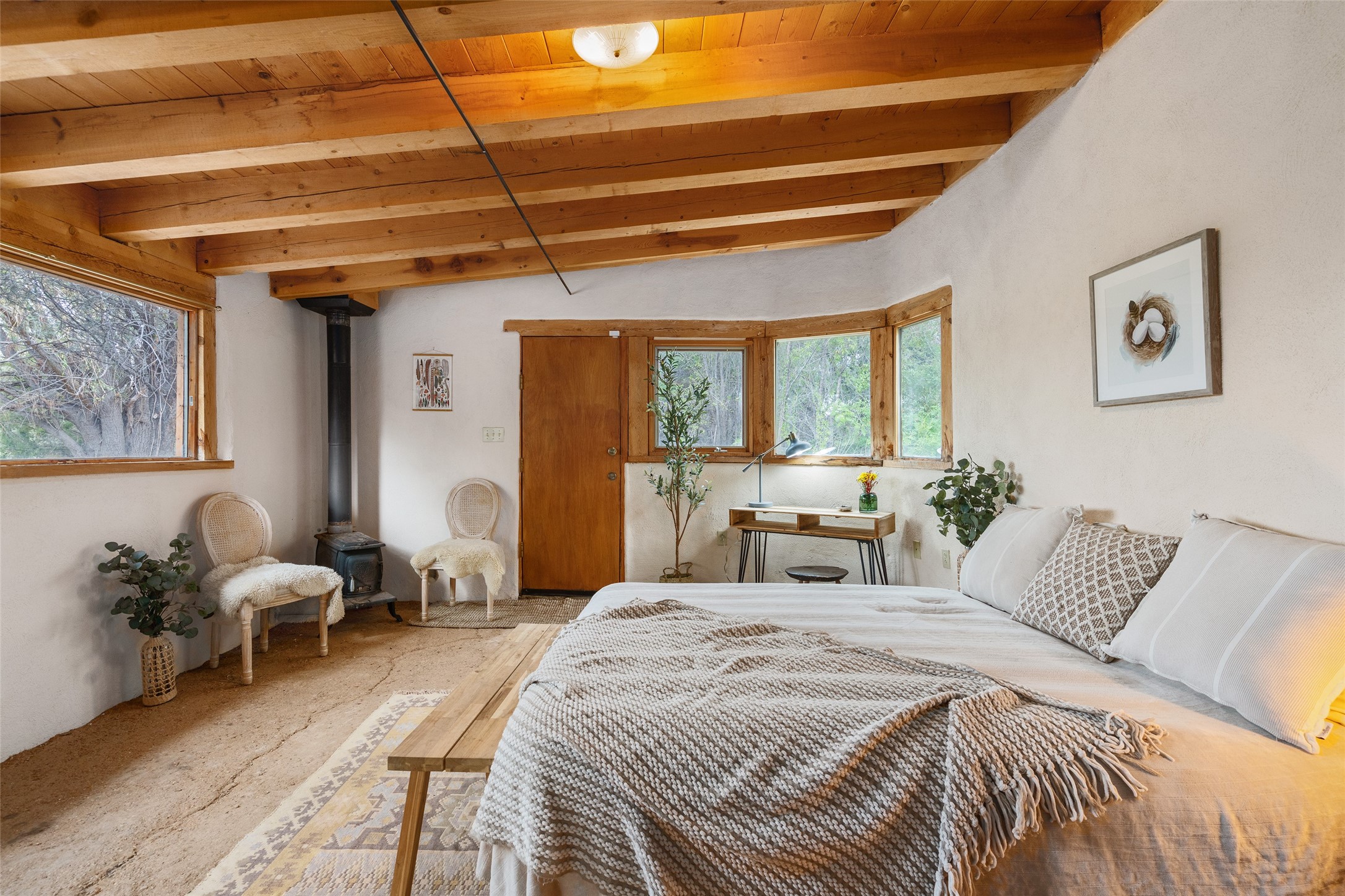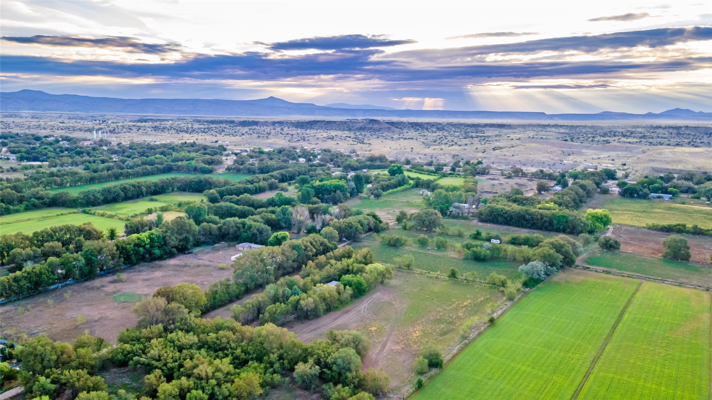 This 5-acre property in historic Pea Blanca offers both agricultural and residential potential. The land includes 4 irrigated acres and 1 residential acre, supported by a private well and more than 7 acre-feet of surface water rights (valued at $150,000). Mature fruit trees and a freshly groomed front yard complement open views of the Jemez, Sandia, and Ortiz mountains, as well as the Rio Grande Valley. The home, built in the 1990s, reflects Southwestern style with vigas and wood stoves. Recent updates include fresh interior paint, a new septic system, and maintenance to the roof, windows, and bathroom. The home is being sold as-is, providing an opportunity for restoration, renovation, or customization. Wireless internet service is available in the area. Acequia irrigation schedules can be confirmed with the Middle Rio Grande Conservancy District. Conveniently located between Santa Fe and Albuquerque, this property combines space, water, and views in a historic Rio Grande Valley setting.