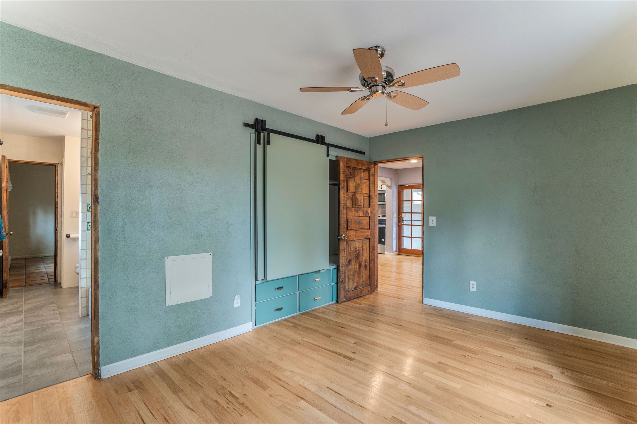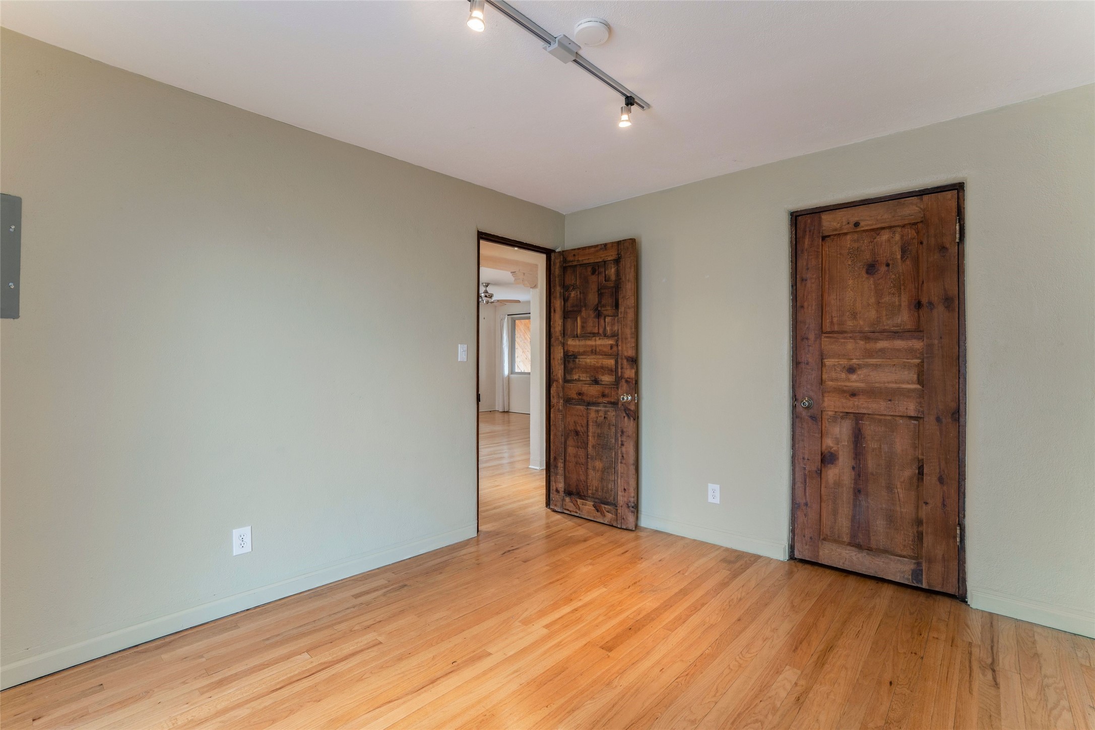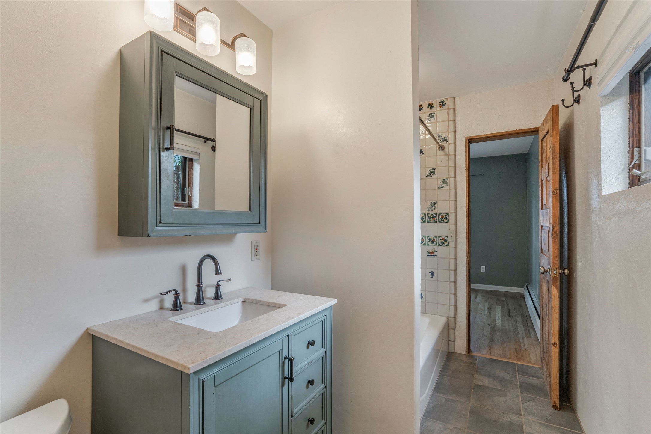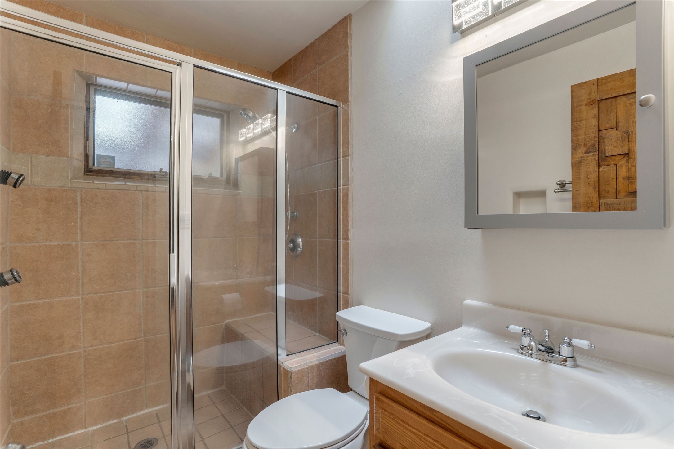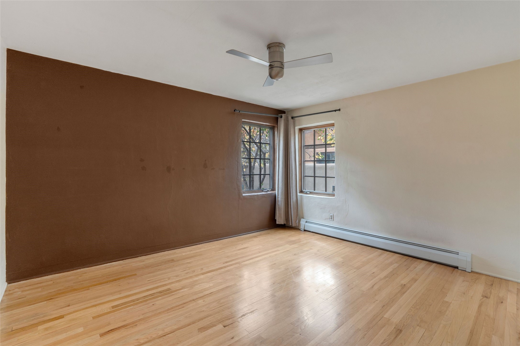 South Capital Gem with Modern Upgrades and Timeless Charm. This beautifully maintained single-level home blends classic Santa Fe character with thoughtful modern updates. The brand-new modern kitchen features sleek finishes and opens seamlessly to a spacious dining area with a classic wood-burning fireplace, creating a warm and inviting atmosphere for gatherings. Natural light fills the home through the charming wood sunroom, leading into a generous living area perfect for relaxing or entertaining. The primary suite offers a private retreat with an additional flex room ideal for an office or reading nook, along with a stylish bath featuring a stone countertop. A comfortable guest bedroom and library or media room share a beautifully updated three-quarter bath. Outside, enjoy the shady front lawn, covered porch, and private backyard surrounded by mature fruit trees and lush vegetation, offering both privacy and a tranquil garden setting. Solar panels provide energy efficiency and long-term savings. Located in one of Santa Fe's most desirable neighborhoods, this home offers peace and quiet while being just minutes from the Plaza, restaurants, and galleries. Classic style meets modern living in this South Capital treasure.