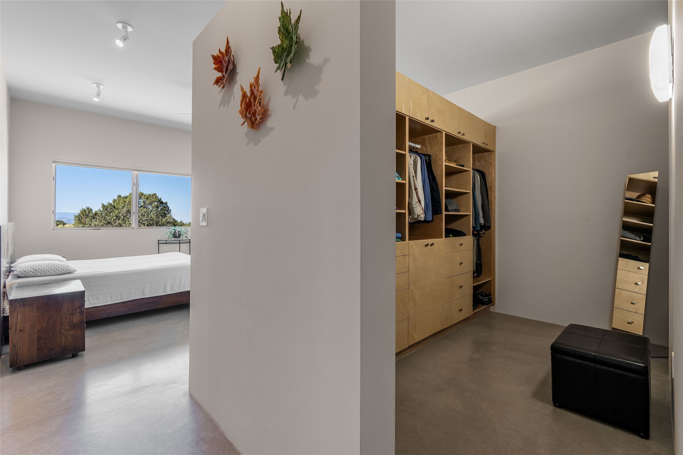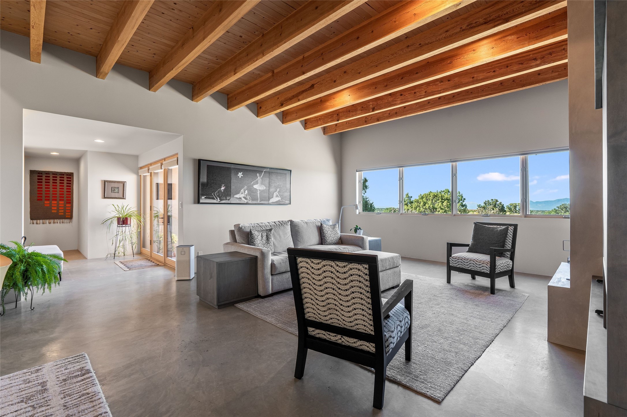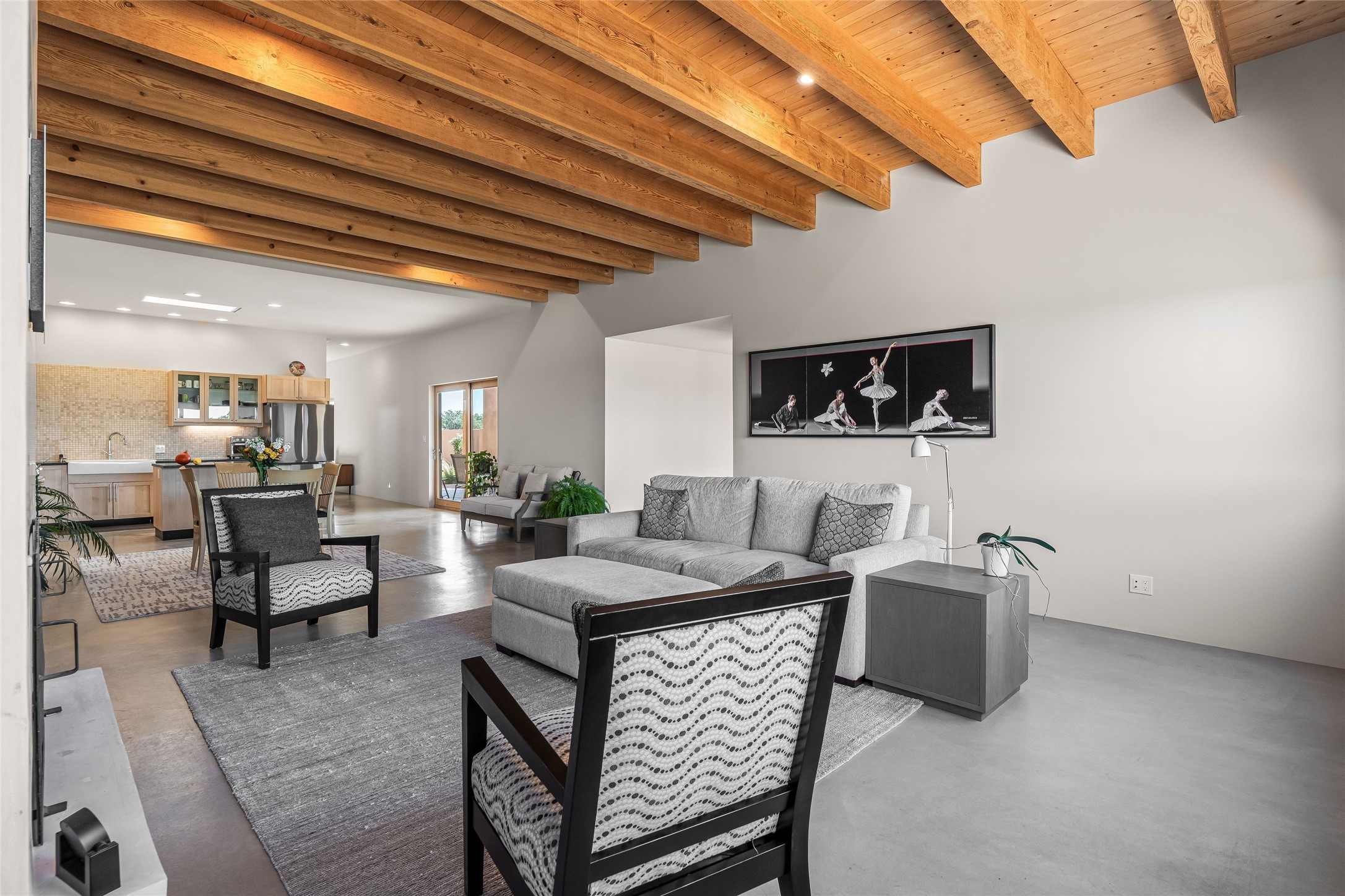 This contemporary EJ Jennings design/build exceptional home is situated on 3.8 acres in the desirable Rancho San Lucas neighborhood.Thelight-filled residence has an openliving space with expansive mountain views, wood burning fireplace, an opendining/kitchen area with concrete floors andin-floor radiant heat throughout. The primary bedroom has a walk-in closet with built-in storage and updated bathroom with soaking tub. The second bedroom/office space also has a walk-in closet and nice separationfrom theprimary suite. The detached casita/studio/guest bedroom with 3/4 bathroom, is located in a private courtyard with a pollinator friendly landscape and a raised bed vegetable garden, perfect for relaxing and entertaining. The total square feet of 2400 includes a separate guest house of 400 sf. There is an attached 2 car garage and an additional 600 square foot RV garage/workshop or studio space with plenty of light, built-in storage cabinets and a utility sink. A rare and beautiful property not to be missed.