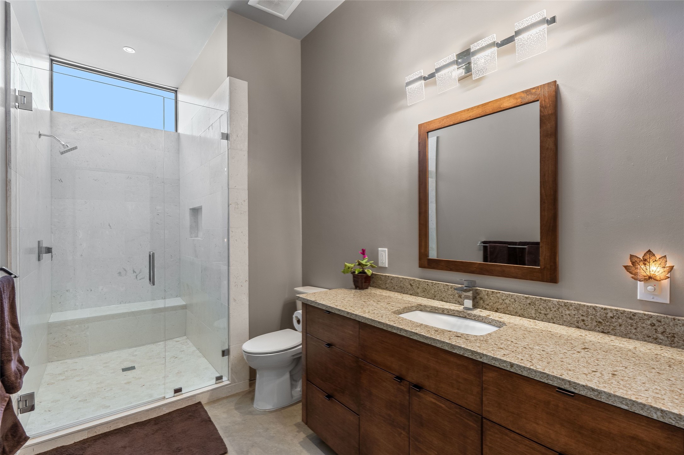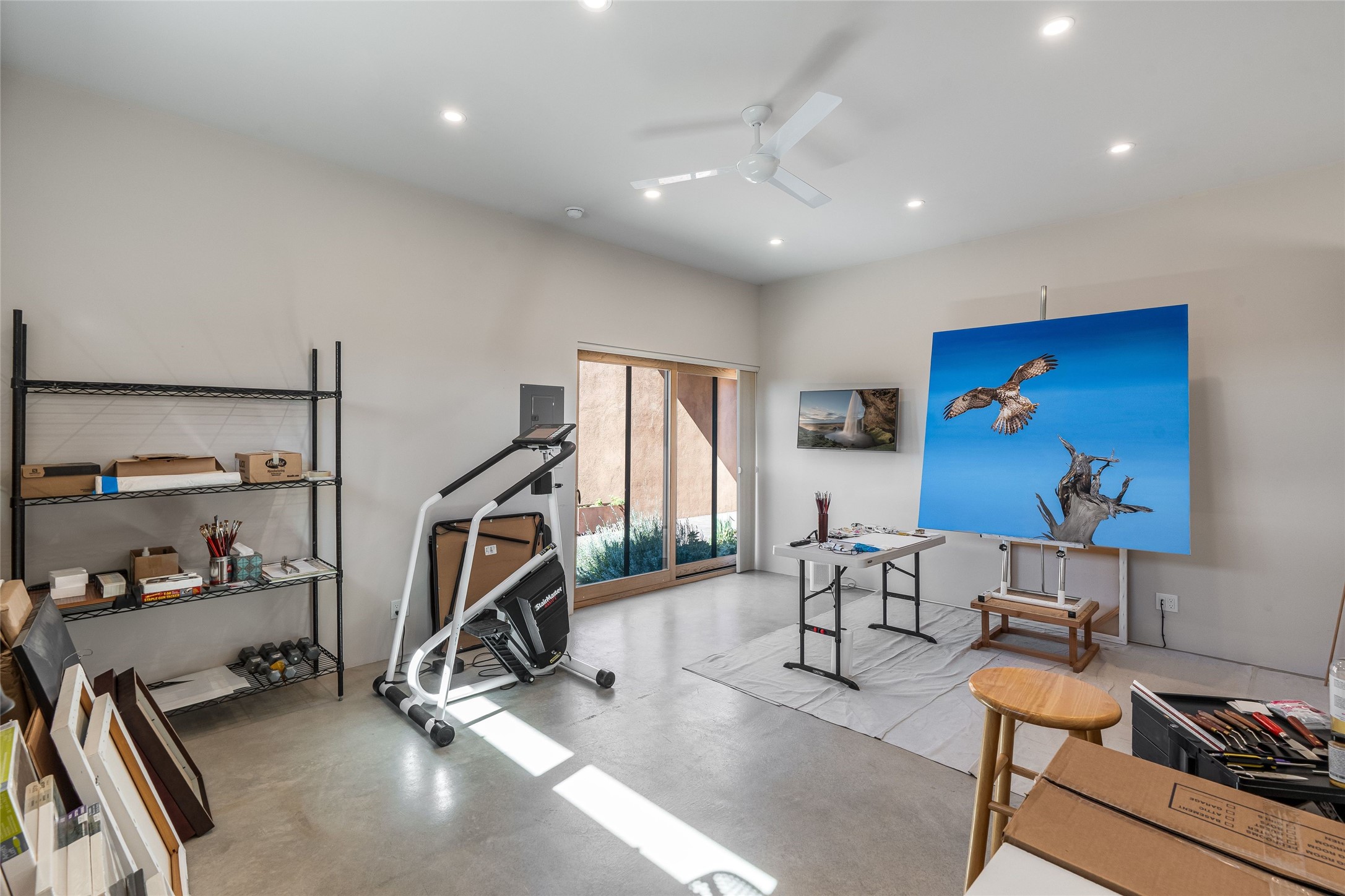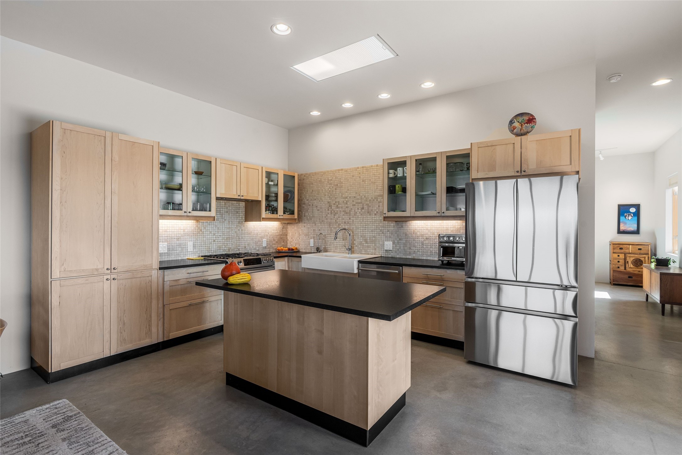 This contemporary EJ Jennings design/build exceptional home is situated on 3.8 acres in the desirable Rancho San Lucas neighborhood.Thelight-filled residence has an openliving space with expansive mountain views, wood burning fireplace, an opendining/kitchen area with concrete floors andin-floor radiant heat throughout. The primary bedroom has a walk-in closet with built-in storage and updated bathroom with soaking tub. The second bedroom/office space also has a walk-in closet and nice separationfrom theprimary suite. The detached casita/studio/guest bedroom with 3/4 bathroom, is located in a private courtyard with a pollinator friendly landscape and a raised bed vegetable garden, perfect for relaxing and entertaining. The total square feet of 2400 includes a separate guest house of 400 sf. There is an attached 2 car garage and an additional 600 square foot RV garage/workshop or studio space with plenty of light, built-in storage cabinets and a utility sink. A rare and beautiful property not to be missed.