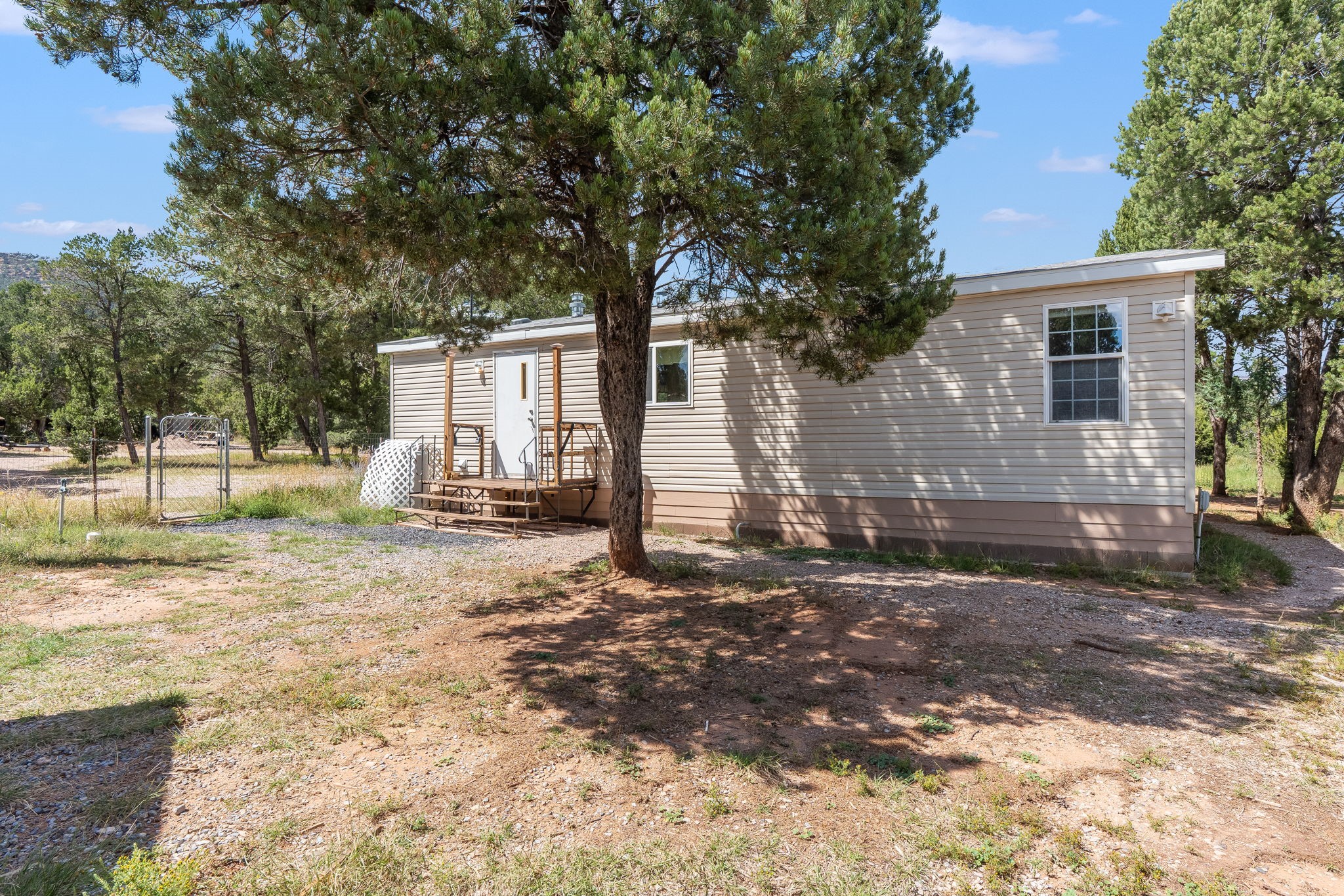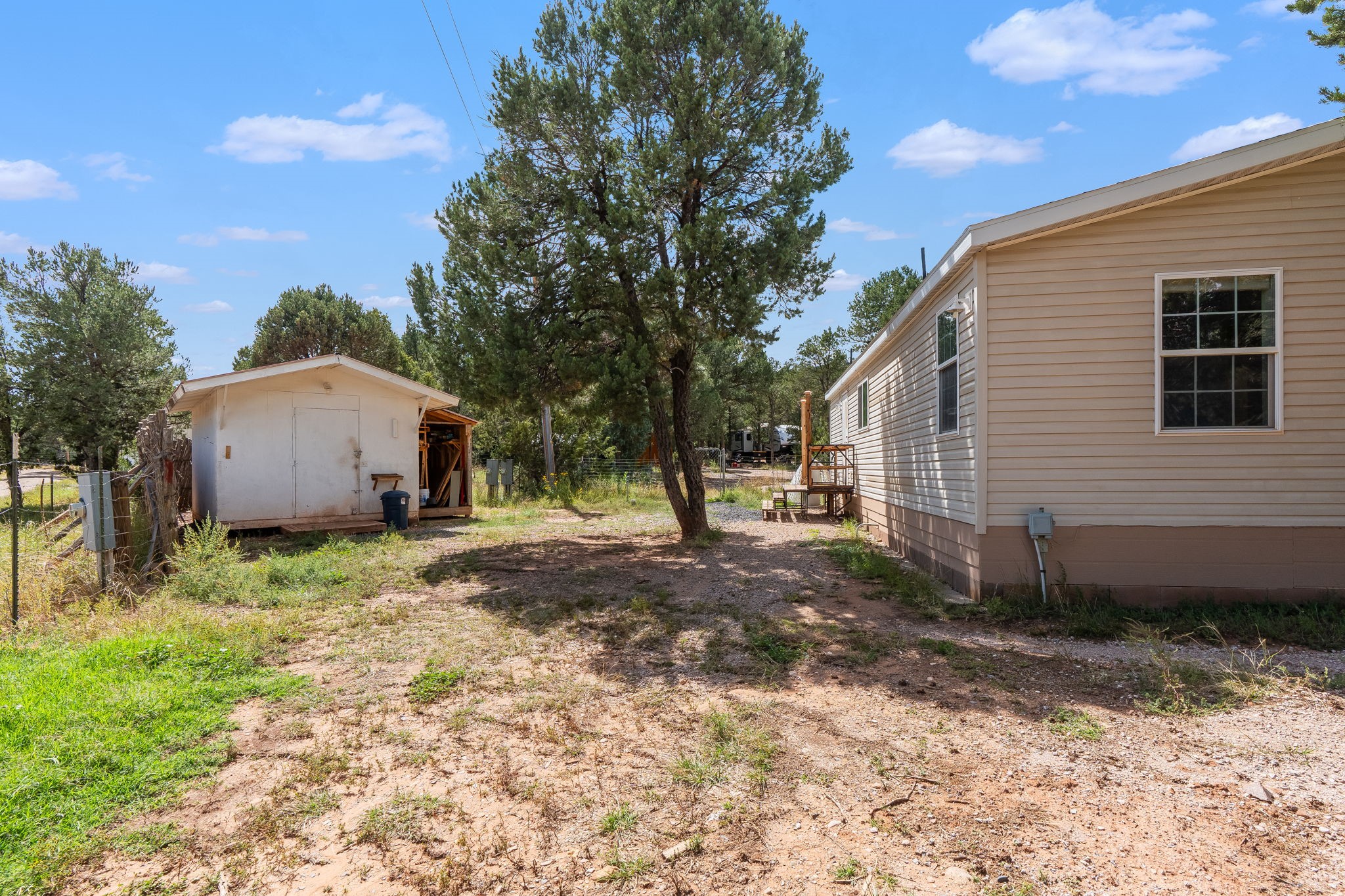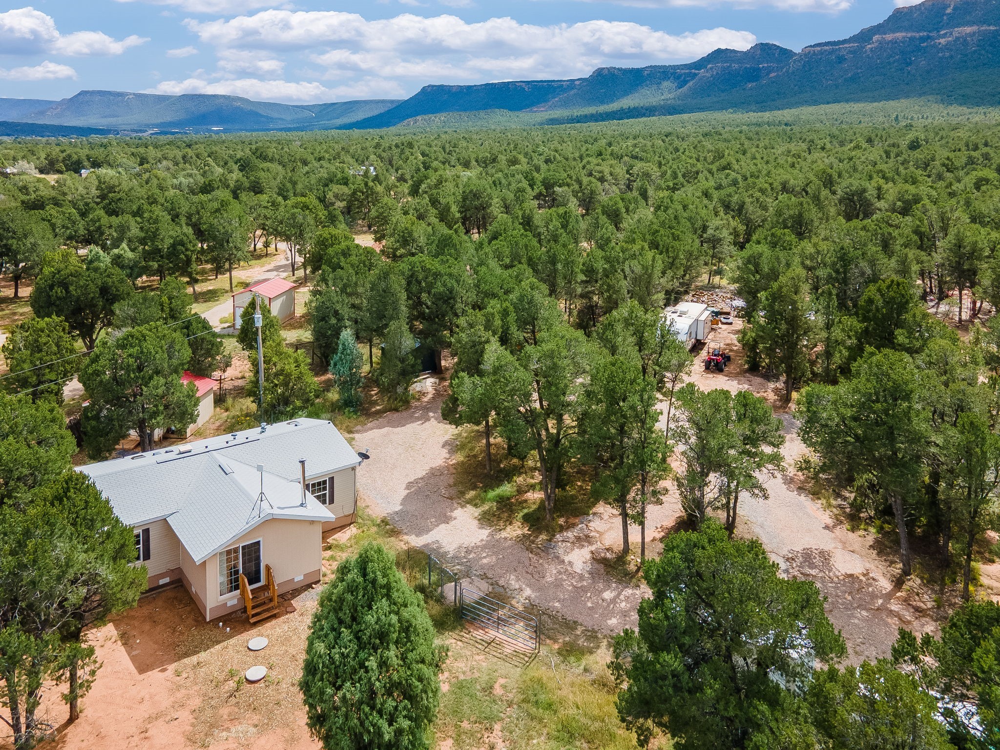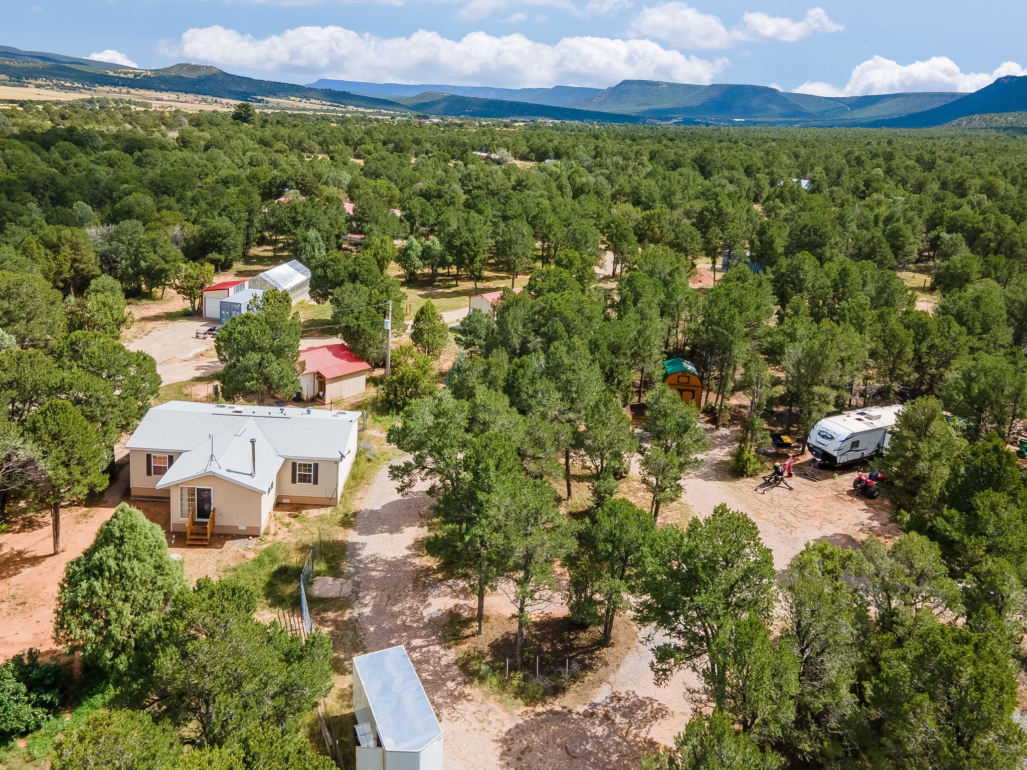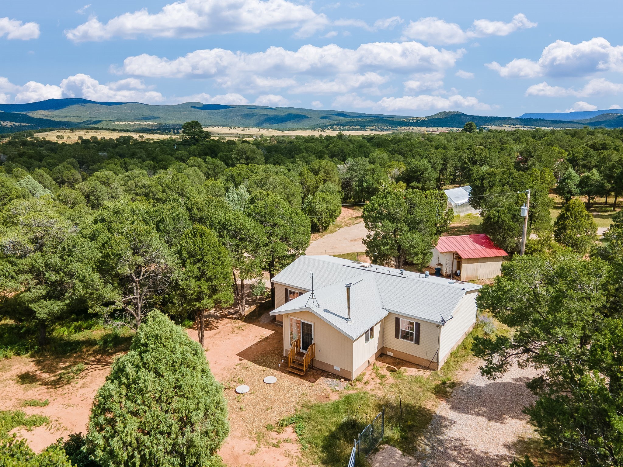 Escape to your own private mountain haven with this charming property tucked away on 4 wooded acres in Rowe, NM. Located just 30 minutes from Santa Fe, 40 minutes from Las Vegas, and less than 15 minutes to Pecos, this property is ideally situated for both convenience and adventure. Surrounded by pinon and other native trees and local wildlife, this retreat offers peace, seclusion, and plenty of room to grow. Roughly 1/3 of the property is fenced in, making an ideal dog run.The main home is a cozy 2-bedroom manufactured house with an expanded living area, creating a warm and inviting space to relax after a day outdoors. A separate guest casita provides extra room for visitors, hobbies, or even rental potential. The casita also features granite countertops,stainless steel appliances, and engineered hardwood floors.In addition, three versatile sheds offer ample storage for tools, equipment, or outdoor gear.The surrounding area is a paradise for outdoor enthusiasts--whether you enjoy hunting, fishing, camping, hiking, or simply taking in the fresh mountain air, you'll find it all right at your doorstep.If you've been looking for a serene getaway with space to expand, this Rowe retreat is ready to welcome you home.
