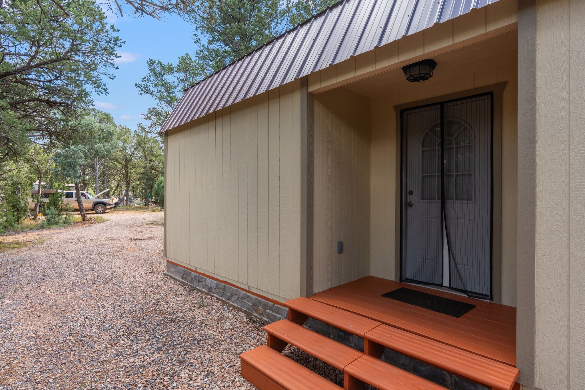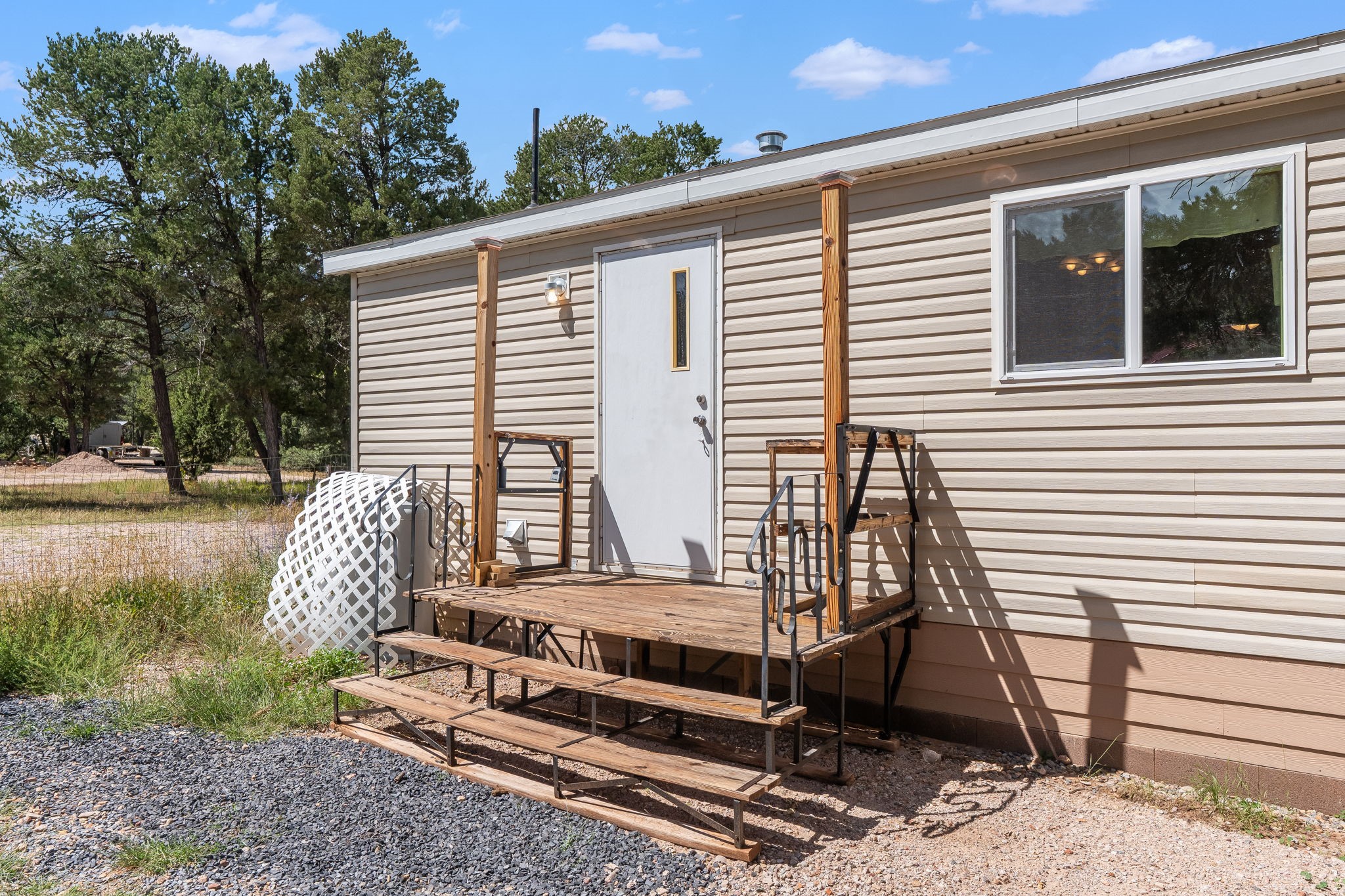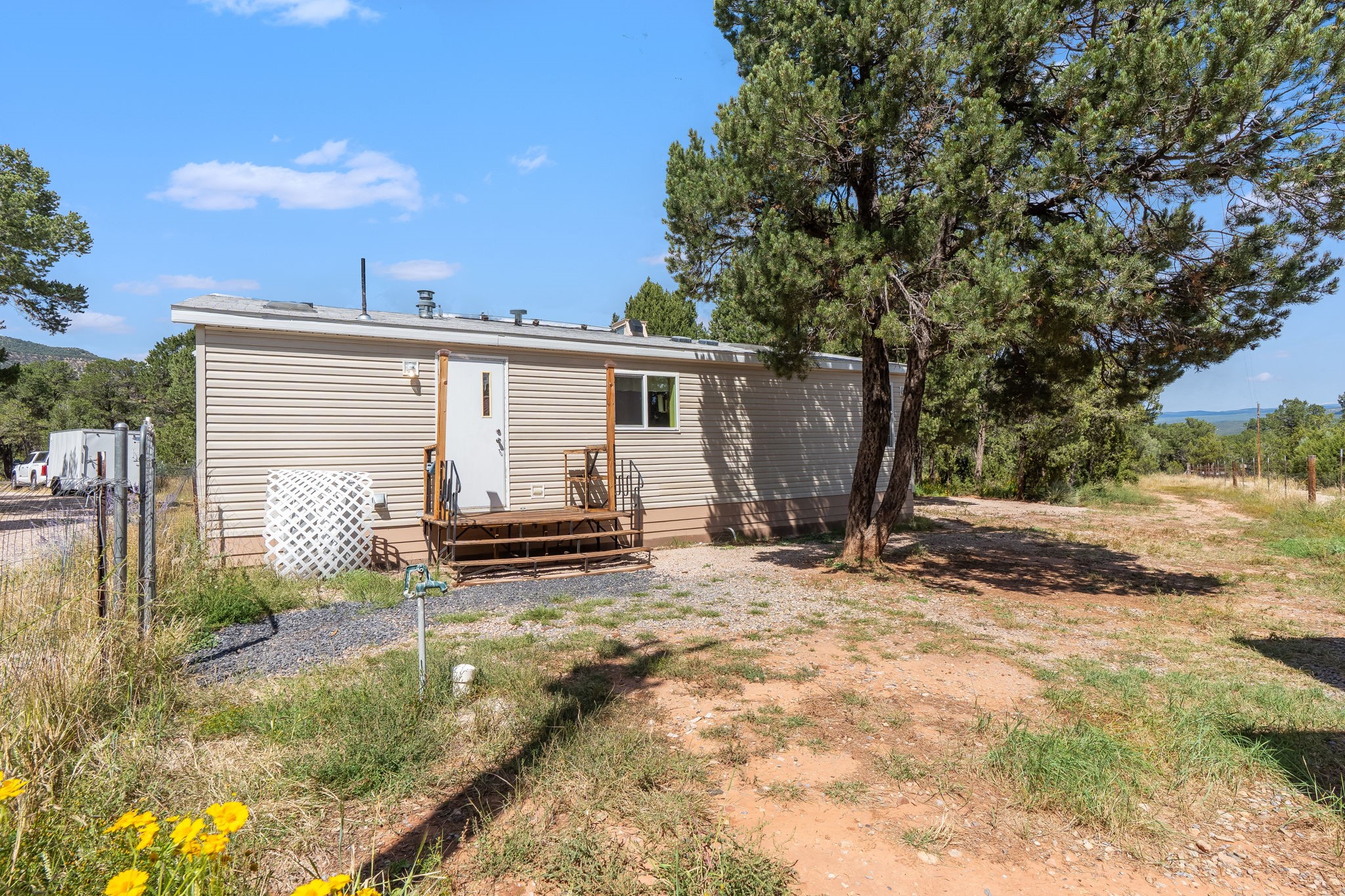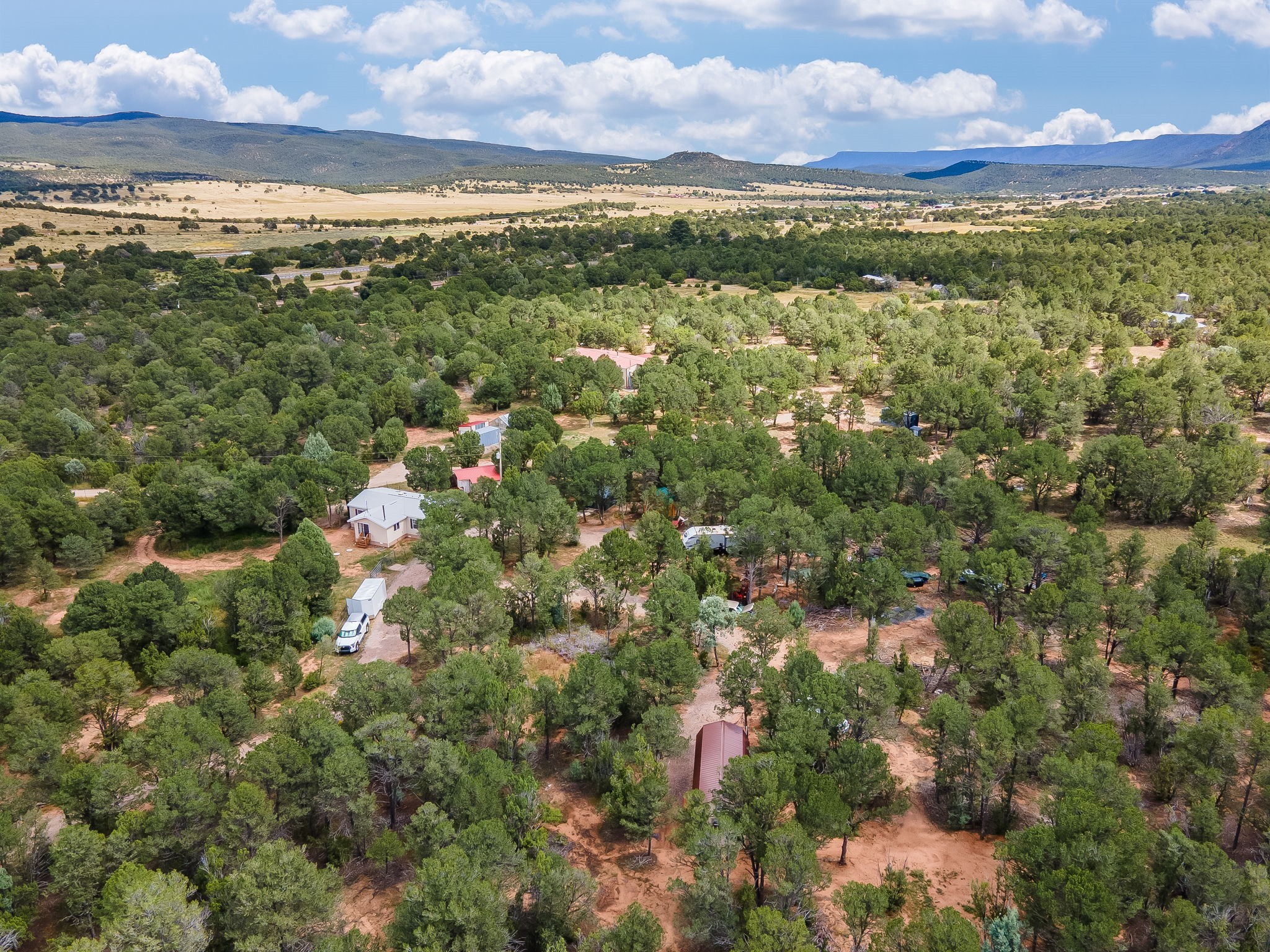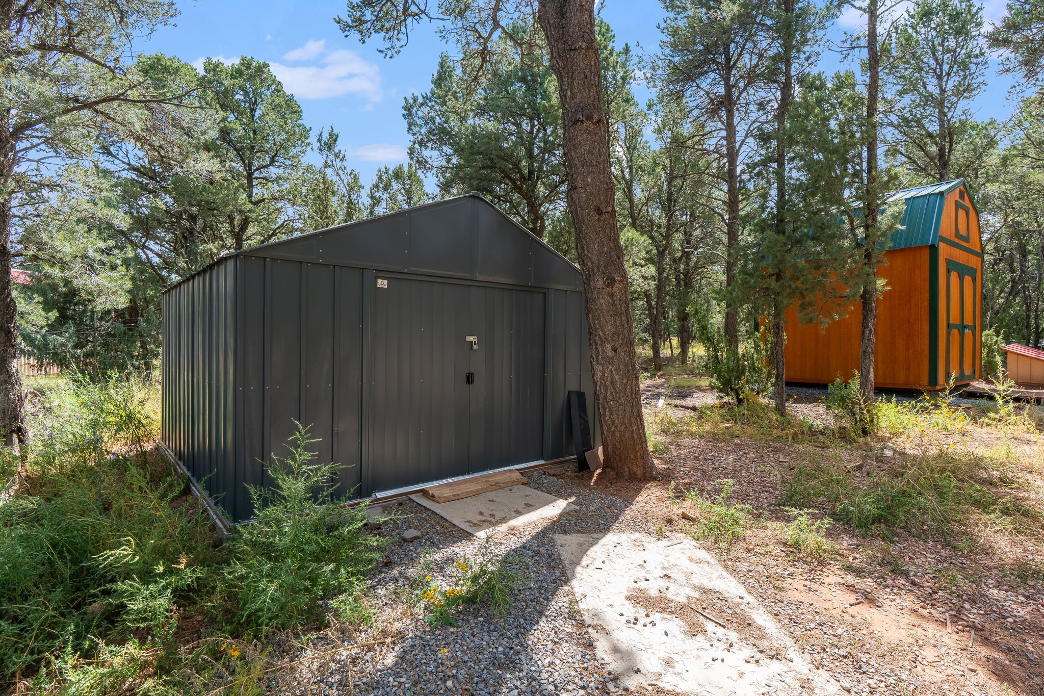 Escape to your own private mountain haven with this charming property tucked away on 4 wooded acres in Rowe, NM. Located just 30 minutes from Santa Fe, 40 minutes from Las Vegas, and less than 15 minutes to Pecos, this property is ideally situated for both convenience and adventure. Surrounded by pinon and other native trees and local wildlife, this retreat offers peace, seclusion, and plenty of room to grow. Roughly 1/3 of the property is fenced in, making an ideal dog run.The main home is a cozy 2-bedroom manufactured house with an expanded living area, creating a warm and inviting space to relax after a day outdoors. A separate guest casita provides extra room for visitors, hobbies, or even rental potential. The casita also features granite countertops,stainless steel appliances, and engineered hardwood floors.In addition, three versatile sheds offer ample storage for tools, equipment, or outdoor gear.The surrounding area is a paradise for outdoor enthusiasts--whether you enjoy hunting, fishing, camping, hiking, or simply taking in the fresh mountain air, you'll find it all right at your doorstep.If you've been looking for a serene getaway with space to expand, this Rowe retreat is ready to welcome you home.