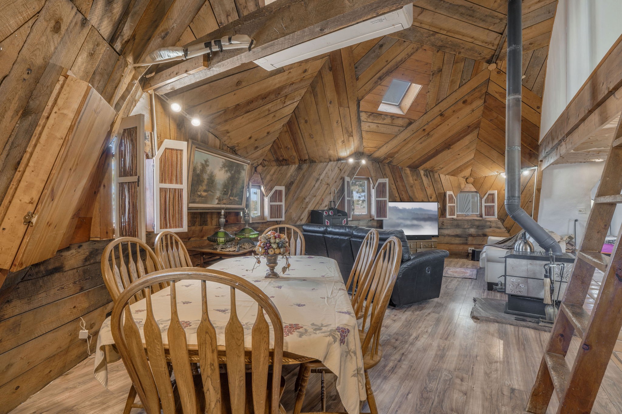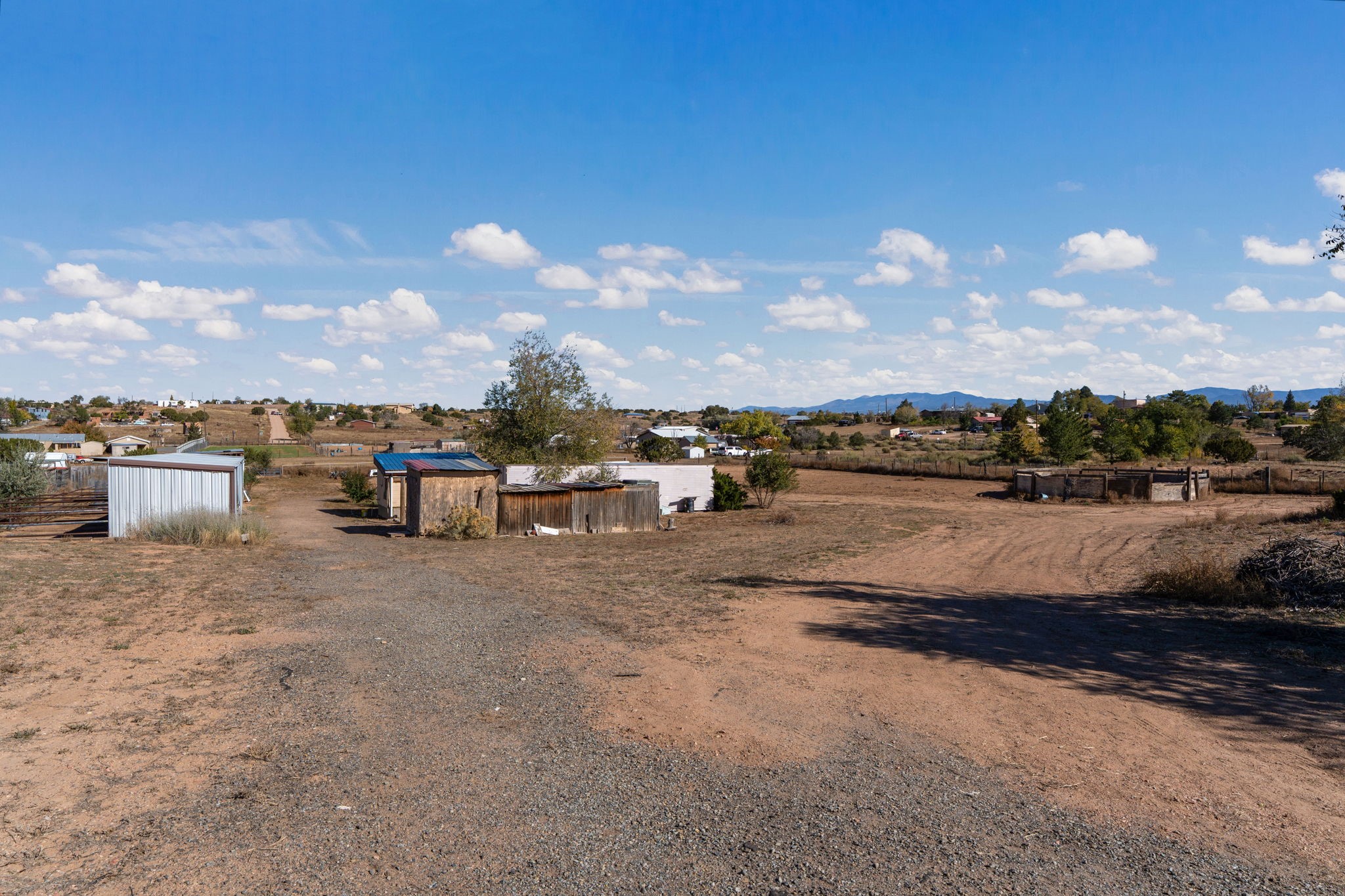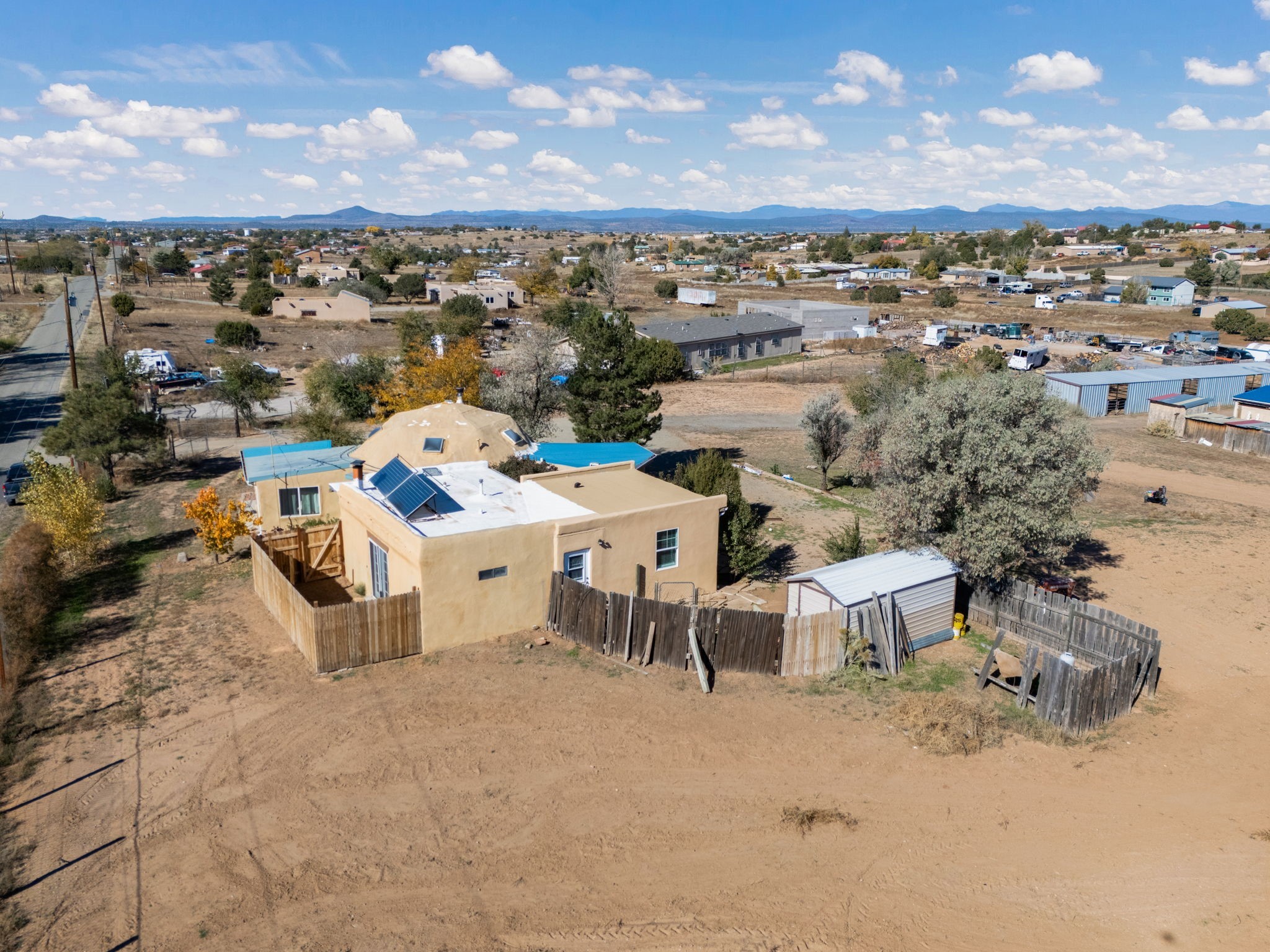 Welcome to your own slice of the Southwest -- a 1,664-square-foot largely adobe home built around a one-of-a-kind geodesic dome, full of character and heart. Set on 2.5 peaceful acres with sweeping Sangre de Cristo mountain views, this property offers the best of rural living, combining comfort, sustainability, and the beauty of the high desert.Step inside and feel the warmth of handcrafted adobe walls, the wooden geodesic dome, exposed vigas, and natural wood and Saltillo tile floors. The primary bedroom features a corner kiva fireplace, creating the perfect cozy retreat on cool evenings. The spacious kitchen is well equipped with stainless steel appliances and plenty of room for gathering, cooking, and sharing meals made from your own garden bounty.The home stays comfortable year-round with a mini-split, woodstove, and solar hot water, while a greywater irrigation system helps nourish your land.Outside, you'll find everything you need for a working mini-ranch or hobby farm -- stables for eight horses with water and electricity, an arena, and ample storage for tack, tools, and feed. The private well ensures reliable water, and there's space to expand your gardens or add more animal pens. Currently, the homestead is happily shared with turkeys, chickens, and mini goats, all thriving under the wide New Mexico sky.This property isn't just a home -- it's a lifestyle. A peaceful haven where you can slow down, breathe deep, and live in rhythm with the land.