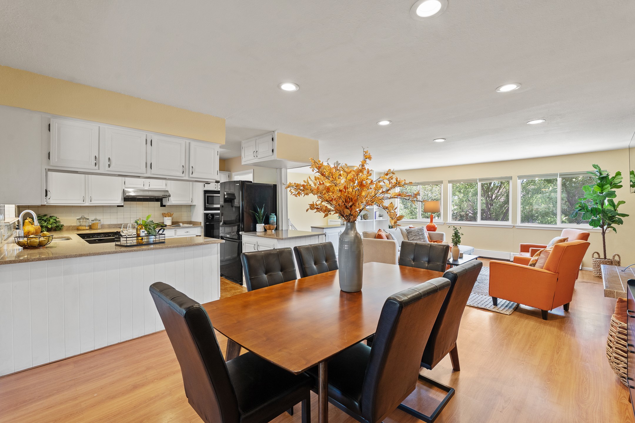 Sellers are offering a $7,500 closing cost credit for any offers closing by 12/31/25. Welcome to this charming split-level home in North Mesa. A unique split-level design, offering a sense of character and style. Ascending the stairs to the main living area, you'll be greeted by a spacious and inviting space. The large open living and dining room awaits, featuring a wall of windows that flood the space with natural light. Built-in bookshelves add a touch of elegance, while the brick gas fireplace with a tile hearth creates a cozy focal point, perfect for gatherings with family and friends. In the center of the home is the Kitchen with white painted cabinets adorned with chrome hardware, tile flooring, and a stylish tile backsplash complemented by quartz countertops. The kitchen also features a convenient bar seating peninsula, relocated/installed new electrical outlets, new refrigerator/icemaker wall outlet box with water shut off, and a new kitchen faucet. The family room is bathed in sunlight streaming through numerous windows. With access to the deck and A huge fenced backyard with mature trees and low-maintenance landscaping. On this level, you'll also find two generously sized guest bedrooms and a full guest bath, complete with a single sink vanity and charming vintage tiling throughout. The primary en-suite with mountain views, features two closets and a bathroom with a single sink vanity and a walk-in shower. Venturing downstairs, you'll discover a large bonus room with a newly added oversized closet with lighting and an interior wall with a door to close off space from the stairs and laundry room. There's two more guest bedrooms and a guest bath, an open space perfect for an office and a spacious laundry room, equipped with a washer and dryer complete the lower level. Brand new Energy Star-rated Natural Gas Combination Boiler with tankless water heater, including complete system repipe, and Programmable Smart Thermostats.