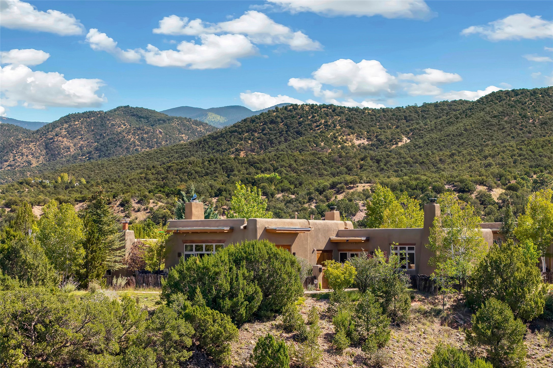Rare single-level Bishop's Lodge Villa located above the Bishop's Lodge, Auberge Collection Resort. This free standing villa is uniquely located within the gated community perched on the edge of nature with sweeping Jemez Mountain Views and ultimate privacy from neighbors. Price includes a turn-key upgraded furniture package on this professional & locally managed investment opportunity with future bookings in place. A custom entry gate leads to the updated courtyards with coyote fencing, flagstone patios, lush landscaping, and a fire-pit ideal for entertaining & sunset views. Inside, a grand foyer opens to the living room that views the mountain vistas, a fireplace with flagstone hearth, gas logs and glass sliders all opening to an outdoor grilling/dining terrace. The generous kitchen offers updated quartzite countertops, KitchenAid SS appliances with gas range, bar seating and ample storage, opening to an expansive dining area filled with natural light.Three spacious ensuite bedrooms each feature access to outdoor patios, two with gas kiva fireplaces and updated quartzite counters in the baths. The primary includes a steam shower and jetted tub, fireplace and private courtyard. Traditional Santa Fe details throughout: high ceilings with Vigas, skylights, plaster walls, wood & tile flooring. Community amenities include a private pool plus access to the #1 Resort in the Mountain West by Cond Nast Traveler offering discounts for hotel rooms, dining, spa, horseback riding and limited access to the hotel pool. Just minutes north of downtown Santa Fe, this private and meticulously maintained Villa is move-in ready.