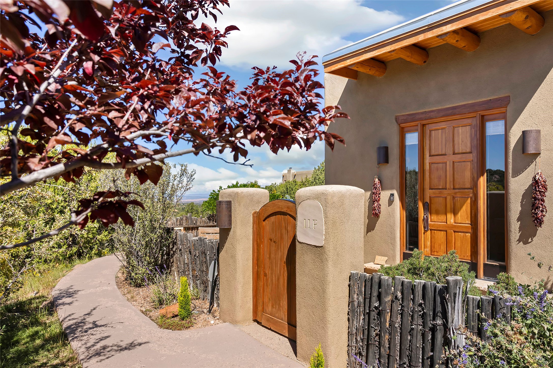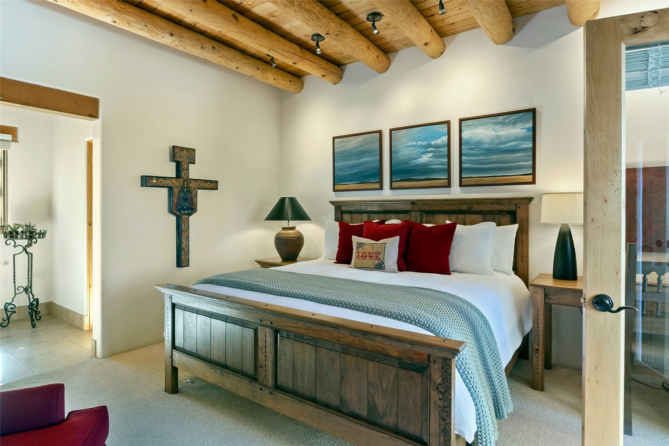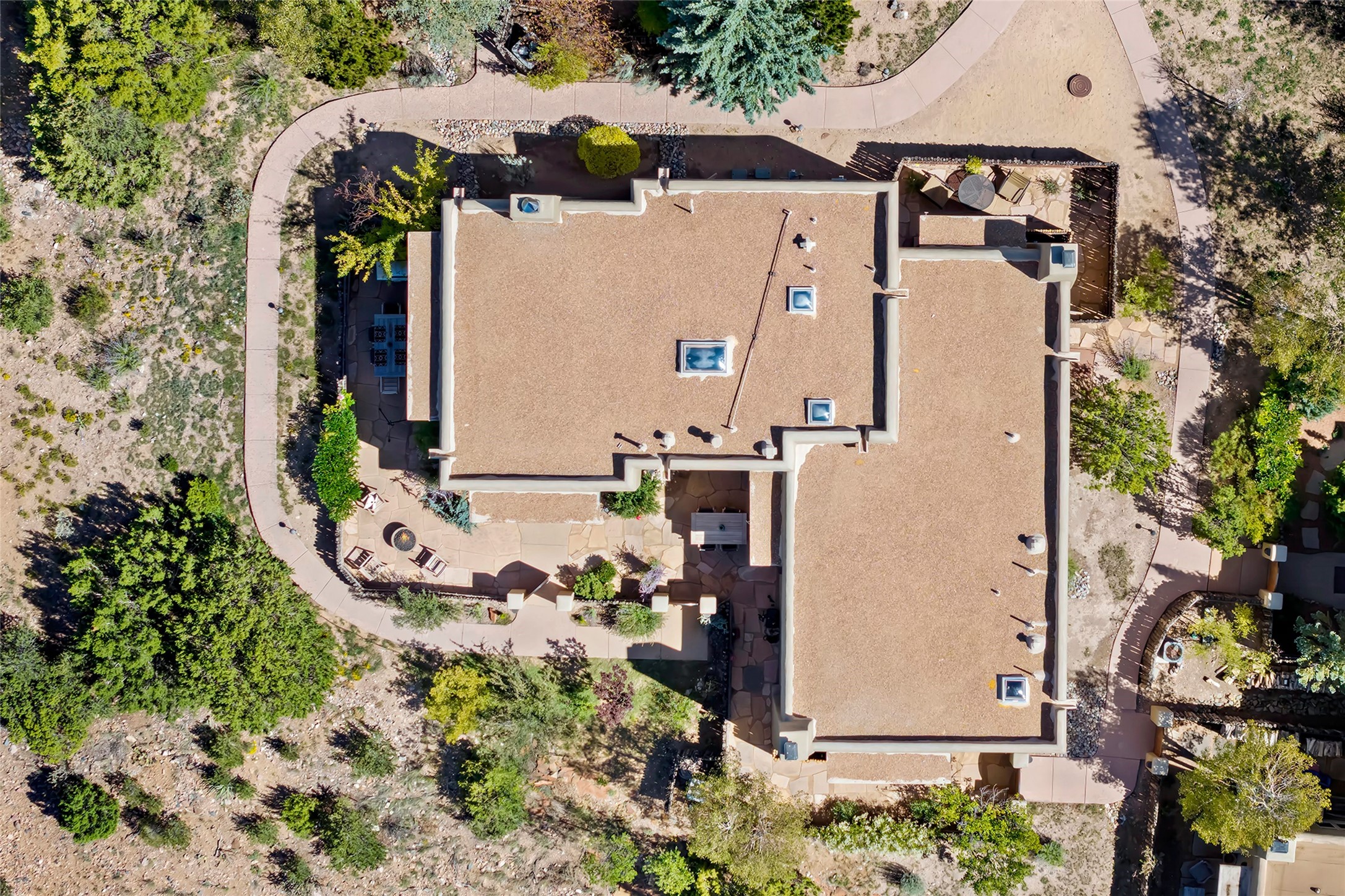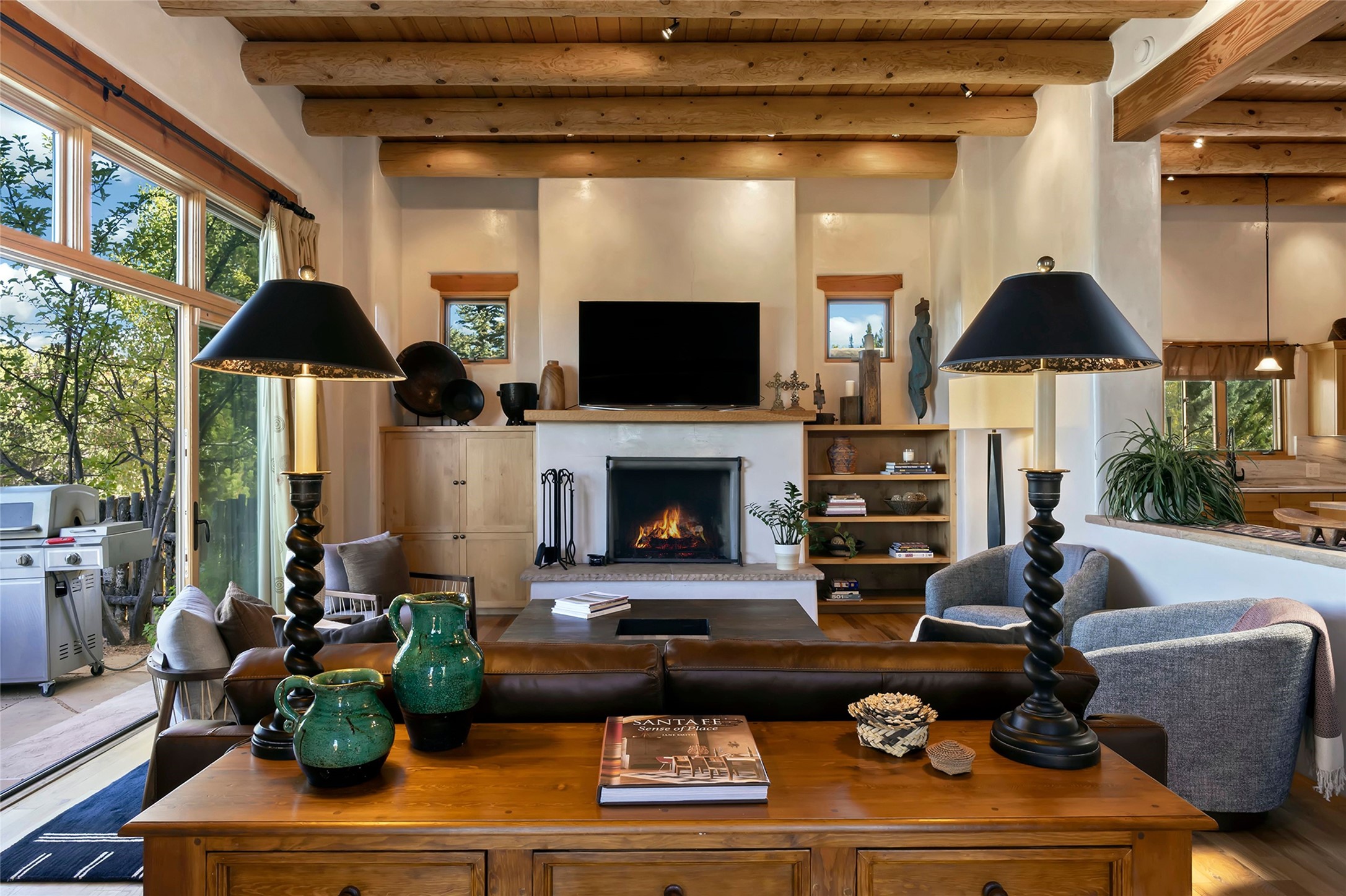 Rare single-level Bishop's Lodge Villa located above the Bishop's Lodge, Auberge Collection Resort. This free standing villa is uniquely located within the gated community perched on the edge of nature with sweeping Jemez Mountain Views and ultimate privacy from neighbors. Price includes a turn-key upgraded furniture package on this professional & locally managed investment opportunity with future bookings in place. A custom entry gate leads to the updated courtyards with coyote fencing, flagstone patios, lush landscaping, and a fire-pit ideal for entertaining & sunset views. Inside, a grand foyer opens to the living room that views the mountain vistas, a fireplace with flagstone hearth, gas logs and glass sliders all opening to an outdoor grilling/dining terrace. The generous kitchen offers updated quartzite countertops, KitchenAid SS appliances with gas range, bar seating and ample storage, opening to an expansive dining area filled with natural light.Three spacious ensuite bedrooms each feature access to outdoor patios, two with gas kiva fireplaces and updated quartzite counters in the baths. The primary includes a steam shower and jetted tub, fireplace and private courtyard. Traditional Santa Fe details throughout: high ceilings with Vigas, skylights, plaster walls, wood & tile flooring. Community amenities include a private pool plus access to the #1 Resort in the Mountain West by Cond Nast Traveler offering discounts for hotel rooms, dining, spa, horseback riding and limited access to the hotel pool. Just minutes north of downtown Santa Fe, this private and meticulously maintained Villa is move-in ready.