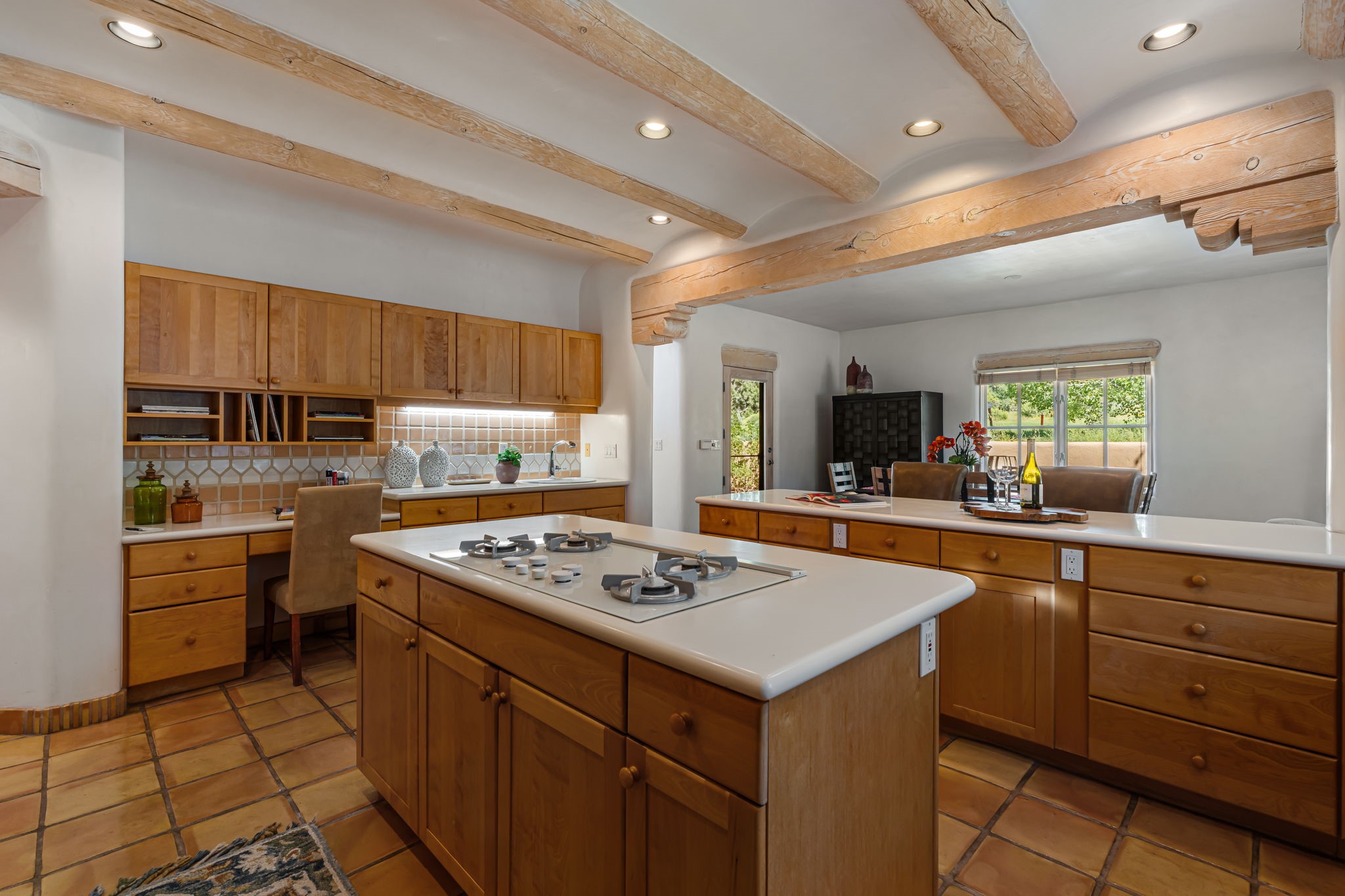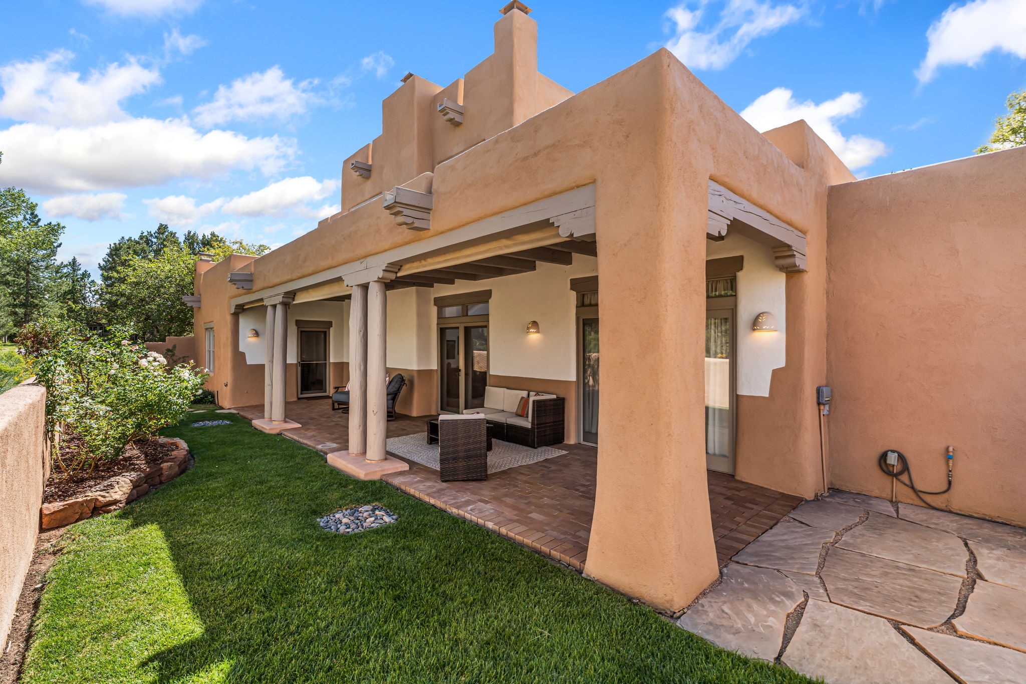 One of the larger and more beautiful freestanding homes available in Quail Run, unit 632 is bathed in natural light from the double-height ceilings facing east toward the Sangre de Cristo Mountains. This particular unit has 3 very generous bedrooms, each with its own bathroom, in addition to a powder room available to guests.The living room accommodates a grand piano or multiple seating areas, and is complemented by an adjacent library with custom-built bookshelves.The kitchen features an updated appliance wall with high-end built-ins, including a Sub-Zero refrigerator with bottom drawer freezer. Custom shelving maximizes storage in the walk-in pantry. The generous master bedroom with its own door out to the east portal, has a soaking tub and two walk-in closets in its en-suite bathroom.The second downstairs bedroom includes a retrofitted accessible bathtub - ideal for guests or aging in place.Upstairs, a spacious loft area overlooks the living room and leads to a private bedroom, full bath, and a balcony perfect for sunset viewing.The main east portal has a bank of established rose bushes producing an abundance of blooms that can be cut for bouquets. With access to the kitchen area, French doors to the living room, and a sliding door into the master bedroom, the main portal is large enough for multiple sitting or eating areas.The west patio is a custom designed Zen garden with enough space to sit or eat under a traditional southwest portal. A beautiful house with all the amenities that Quail Run has to offer: a clubhouse with extensive exercise rooms, equipment, and classes, a swimming pool for laps and a warm therapy pool, two hot tubs, entertainment, restaurant, activities, golf, tennis and pickle ball courts, maintenance crew on call, housekeeping services available, all exterior maintenance taken care of.Come see this particular unit - everyone who does loves it for its space, light, and orientation within the Quail Run community.