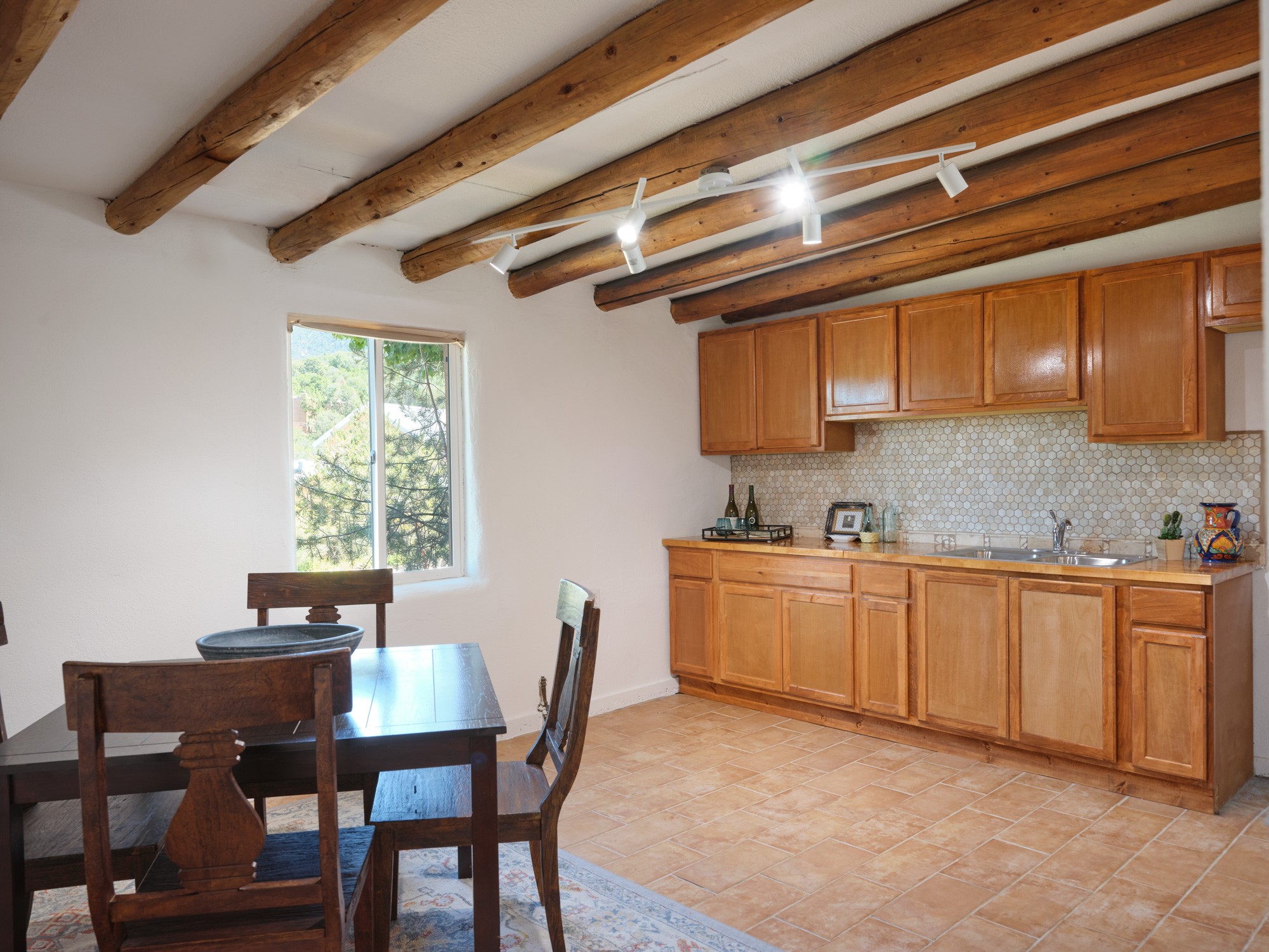 Nestled in one of Santa Fe's most desirable neighborhoods, this 2 bedroom, 1 bathroom home sits on one of the largest lots currently available in the area at .42 acres. This rare opportunity provides endless options add a casita, build another home, create a garage, or design outdoor living spaces that take full advantage of the hillside setting.The existing home is filled with Southwestern character, featuring viga ceilings and a cozy fireplace. Natural light flows through the inviting floor plan, offering a comfortable balance of charm and functionality.Step outside to terraced grounds with room to expand and enjoy stunning views of the Sangre de Cristo Mountains. located near St. John's College, The Santa Fe Watershed, Santa Fe Ski Basin, Preparatory school, Cristo Rey Church and several elementary schools. Canyon Road, galleries, shops, and 5 minutes from downtown Santa Fe Plaza.