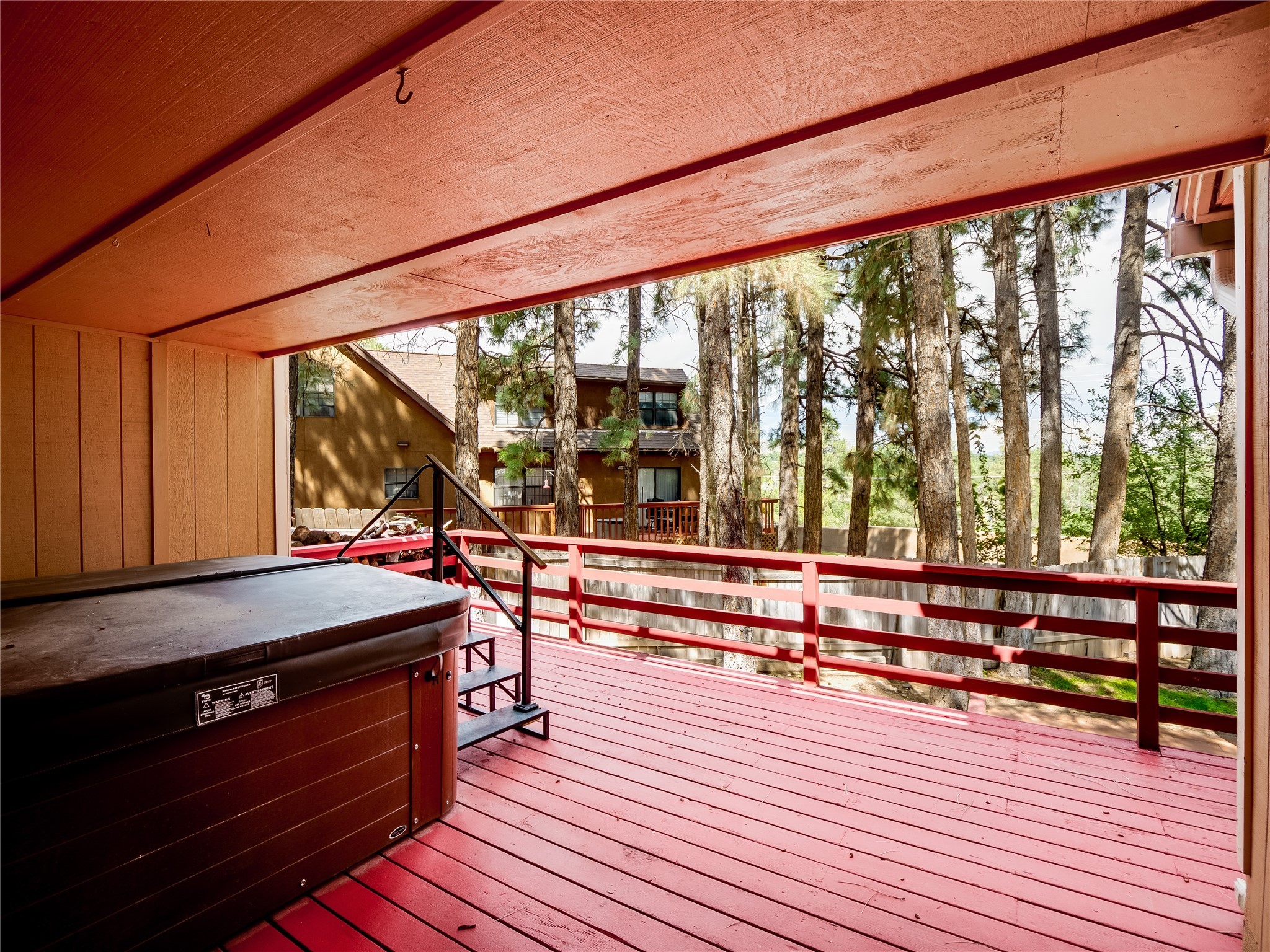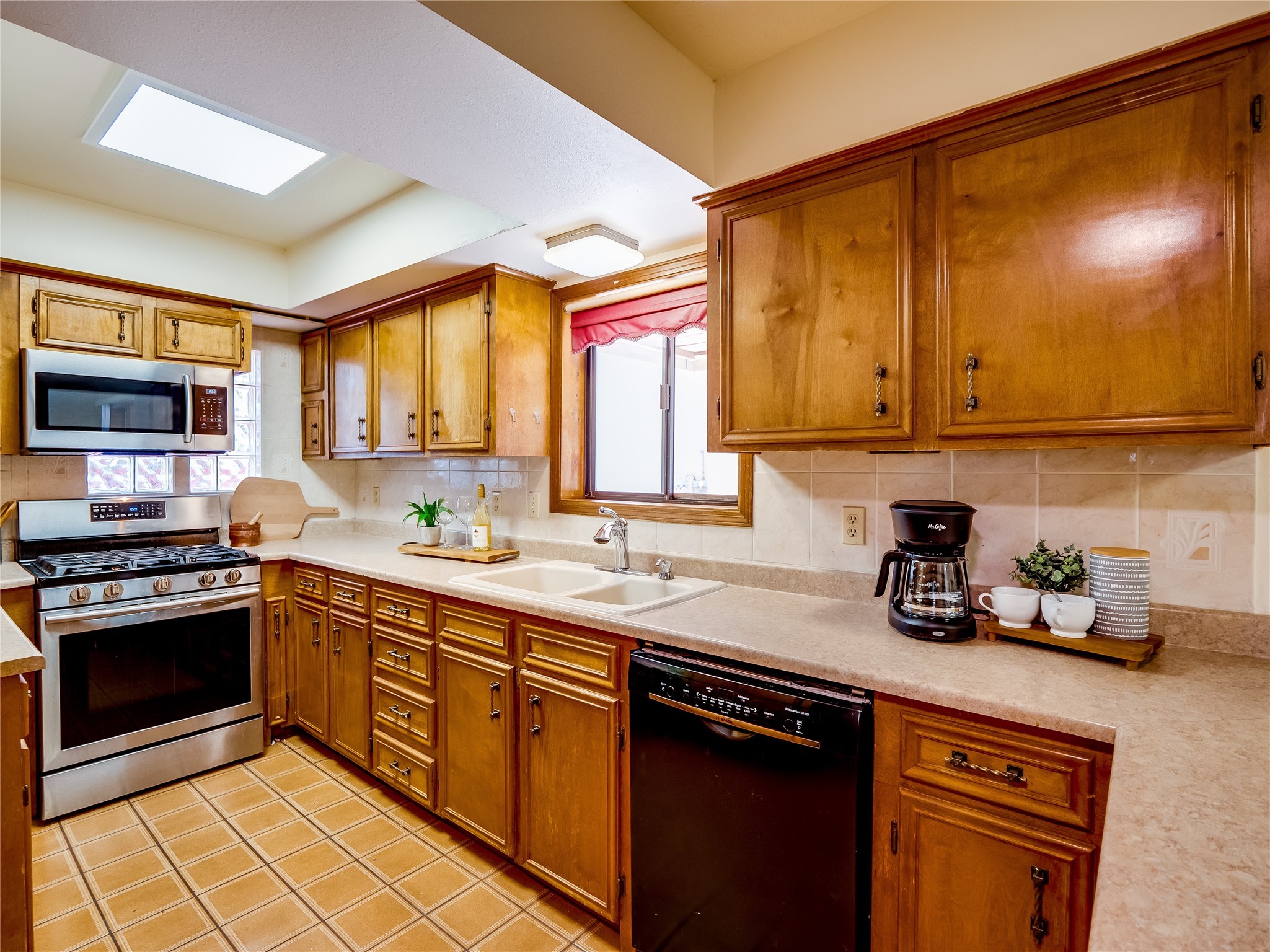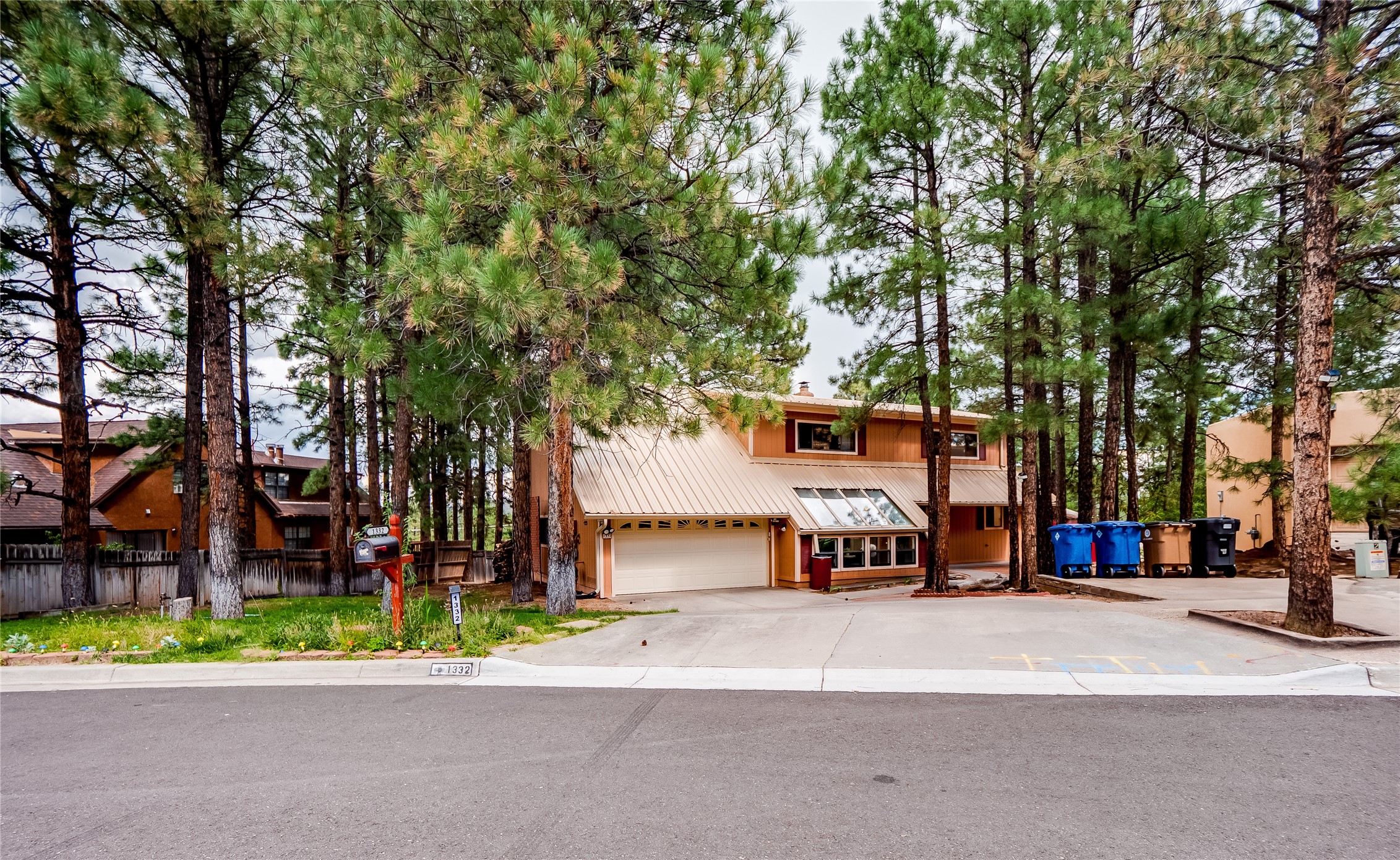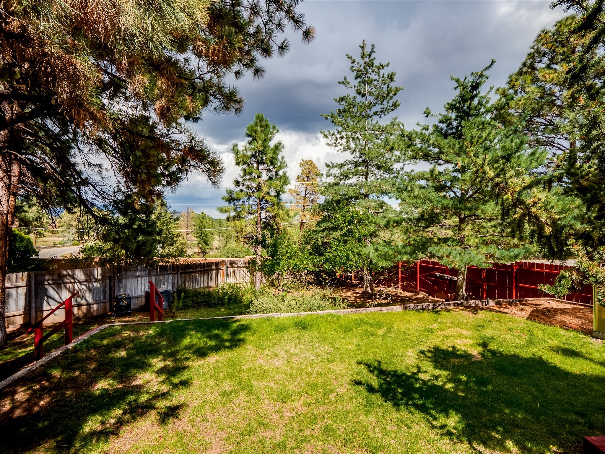 Welcome to this beautiful two-story home in the highly sought-after North Mesa neighborhood! Nestled on a wooded lot with a lush grass lawn, vibrant flower beds, and mature trees, the inviting curb appeal leads you to a charming sunroom-style front porch with stone flooring and direct access to the two-car garage. Step inside through one of two entryways, including sliding doors that open into the warm and welcoming living room. Here, vaulted ceilings create a spacious atmosphere while a stunning corner stone wood-burning fireplace serves as the focal point. Sliding doors extend the living space outdoors to a covered wood deck overlooking the expansive backyard--complete with fruit trees, mature landscaping, a grassy lawn, greenhouse, and storage shed, making it a true outdoor retreat. The dining and kitchen area features tile flooring, a tray ceiling with a skylight, and a thoughtful layout perfect for everyday living. The kitchen is equipped with warm wood cabinets accented by black hardware, light counters, a tile backsplash, and stainless steel appliances. Down the hall, the main level also offers a comfortable guest en-suite with a walk-in shower, an additional guest bedroom, a full guest bathroom with a single sink vanity, and a convenient laundry closet. Upstairs, plush carpet leads to a cozy loft-style family room with built-in cabinet bookcases, ideal for reading or gathering. A bright guest bedroom provides storage space and sliding doors that open to a private deck with breathtaking mountain views. The large primary en-suite is a peaceful retreat, featuring a spacious walk-in closet and extra storage. The bathroom is designed with a white single sink vanity with granite counters located within the bedroom, while a separate enclosed space houses the walk-in glass shower and toilet for added privacy. This fantastic home is in a prime location close to the golf course, trails, horse stables, and schools. Don't miss your chance to own this one-of-a-kind home!
