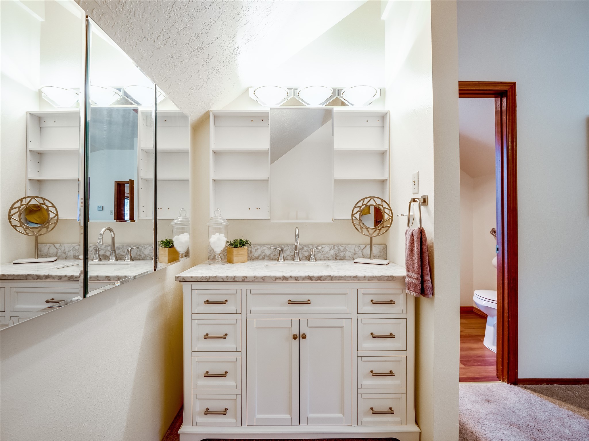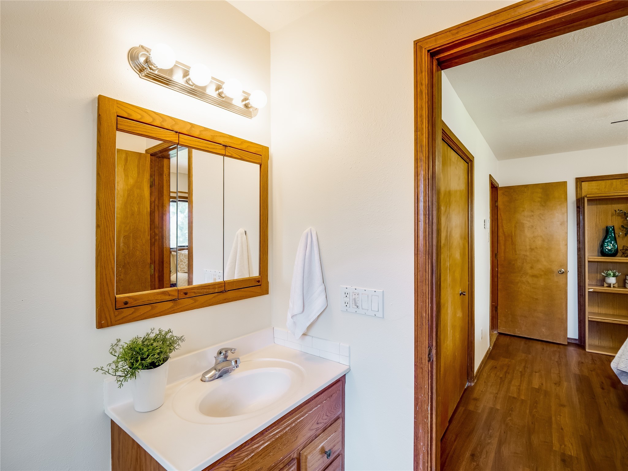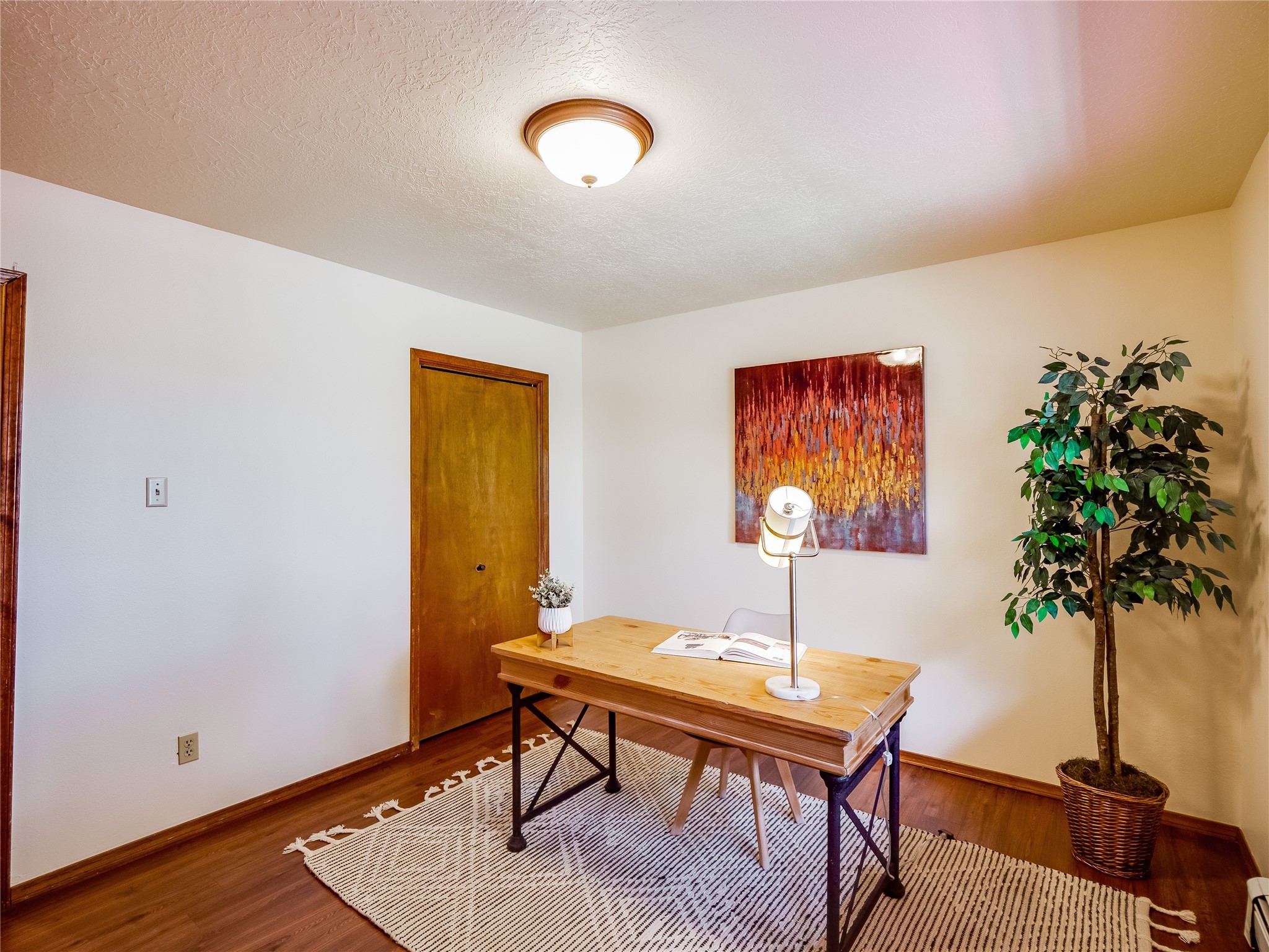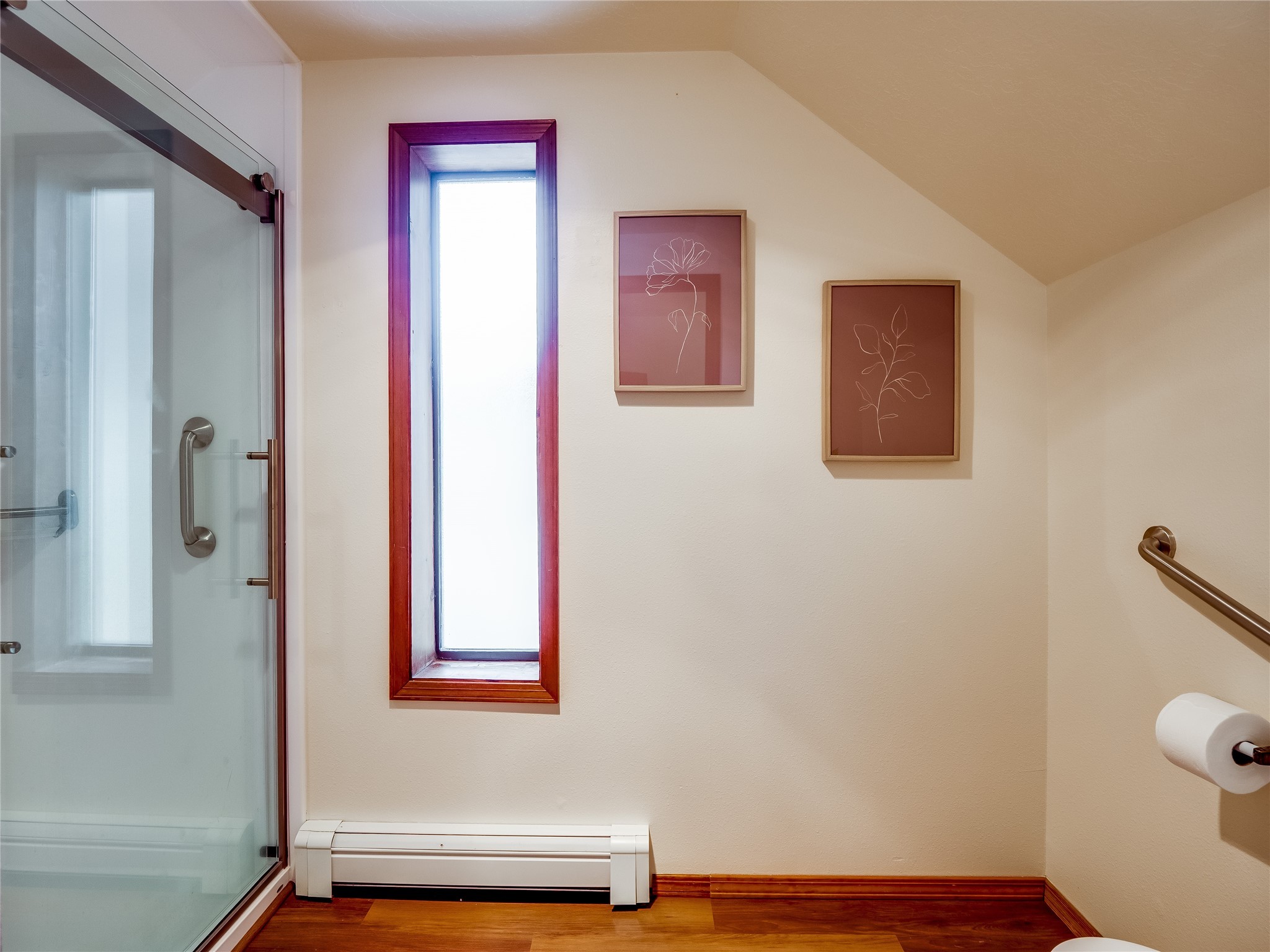 Welcome to this beautiful two-story home in the highly sought-after North Mesa neighborhood! Nestled on a wooded lot with a lush grass lawn, vibrant flower beds, and mature trees, the inviting curb appeal leads you to a charming sunroom-style front porch with stone flooring and direct access to the two-car garage. Step inside through one of two entryways, including sliding doors that open into the warm and welcoming living room. Here, vaulted ceilings create a spacious atmosphere while a stunning corner stone wood-burning fireplace serves as the focal point. Sliding doors extend the living space outdoors to a covered wood deck overlooking the expansive backyard--complete with fruit trees, mature landscaping, a grassy lawn, greenhouse, and storage shed, making it a true outdoor retreat. The dining and kitchen area features tile flooring, a tray ceiling with a skylight, and a thoughtful layout perfect for everyday living. The kitchen is equipped with warm wood cabinets accented by black hardware, light counters, a tile backsplash, and stainless steel appliances. Down the hall, the main level also offers a comfortable guest en-suite with a walk-in shower, an additional guest bedroom, a full guest bathroom with a single sink vanity, and a convenient laundry closet. Upstairs, plush carpet leads to a cozy loft-style family room with built-in cabinet bookcases, ideal for reading or gathering. A bright guest bedroom provides storage space and sliding doors that open to a private deck with breathtaking mountain views. The large primary en-suite is a peaceful retreat, featuring a spacious walk-in closet and extra storage. The bathroom is designed with a white single sink vanity with granite counters located within the bedroom, while a separate enclosed space houses the walk-in glass shower and toilet for added privacy. This fantastic home is in a prime location close to the golf course, trails, horse stables, and schools. Don't miss your chance to own this one-of-a-kind home!