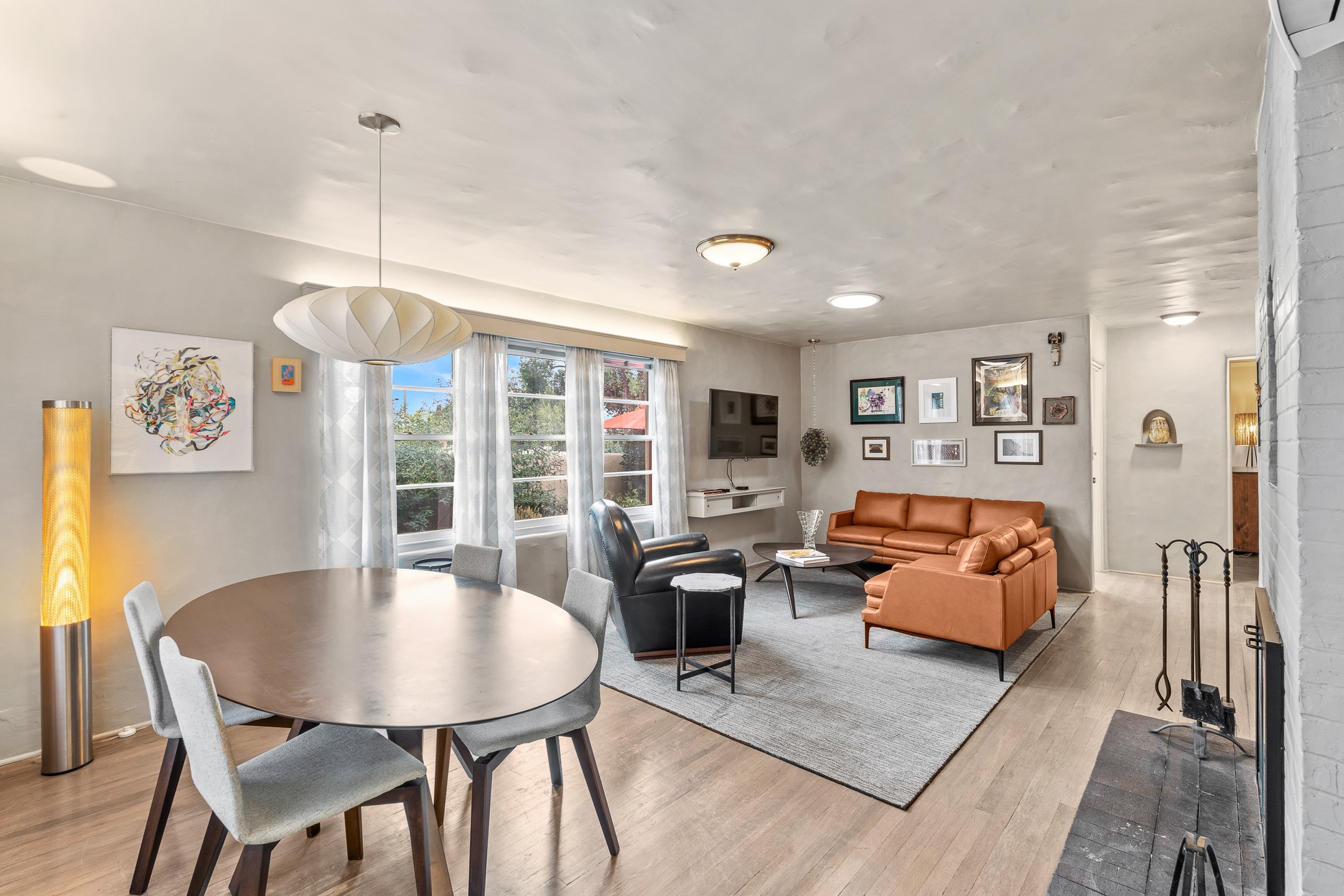 PENDING-- TAKING BACKUP OFFERS! Live like the artist that you are! This historic South Capitol home has had an incredible modern transformation! Lots of designer finishes!Originally built in 1949, this little piece of history has been thoughtfully remodeled to incorporate the old and the new -- a unique combination of mid-century and Santa Fe styles.Featuring 2 bedrooms plus an office, 4 baths, and not one - but two - artist studios, all on a gated lot within walking distance to downtown - this property has everything you could want in your Santa Fe dream home.The all-new kitchen was inspired by the original 1949 style, rebuilt with quartz counters, Caf brand appliances, including a new oven installed in 2025, and hand-made cottage style cabinetry.The primary suite, completely reimagined in 2024, will have you luxuriating in the Americh soaking tub, walk-in shower, and luxury Grohe and Kohler finishes.Need studio space? There are TWO artist's studios - one attached and one detached. The attached studio has skylights, industrial sink, and a private patio -- perfect for use as a creative or flex space. The new (2022) 480-square-foot studio has soaring ceilings plenty of light, a sink and a 1/2 bath.Outdoors, discover hidden native gardens curated by a landscape designer, the custom outdoor kitchen with built-in gas Coyote grill and and covered dining portal, and a sculptural rock fountain by artist Joshua Gannon. Other bonuses include custom uplighting throughout the property, George Nelson and Pablo Pardo pendant lighting, solar tube skylights, a custom-made wine cabinet with built in wine cooler,b new windows in 2020, an EV car charger, a new roof in 2020, and all new electric and plumbing (2020). Seven split HVAC units will keep you comfortable year-round.This is South Capitol redefined. A historic home, transformed for high-quality modern living -- don't miss this opportunity to live your artistic Santa Fe dream!