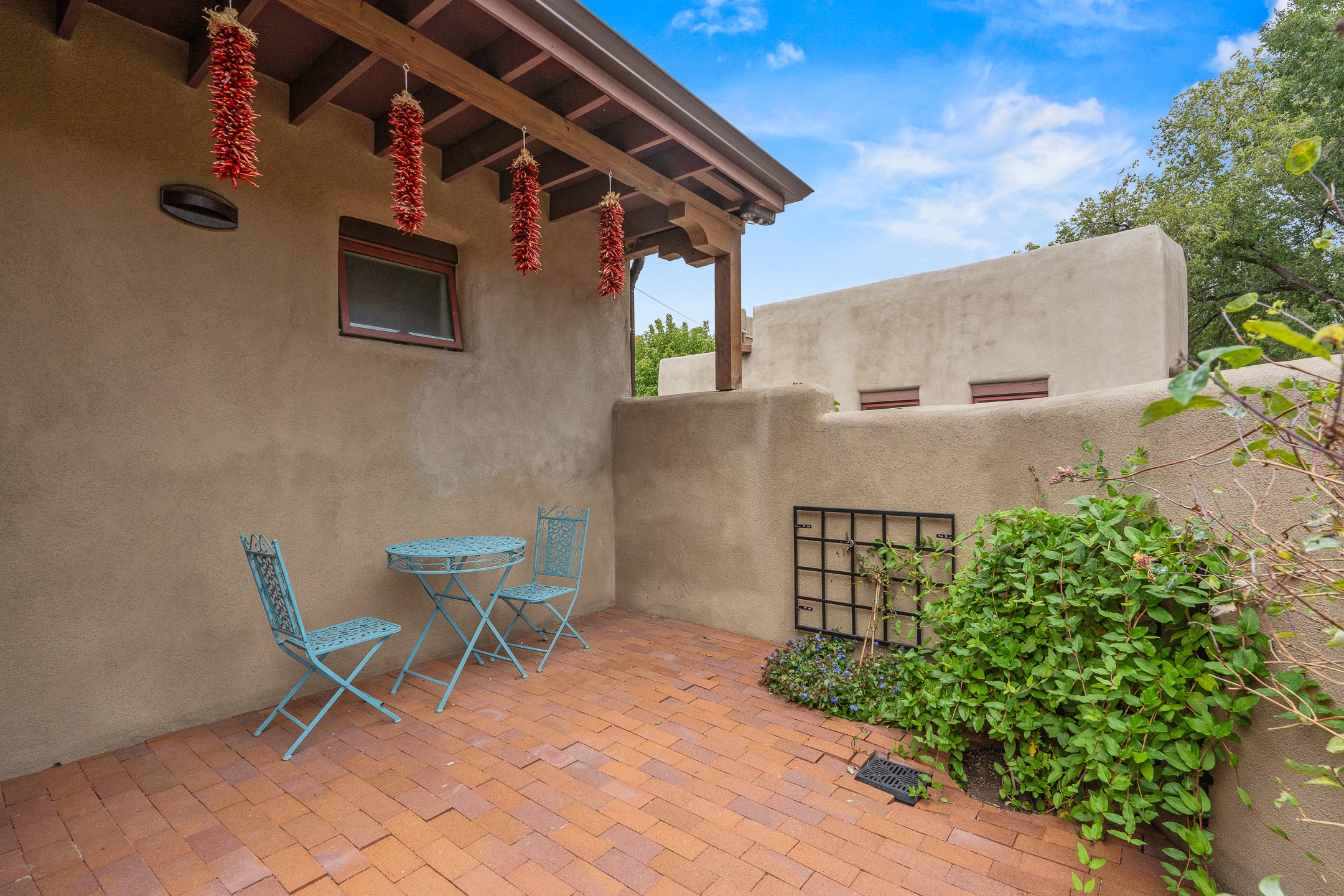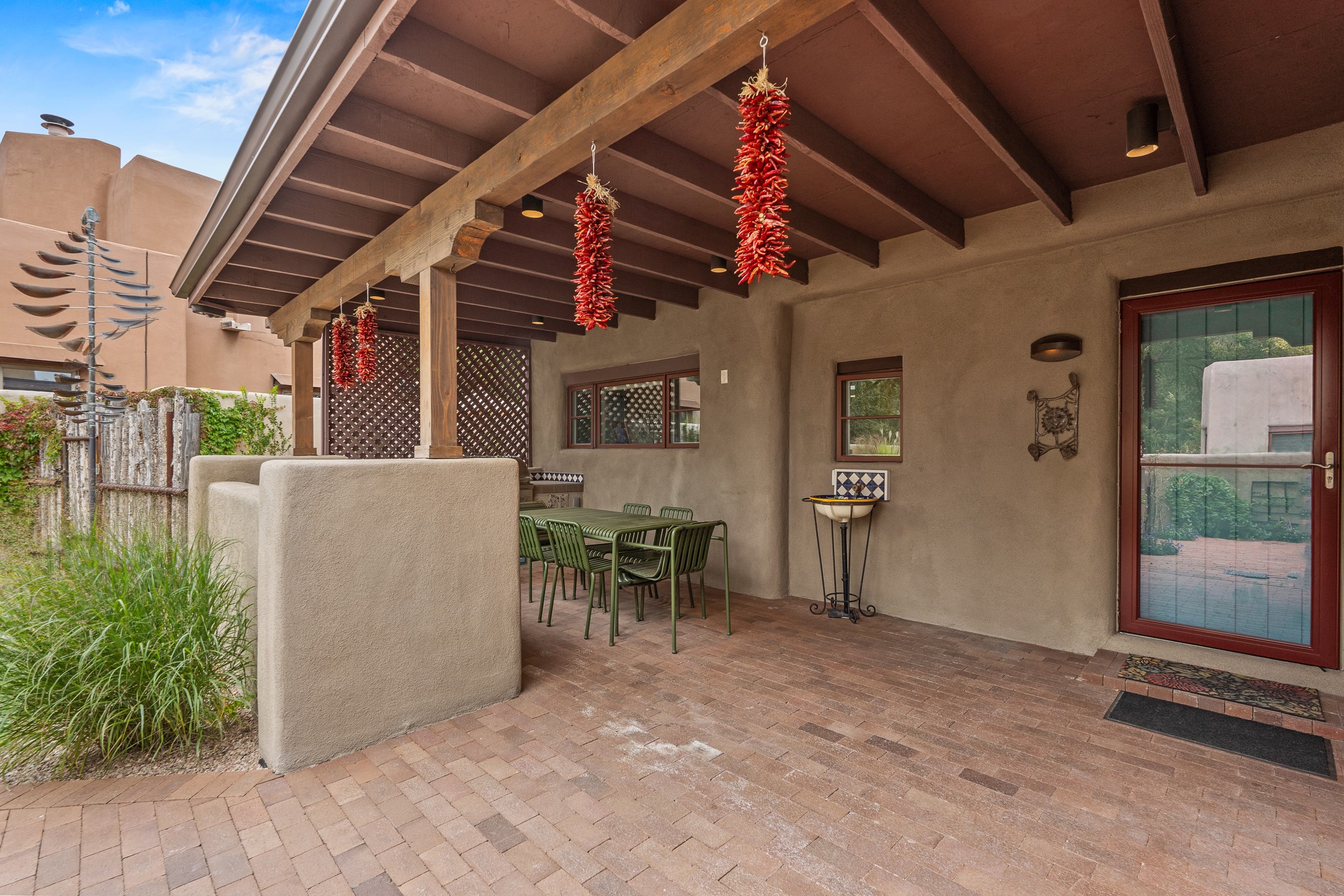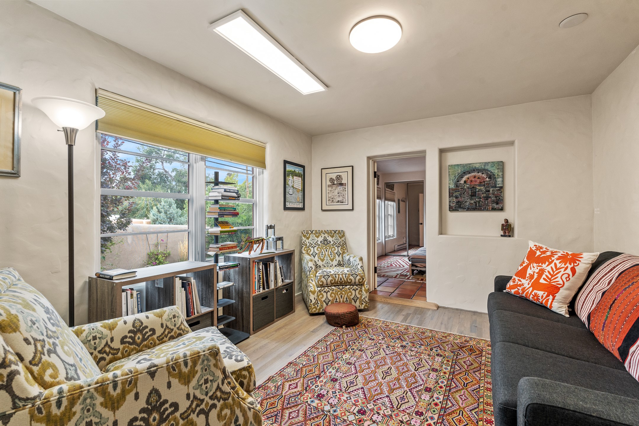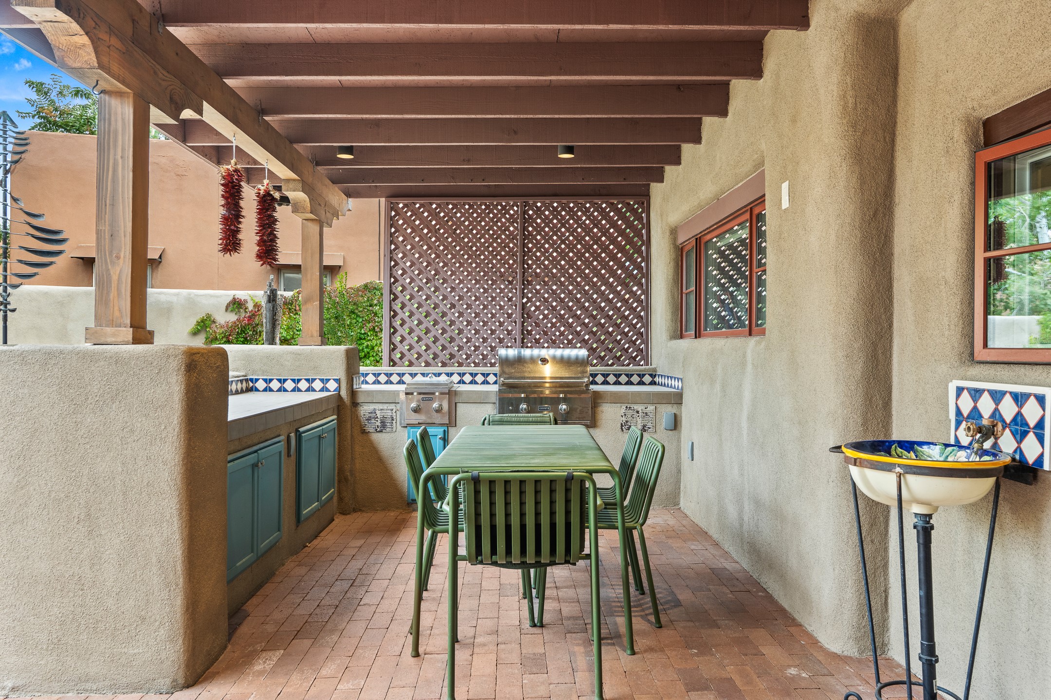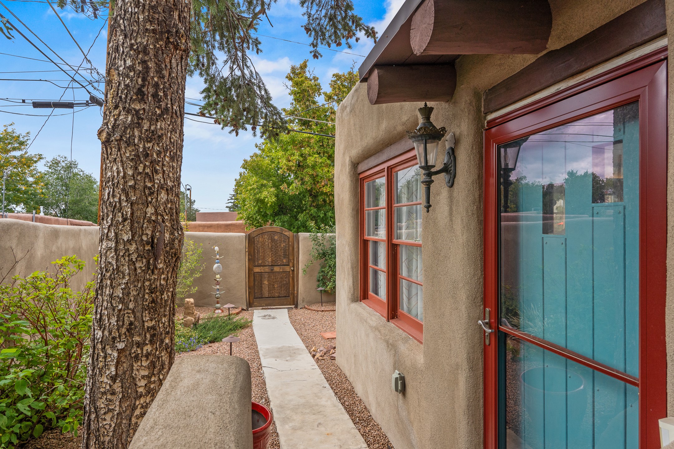 PENDING-- TAKING BACKUP OFFERS! Live like the artist that you are! This historic South Capitol home has had an incredible modern transformation! Lots of designer finishes!Originally built in 1949, this little piece of history has been thoughtfully remodeled to incorporate the old and the new -- a unique combination of mid-century and Santa Fe styles.Featuring 2 bedrooms plus an office, 4 baths, and not one - but two - artist studios, all on a gated lot within walking distance to downtown - this property has everything you could want in your Santa Fe dream home.The all-new kitchen was inspired by the original 1949 style, rebuilt with quartz counters, Caf brand appliances, including a new oven installed in 2025, and hand-made cottage style cabinetry.The primary suite, completely reimagined in 2024, will have you luxuriating in the Americh soaking tub, walk-in shower, and luxury Grohe and Kohler finishes.Need studio space? There are TWO artist's studios - one attached and one detached. The attached studio has skylights, industrial sink, and a private patio -- perfect for use as a creative or flex space. The new (2022) 480-square-foot studio has soaring ceilings plenty of light, a sink and a 1/2 bath.Outdoors, discover hidden native gardens curated by a landscape designer, the custom outdoor kitchen with built-in gas Coyote grill and and covered dining portal, and a sculptural rock fountain by artist Joshua Gannon. Other bonuses include custom uplighting throughout the property, George Nelson and Pablo Pardo pendant lighting, solar tube skylights, a custom-made wine cabinet with built in wine cooler,b new windows in 2020, an EV car charger, a new roof in 2020, and all new electric and plumbing (2020). Seven split HVAC units will keep you comfortable year-round.This is South Capitol redefined. A historic home, transformed for high-quality modern living -- don't miss this opportunity to live your artistic Santa Fe dream!