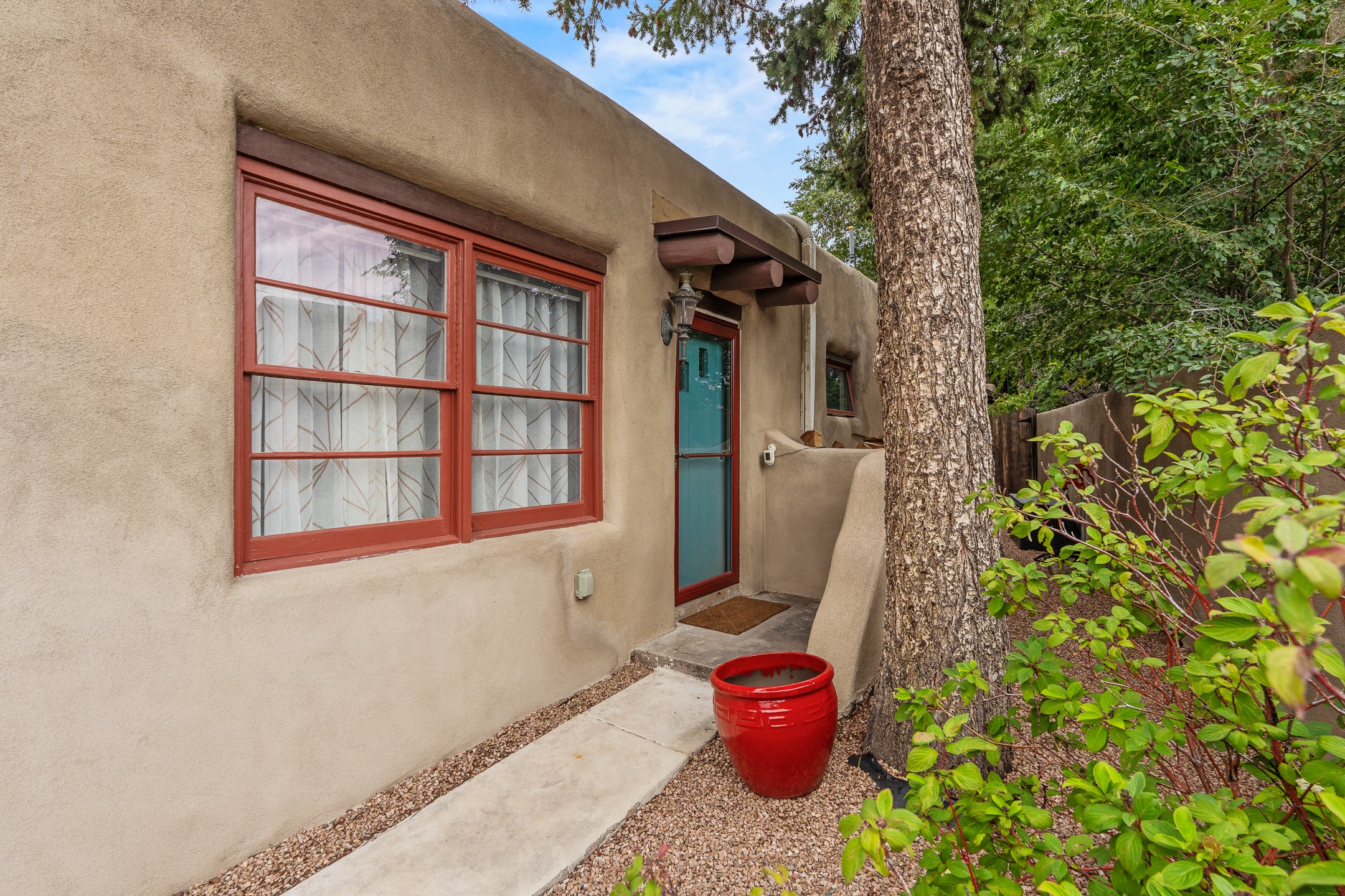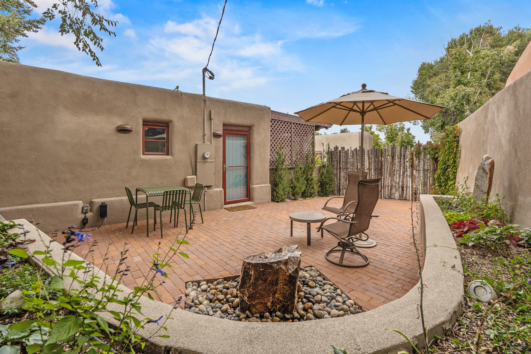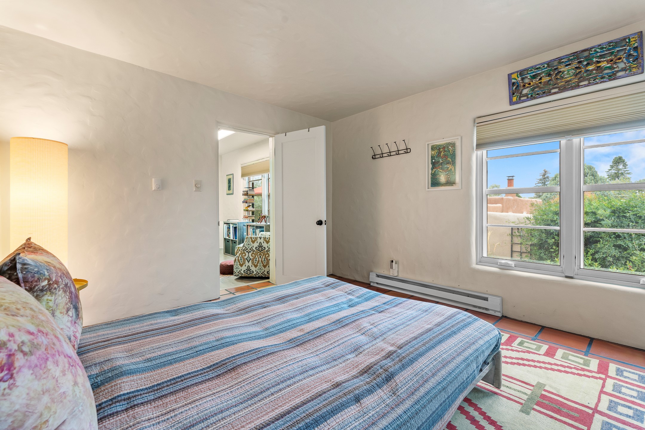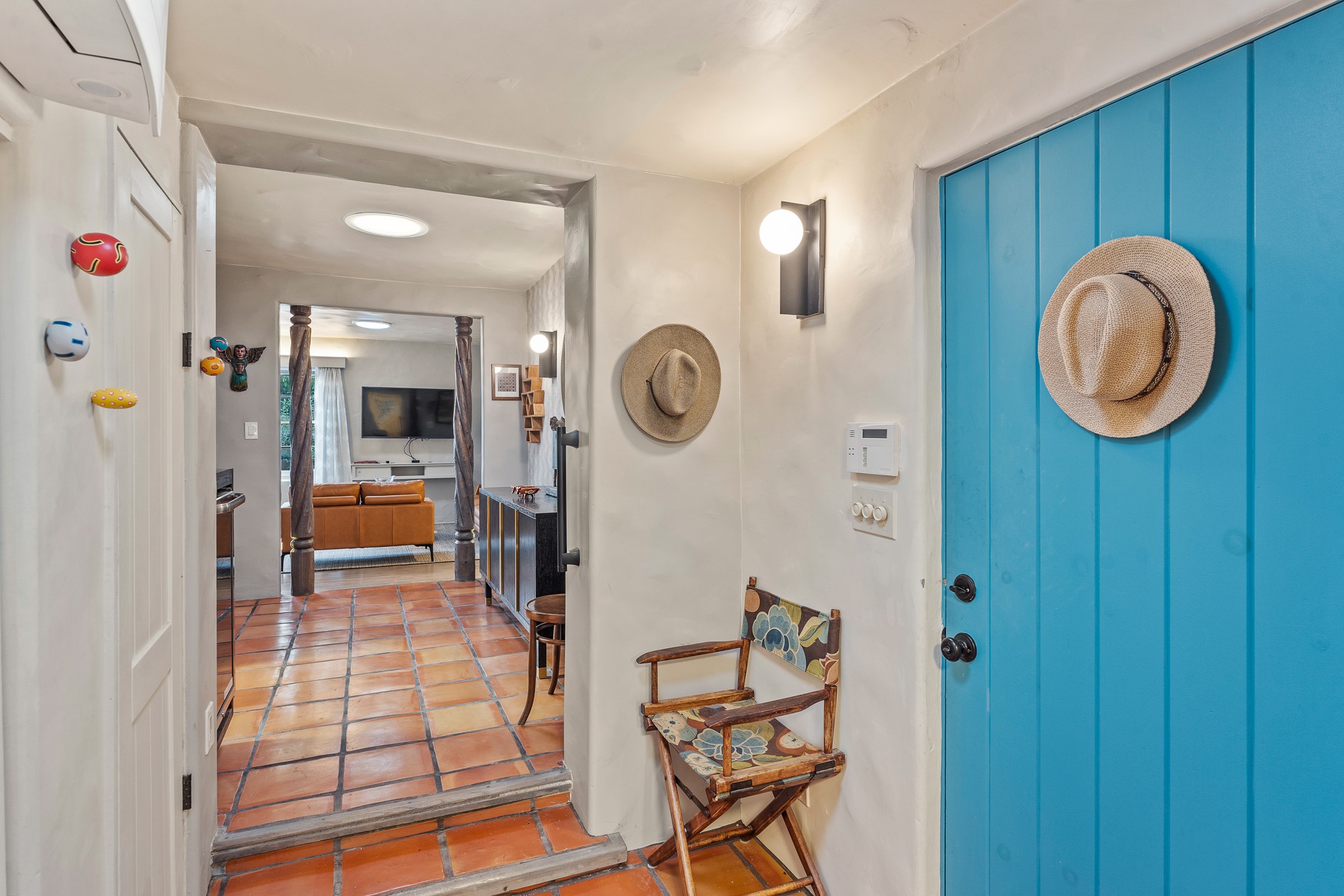 PENDING-- TAKING BACKUP OFFERS! Live like the artist that you are! This historic South Capitol home has had an incredible modern transformation! Lots of designer finishes!Originally built in 1949, this little piece of history has been thoughtfully remodeled to incorporate the old and the new -- a unique combination of mid-century and Santa Fe styles.Featuring 2 bedrooms plus an office, 4 baths, and not one - but two - artist studios, all on a gated lot within walking distance to downtown - this property has everything you could want in your Santa Fe dream home.The all-new kitchen was inspired by the original 1949 style, rebuilt with quartz counters, Caf brand appliances, including a new oven installed in 2025, and hand-made cottage style cabinetry.The primary suite, completely reimagined in 2024, will have you luxuriating in the Americh soaking tub, walk-in shower, and luxury Grohe and Kohler finishes.Need studio space? There are TWO artist's studios - one attached and one detached. The attached studio has skylights, industrial sink, and a private patio -- perfect for use as a creative or flex space. The new (2022) 480-square-foot studio has soaring ceilings plenty of light, a sink and a 1/2 bath.Outdoors, discover hidden native gardens curated by a landscape designer, the custom outdoor kitchen with built-in gas Coyote grill and and covered dining portal, and a sculptural rock fountain by artist Joshua Gannon. Other bonuses include custom uplighting throughout the property, George Nelson and Pablo Pardo pendant lighting, solar tube skylights, a custom-made wine cabinet with built in wine cooler,b new windows in 2020, an EV car charger, a new roof in 2020, and all new electric and plumbing (2020). Seven split HVAC units will keep you comfortable year-round.This is South Capitol redefined. A historic home, transformed for high-quality modern living -- don't miss this opportunity to live your artistic Santa Fe dream!