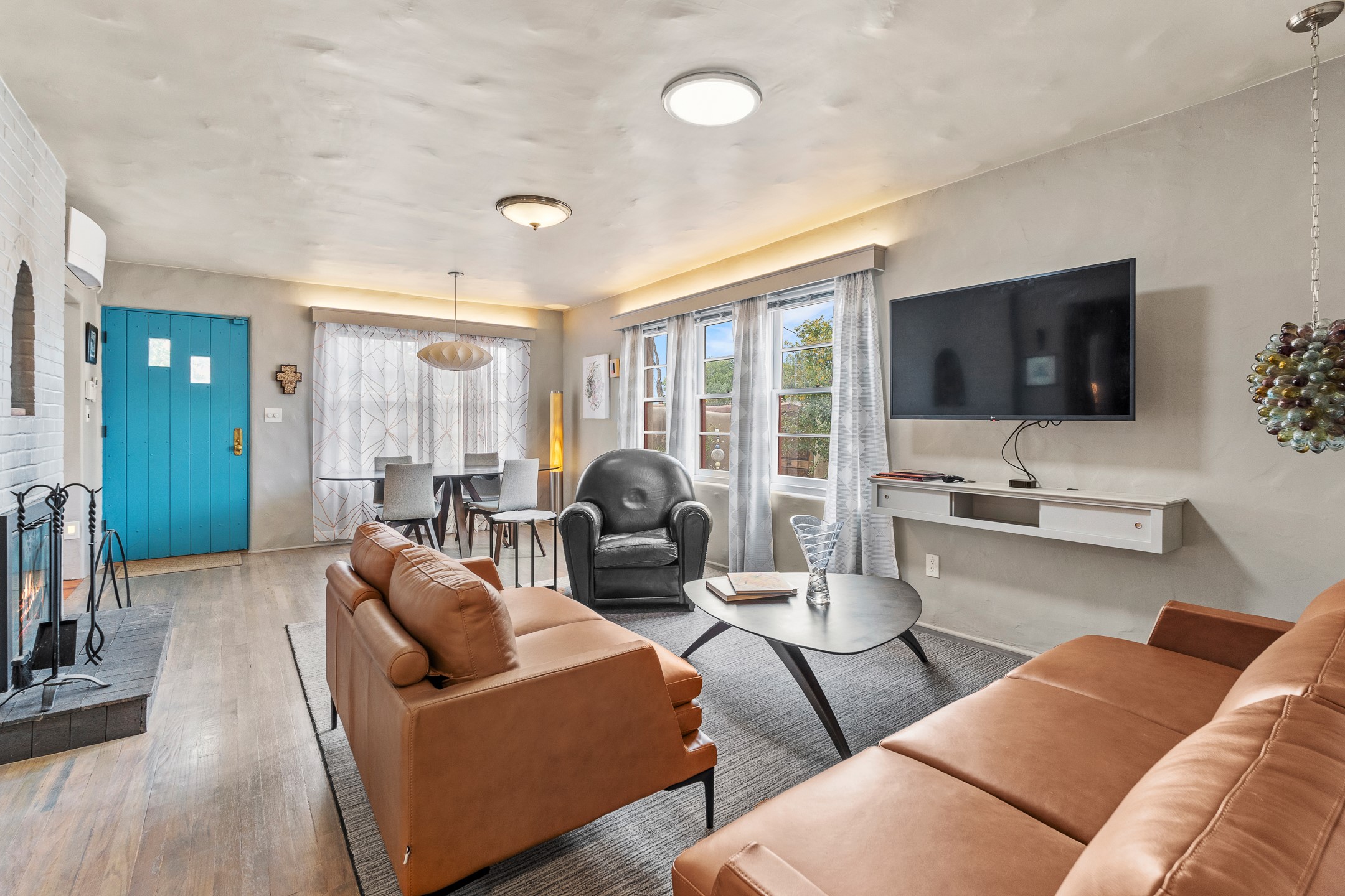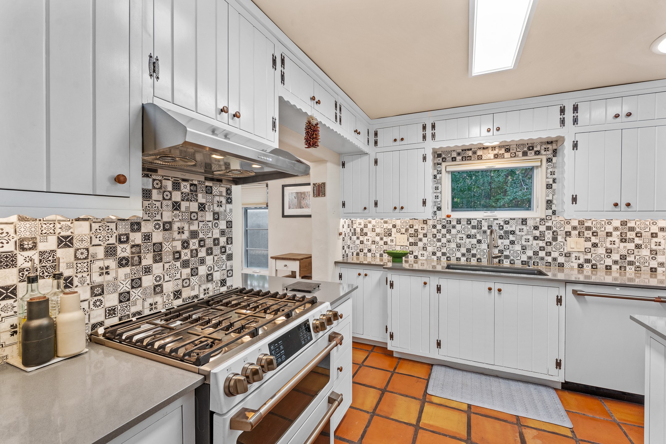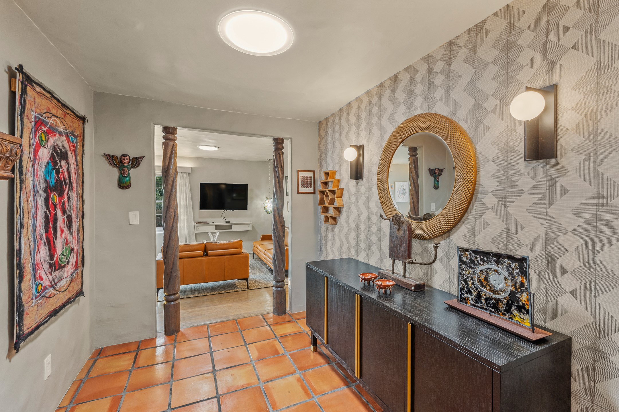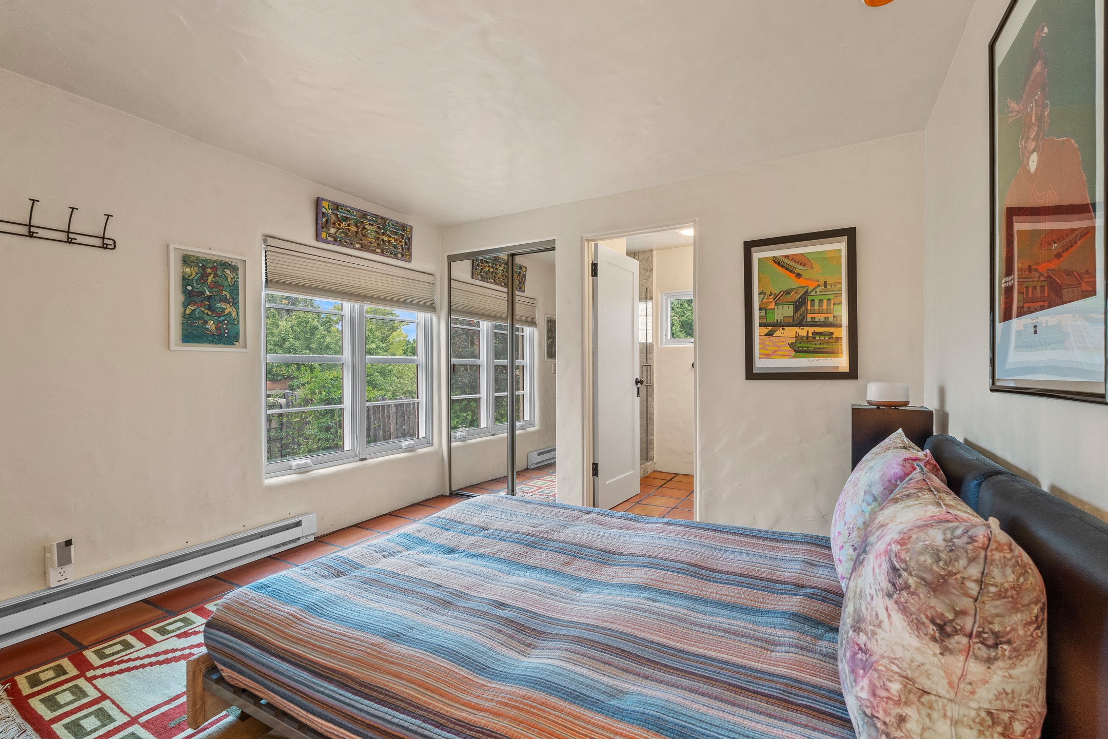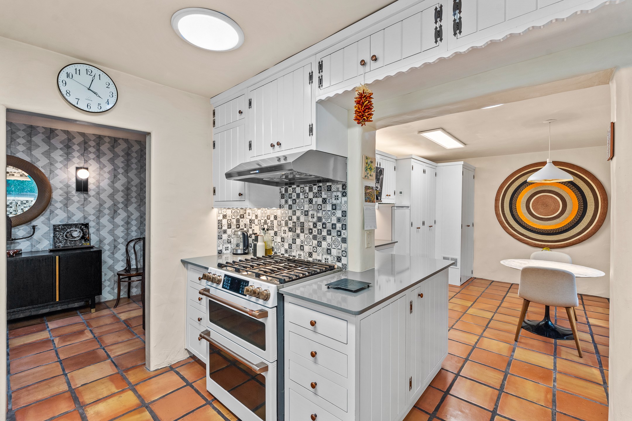 PENDING-- TAKING BACKUP OFFERS! Live like the artist that you are! This historic South Capitol home has had an incredible modern transformation! Lots of designer finishes!Originally built in 1949, this little piece of history has been thoughtfully remodeled to incorporate the old and the new -- a unique combination of mid-century and Santa Fe styles.Featuring 2 bedrooms plus an office, 4 baths, and not one - but two - artist studios, all on a gated lot within walking distance to downtown - this property has everything you could want in your Santa Fe dream home.The all-new kitchen was inspired by the original 1949 style, rebuilt with quartz counters, Caf brand appliances, including a new oven installed in 2025, and hand-made cottage style cabinetry.The primary suite, completely reimagined in 2024, will have you luxuriating in the Americh soaking tub, walk-in shower, and luxury Grohe and Kohler finishes.Need studio space? There are TWO artist's studios - one attached and one detached. The attached studio has skylights, industrial sink, and a private patio -- perfect for use as a creative or flex space. The new (2022) 480-square-foot studio has soaring ceilings plenty of light, a sink and a 1/2 bath.Outdoors, discover hidden native gardens curated by a landscape designer, the custom outdoor kitchen with built-in gas Coyote grill and and covered dining portal, and a sculptural rock fountain by artist Joshua Gannon. Other bonuses include custom uplighting throughout the property, George Nelson and Pablo Pardo pendant lighting, solar tube skylights, a custom-made wine cabinet with built in wine cooler,b new windows in 2020, an EV car charger, a new roof in 2020, and all new electric and plumbing (2020). Seven split HVAC units will keep you comfortable year-round.This is South Capitol redefined. A historic home, transformed for high-quality modern living -- don't miss this opportunity to live your artistic Santa Fe dream!