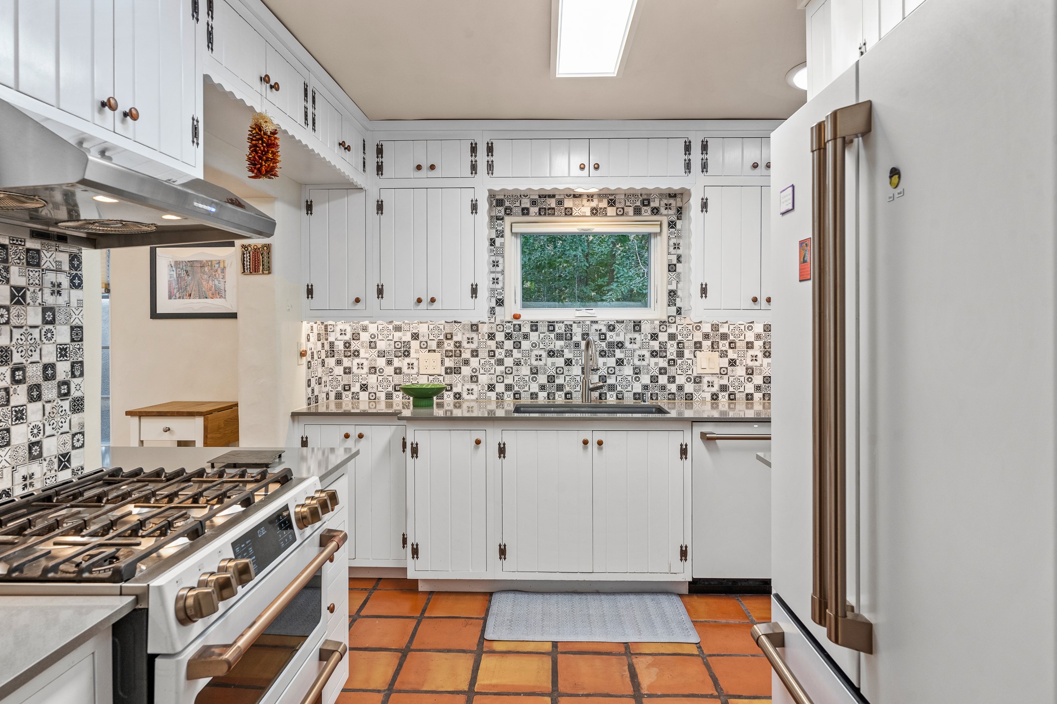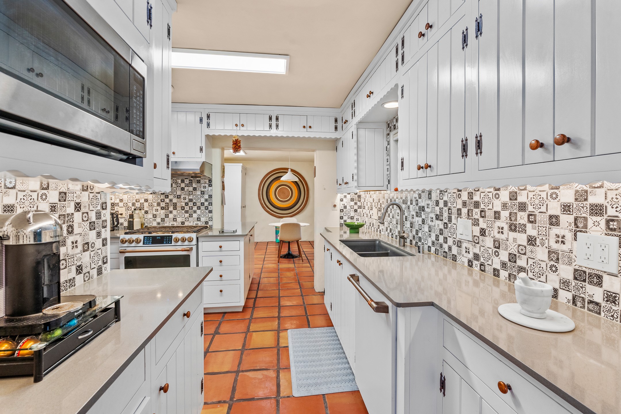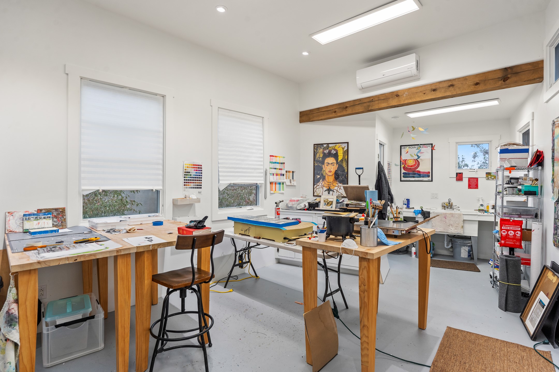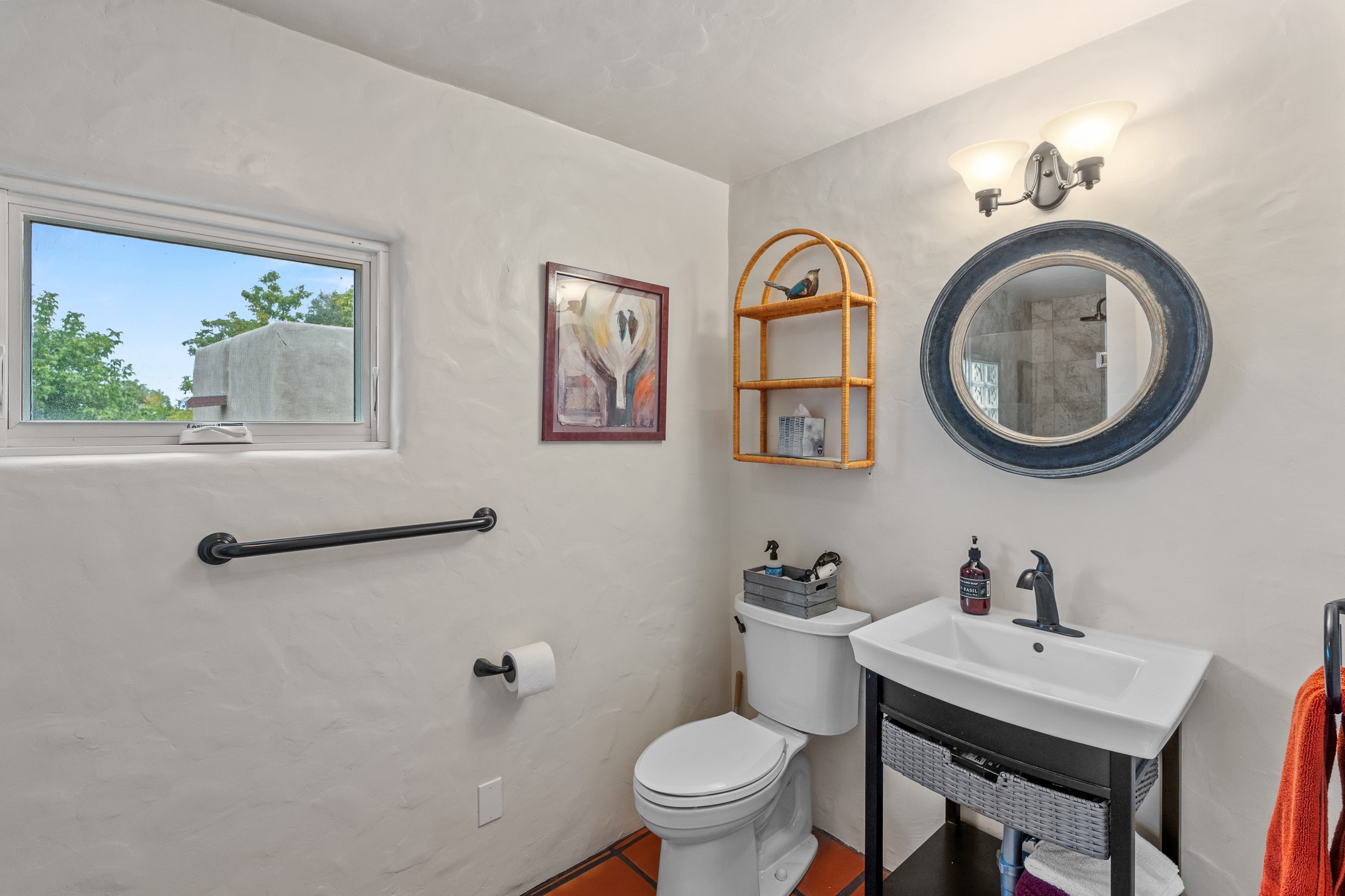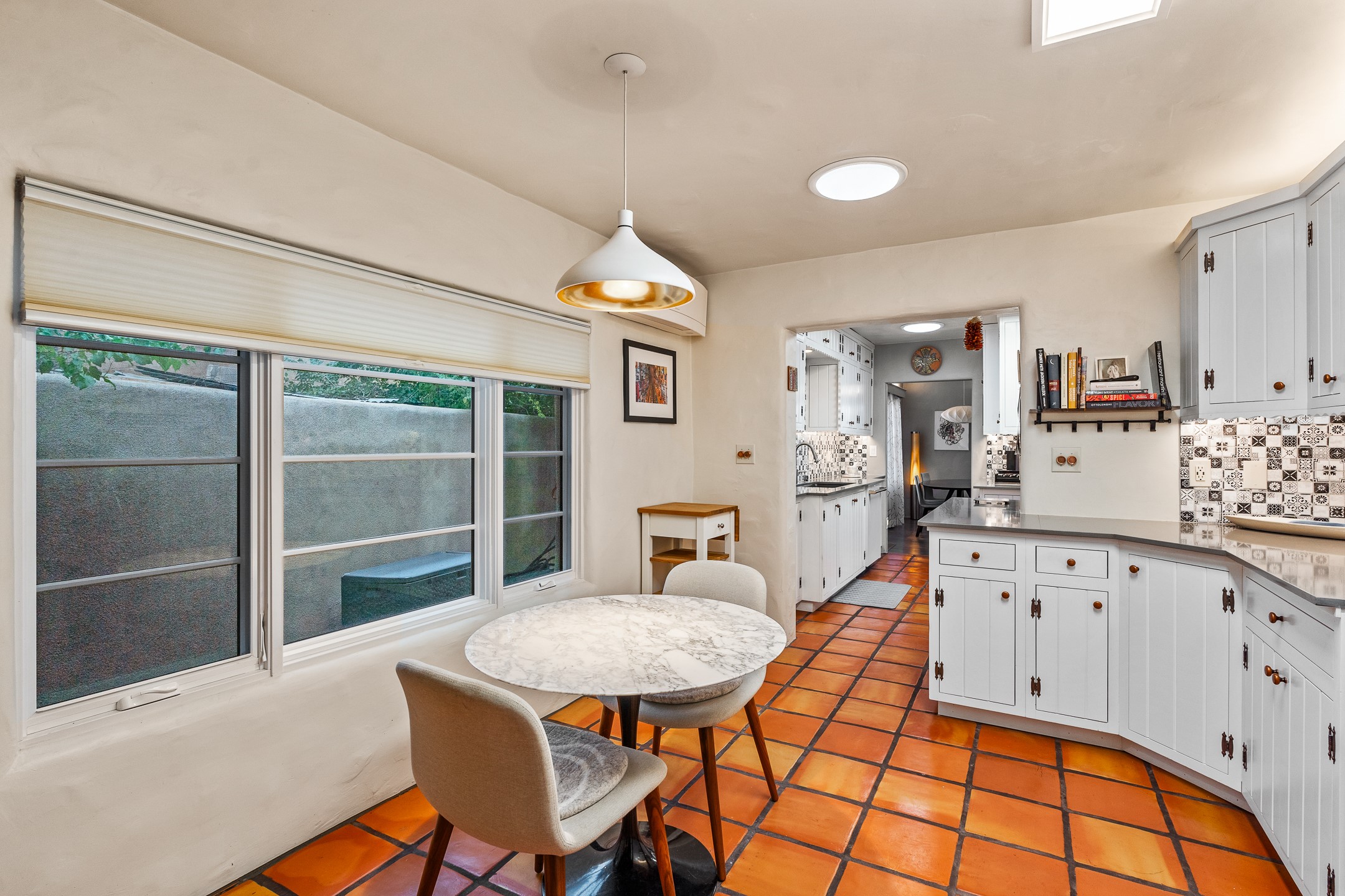 PENDING-- TAKING BACKUP OFFERS! Live like the artist that you are! This historic South Capitol home has had an incredible modern transformation! Lots of designer finishes!Originally built in 1949, this little piece of history has been thoughtfully remodeled to incorporate the old and the new -- a unique combination of mid-century and Santa Fe styles.Featuring 2 bedrooms plus an office, 4 baths, and not one - but two - artist studios, all on a gated lot within walking distance to downtown - this property has everything you could want in your Santa Fe dream home.The all-new kitchen was inspired by the original 1949 style, rebuilt with quartz counters, Caf brand appliances, including a new oven installed in 2025, and hand-made cottage style cabinetry.The primary suite, completely reimagined in 2024, will have you luxuriating in the Americh soaking tub, walk-in shower, and luxury Grohe and Kohler finishes.Need studio space? There are TWO artist's studios - one attached and one detached. The attached studio has skylights, industrial sink, and a private patio -- perfect for use as a creative or flex space. The new (2022) 480-square-foot studio has soaring ceilings plenty of light, a sink and a 1/2 bath.Outdoors, discover hidden native gardens curated by a landscape designer, the custom outdoor kitchen with built-in gas Coyote grill and and covered dining portal, and a sculptural rock fountain by artist Joshua Gannon. Other bonuses include custom uplighting throughout the property, George Nelson and Pablo Pardo pendant lighting, solar tube skylights, a custom-made wine cabinet with built in wine cooler,b new windows in 2020, an EV car charger, a new roof in 2020, and all new electric and plumbing (2020). Seven split HVAC units will keep you comfortable year-round.This is South Capitol redefined. A historic home, transformed for high-quality modern living -- don't miss this opportunity to live your artistic Santa Fe dream!