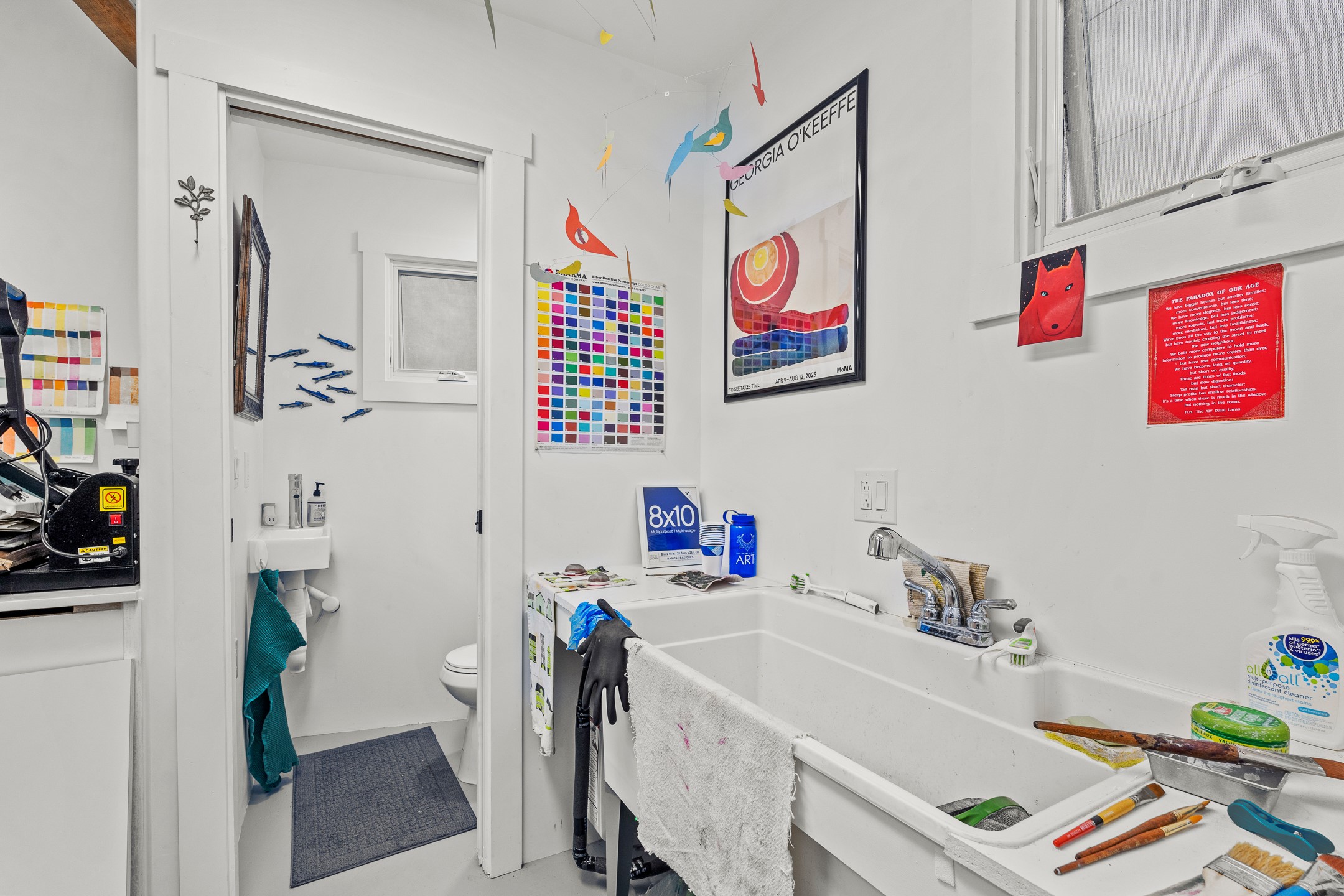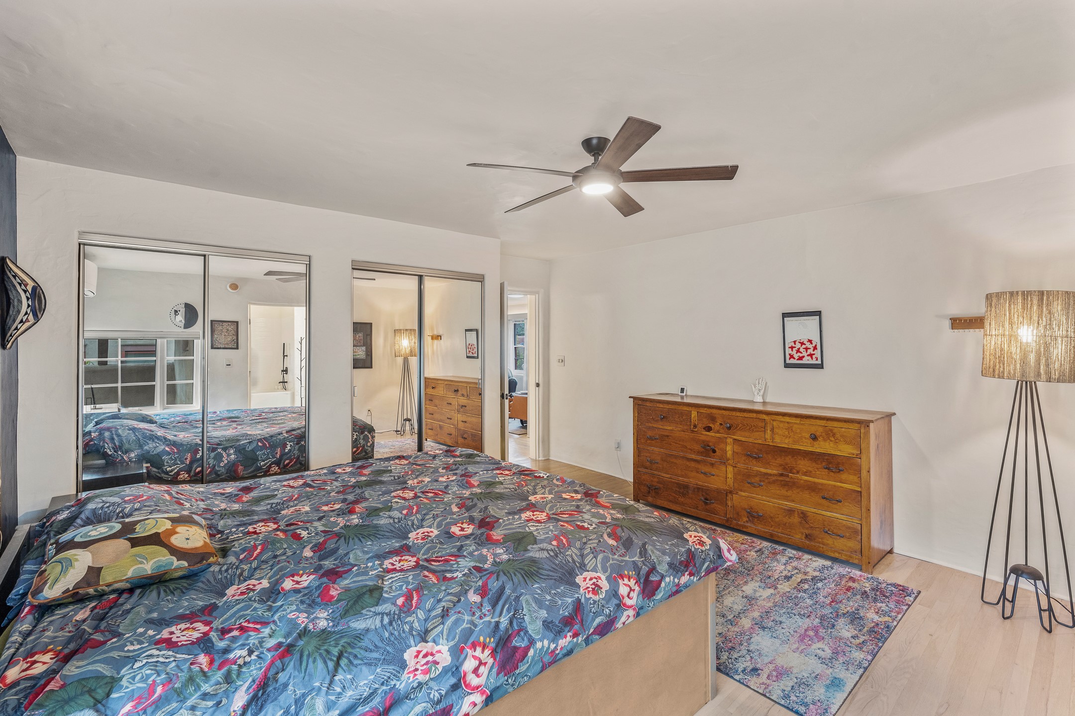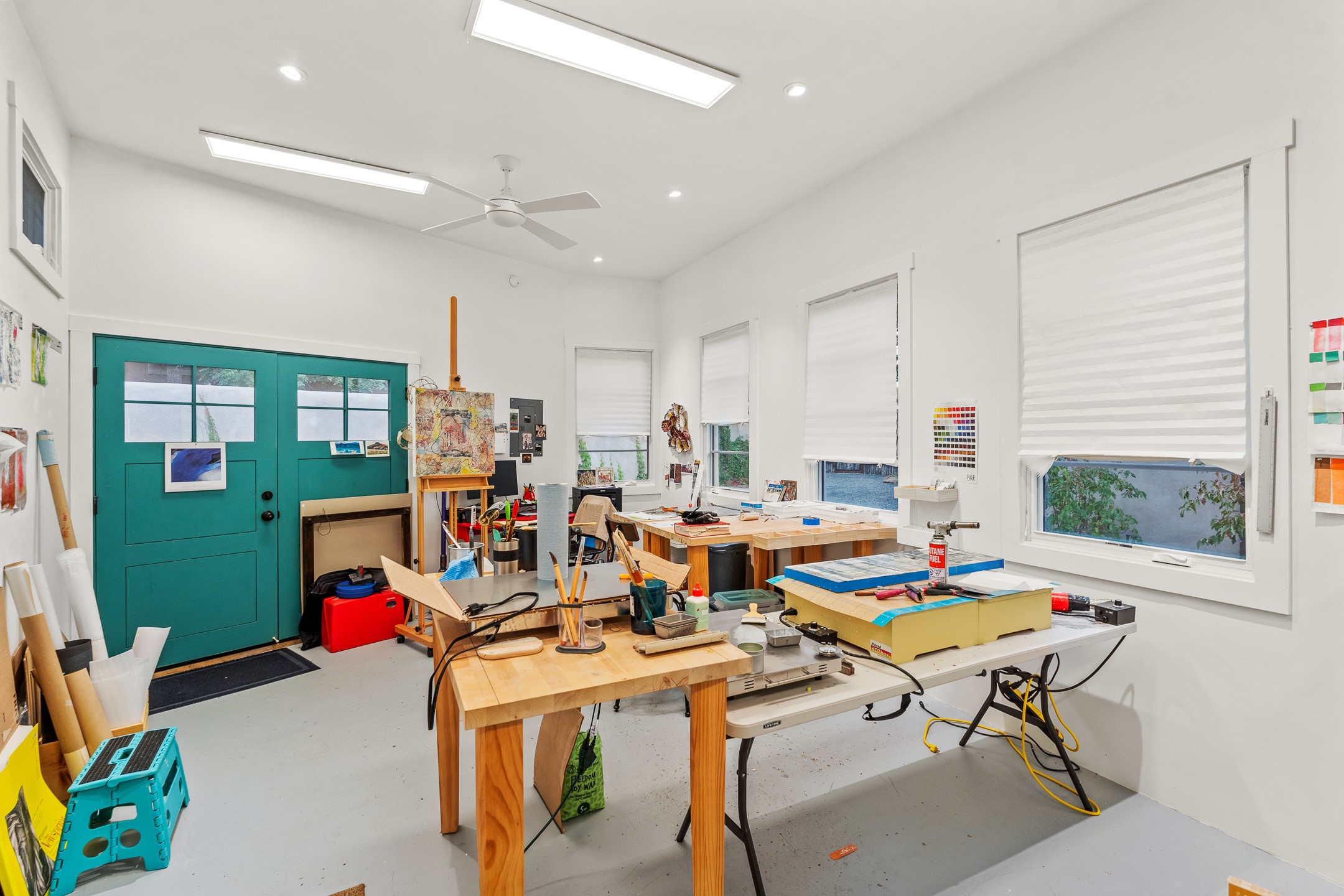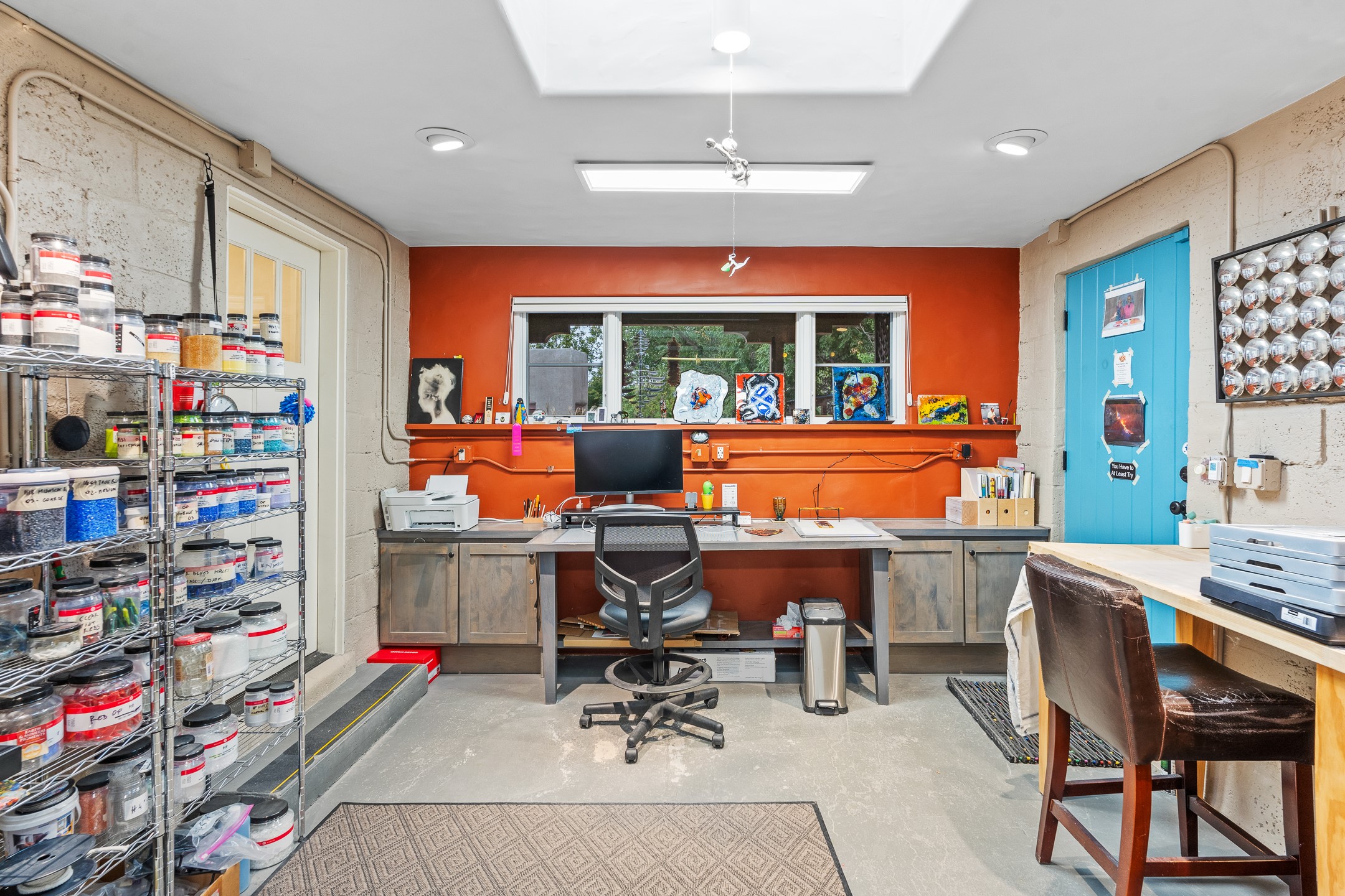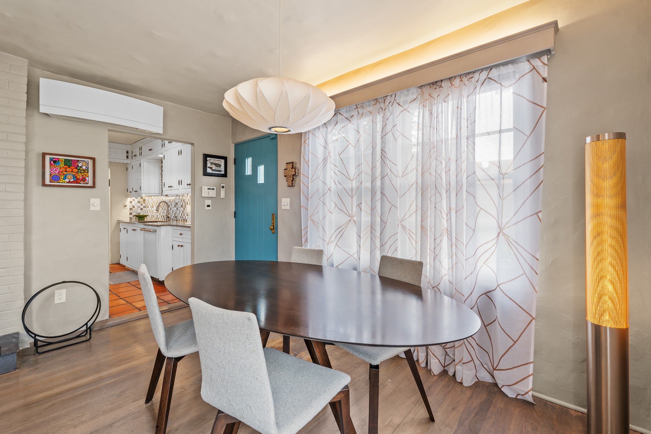 PENDING-- TAKING BACKUP OFFERS! Live like the artist that you are! This historic South Capitol home has had an incredible modern transformation! Lots of designer finishes!Originally built in 1949, this little piece of history has been thoughtfully remodeled to incorporate the old and the new -- a unique combination of mid-century and Santa Fe styles.Featuring 2 bedrooms plus an office, 4 baths, and not one - but two - artist studios, all on a gated lot within walking distance to downtown - this property has everything you could want in your Santa Fe dream home.The all-new kitchen was inspired by the original 1949 style, rebuilt with quartz counters, Caf brand appliances, including a new oven installed in 2025, and hand-made cottage style cabinetry.The primary suite, completely reimagined in 2024, will have you luxuriating in the Americh soaking tub, walk-in shower, and luxury Grohe and Kohler finishes.Need studio space? There are TWO artist's studios - one attached and one detached. The attached studio has skylights, industrial sink, and a private patio -- perfect for use as a creative or flex space. The new (2022) 480-square-foot studio has soaring ceilings plenty of light, a sink and a 1/2 bath.Outdoors, discover hidden native gardens curated by a landscape designer, the custom outdoor kitchen with built-in gas Coyote grill and and covered dining portal, and a sculptural rock fountain by artist Joshua Gannon. Other bonuses include custom uplighting throughout the property, George Nelson and Pablo Pardo pendant lighting, solar tube skylights, a custom-made wine cabinet with built in wine cooler,b new windows in 2020, an EV car charger, a new roof in 2020, and all new electric and plumbing (2020). Seven split HVAC units will keep you comfortable year-round.This is South Capitol redefined. A historic home, transformed for high-quality modern living -- don't miss this opportunity to live your artistic Santa Fe dream!