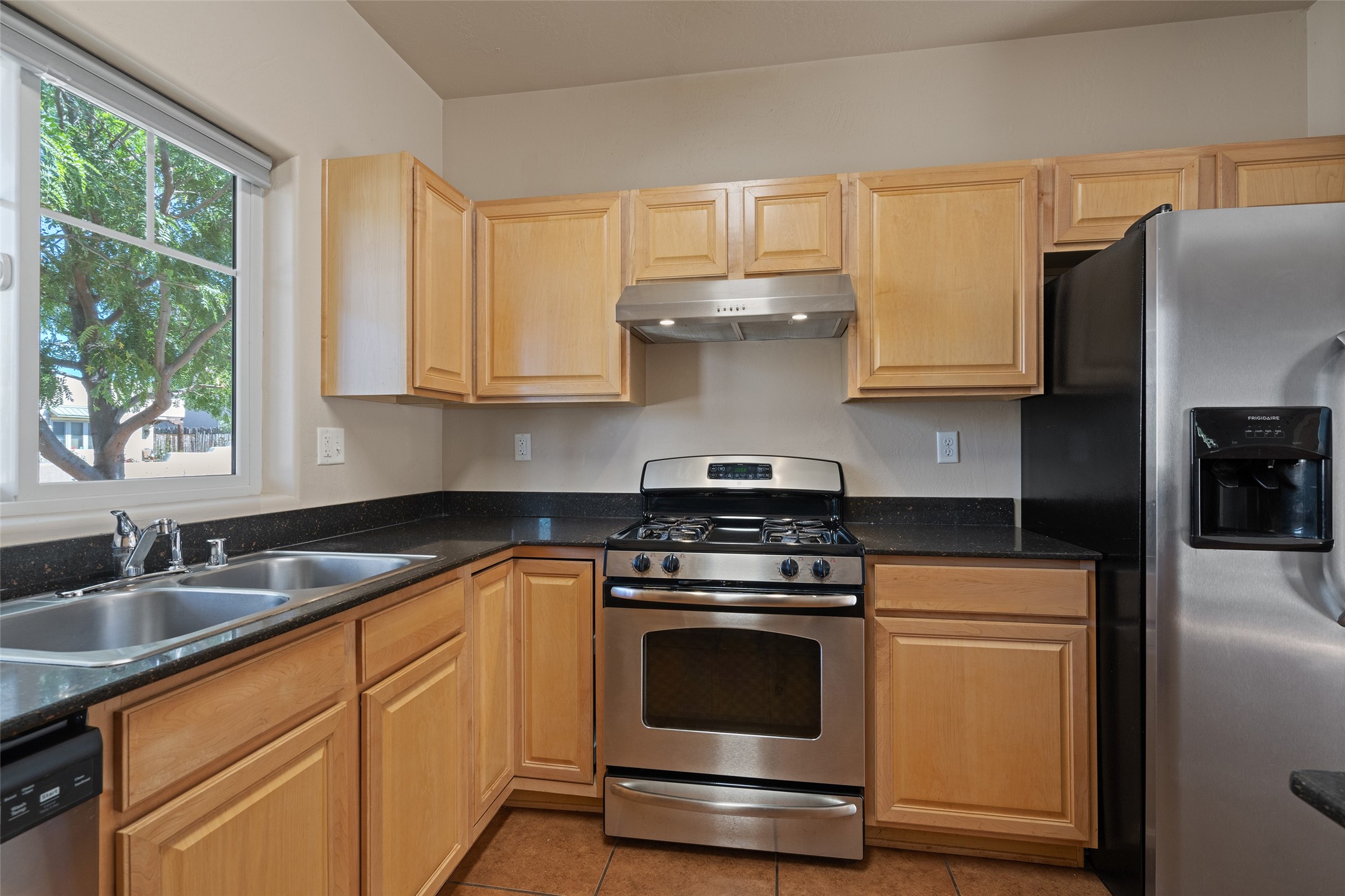 Why buy an ordinary home when you can buy this exceptionally built Craftsman style GREEN home! This LEED Gold certified home includes grid tied photovoltaic, tankless H2O, engineered construction, comfort guarantee, EPA indoor Air-Plus certified, Hepa filter ventilation, Energy Star appliances & Andersen windows, R-21 walls & R-50 roof, eco-friendly countertops, upgraded tile, cabinets, doors & trim and nine-foot ceilings. Owner still receives checks from PNM! Abundance of yard space, coyote fencing all around property. Long hallways for your art displays, a desk area off kitchen/dining and plenty of living/entertaining space. Enjoy the diverse architecture of Oshara Village and Pantry Dos a few blocks away. Community College, shopping and restaurants all around! Home is vacant, furnishings are digitally created.