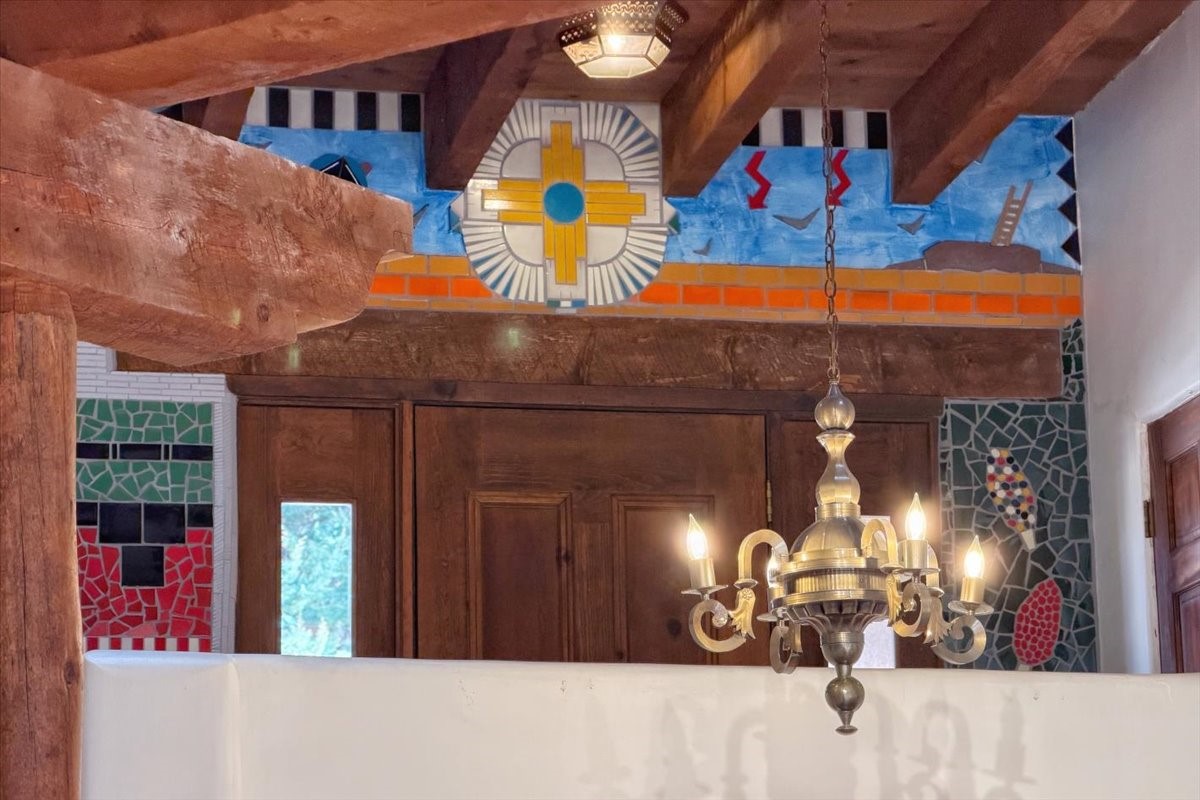 Rare opportunity to claim your slice of historic Eastside magic on Santa Fe's treasured Johnson Lane. The perfect pied--terre or a comfortable full-time residence, this beautifully cared for 3BD-2BA home (with two-car garage!) masterfully combines function with Southwest elegance. Finishes include brick and wood floors throughout, wood beams, and decorative tile work in numerous spaces. Down a modest flight of stairs, the living room offers high ceilings, bountiful natural light, and a wood-burning kiva fireplace. Outside, the fenced-in backyard offers shade from mature trees, low-fuss tiered garden beds (drip irrigation in-place), and an oversized flagstone patio for dining and outdoor leisure. The kitchen offers charm of its own--equipped with Fisher and Paykel appliances (2023), open shelving, and a custom Hopi mosaic backsplash behind the range installed by an indigenous artist. Upstairs, the primary suite is a retreat of its own with a cozy wood-burning fireplace and private outdoor balcony. Recently installed mini-splits throughout keep the home cool on hot summer days, and providesupplemental heating to the existing forced-air heating system in the colder months. Meticulously maintained, with recent roof replacement (2020), new stucco (2025), upgraded 200 Amp electrical service (2023), and many more fantastic improvements for a future homeowner to enjoy immediately. One of the most storied, quiet, streets on Santa Fe's historic Eastside, Johnson Lane offers a welcoming neighborhood, close proximity to coffee shops, restaurants, neighborhood grocery stores, and an easy stroll to famed Canyon Road.