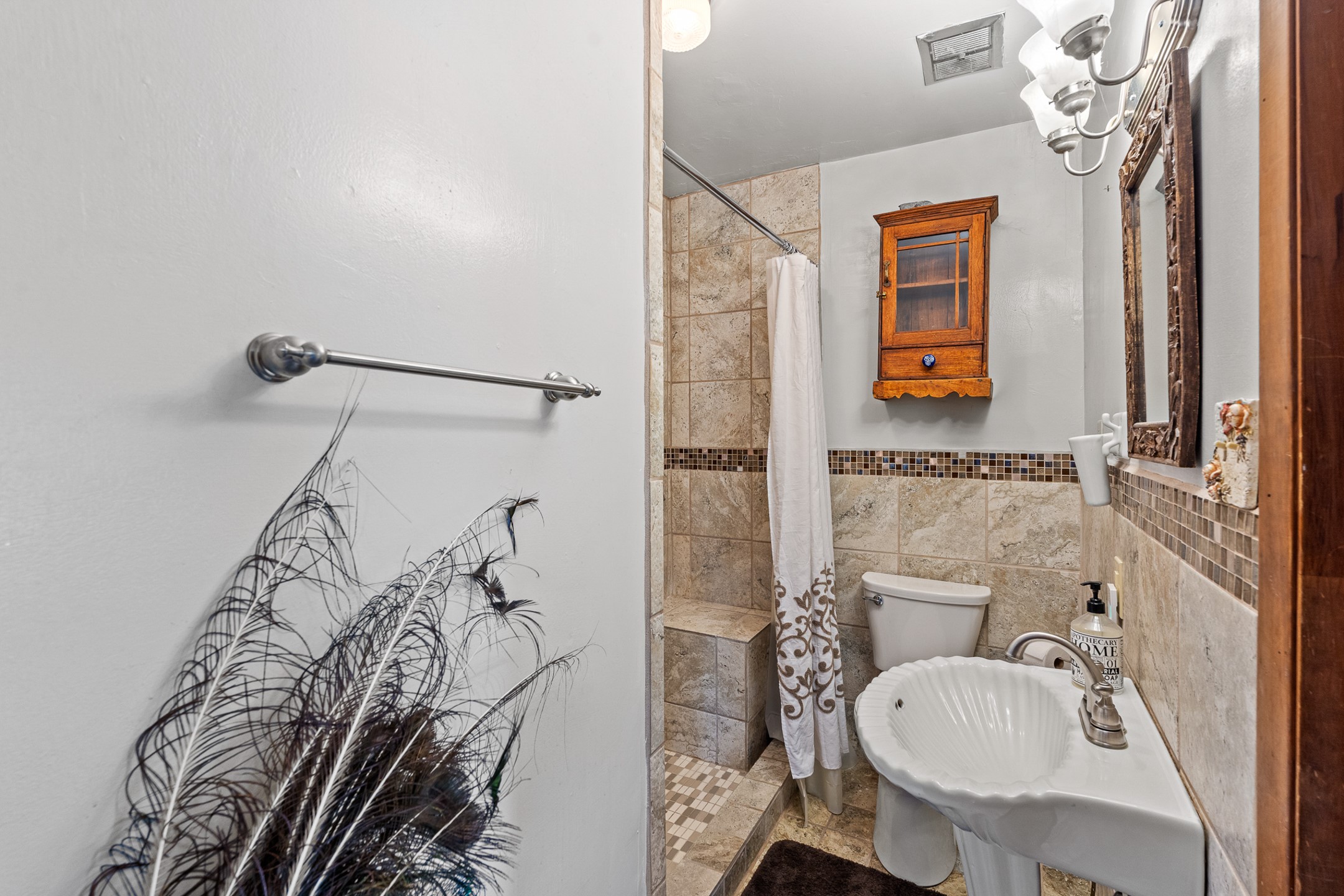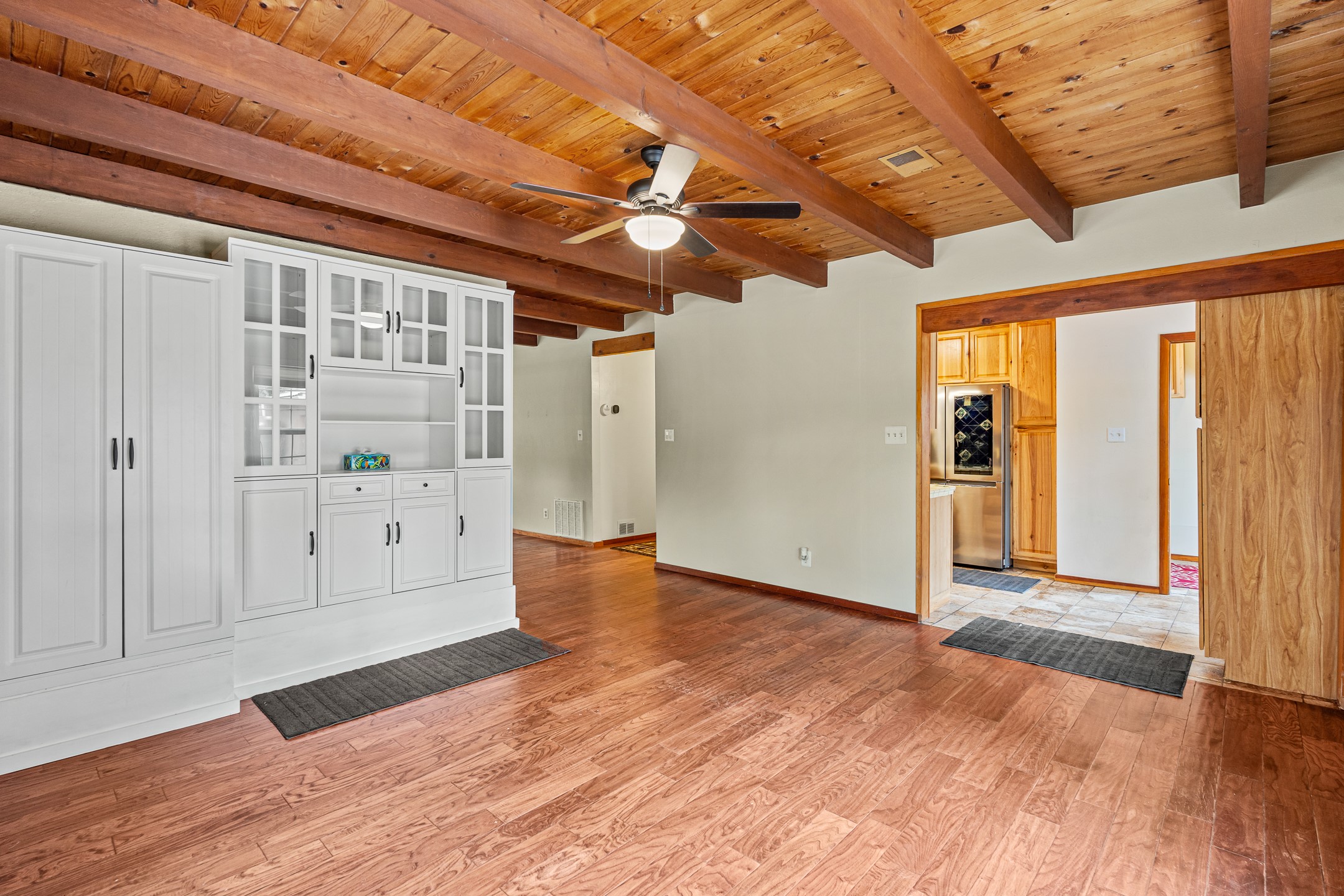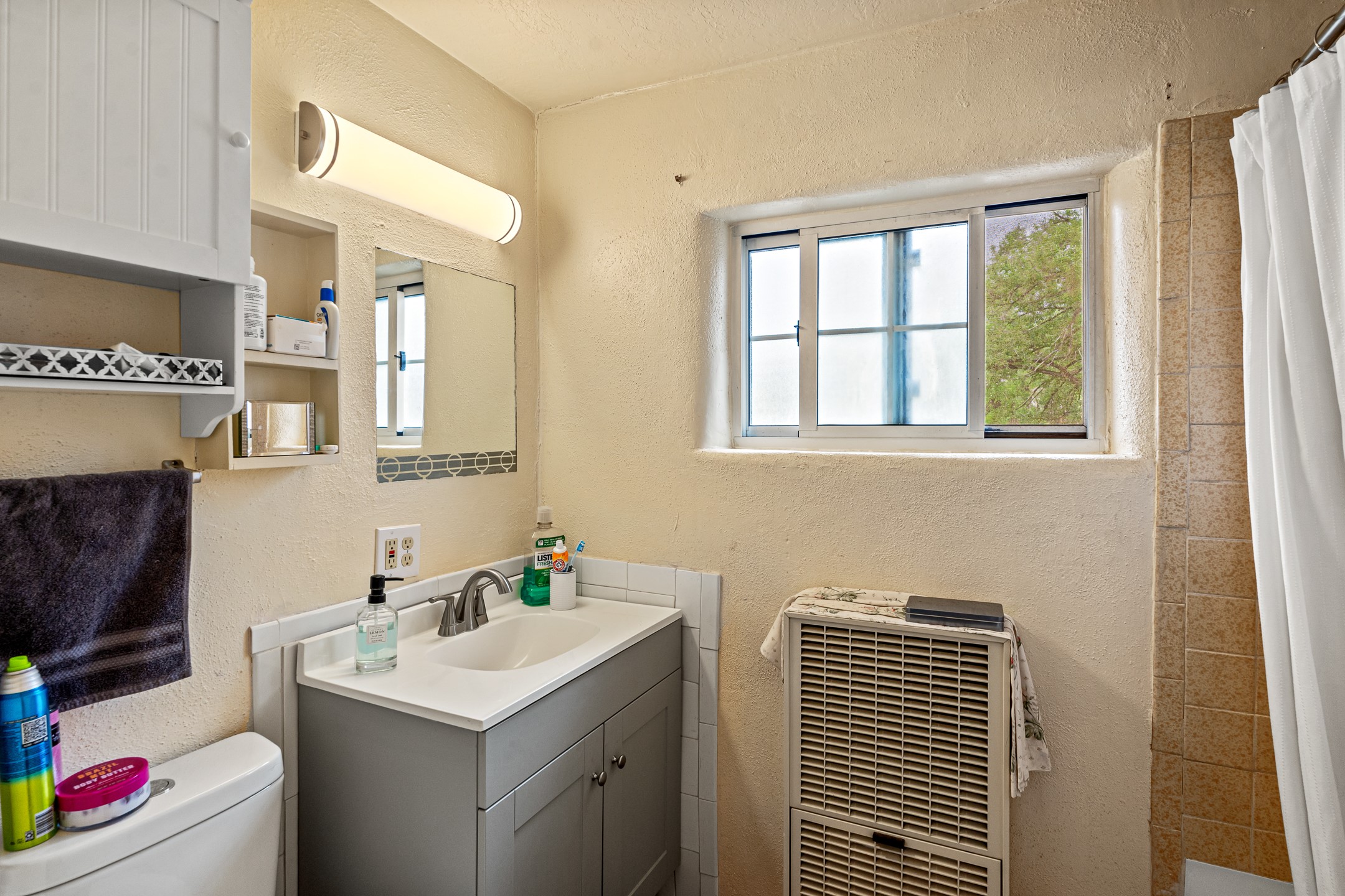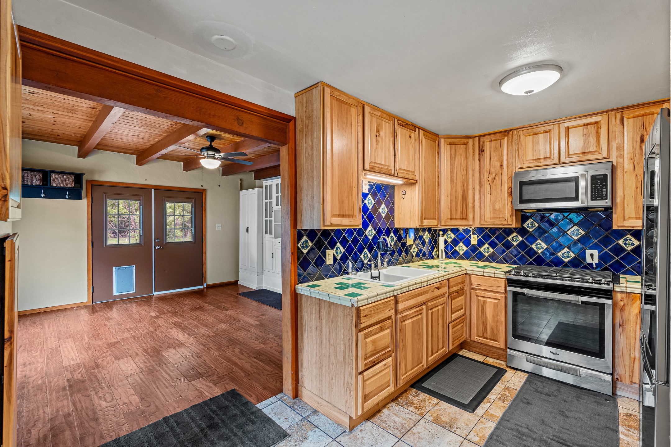 Unique Namb property featuring a 3-bed, 1 full & bath main home plus a private guest house. Owned solar conveys with sale, along with forced-air heating and central A/C for year-round comfort. Main house offers a cozy wood-burning stove and spacious layout. Guest house includes a room, kitchenette, full bath, and traditional kiva fireplace--perfect for guests, rental income, or multigenerational living. Enjoy Southwestern charm with modern efficiency in a serene setting.
