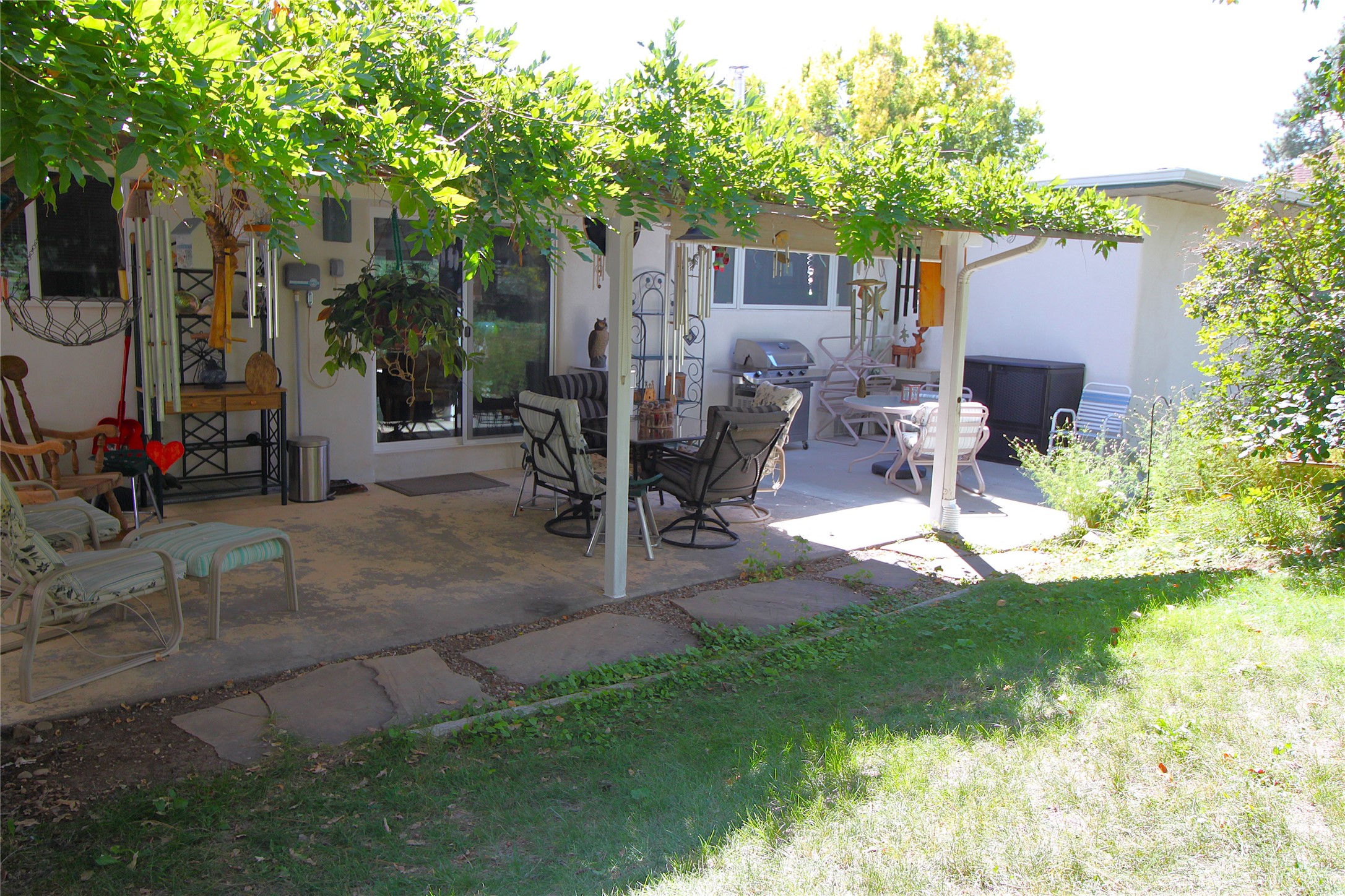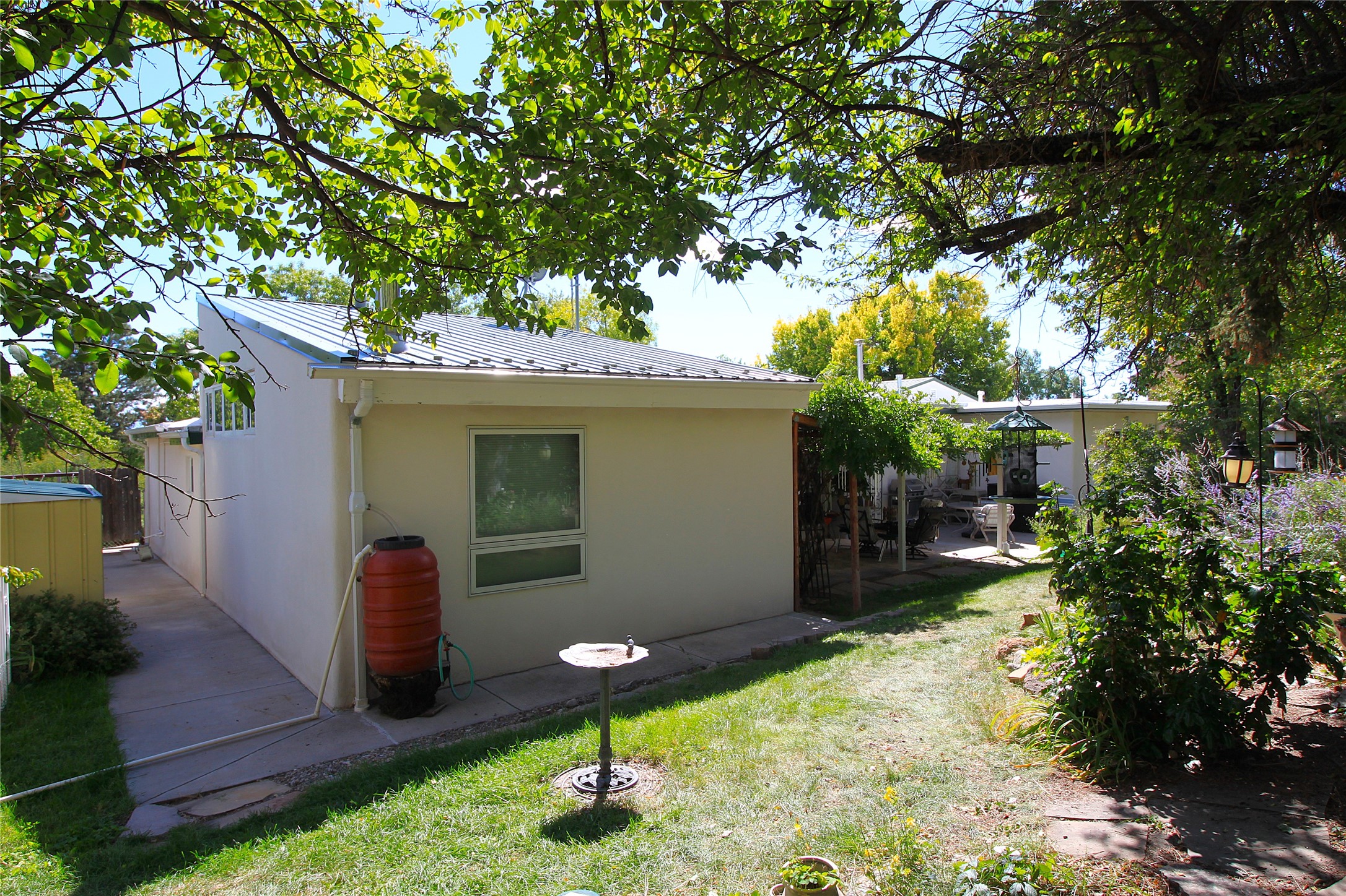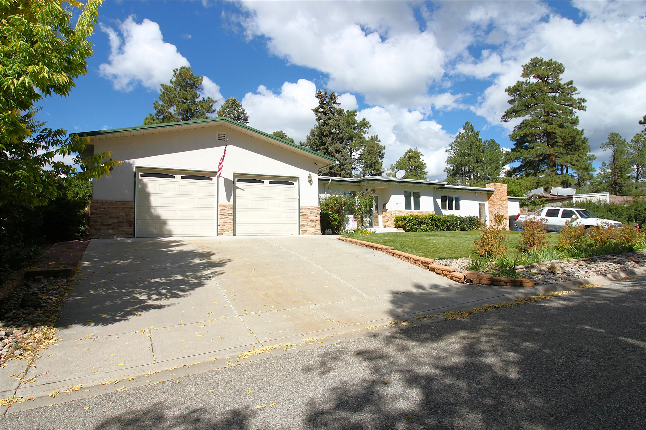 Oversized Garage + Historic Charm in the Western AreaThis 3-bedroom, 2-bath home in the sought-after Western Area blends historic character with thoughtful updates and generous living spaces. Inside, you'll enjoy two living areas, two dining areas, and abundant storage, with rich wood floors and wood ceilings adding warmth throughout. The spacious primary suite is privately located at the back of the home, offering passive cooling, natural light, a walk-in closet, and an adjoining flex room currently used as an office. Two additional bedrooms and a full bath are situated on the opposite side of the home for added privacy. The original carport was enclosed and now functions as a large laundry and storage room, with potential to serve as an office or game room. The front-facing kitchen provides mountain views across the Western Area, while the beautifully landscaped backyard creates a private retreat with mature fruit trees and flowering plants--perfect for entertaining or relaxing. The oversized, insulated two-car garage boasts 8-foot doors, attic storage, and plenty of space for large vehicles plus a workbench. Additional upgrades include added insulation under the stucco, Pella windows, a convertible storm/screen door, tankless hot water heater, and gutter guards. Steeped in history as the former home of Harold Agnew, this property offers a unique blend of charm, comfort, and convenience--just minutes from LANL, Los Alamos Medical Center, parks, and trails. Schedule your showing today!