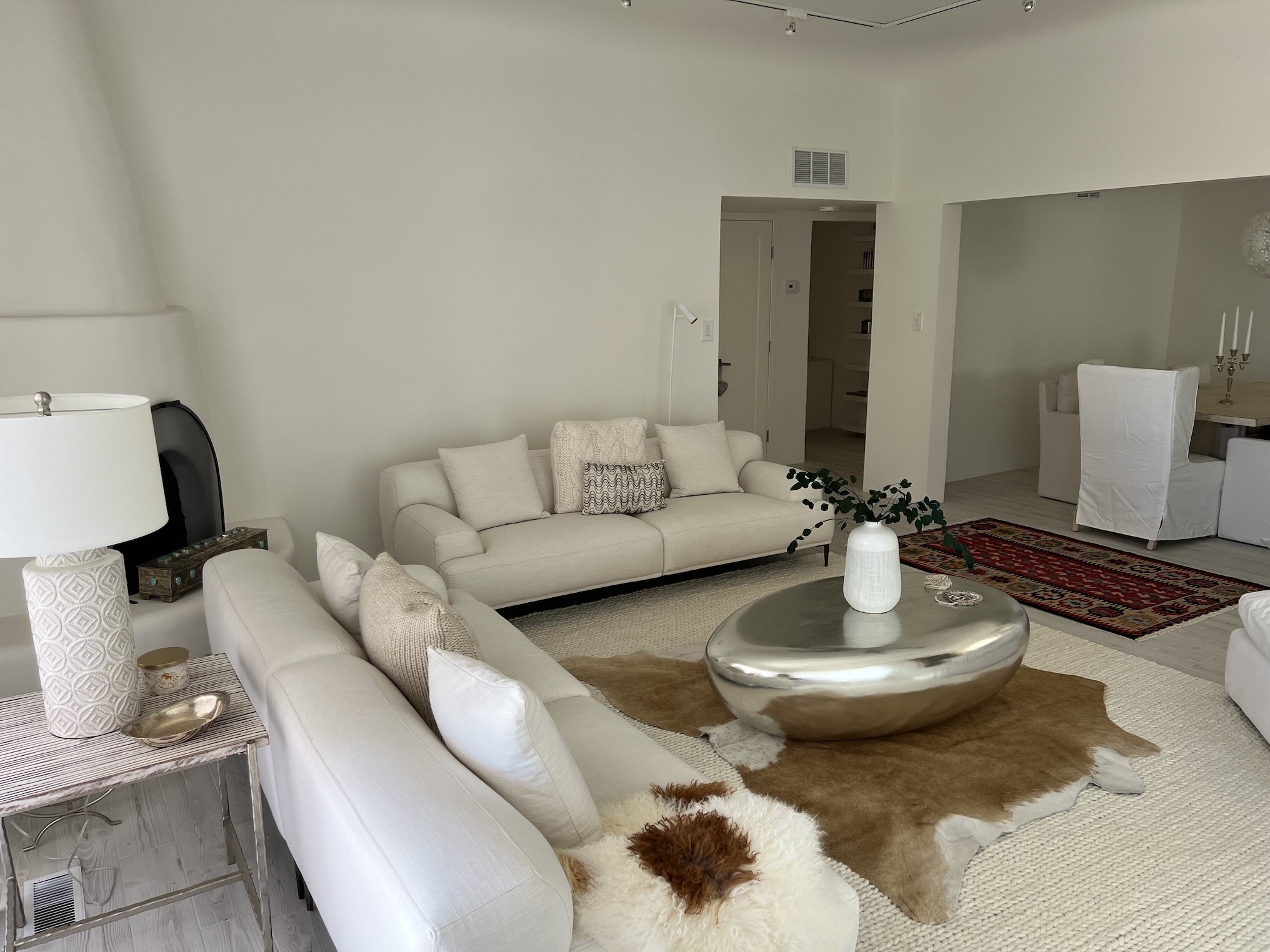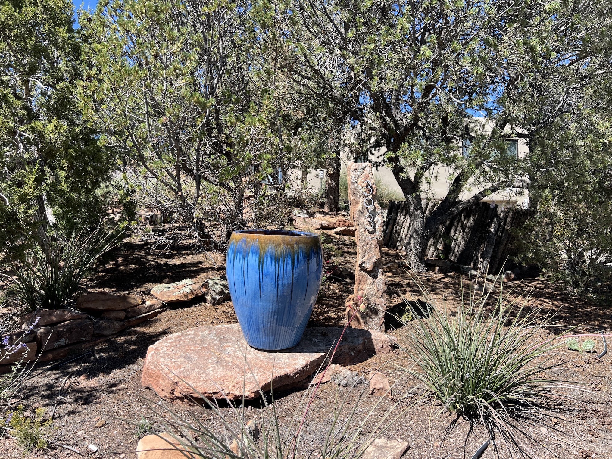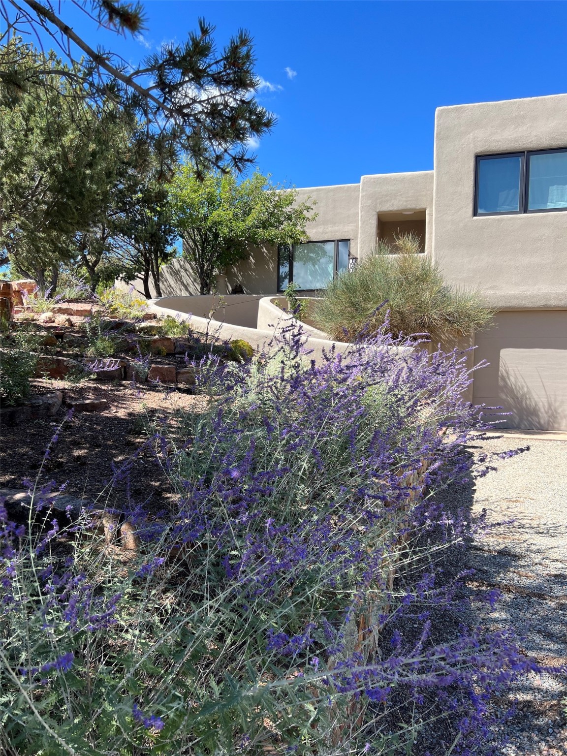NORTHSIDE VIEW HOME! Gorgeous Sangre De Cristo Mountain views, walking distance to The Plaza and pristine condition! To enter, go up a grand staircase to the spacious single-level home, once inside, this 2,174 square foot townhome has been completely restored, inside and out in 2018 and 2022. Improvements include a gourmet kitchen, beautifully updated bathrooms, new tile floors throughout, fresh paint, lighting, duct work, new roof in 2018 (McPartlon with 12-year warranty), canales, boiler and water heater. On the exterior there is hardscaping with beautiful stone and gabion retaining walls that are planted with lovely lace vines, a retractable awning on one patio. The flow in the home enjoys a spacious kitchen with a casual living area, formal dining room, large living room with kiva fireplace, two or three bedrooms (a den study otherwise) and two baths. The principal suite also has a kiva fireplace with en-suite bath and closet. Other systems in the home are forced air heat with refrigerated air conditioning for year-round comfort and a security system. The two-car garage on the lower level has a large storage room and direct entry into the home. This property is being sold in "as is" condition. Don't miss this magnificent home, in "turn-key" condition, please call today for a private showing.