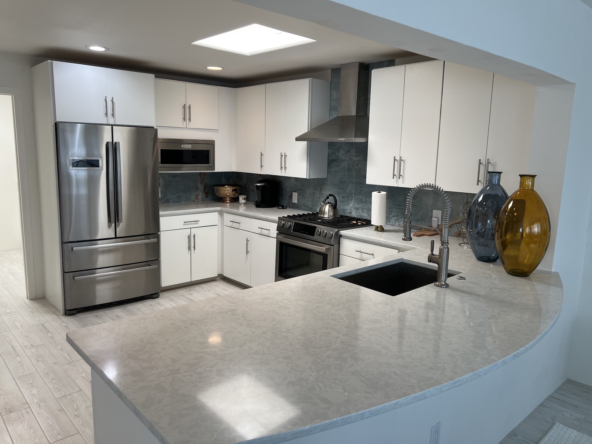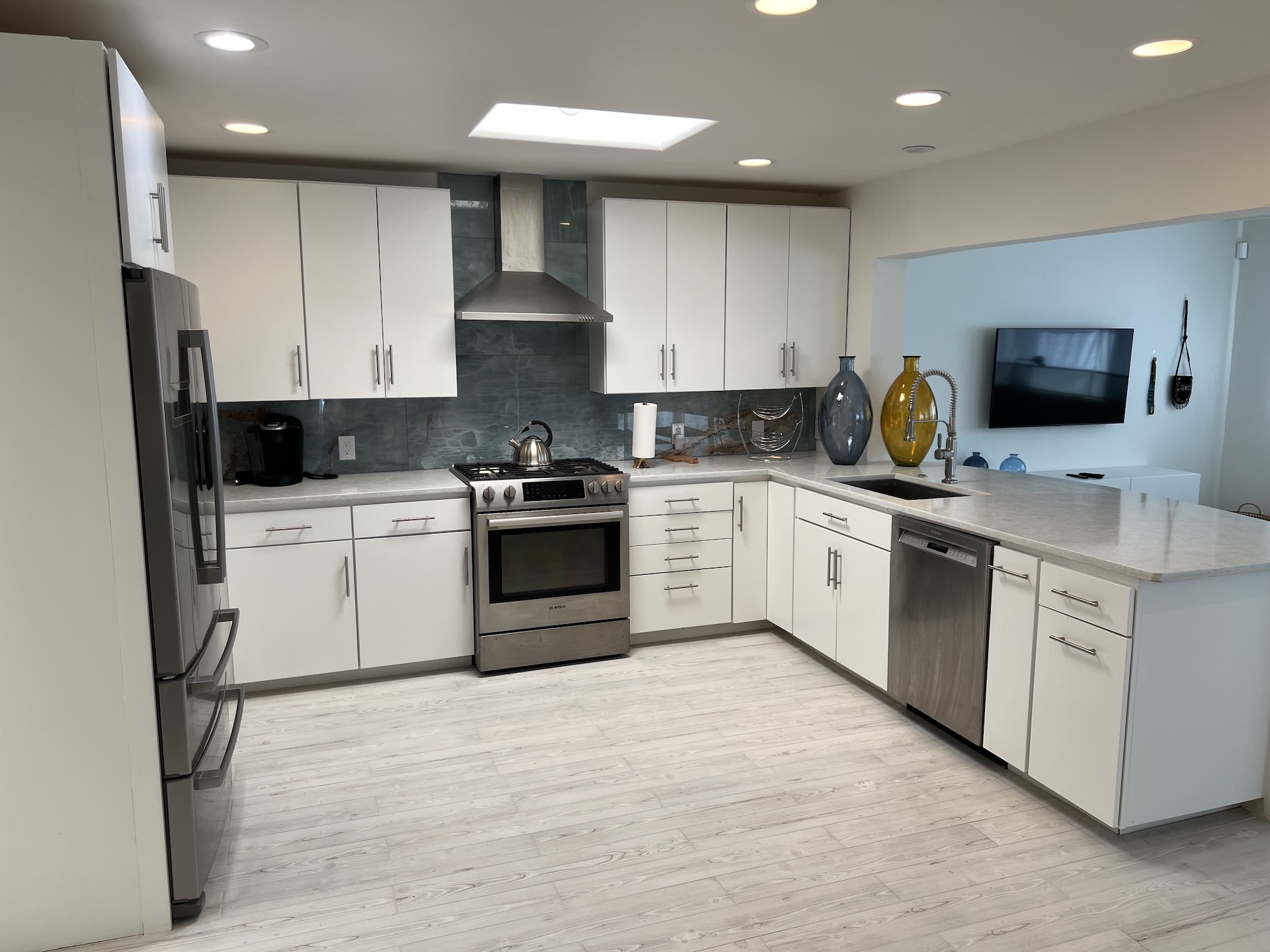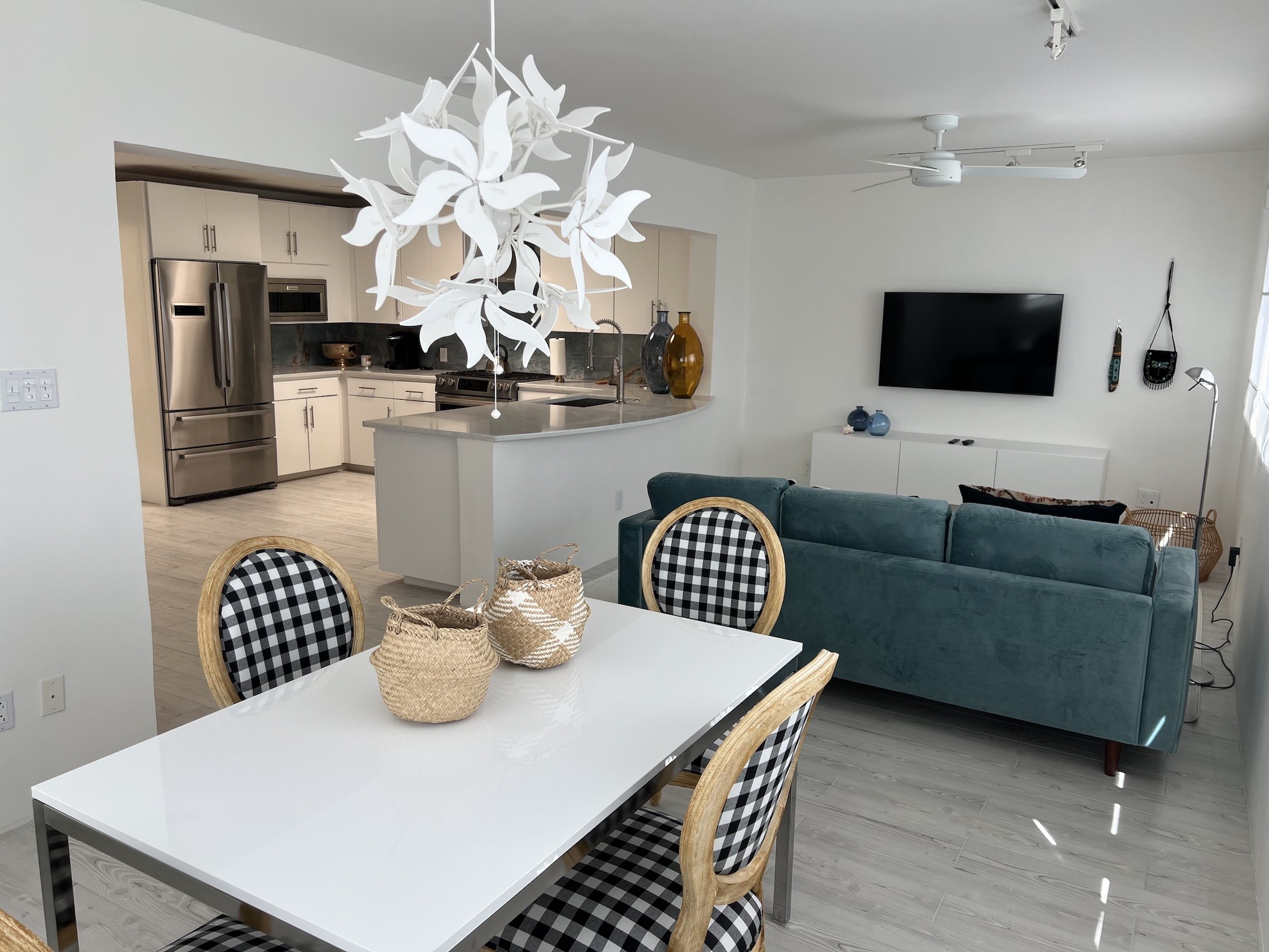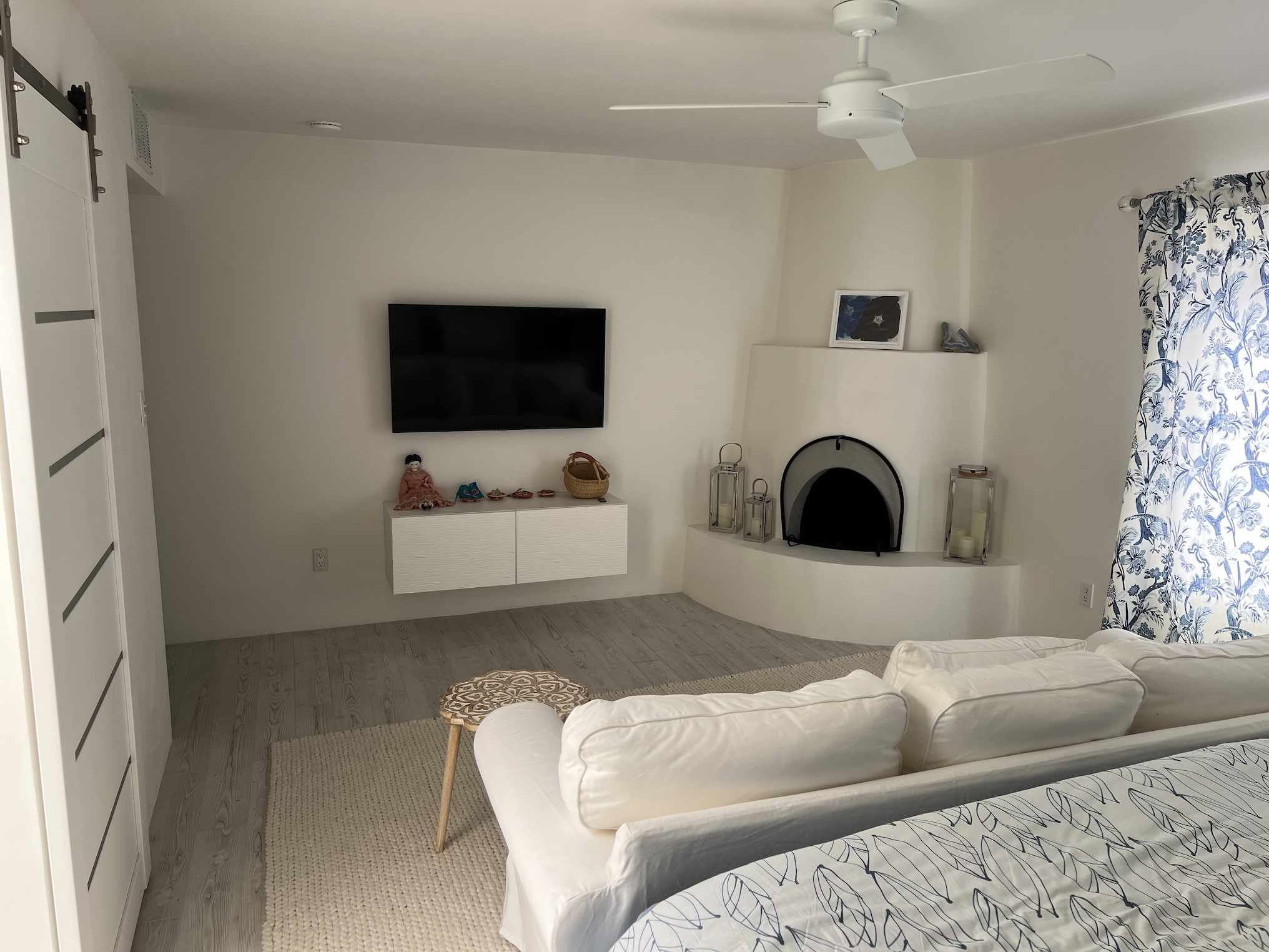 NORTHSIDE VIEW HOME! Gorgeous Sangre De Cristo Mountain views, walking distance to The Plaza and pristine condition! To enter, go up a grand staircase to the spacious single-level home, once inside, this 2,174 square foot townhome has been completely restored, inside and out in 2018 and 2022. Improvements include a gourmet kitchen, beautifully updated bathrooms, new tile floors throughout, fresh paint, lighting, duct work, new roof in 2018 (McPartlon with 12-year warranty), canales, boiler and water heater. On the exterior there is hardscaping with beautiful stone and gabion retaining walls that are planted with lovely lace vines, a retractable awning on one patio. The flow in the home enjoys a spacious kitchen with a casual living area, formal dining room, large living room with kiva fireplace, two or three bedrooms (a den study otherwise) and two baths. The principal suite also has a kiva fireplace with en-suite bath and closet. Other systems in the home are forced air heat with refrigerated air conditioning for year-round comfort and a security system. The two-car garage on the lower level has a large storage room and direct entry into the home. This property is being sold in "as is" condition. Don't miss this magnificent home, in "turn-key" condition, please call today for a private showing.