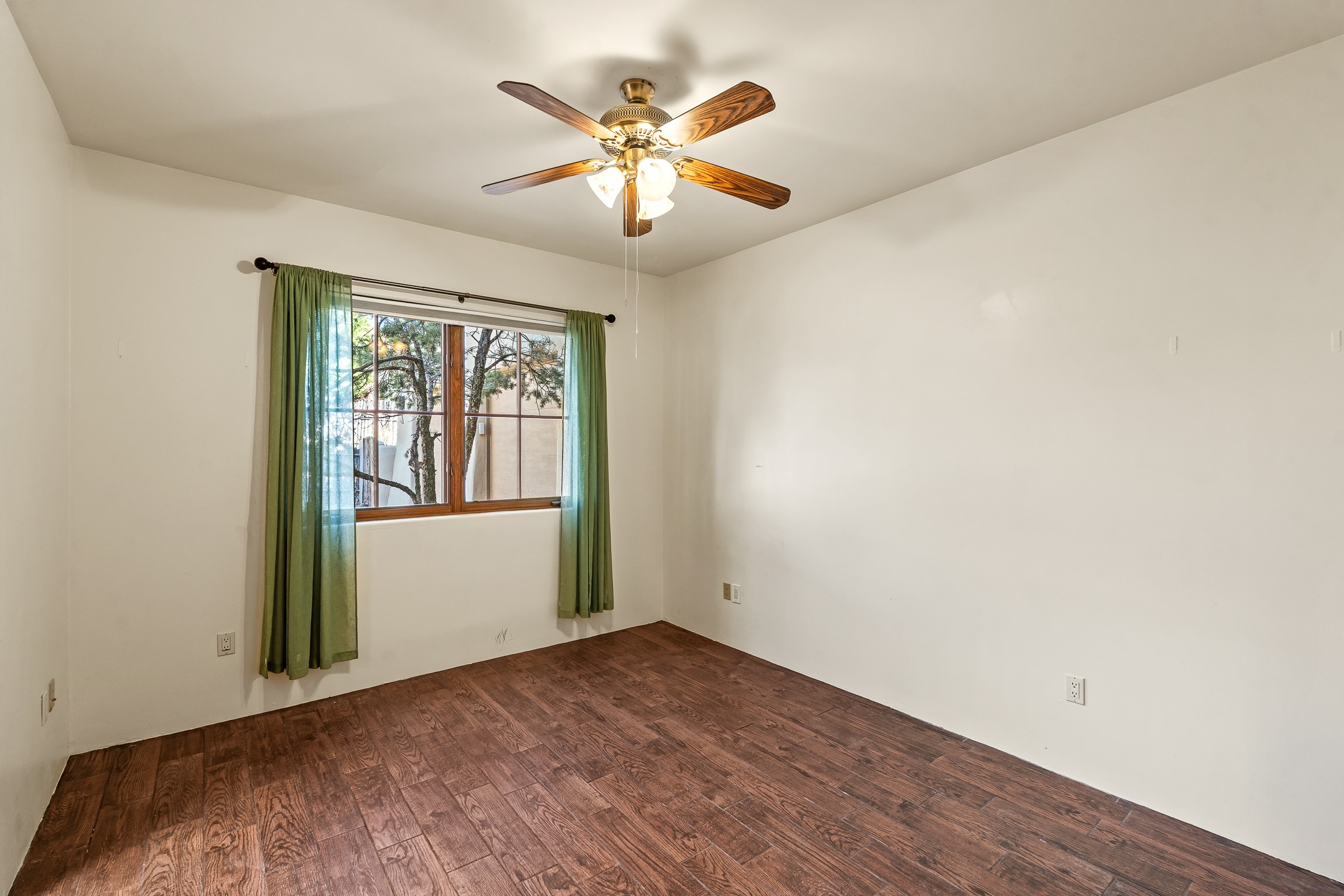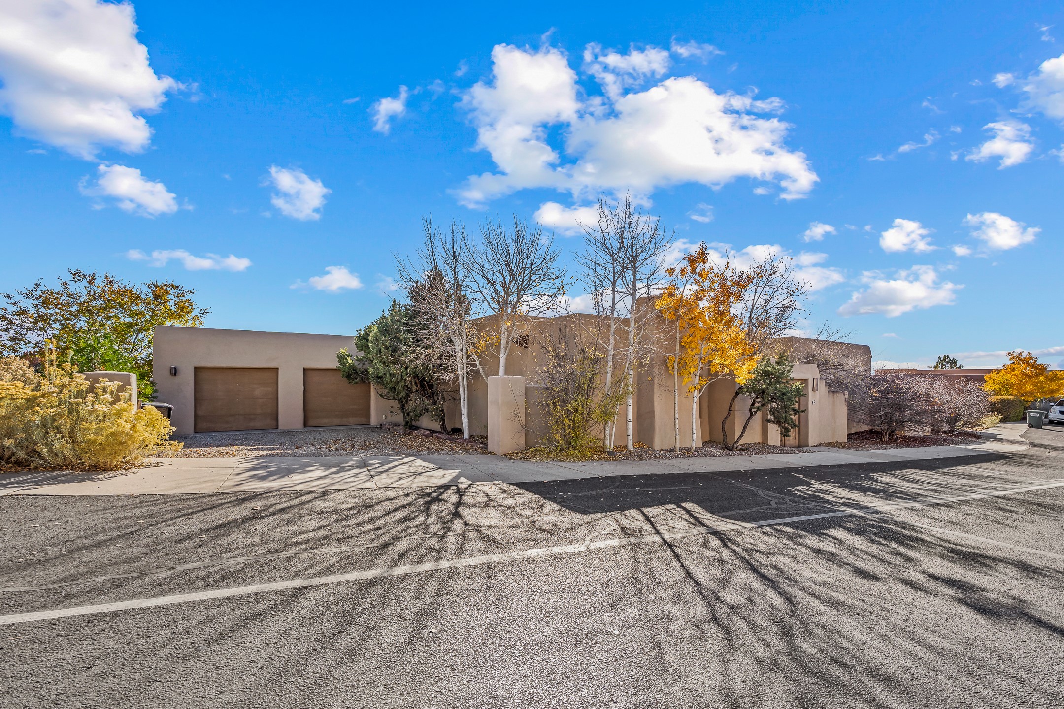 42 E. Va Plaza Nueva offers a warm embrace of classic Santa Fe style within the highly desirable community of Aldea de Santa Fe. This 2,392-square-foot residence features 3 bedrooms, 2.5 baths, and a 2-car garage, blending timeless craftsmanship with inviting indoor-outdoor living.Enter through a private front courtyard and step into a home rich with Old World charm. Brick and tile floors run throughout, complementing the carved wood beams, vigas, and hand-troweled plaster walls in the main living areas. The expansive living room feels gracious and grounded, ideal for quiet evenings or elegant entertaining.The third bedroom, with its own separate entrance and cozy fireplace, offers versatility--perfect as a guest suite or a comfortable home office with added privacy.The kitchen is appointed with wood cabinetry, a gas cooktop and vent hood, double wall ovens, and granite counters accented by tile surrounds. A cozy breakfast nook creates an inviting place to savor your morning coffee.Designed for Santa Fe's coveted lifestyle, the home's outdoor living and dining spaces are surrounded by mature landscaping and back up to open space, creating a serene setting with views to the Sandias to enjoy year-round.Located in desirable Aldea de Santa Fe, a vibrant village-style community, residents enjoy 13 miles of walking trails, extensive shared open space, a community center, and tennis, basketball, and bocce courts. Neighborhood life is enhanced further with annual art tours, community garage sales, and a variety of active clubs--participate as much or as little as you like.This home embodies the warmth, texture, and tradition of Old Santa Fe while offering the amenities of a welcoming, engaged community.
