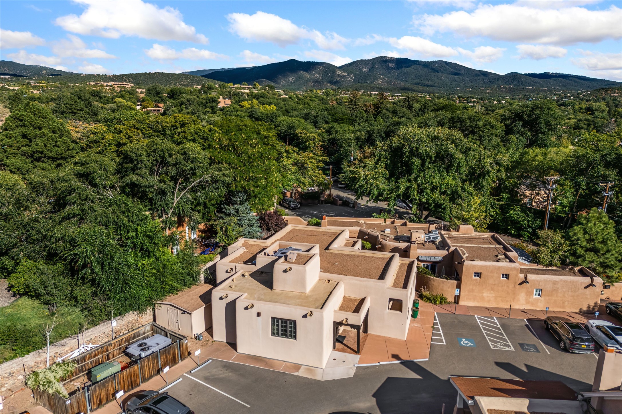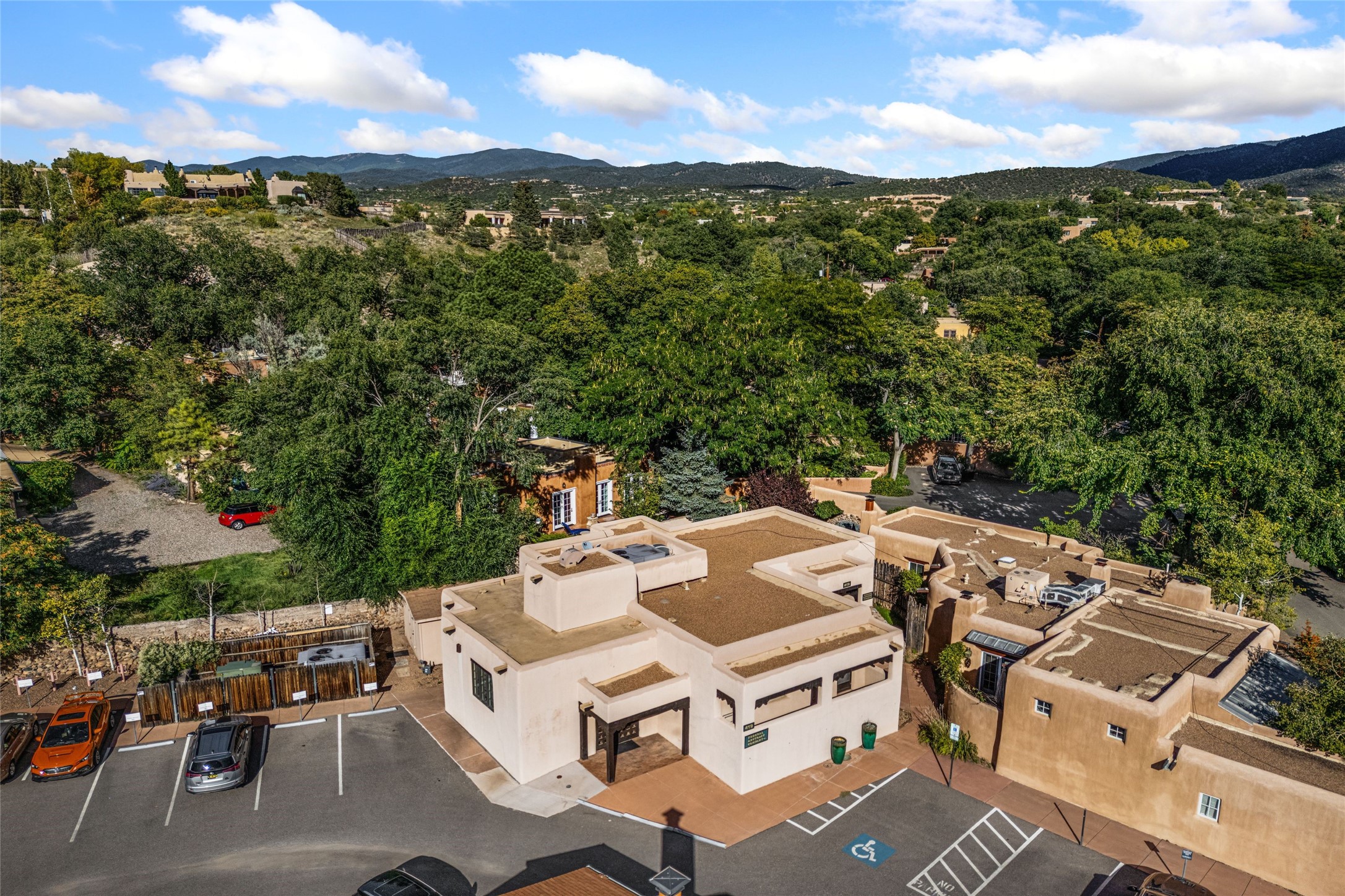 Excellent opportunity to own a mixed-use building on E. Palace Avenue in the heart of the Historic Eastside. Zoned BCD Zone 4 which includes residential and multiple commercial uses. Two-story building with elevator comprised of 3,555 sq. ft. Onsite parking. This is a one-of-a-kind property. Adobe (Primarily) and Frame construction; building is commercially wired and plumbed. Outside security lighting and security/fire alarm. 8 parking spaces and storage unit conveys with sale. Ideally located just minutes from the downtown historic plaza and Canyon Rd.