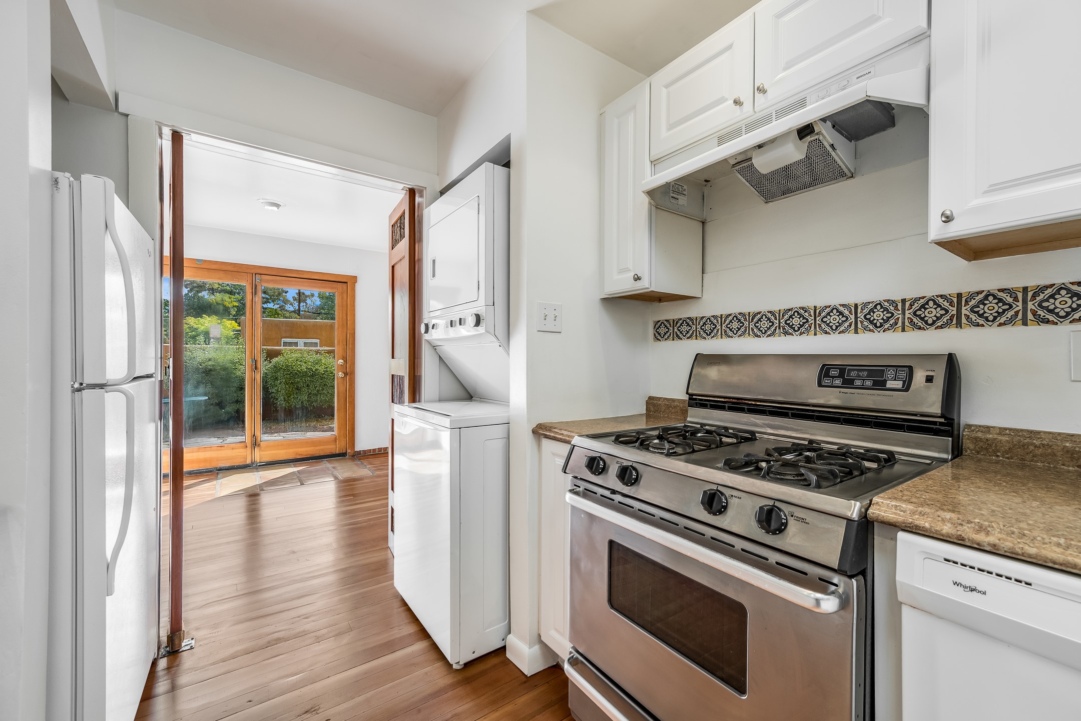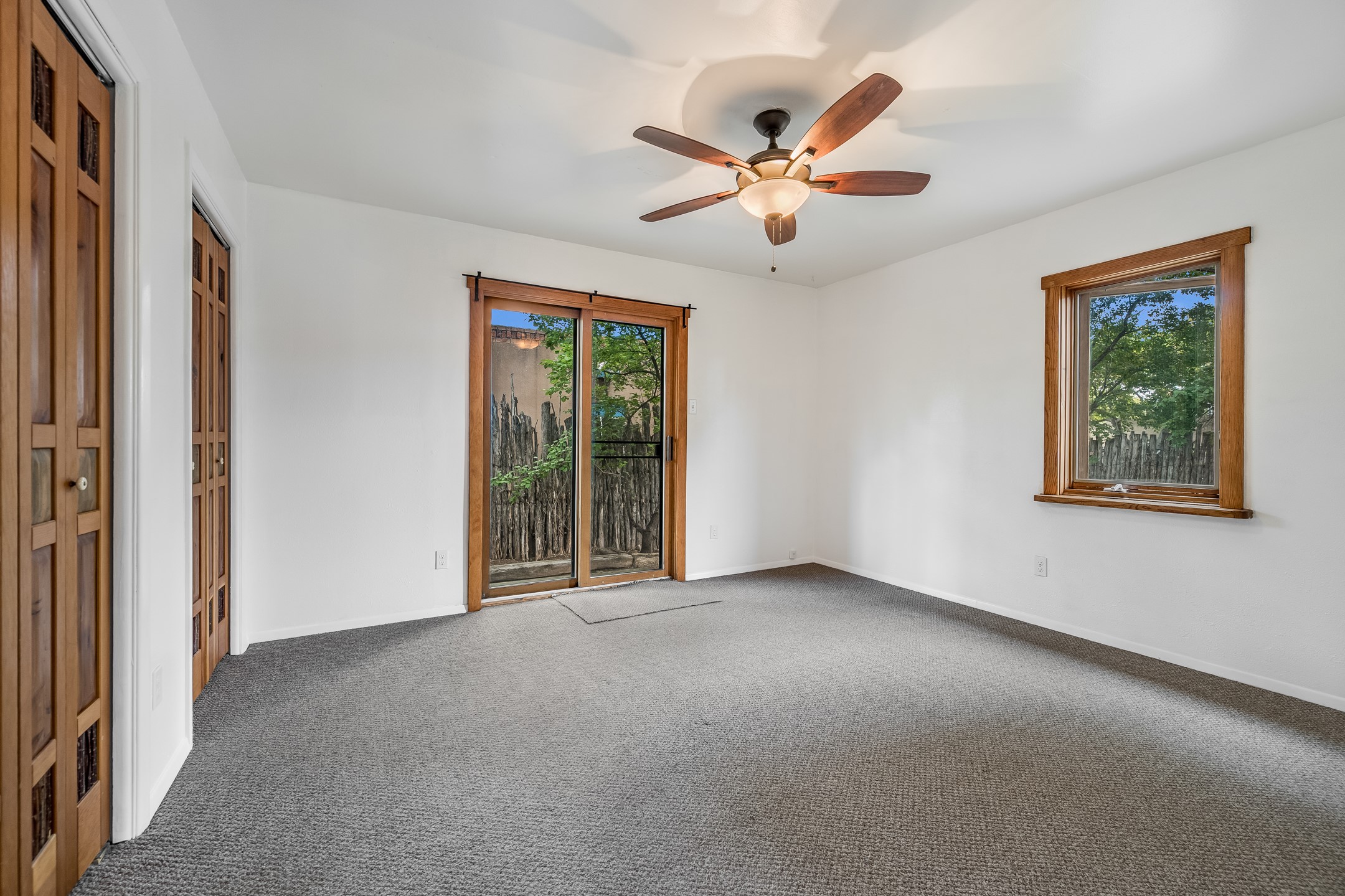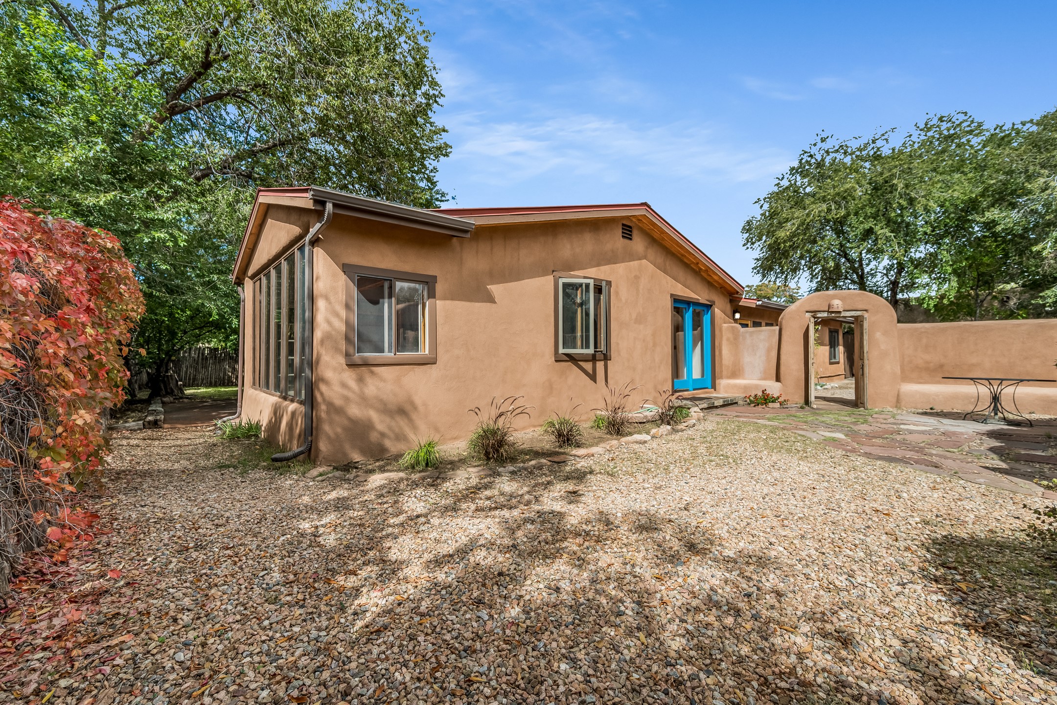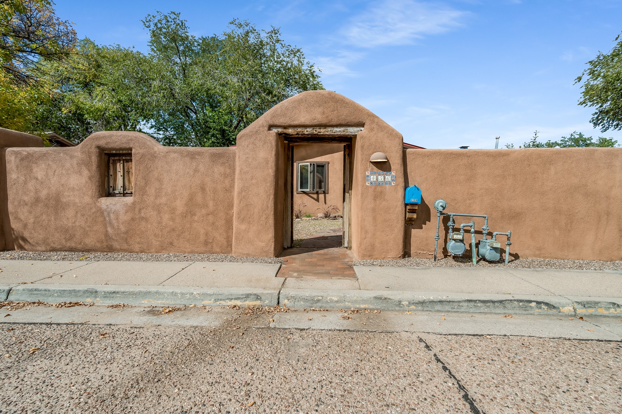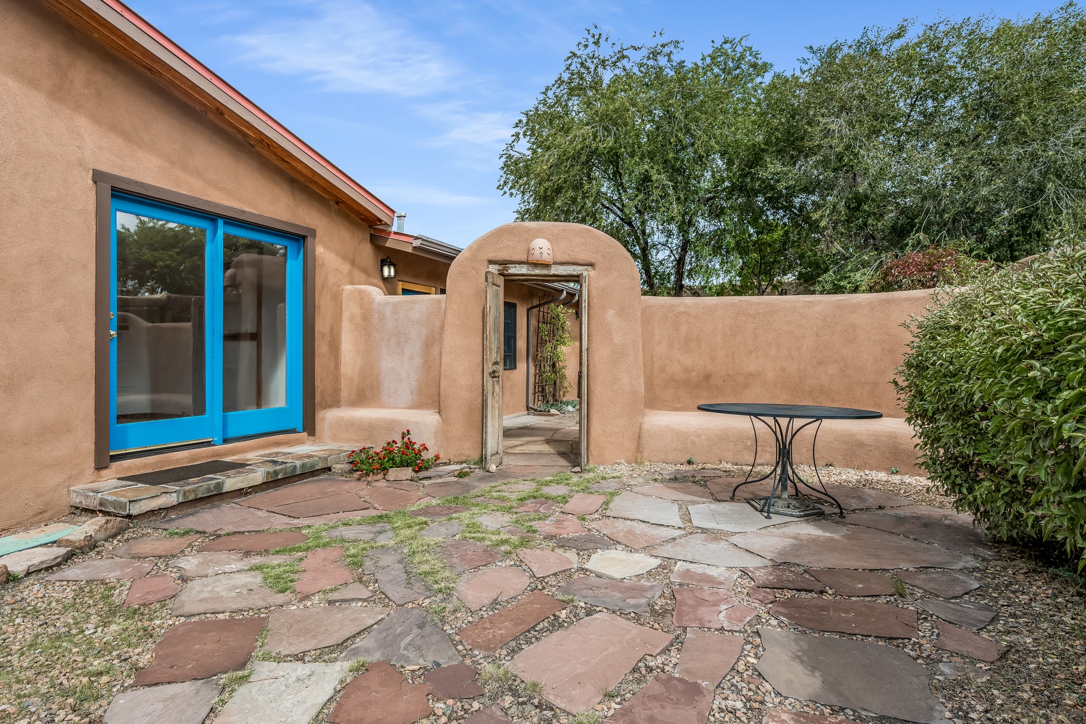 This quintessential Santa Fe style property offering Kiva fireplace, willow doors, Talavera and Saltillo tile, nichos, a walled courtyard, and off-street parking is tucked away in the much sought after Railyard Arts District. The setting is peaceful and quiet yet only a quick 5 minute jaunt to The Violet Crown, Farmer's Market, park, outdoor concerts, coffee shop, pubs, restaurants, and the vibrant vibe offered along Guadalupe Street! About a 15 minute walk to The Santa Fe Plaza where you will find shopping, world-class dining, and galleries along with stellar museums. Walking and cycling trails are minutes away making this the perfect urban home. One can even hop on the train for a ride to Albuquerque! Opportunities Abound for this property which features a home with attached guest house. You can live in one unit and rent the other or rent them both! There is even room to add a casita! Easy access to St. Francis Drive is a plus for those who commute to Los Alamos! Both units offer office space for those who work from home. A Must See!