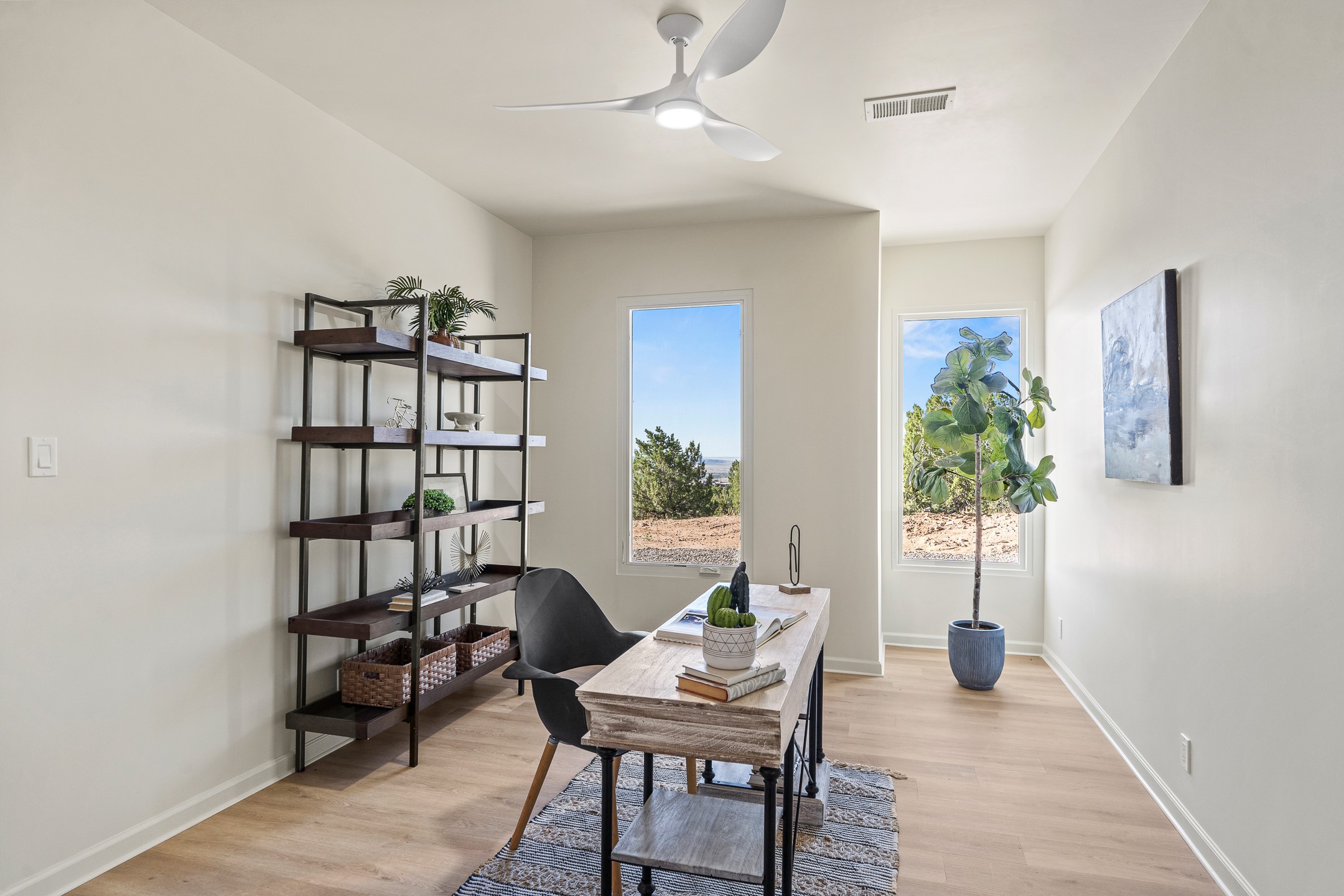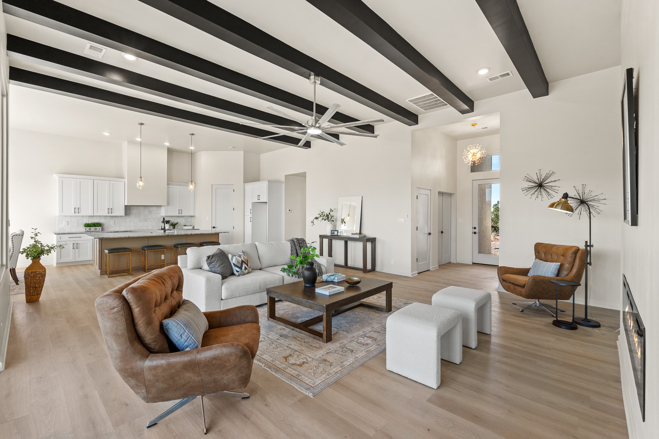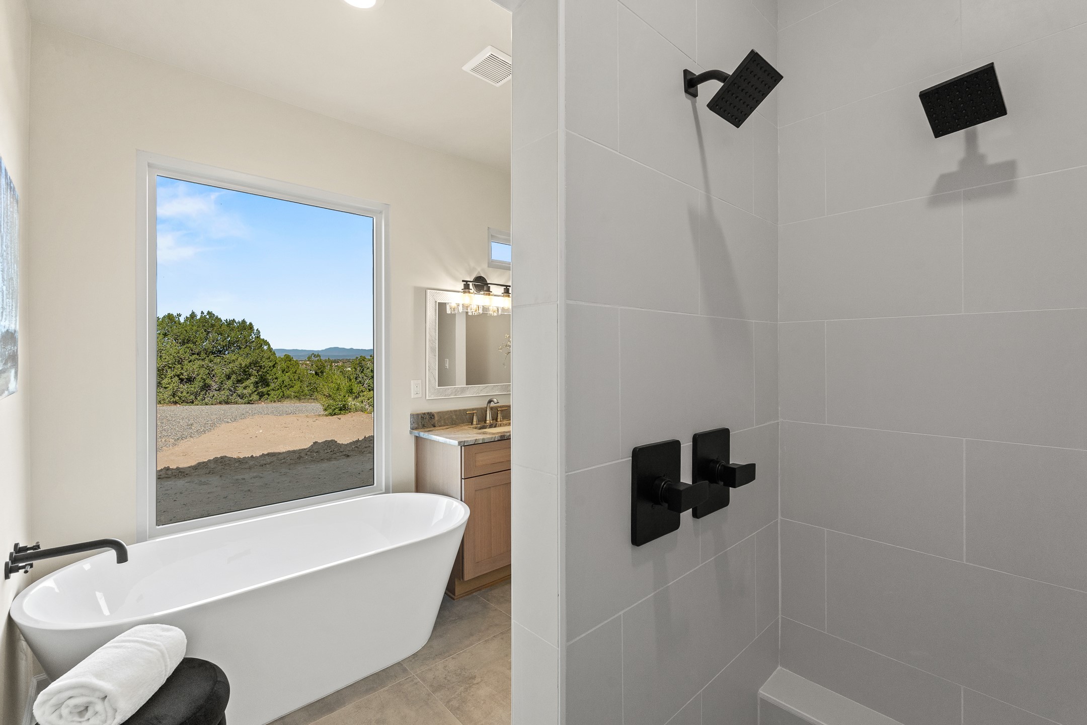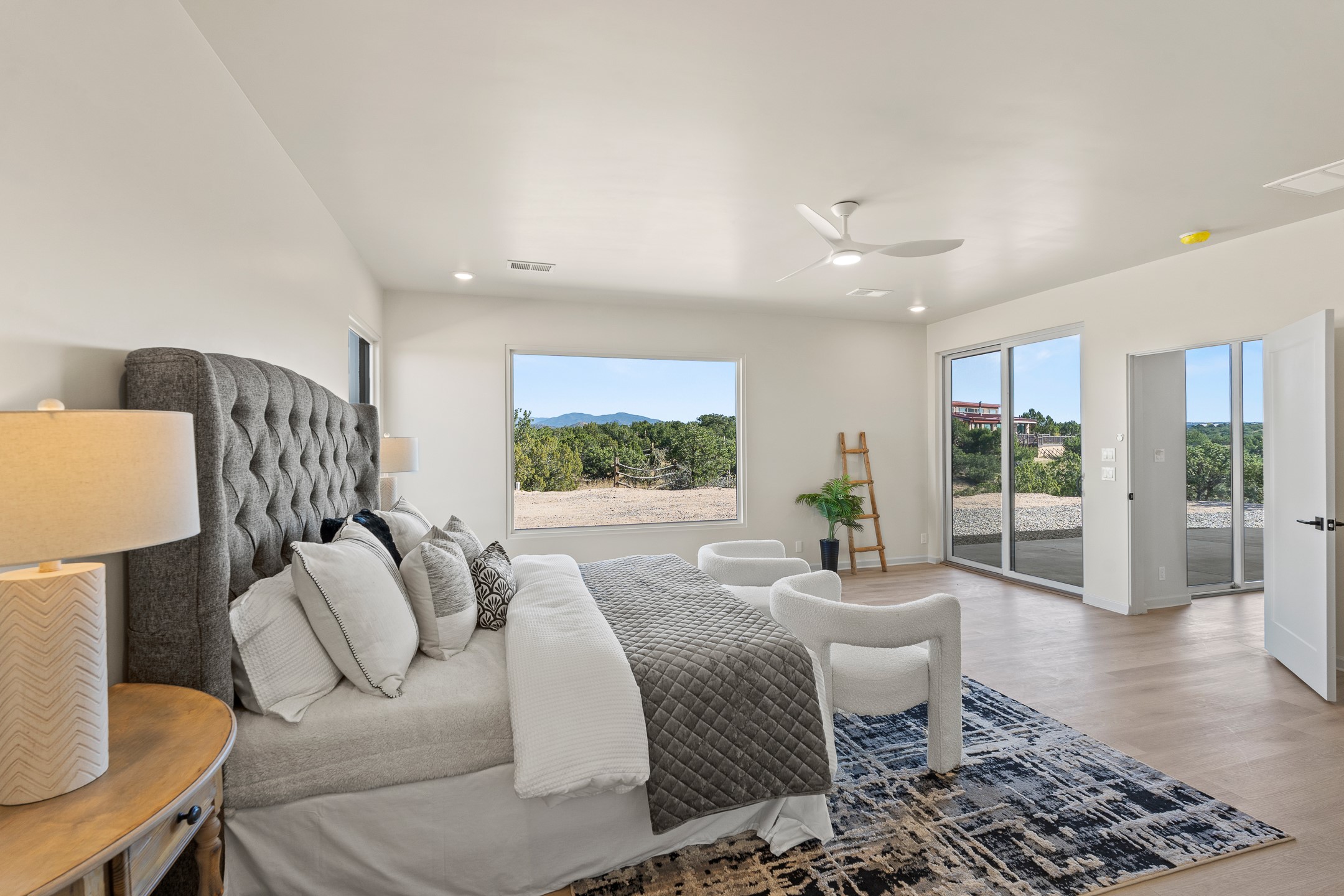 Just completed and ready for occupancy! Mountain views from every window in this new custom built contemporary pueblo style home with open floor plan situated on a huge 10.0 +/- ac. private lot in Lamy. Convenient access to US-285, the Agora shopping center, bank and restaurants. Perfect for indoor and outdoor entertaining. Open kitchen/family/dining room has floor to ceiling windows and double sliding glass doors to take in the fabulous views and access to the portal. The contemporary kitchen has a huge island bar and large walk in pantry. Every room has large picture windows with fabulous mountain views. Owner's bath has double sinks, soaking tub and large walk in shower room with double shower heads and rain showers and a large walk in closet. Home features contemporary style vigas in living areas. Three bedrooms with good separation and 2 baths. A guest house and equestrian structures are allowed, as well as 10 horses or cattle. (1 large animal per acre.) No HOA, recreational vehicles are allowed if parked inconspicuously. Connected to the Eldorado community water system. Located only 20 minutes from Downtown Santa Fe this home offers gorgeous views, rural living and easy access to everything Santa Fe has to offer. This home has it all; new home, fabulous views, great outdoor spaces, contemporary open floor plan, large private lot. Buyer to verify all information and Covenants. Seller gives $4000 credit to the buyer at closing for Range, dishwasher and microwave. Open House Sunday, Nov 23. 1:00 - 4:00 PM.