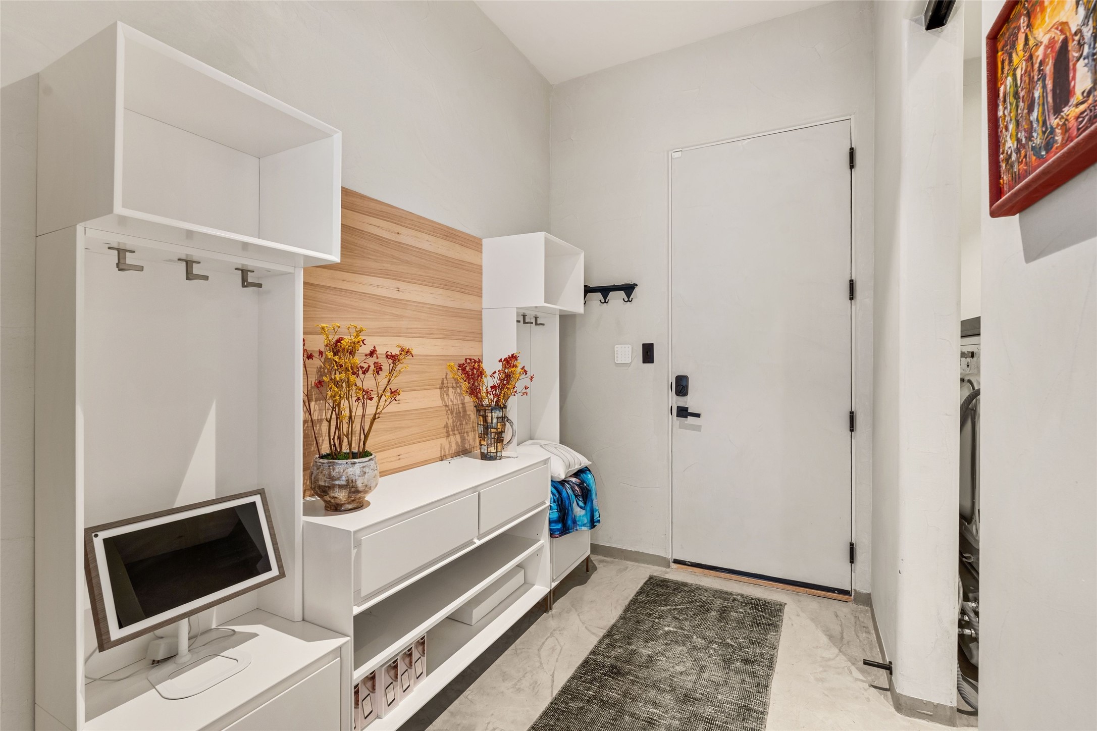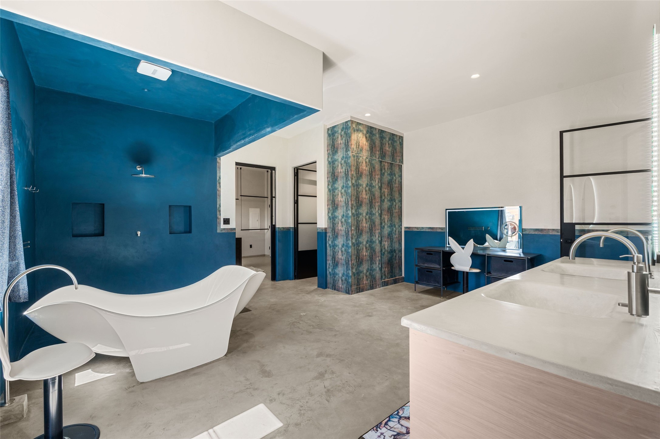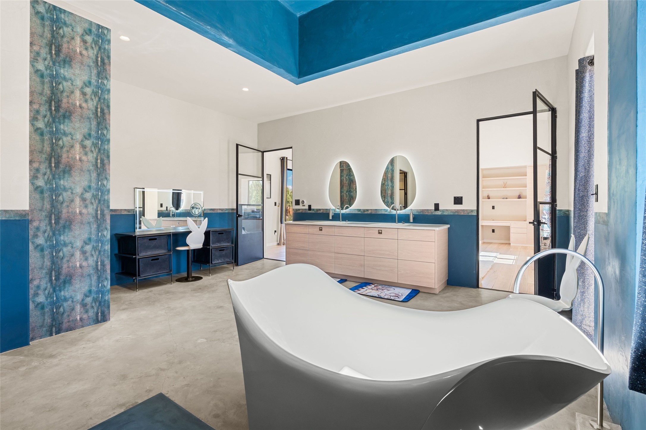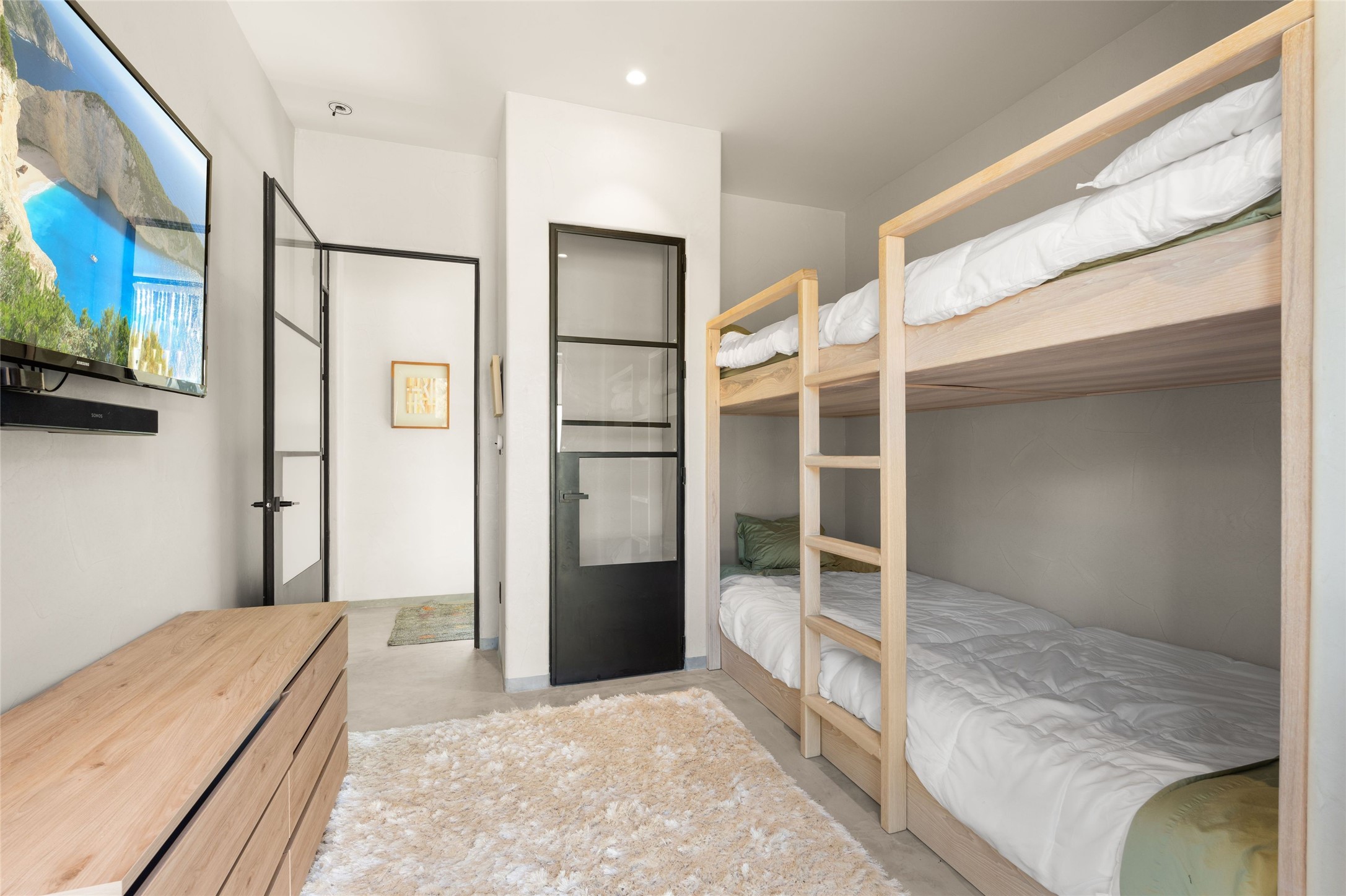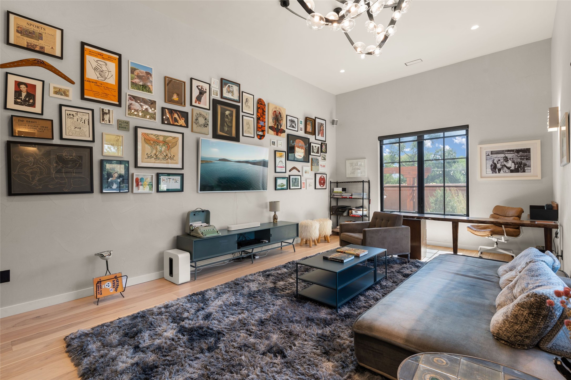 Desirable East Corrales 4-bedroom 3-bath residence on 2 acres with breathtaking Sandia Mountain views. Built in 2023, this home offers a blend of contemporary design and thoughtfully curated finishes with high ceilings, hickory wood and polished concrete floors perfect for artists and art collectors alike. Single level; no interior steps. As you enter, you are greeted by a spacious foyer that flows into an expansive living area with a fireplace and slider doors that bring the outdoors inside and create an expanded space for hosting gatherings or enjoying peaceful evenings under the stars. The gourmet kitchen is appointed with an oversized island, high-end appliances and a generous butler pantry, with wine fridge. Additional practical features include a laundry room with dog wash area, and separate mudroom. Retreat to the private primary suite, with stunning mountain views, a whimsical en-suite bath and expansive walk-in closet. Across the central courtyard, is a second primary bedroom with en-suite and walk-in closet. The third bedroom or bunkhouse offers a charming space for family and friends. The fourth bedroom provides versatile light-filled spot for a studio or office. Drive-through 3-car garage and picturesque backyard watermill, which could be adapted for power generation. Surrounded by mature Colorado ponderosa pines, this tranquil setting is a blank canvas, ready for your imagination to take flight--build your dream garden, luxurious outdoor living space, or bring your horses, as they are welcome here! Located just minutes from historic Corrales Main Street and with easy access to the Corrales Bosque Preserve's miles of trails.