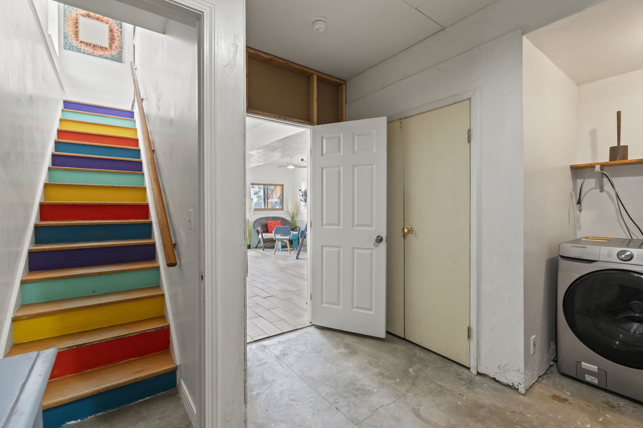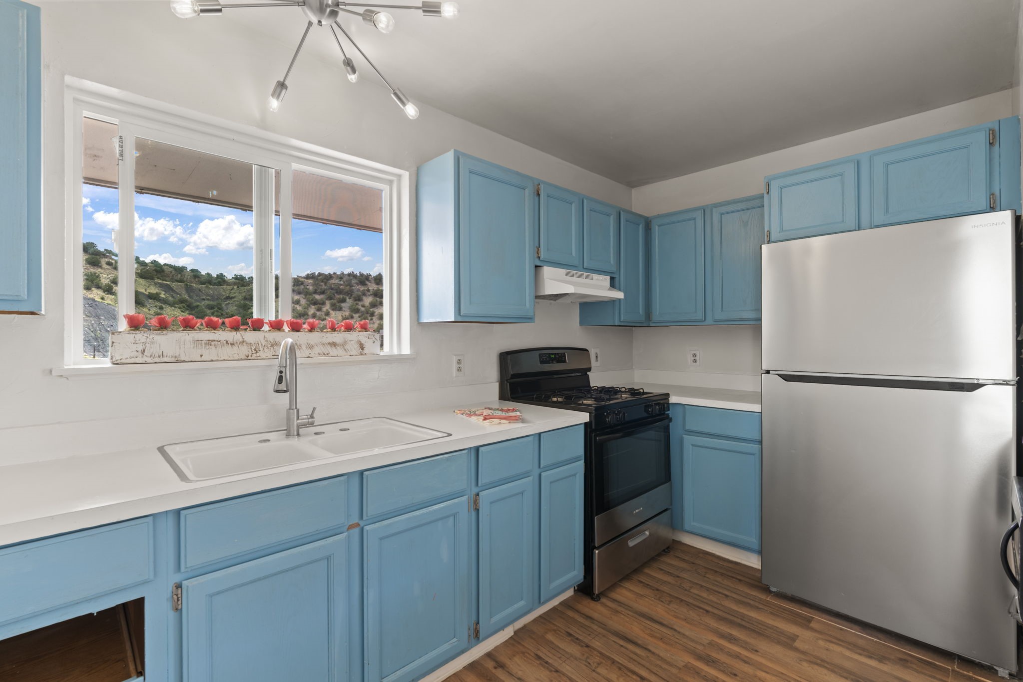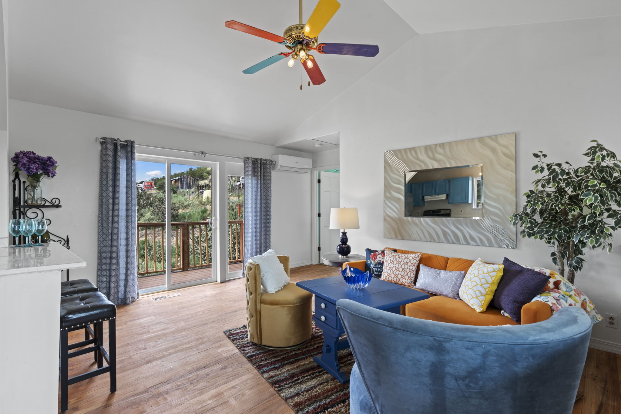 Authentic Magical Madrid Cottage with Creative Spaces! This sun-soaked gem blends possibility with artistic living. The upper level features a one-bedroom, one full bathroom, full kitchen owner's suite with a private deck perfect for morning coffee or stargazing. Below, features a flex space like no other. Open floorplan with one bathroom and full kitchen. Great family home. With a separate entrance, the downstairs is perfect for a full-time rental or a short-term rental. Commercial space to display your unique art, local jewelry, homemade candles, local apparel, or anything your heart desires, while living upstairs and walking to enjoy all that Madrid has to offer! PLUS, lot next door is included. Perfect for additional parking or bldg. Amy Biehl Elem, Milagro Middle, SF High. YOU'RE HOME!