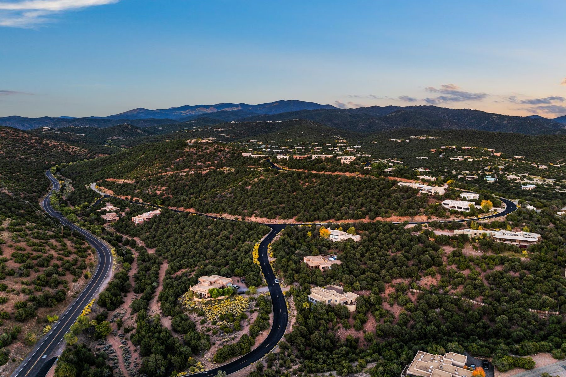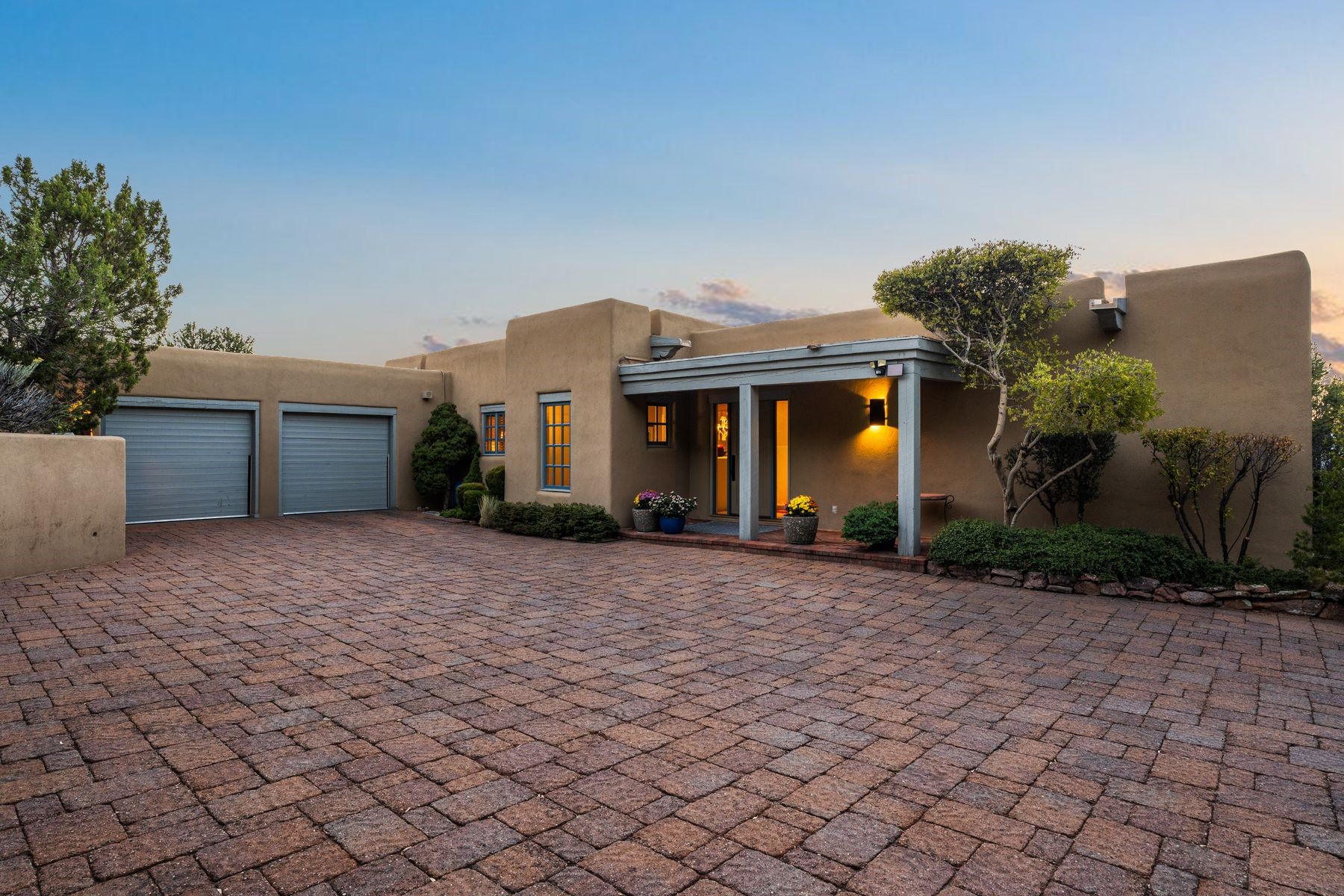 Nestled in a private gated neighborhood just five minutes from Canyon Road, this stunning 3-bedroom, 3-bath residence captures the essence of Santa Fe living with breathtaking views and refined details throughout.Arrive via a paver-lined driveway leading to a spacious two-car garage and be welcomed into a home built for both comfort and sophistication. Inside, French limestone imported from Forte dei Marmi flows seamlessly throughout, complemented by exquisite diamond finished plaster walls that add depth, texture, and timeless elegance. The expansive floor plan opens to over 800 square feet of covered portals, perfect for entertaining or savoring quiet evenings while soaking in the dramatic vistas.The gourmet kitchen is appointed with high-end finishes and appliances, designed to satisfy both everyday living and special occasions. Each bedroom offers privacy and comfort, complemented by spa-like baths.With its combination of architectural elegance, premium materials, and proximity to Santa Fe's vibrant art and dining scene, this home offers a rare opportunity to enjoy luxury and convenience in one of the city's most sought-after locations.