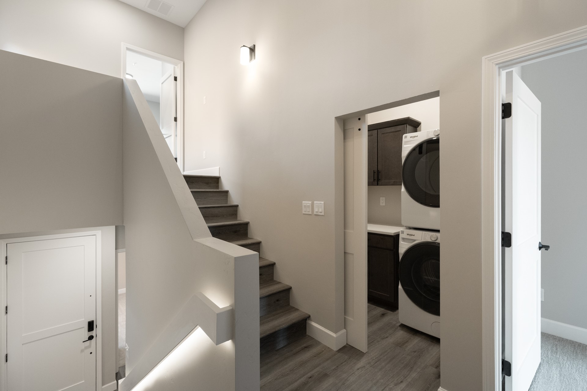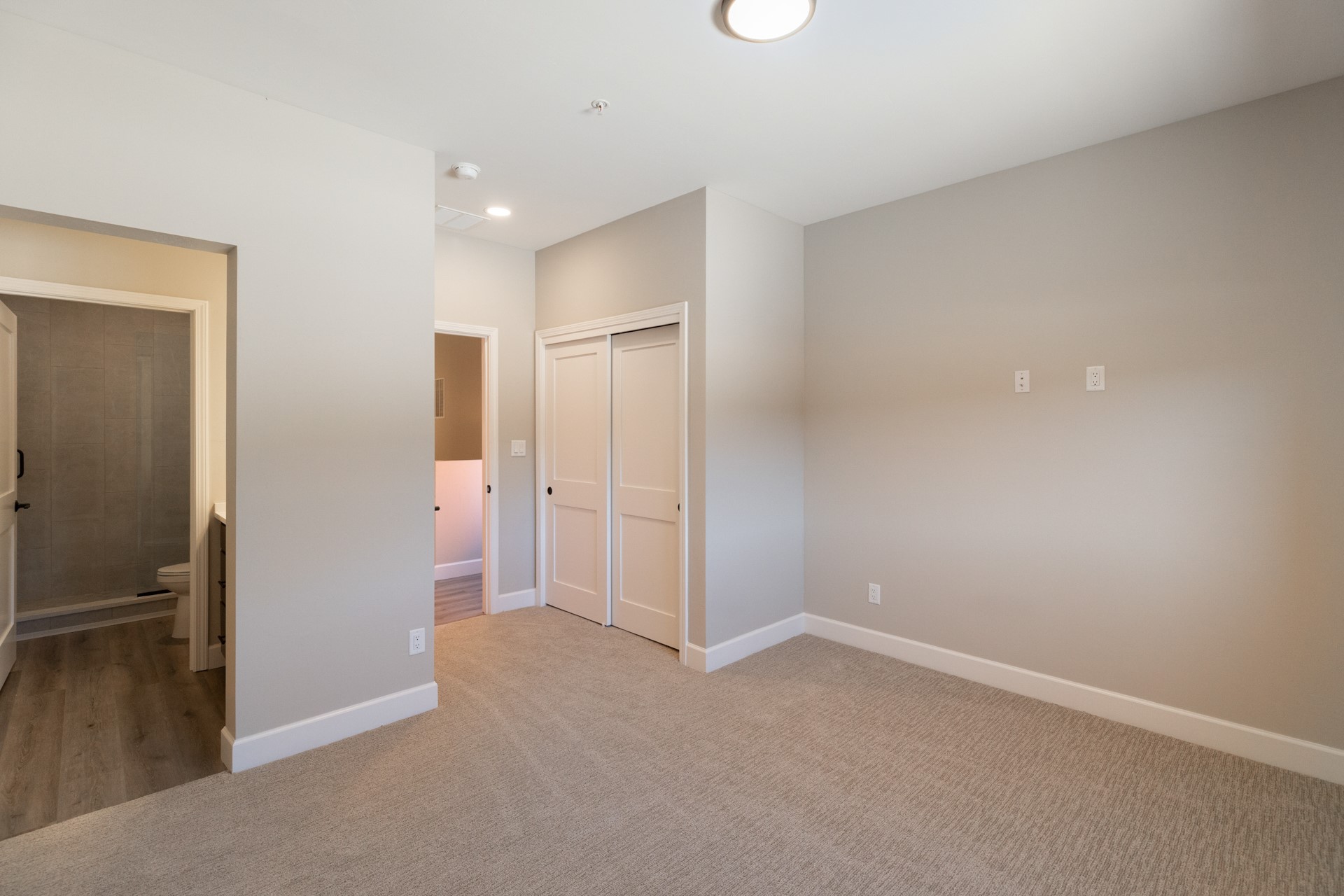 Welcome to Unit #45 at Zocalo, Santa Fe--A refined interior unit that perfectly melds luxury with comfort. As you step into the inviting foyer, you are presented with two enticing options: descend to the lower level where the expansive great room awaits, complete with modern grey toned, sophisticated brushed nickel finishes, and contemporary maple-finished flooring that radiates modern elegance. This level also houses the well-appointed kitchen and provides access to the beautifully landscaped patio, ideal for both vibrant entertainment and serene relaxation.Alternatively, ascend to the upper level where you will find the luxurious primary suite, featuring a cozy second fireplace that creates an opulent sanctuary perfect for restful nights. Atop boasts a junior suite offering additional comfort and privacy.
