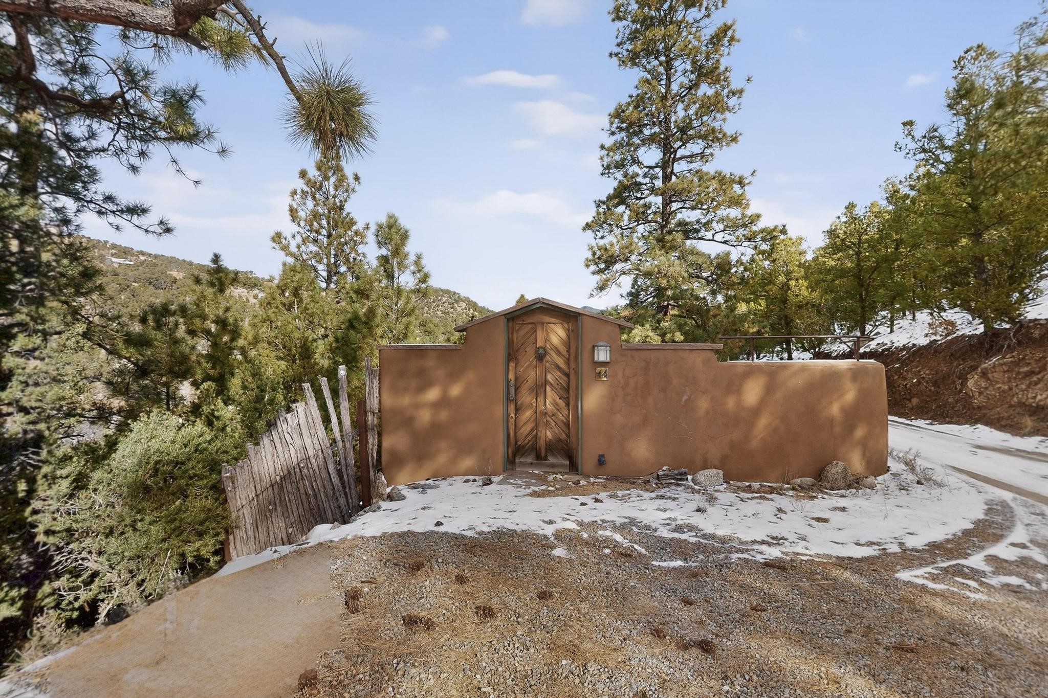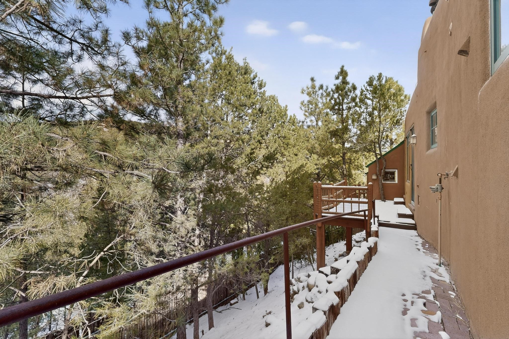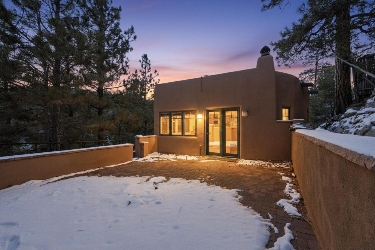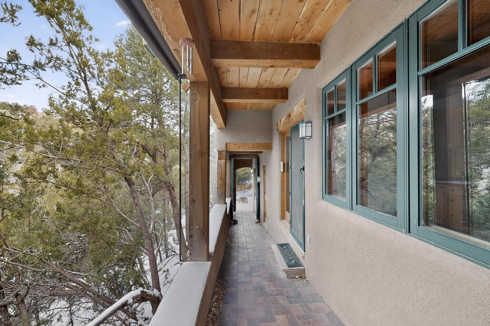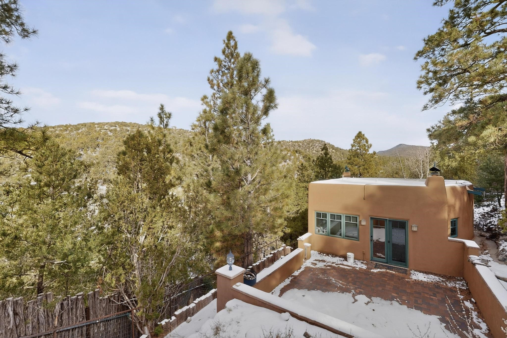 Welcome back to 80 La Barbaria! This stunning 3 bedroom 3 bath home with a 1 bed, 1 bath casita is located in the beautiful foothills of Santa Fe just off historic Old Santa Fe Trail. Back on the market with MANY updates including a NEW boiler, NEW water heater, NEW plaster and paint throughout the entire home and casita. The roof has recently been serviced and re-sealed and the stucco has been refreshed! This home boasts beamed ceilings, tiled floors, (NO CARPET), and the home offers 2 separate primary suites! The open concept dining room steps out onto a deck that overlooks the serene mountain setting. The casita has a full kitchen, bathroom, and private laundry, allowing for an instant rental property or a place for your guests to enjoy the perfect visit to Santa Fe! If privacy and serenity is what you seek, look no further!