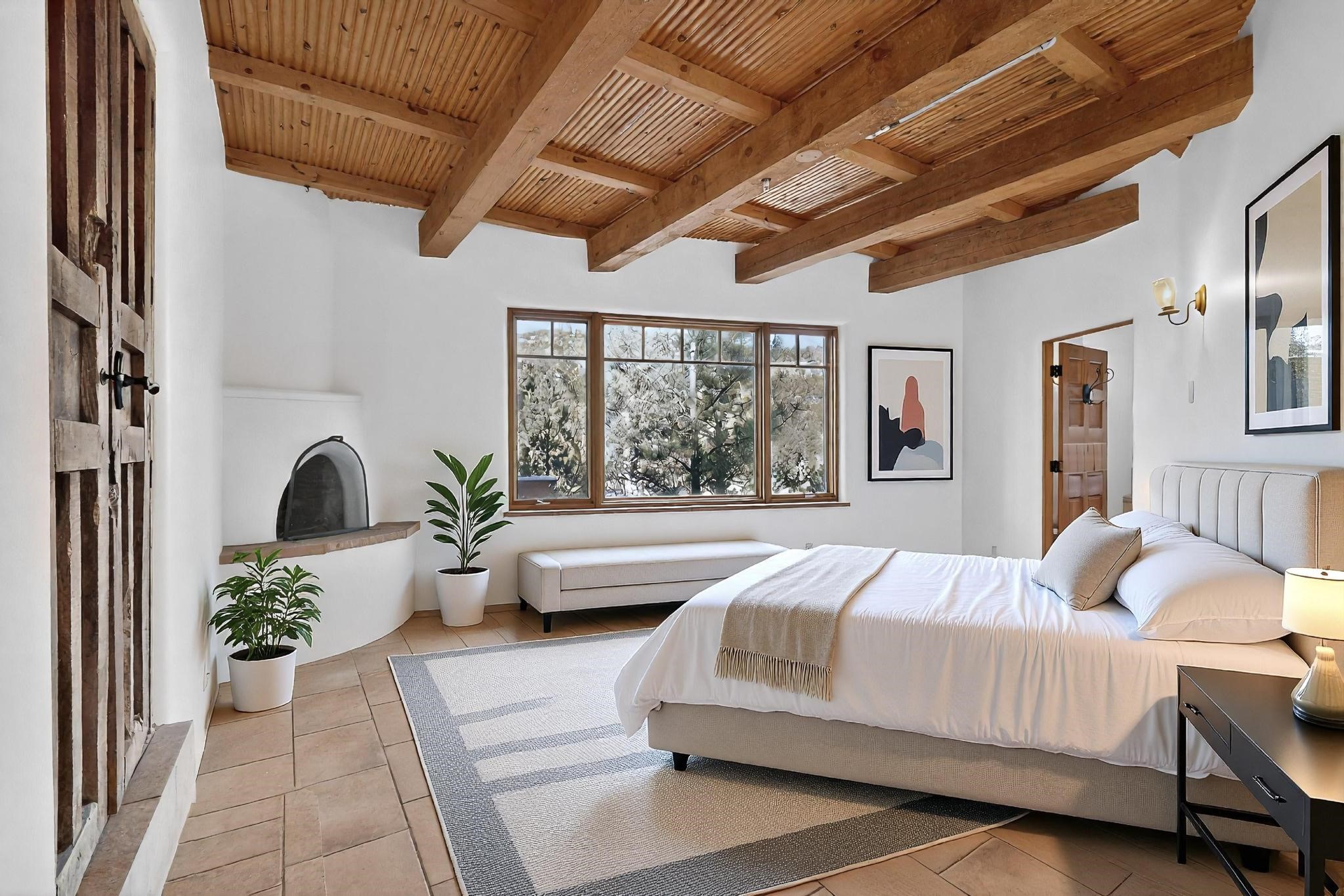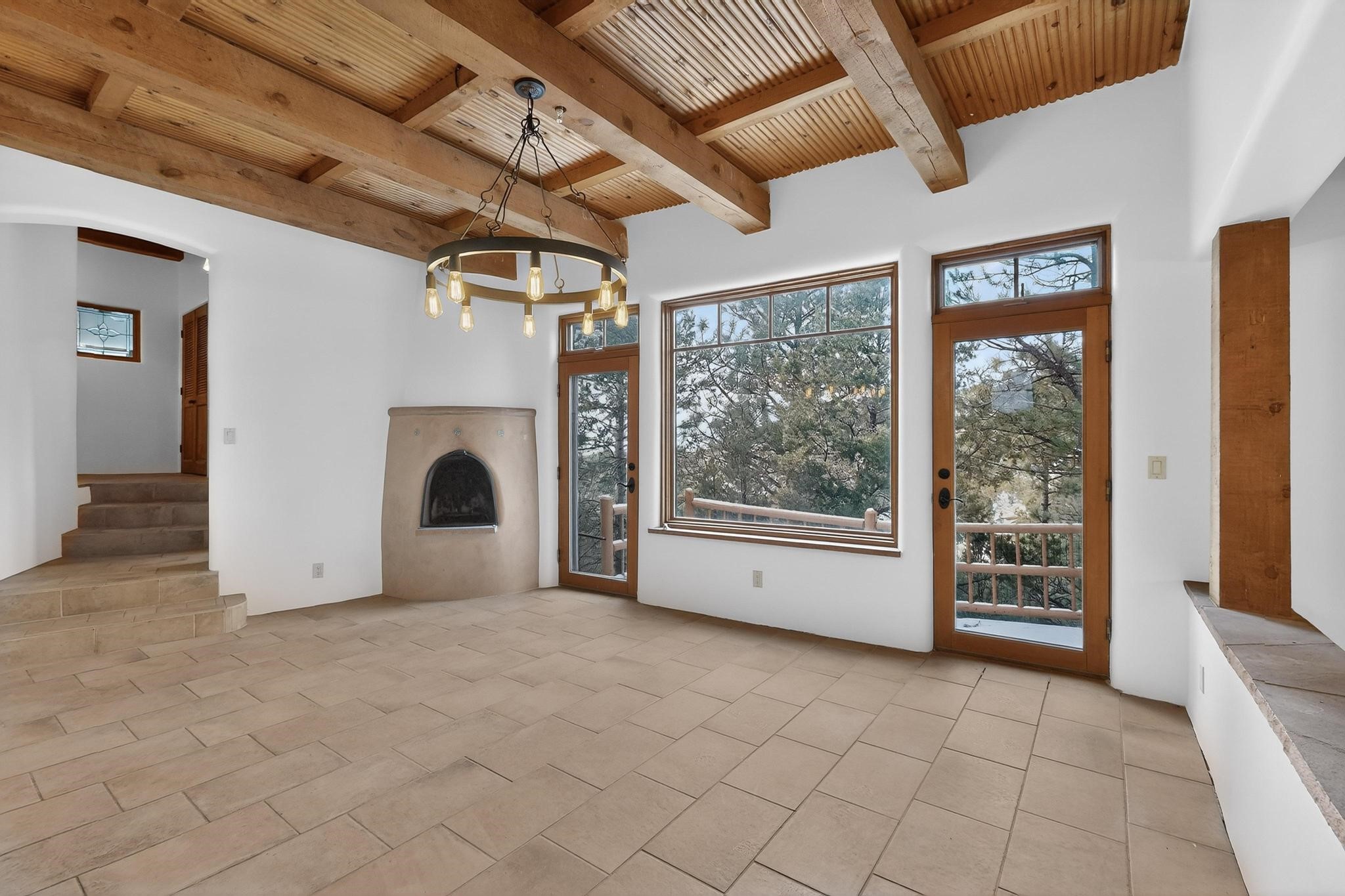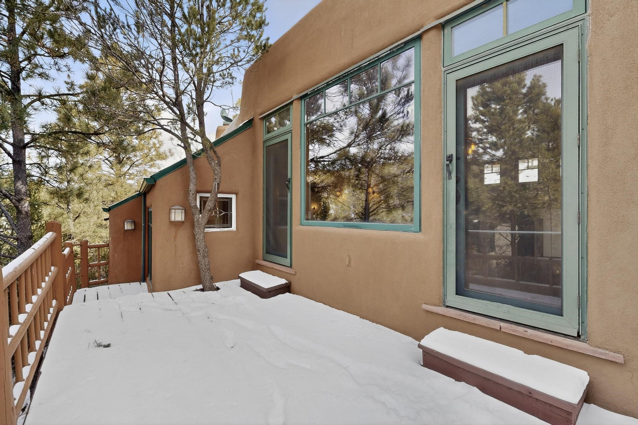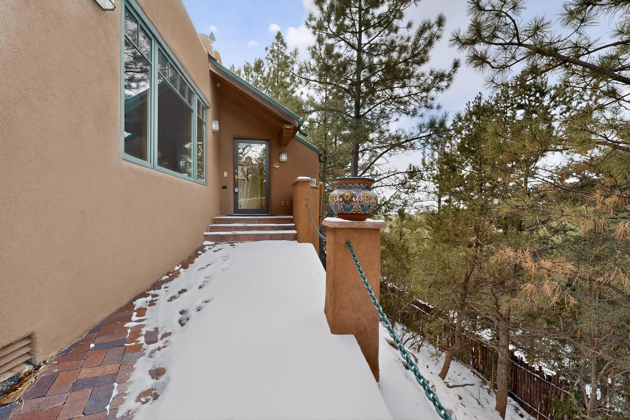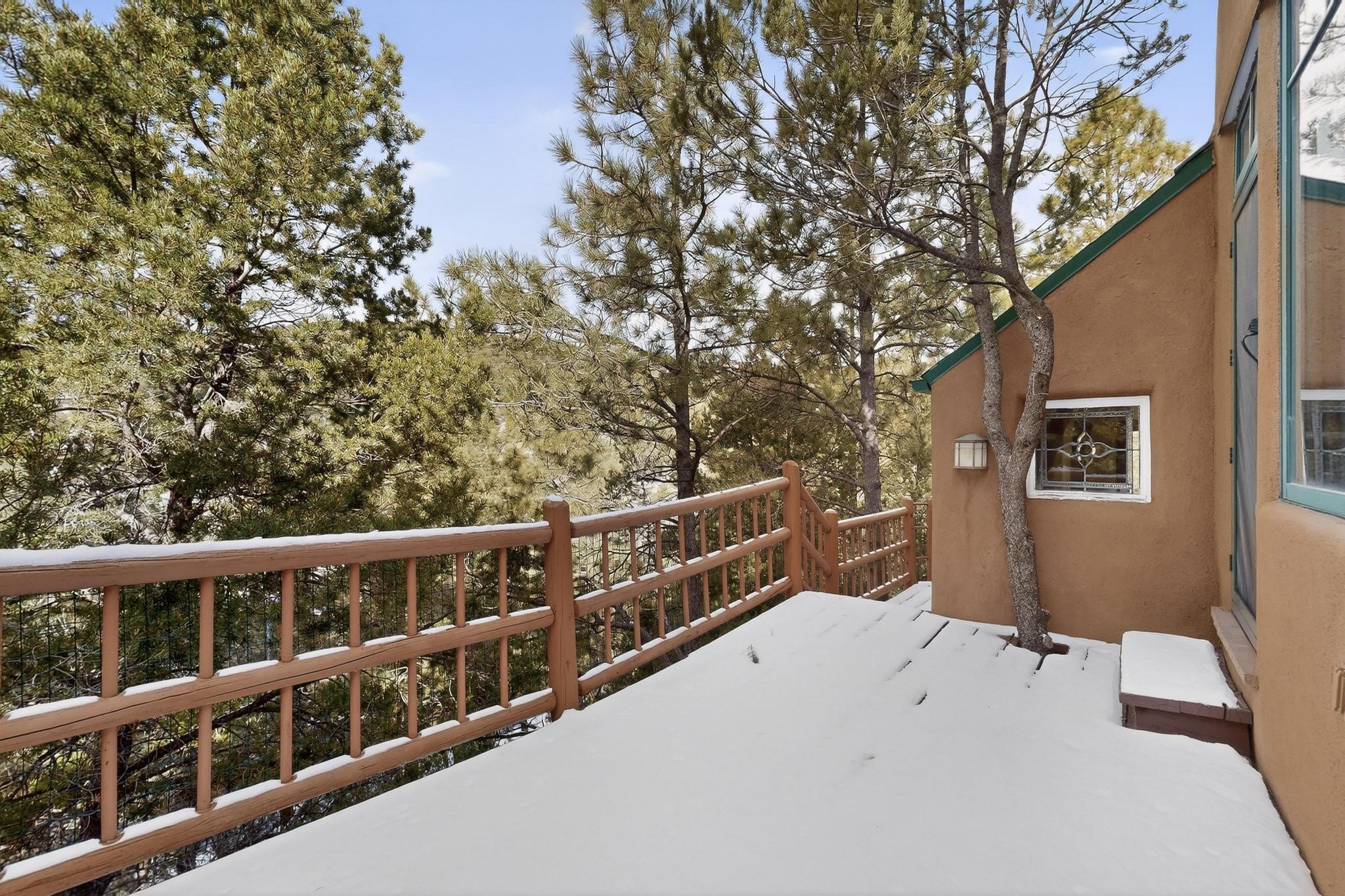 Welcome back to 80 La Barbaria! This stunning 3 bedroom 3 bath home with a 1 bed, 1 bath casita is located in the beautiful foothills of Santa Fe just off historic Old Santa Fe Trail. Back on the market with MANY updates including a NEW boiler, NEW water heater, NEW plaster and paint throughout the entire home and casita. The roof has recently been serviced and re-sealed and the stucco has been refreshed! This home boasts beamed ceilings, tiled floors, (NO CARPET), and the home offers 2 separate primary suites! The open concept dining room steps out onto a deck that overlooks the serene mountain setting. The casita has a full kitchen, bathroom, and private laundry, allowing for an instant rental property or a place for your guests to enjoy the perfect visit to Santa Fe! If privacy and serenity is what you seek, look no further!