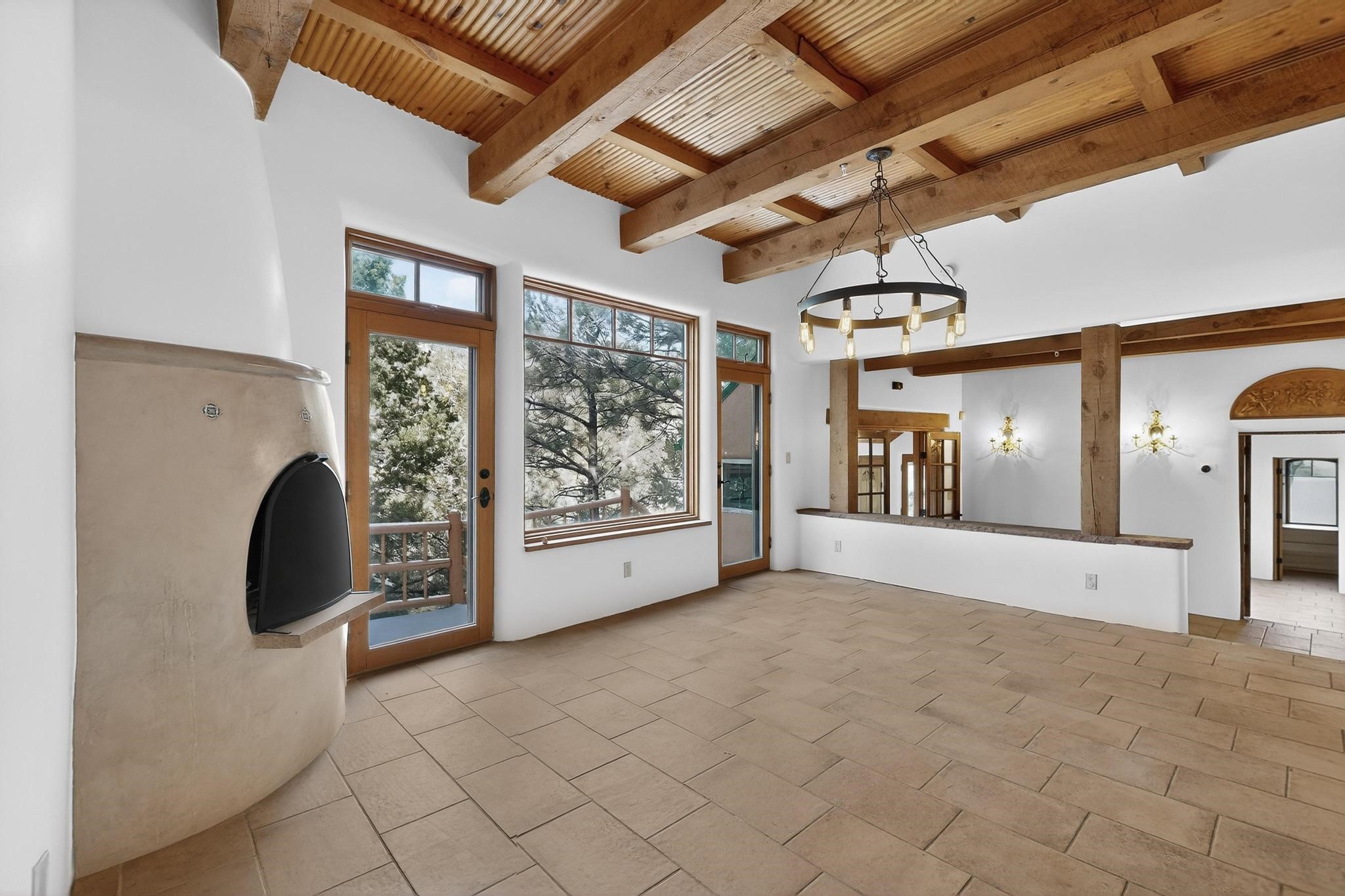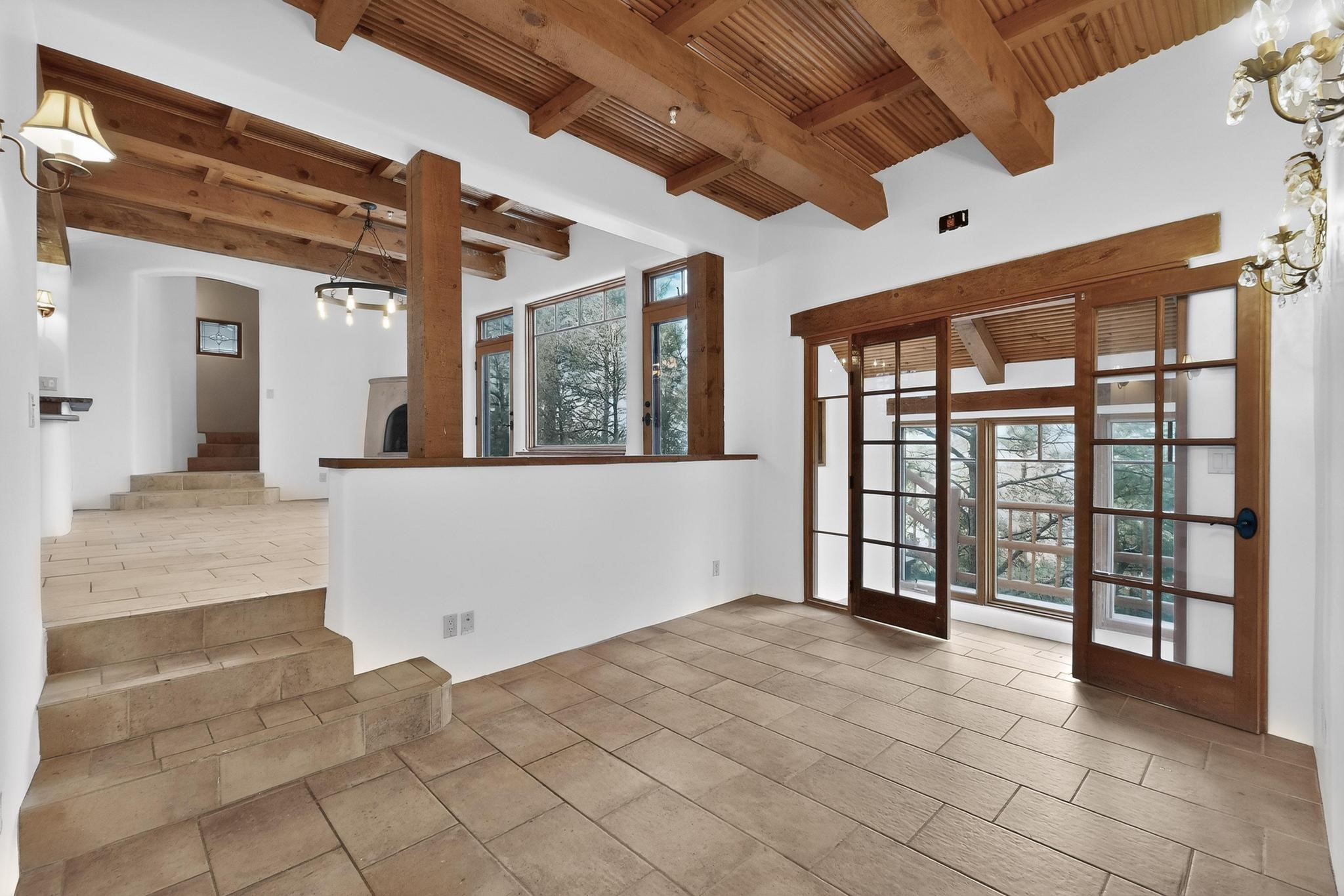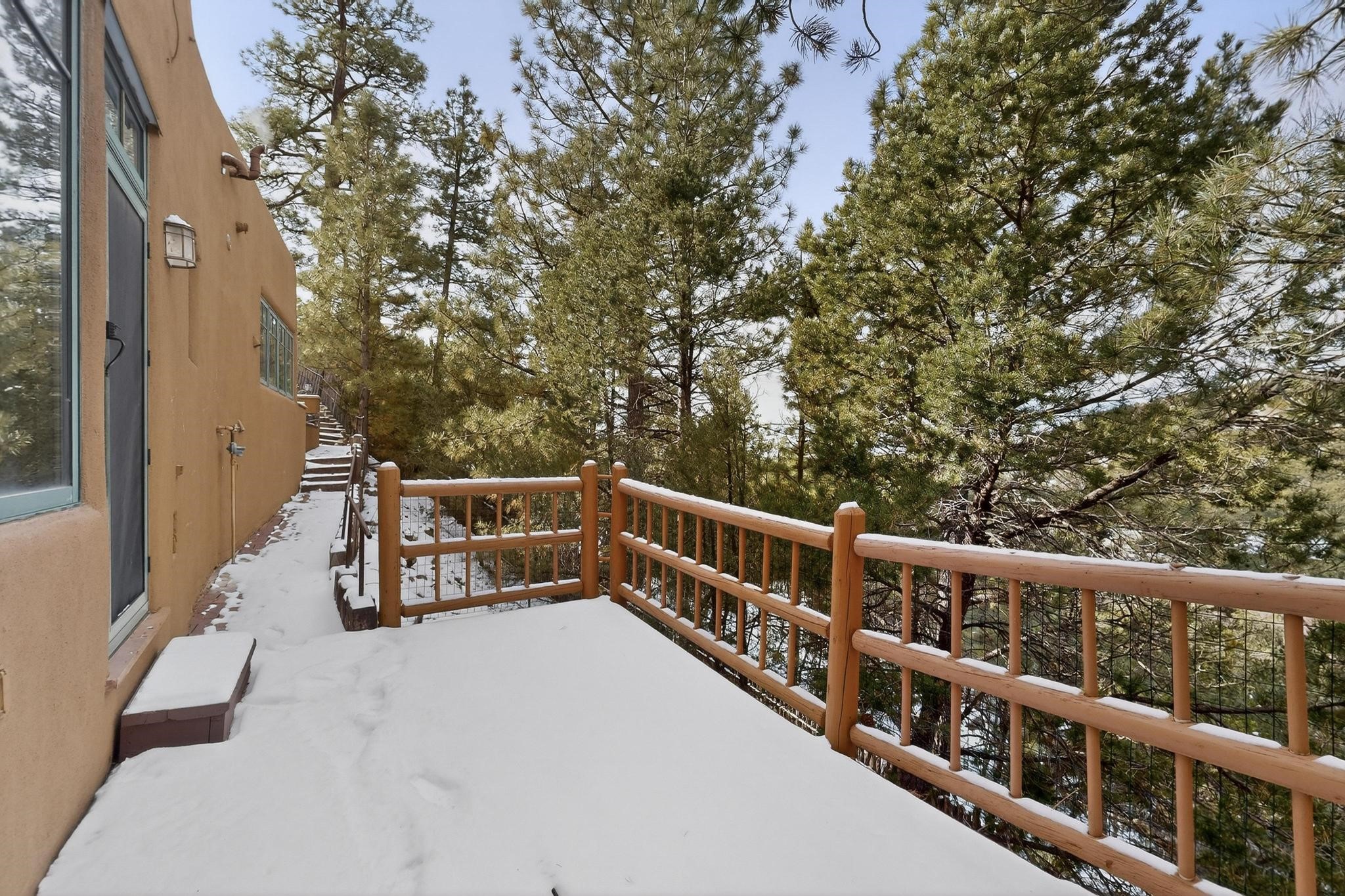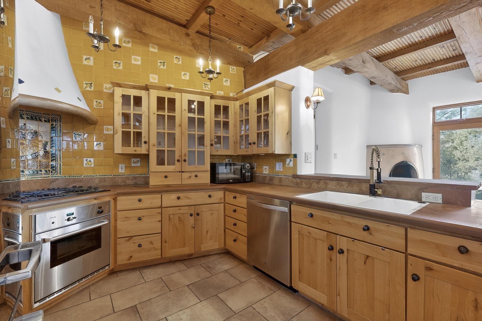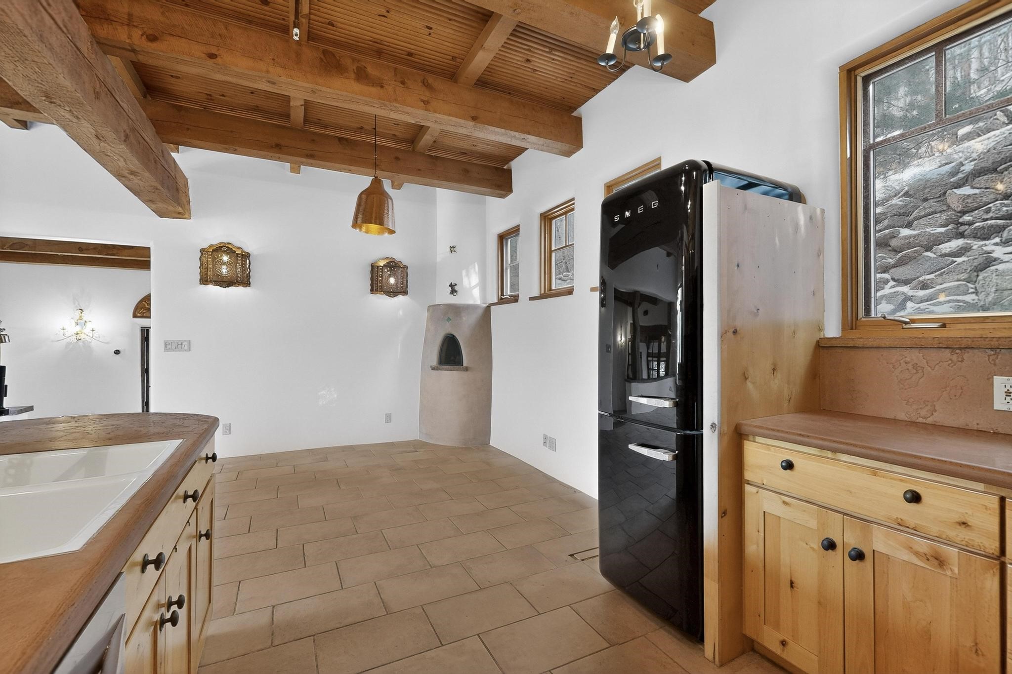 Welcome back to 80 La Barbaria! This stunning 3 bedroom 3 bath home with a 1 bed, 1 bath casita is located in the beautiful foothills of Santa Fe just off historic Old Santa Fe Trail. Back on the market with MANY updates including a NEW boiler, NEW water heater, NEW plaster and paint throughout the entire home and casita. The roof has recently been serviced and re-sealed and the stucco has been refreshed! This home boasts beamed ceilings, tiled floors, (NO CARPET), and the home offers 2 separate primary suites! The open concept dining room steps out onto a deck that overlooks the serene mountain setting. The casita has a full kitchen, bathroom, and private laundry, allowing for an instant rental property or a place for your guests to enjoy the perfect visit to Santa Fe! If privacy and serenity is what you seek, look no further!