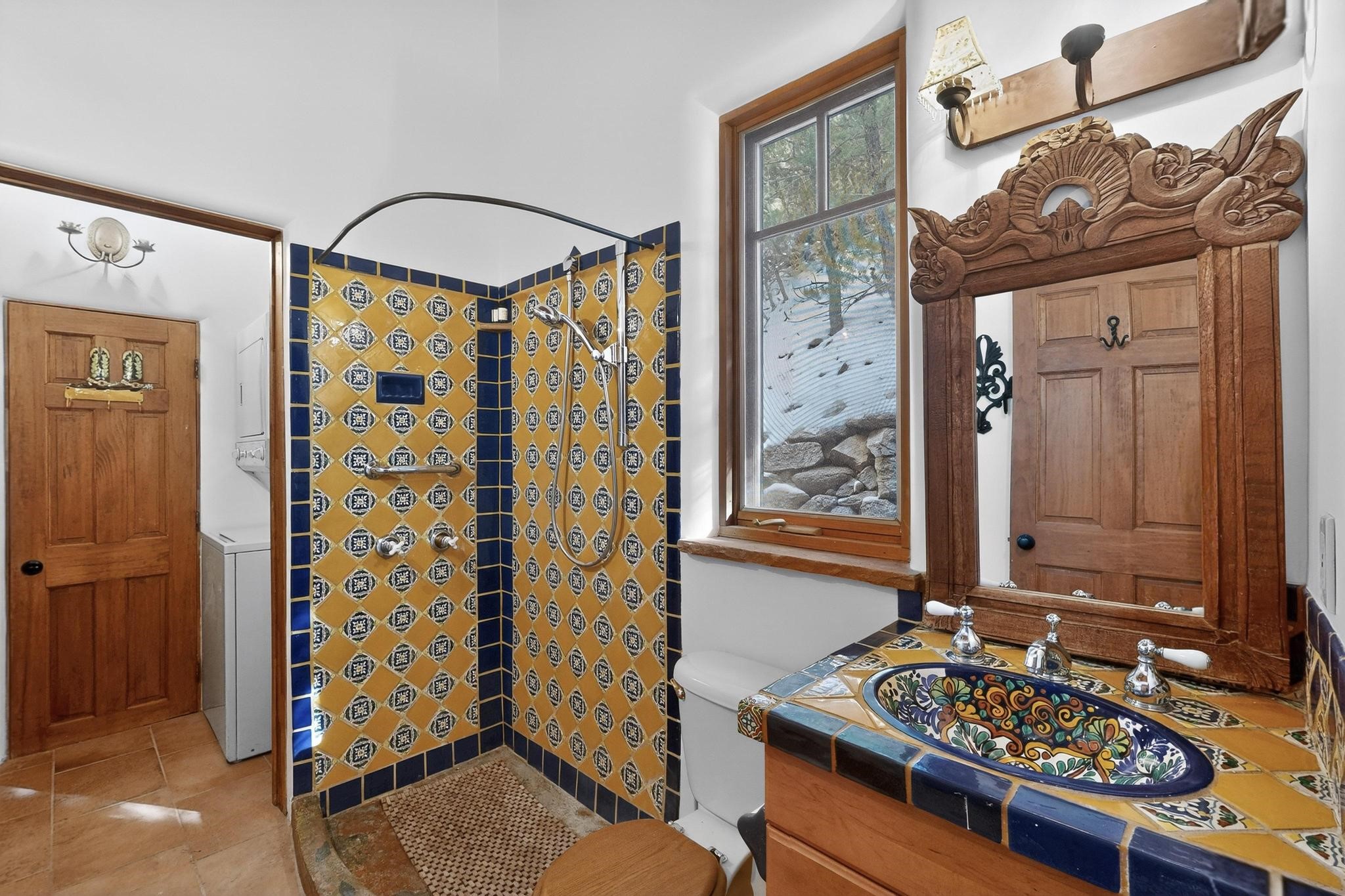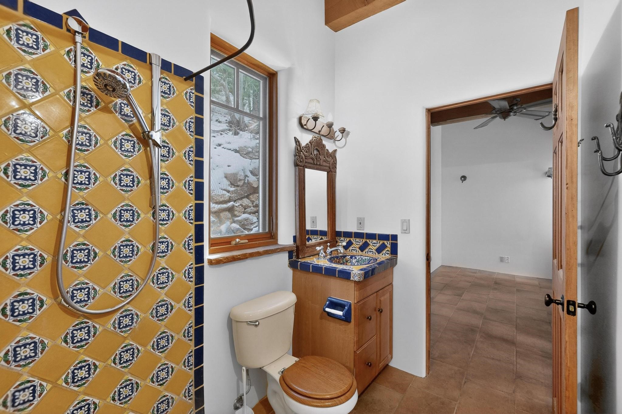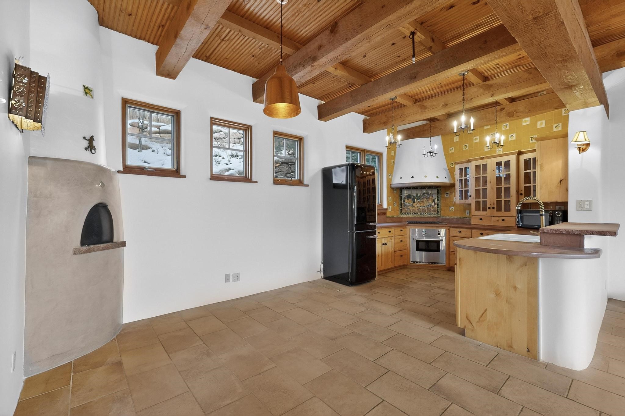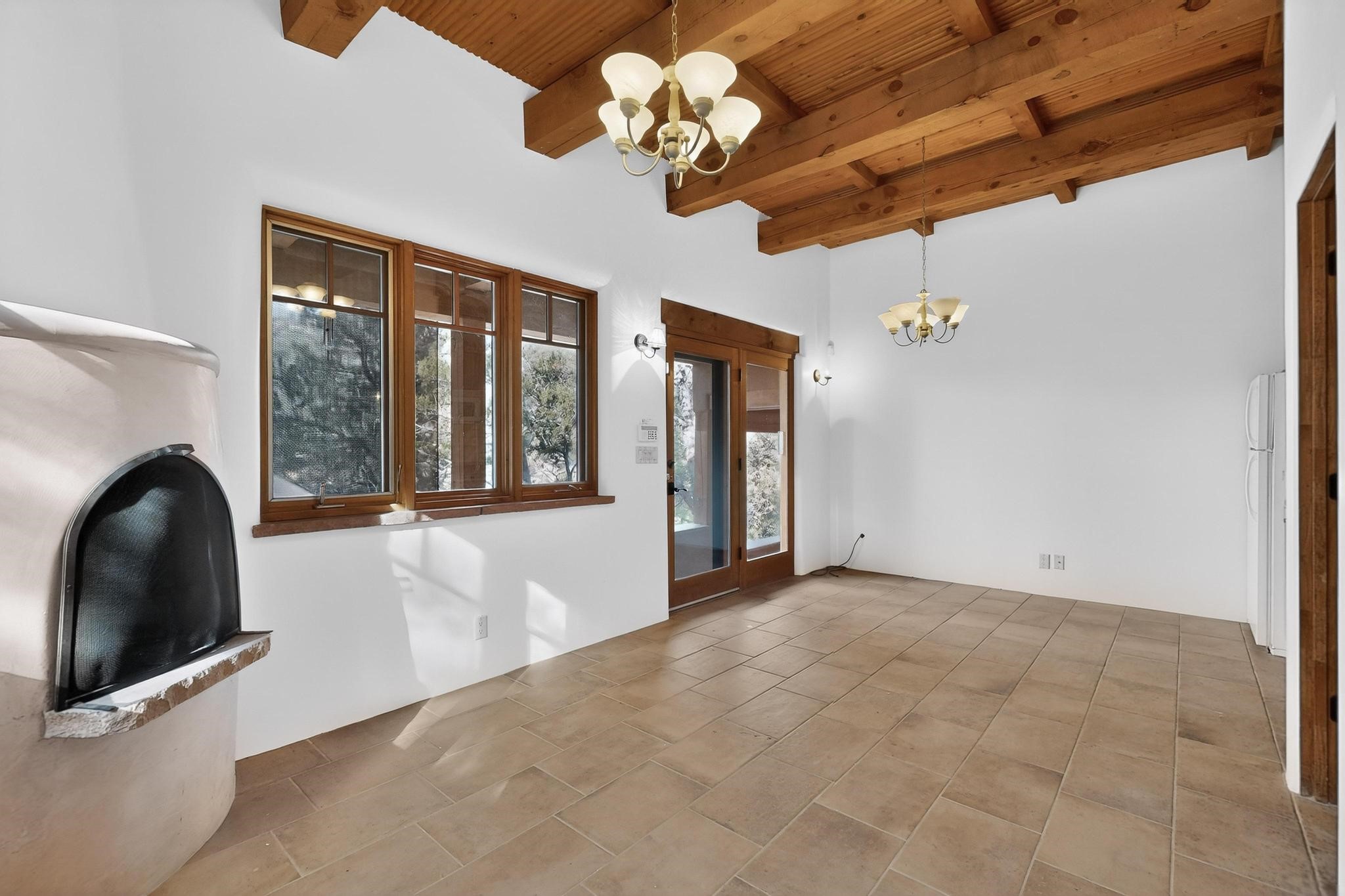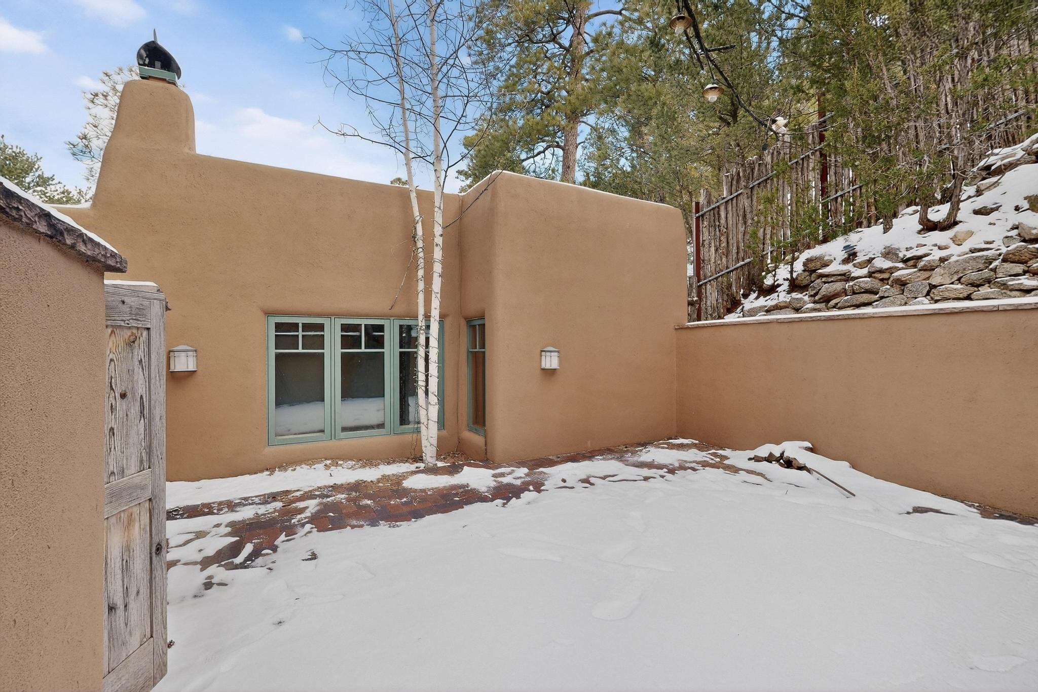 Welcome back to 80 La Barbaria! This stunning 3 bedroom 3 bath home with a 1 bed, 1 bath casita is located in the beautiful foothills of Santa Fe just off historic Old Santa Fe Trail. Back on the market with MANY updates including a NEW boiler, NEW water heater, NEW plaster and paint throughout the entire home and casita. The roof has recently been serviced and re-sealed and the stucco has been refreshed! This home boasts beamed ceilings, tiled floors, (NO CARPET), and the home offers 2 separate primary suites! The open concept dining room steps out onto a deck that overlooks the serene mountain setting. The casita has a full kitchen, bathroom, and private laundry, allowing for an instant rental property or a place for your guests to enjoy the perfect visit to Santa Fe! If privacy and serenity is what you seek, look no further!