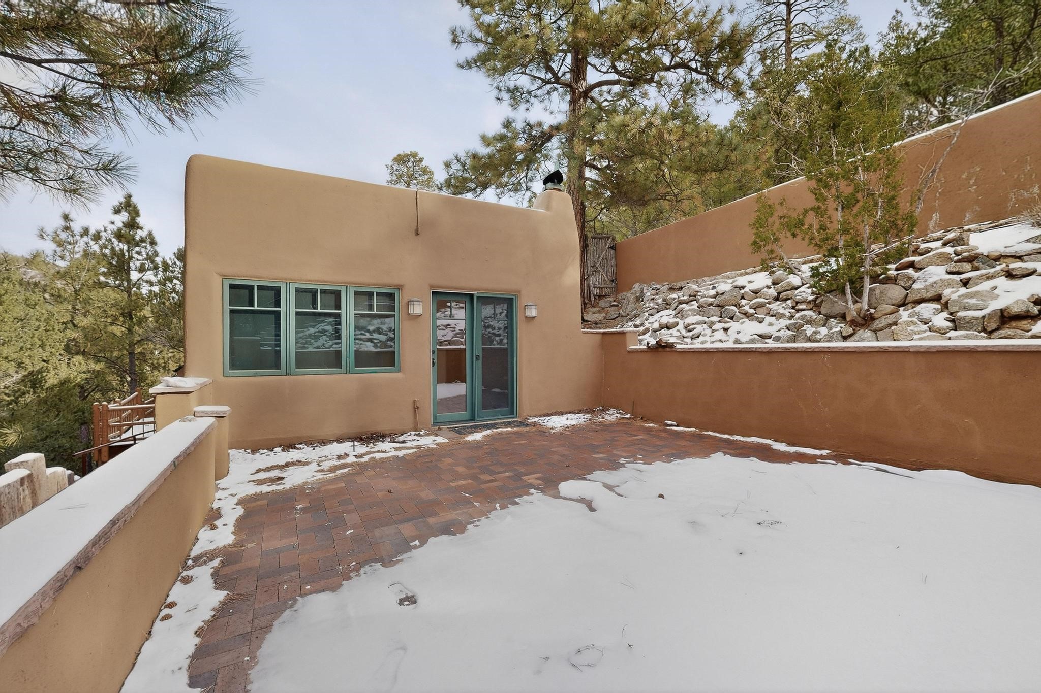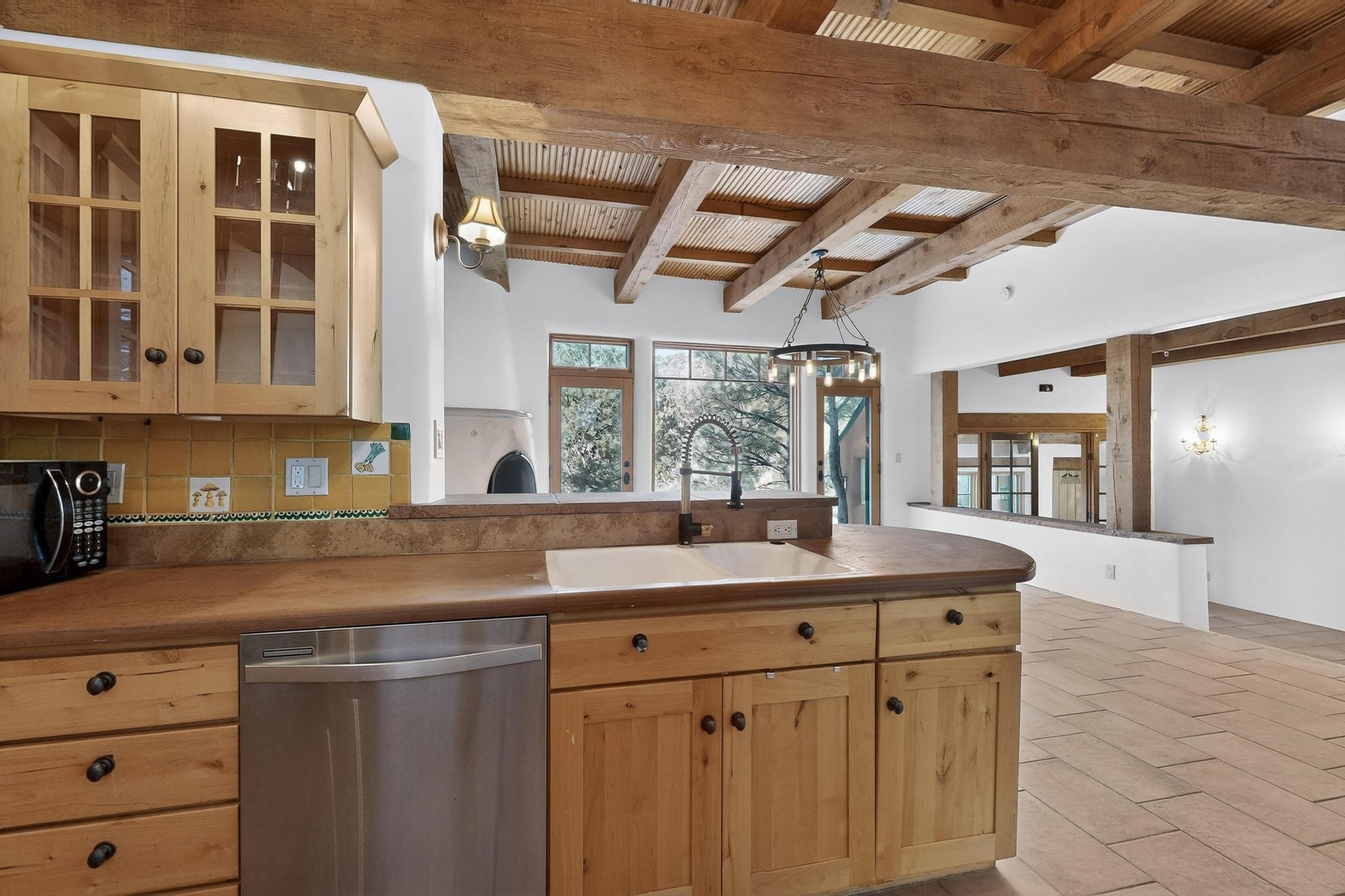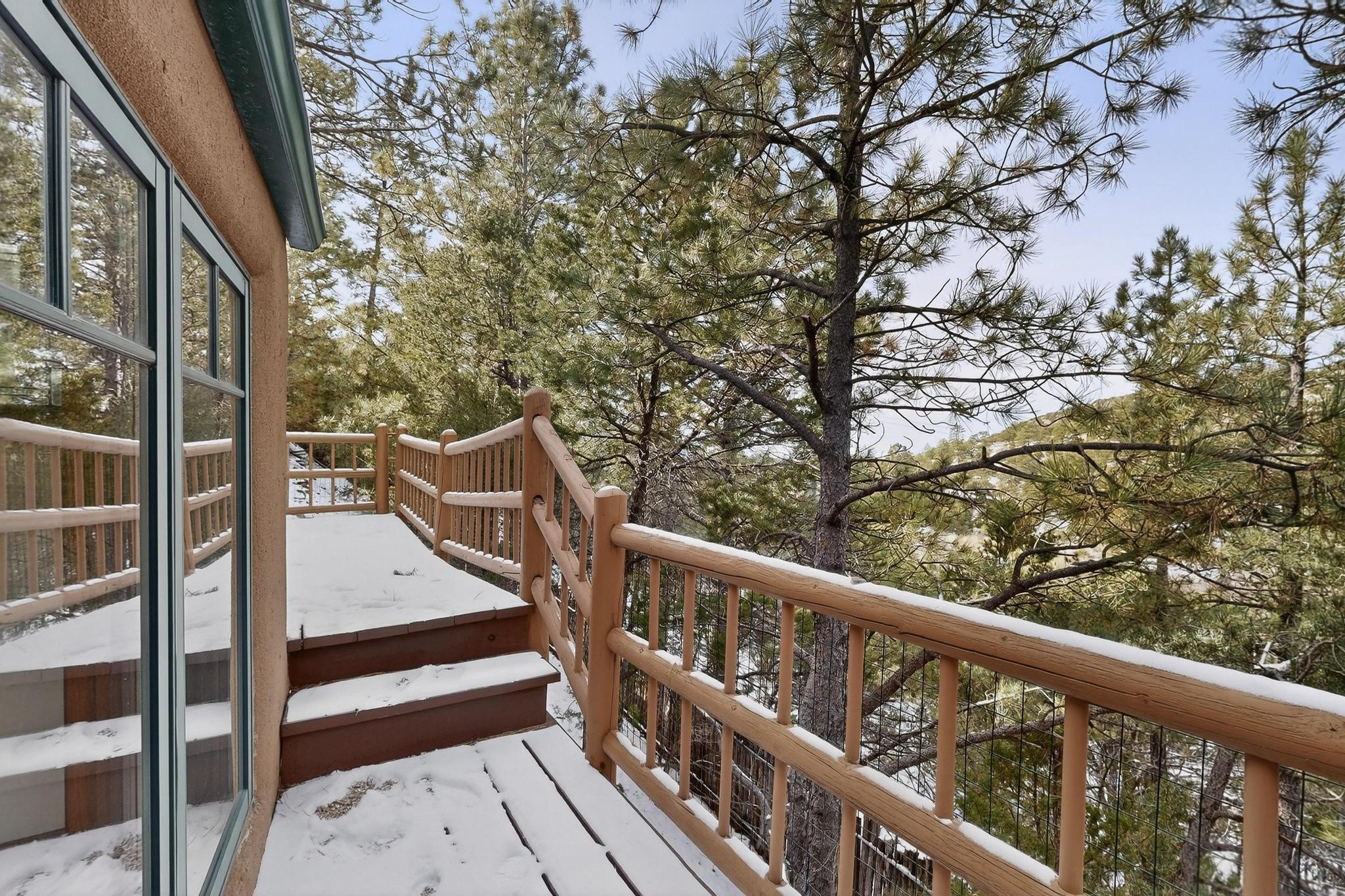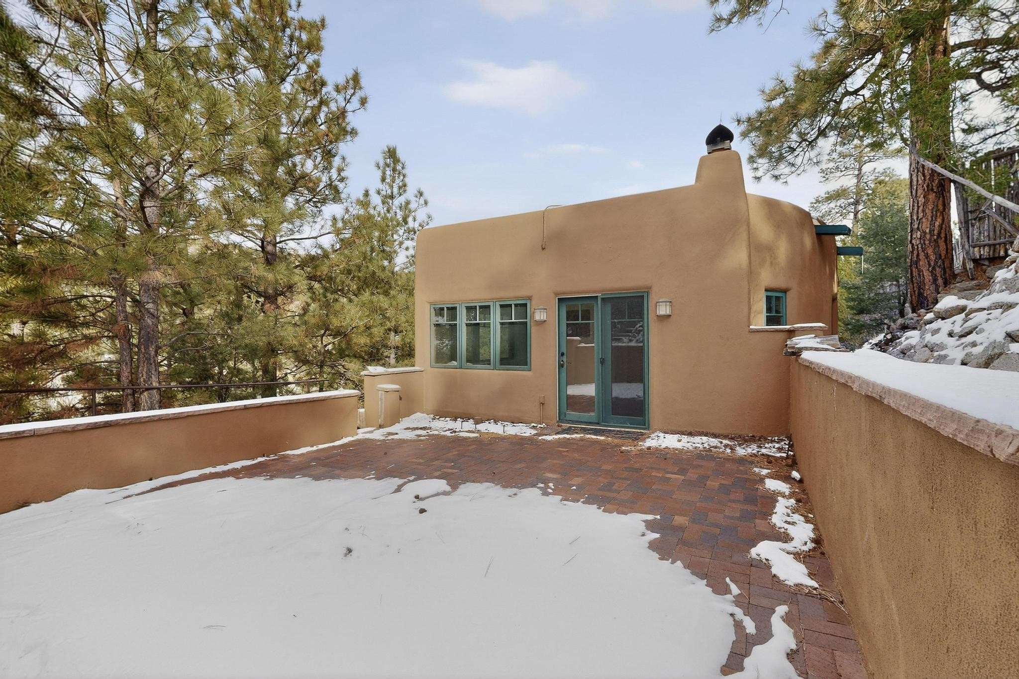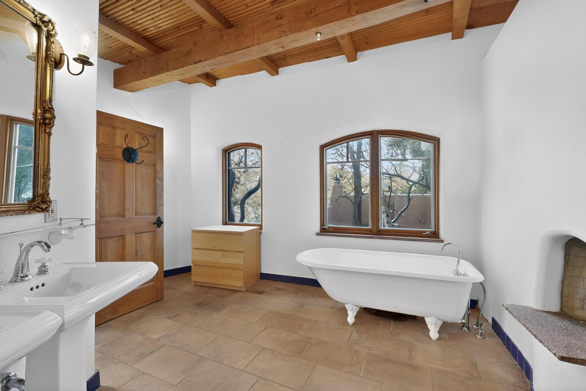 Welcome back to 80 La Barbaria! This stunning 3 bedroom 3 bath home with a 1 bed, 1 bath casita is located in the beautiful foothills of Santa Fe just off historic Old Santa Fe Trail. Back on the market with MANY updates including a NEW boiler, NEW water heater, NEW plaster and paint throughout the entire home and casita. The roof has recently been serviced and re-sealed and the stucco has been refreshed! This home boasts beamed ceilings, tiled floors, (NO CARPET), and the home offers 2 separate primary suites! The open concept dining room steps out onto a deck that overlooks the serene mountain setting. The casita has a full kitchen, bathroom, and private laundry, allowing for an instant rental property or a place for your guests to enjoy the perfect visit to Santa Fe! If privacy and serenity is what you seek, look no further!