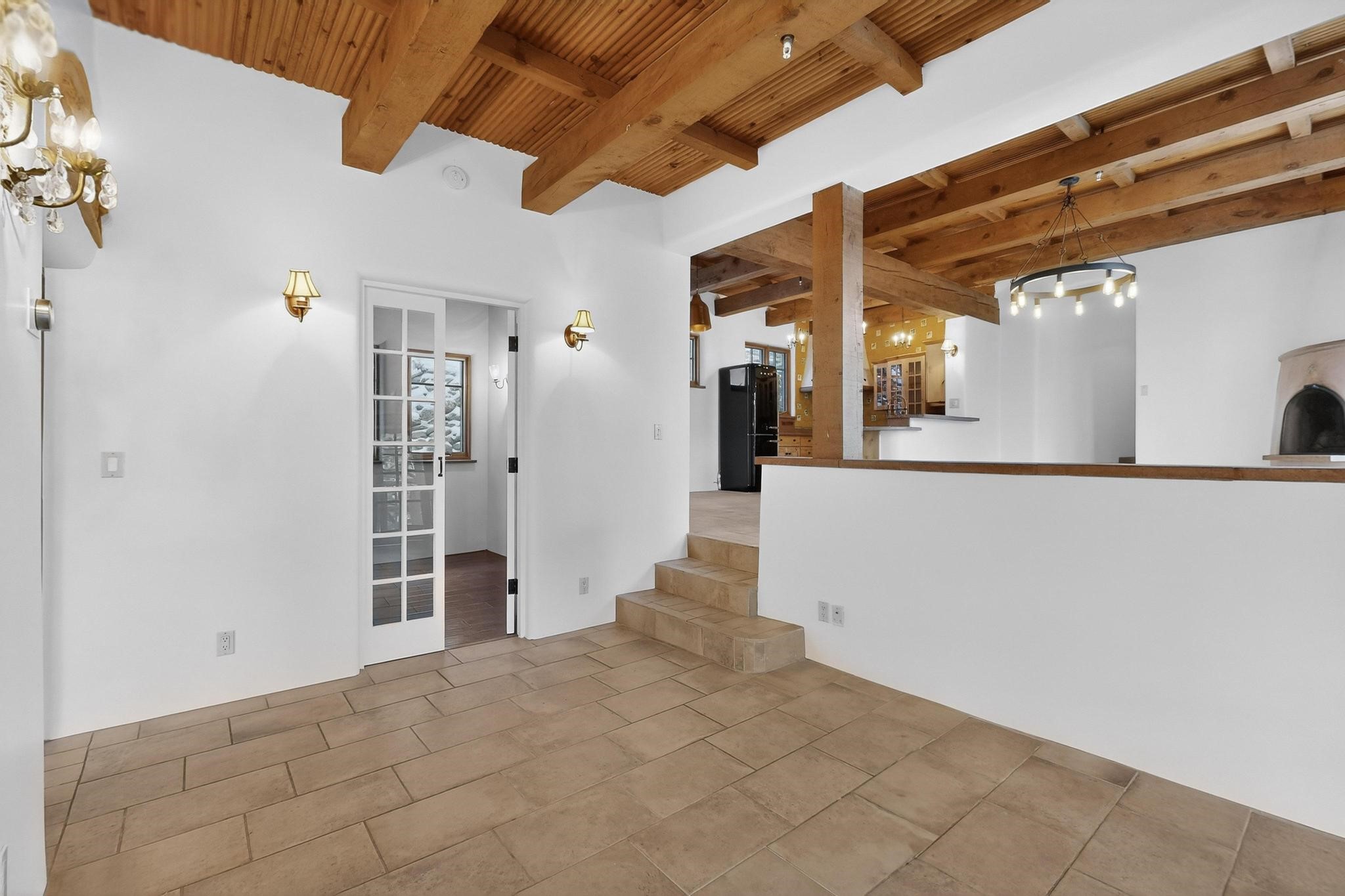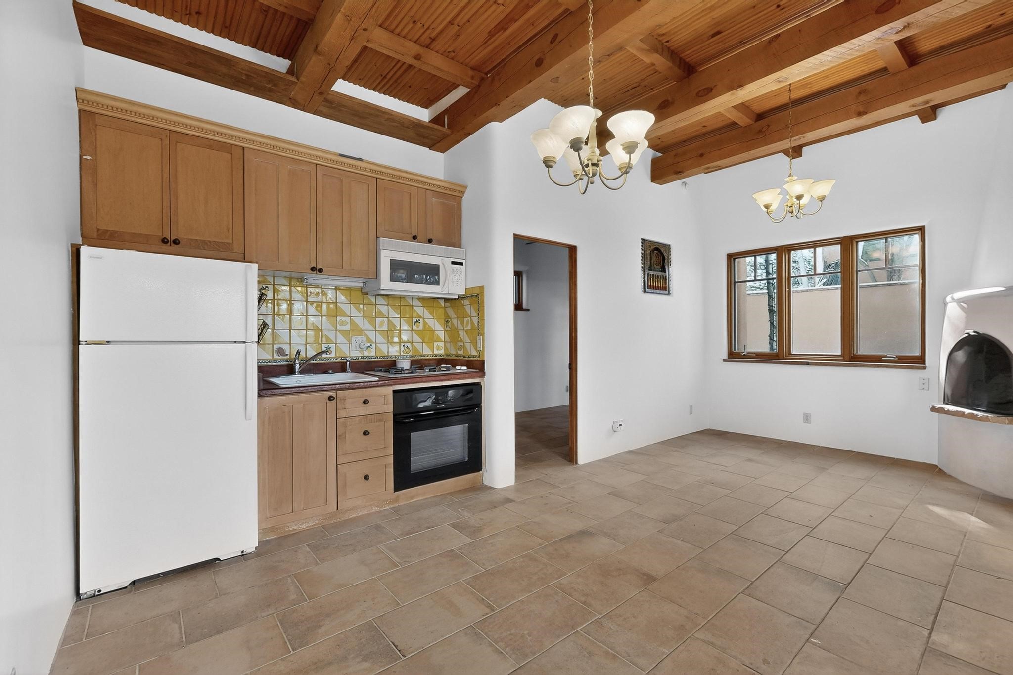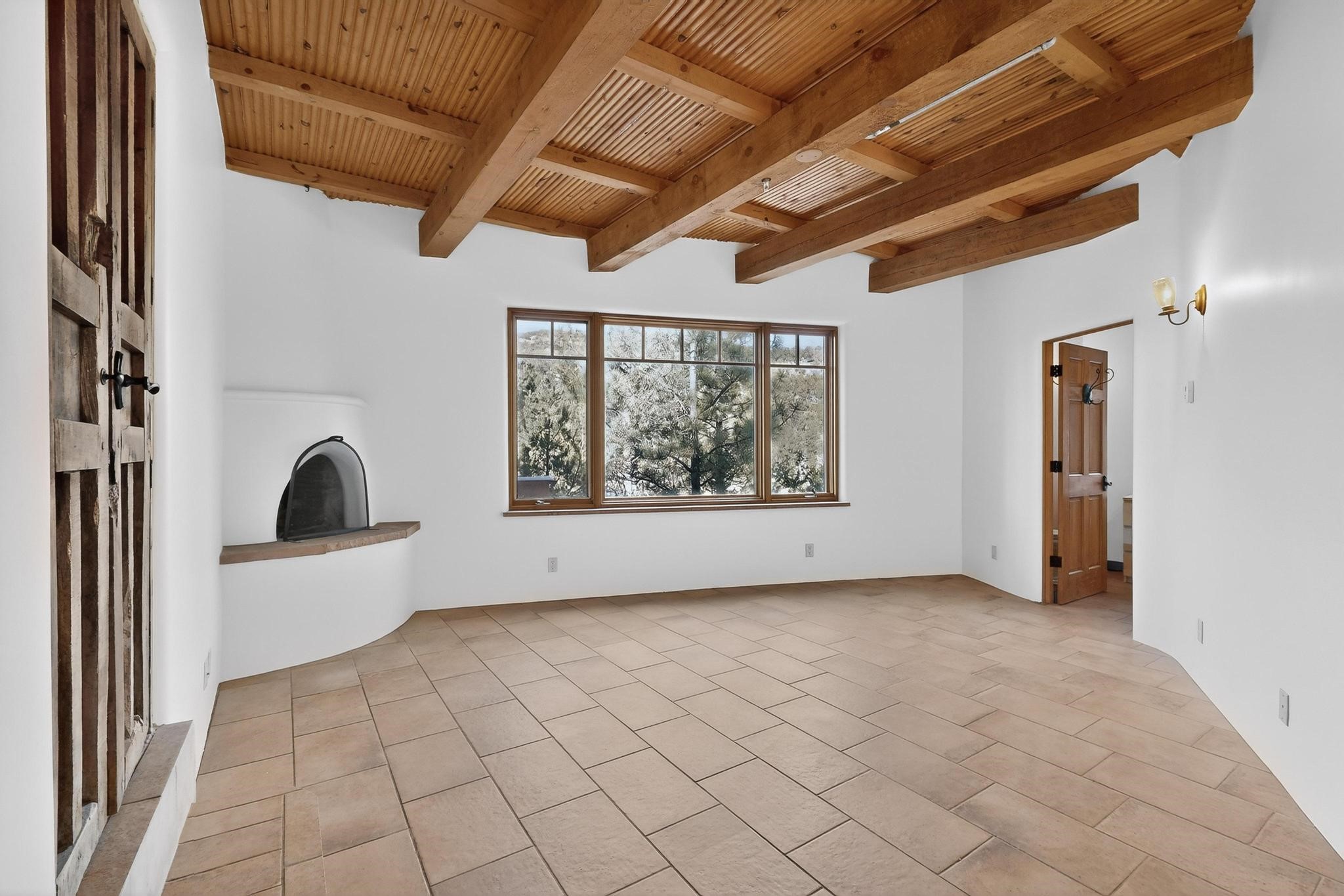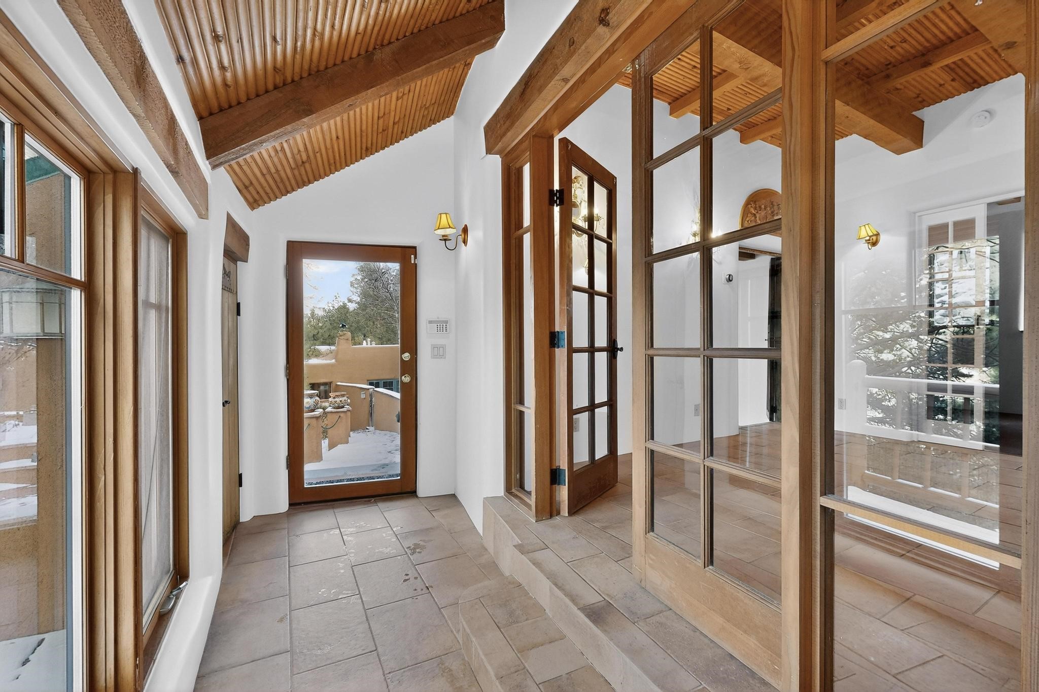 Welcome back to 80 La Barbaria! This stunning 3 bedroom 3 bath home with a 1 bed, 1 bath casita is located in the beautiful foothills of Santa Fe just off historic Old Santa Fe Trail. Back on the market with MANY updates including a NEW boiler, NEW water heater, NEW plaster and paint throughout the entire home and casita. The roof has recently been serviced and re-sealed and the stucco has been refreshed! This home boasts beamed ceilings, tiled floors, (NO CARPET), and the home offers 2 separate primary suites! The open concept dining room steps out onto a deck that overlooks the serene mountain setting. The casita has a full kitchen, bathroom, and private laundry, allowing for an instant rental property or a place for your guests to enjoy the perfect visit to Santa Fe! If privacy and serenity is what you seek, look no further!