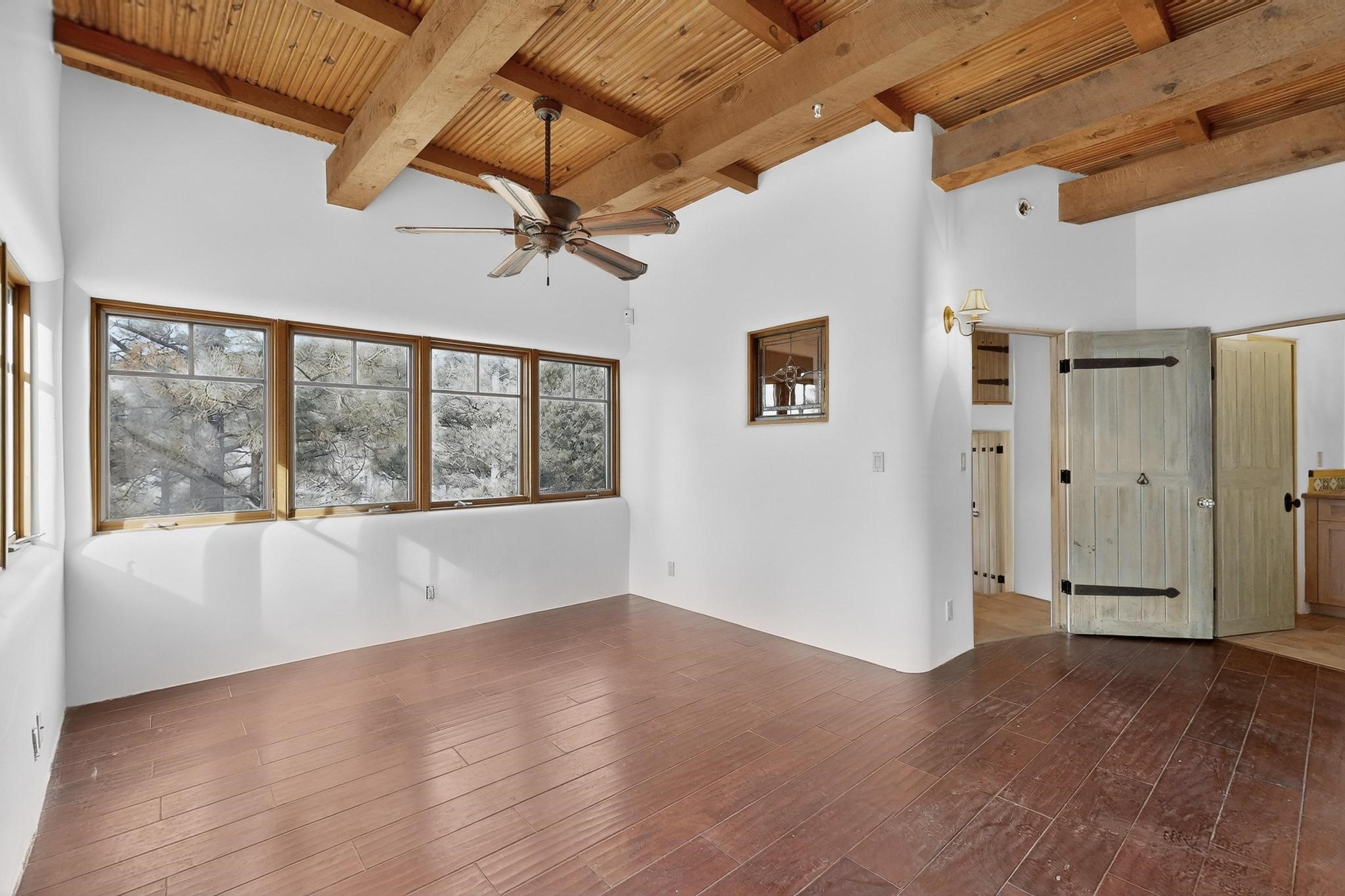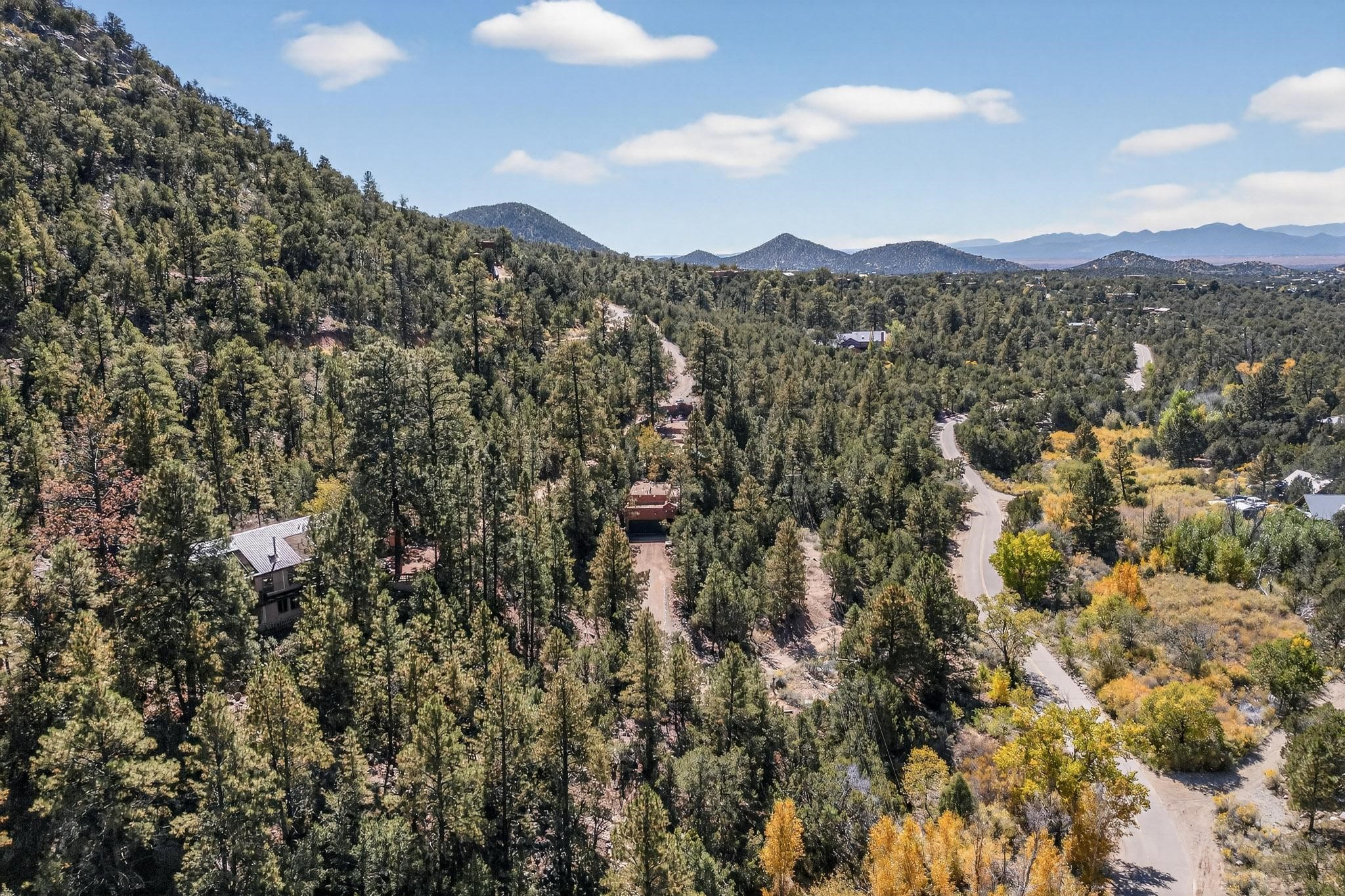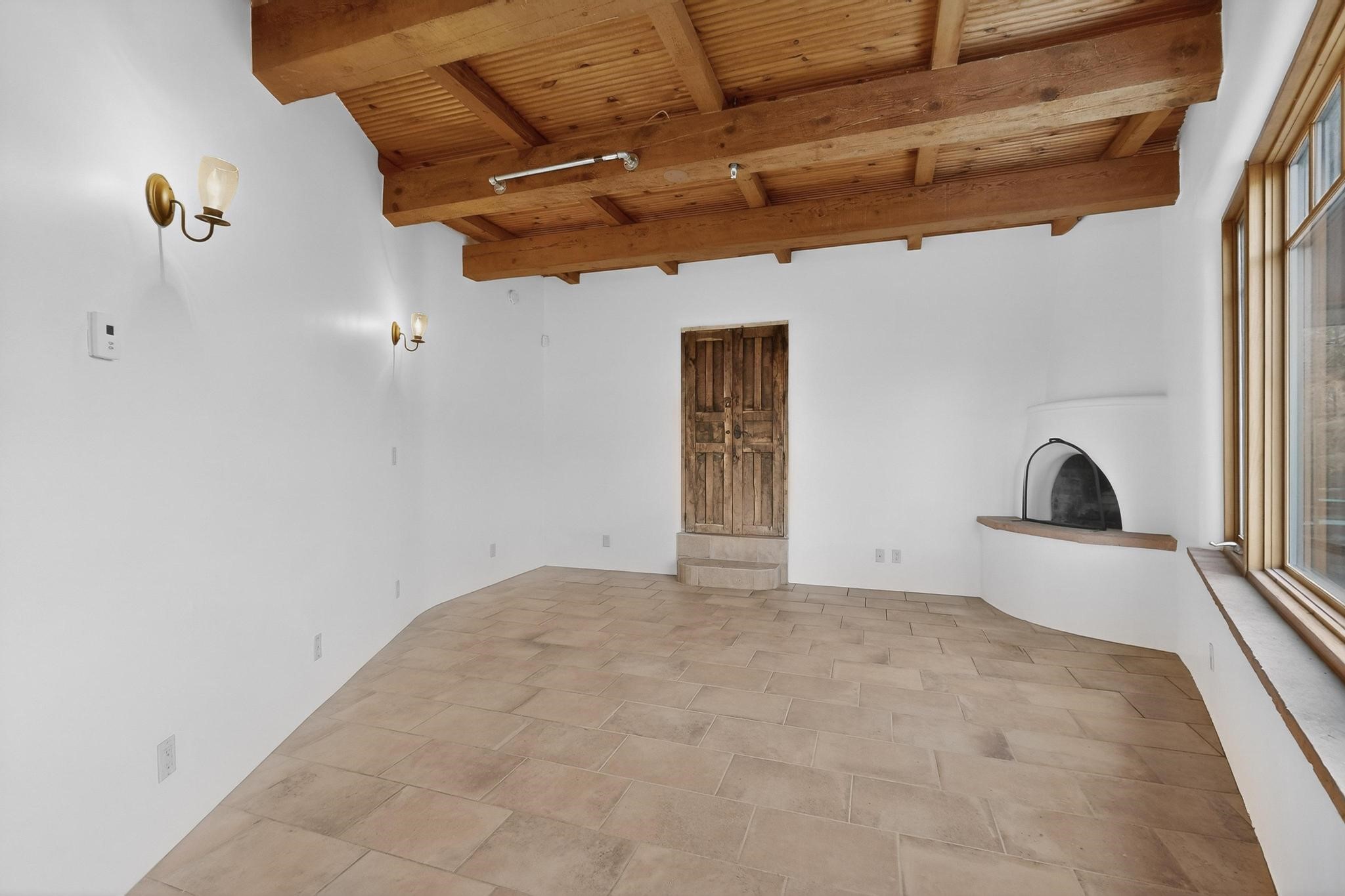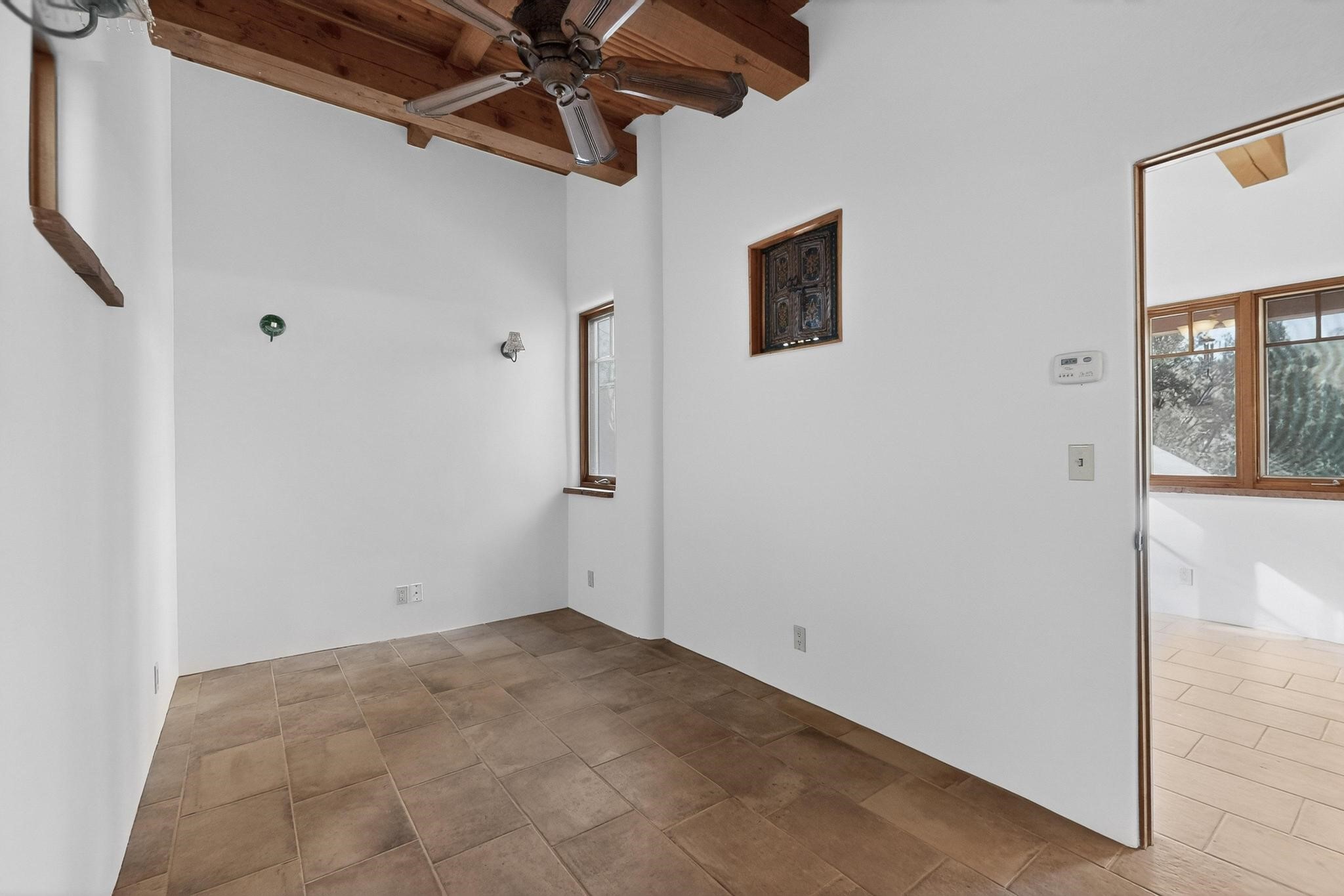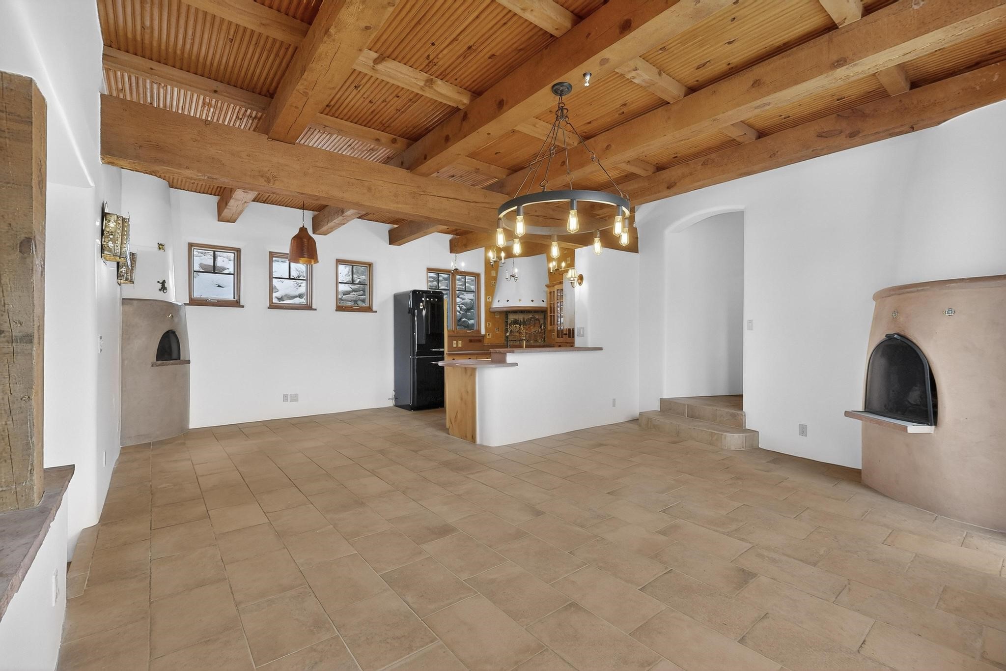 Welcome back to 80 La Barbaria! This stunning 3 bedroom 3 bath home with a 1 bed, 1 bath casita is located in the beautiful foothills of Santa Fe just off historic Old Santa Fe Trail. Back on the market with MANY updates including a NEW boiler, NEW water heater, NEW plaster and paint throughout the entire home and casita. The roof has recently been serviced and re-sealed and the stucco has been refreshed! This home boasts beamed ceilings, tiled floors, (NO CARPET), and the home offers 2 separate primary suites! The open concept dining room steps out onto a deck that overlooks the serene mountain setting. The casita has a full kitchen, bathroom, and private laundry, allowing for an instant rental property or a place for your guests to enjoy the perfect visit to Santa Fe! If privacy and serenity is what you seek, look no further!