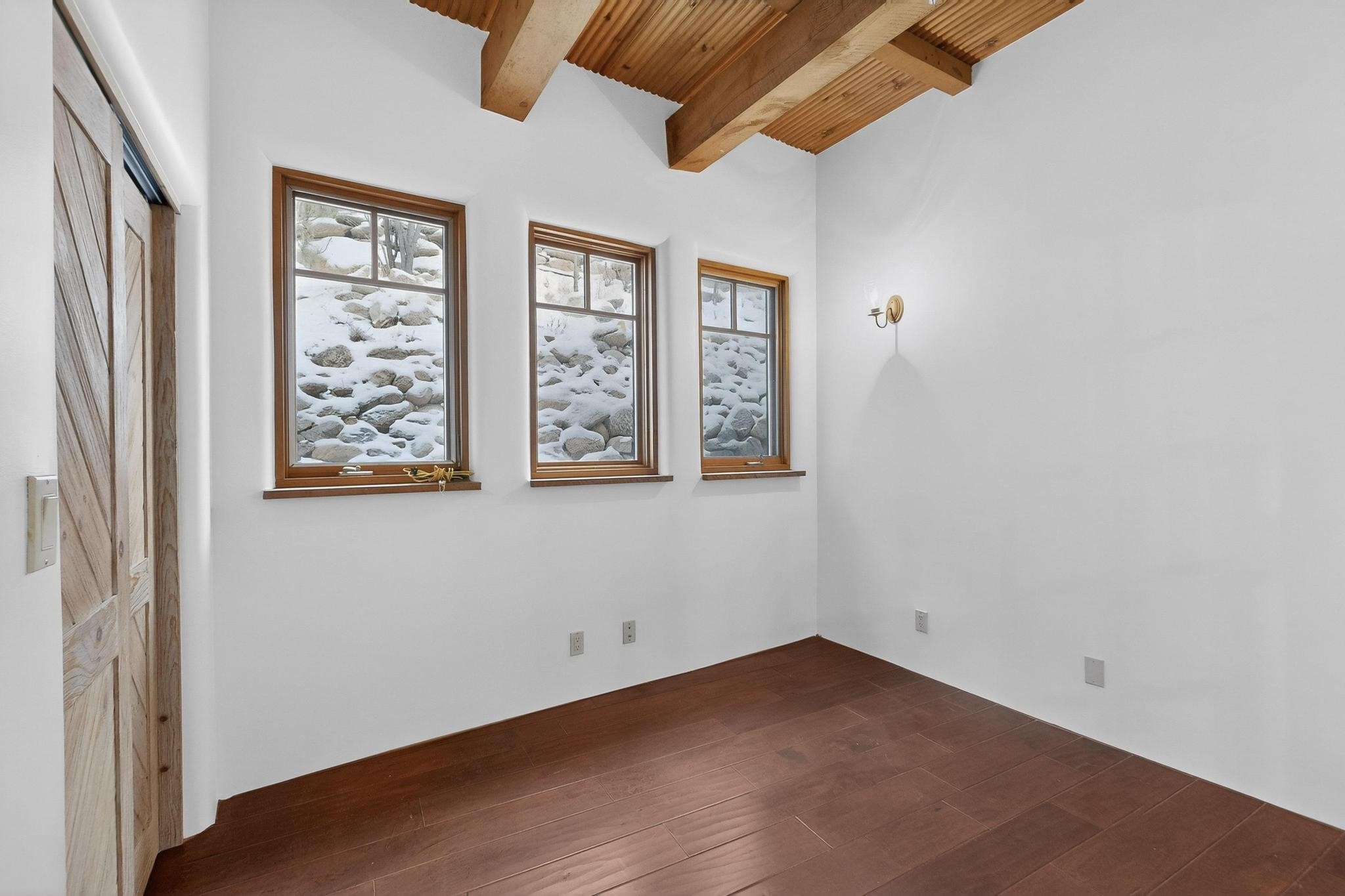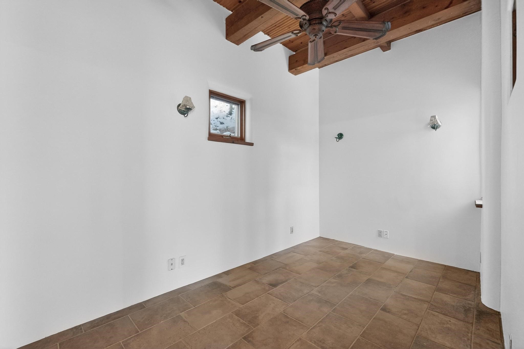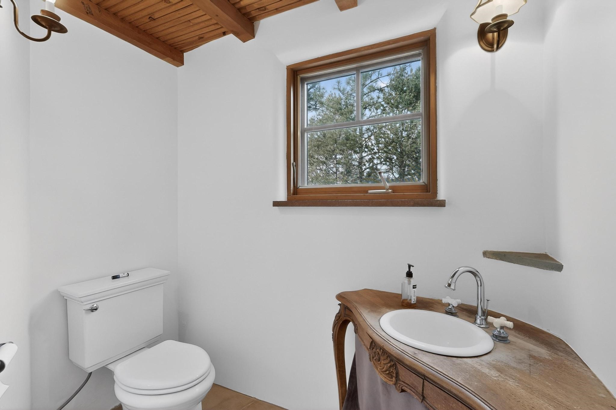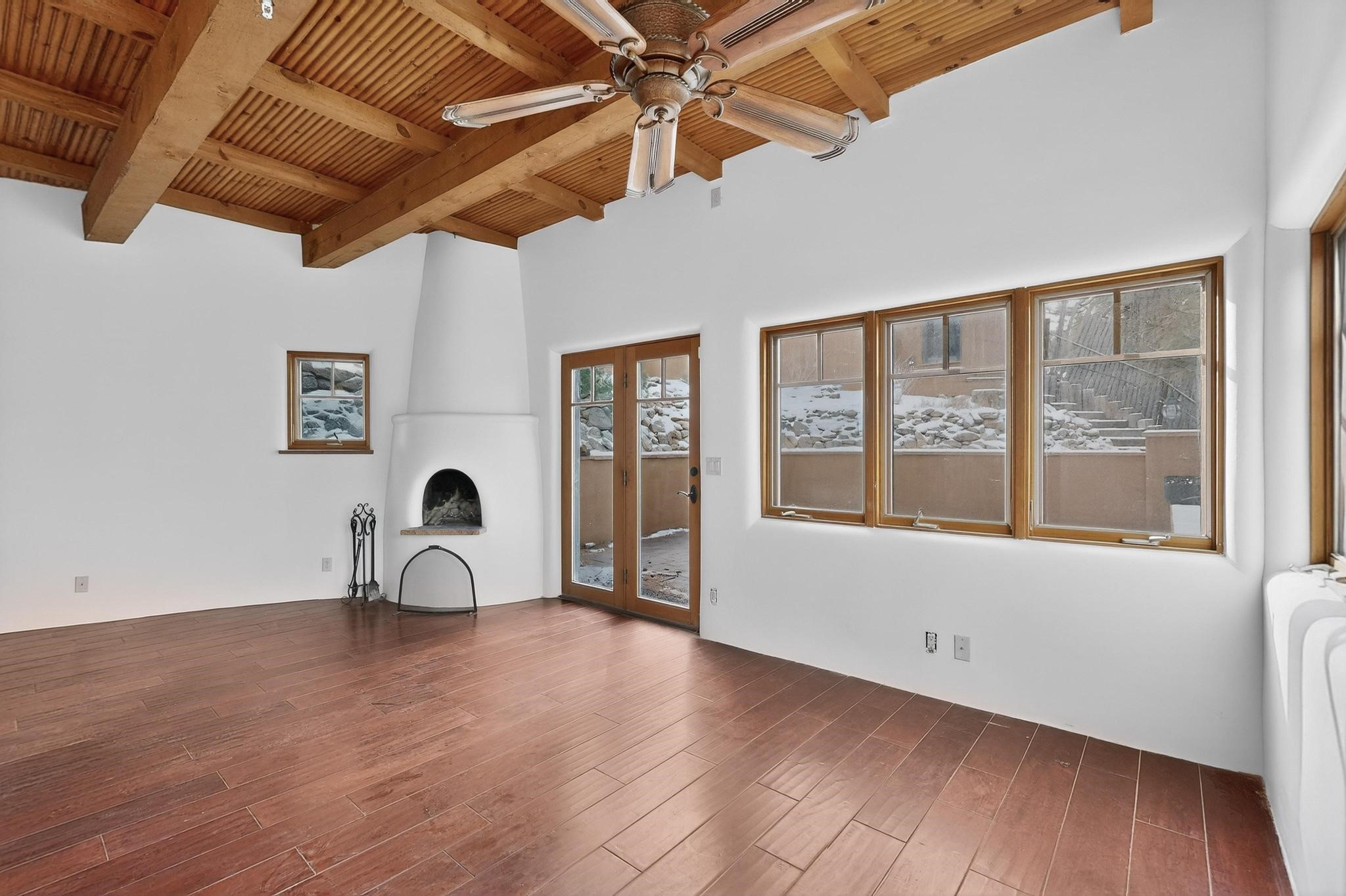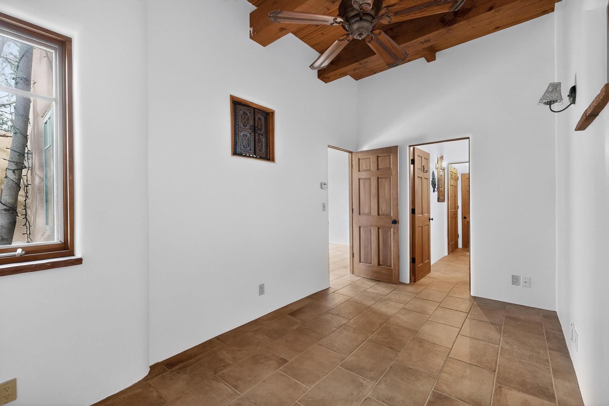 Welcome back to 80 La Barbaria! This stunning 3 bedroom 3 bath home with a 1 bed, 1 bath casita is located in the beautiful foothills of Santa Fe just off historic Old Santa Fe Trail. Back on the market with MANY updates including a NEW boiler, NEW water heater, NEW plaster and paint throughout the entire home and casita. The roof has recently been serviced and re-sealed and the stucco has been refreshed! This home boasts beamed ceilings, tiled floors, (NO CARPET), and the home offers 2 separate primary suites! The open concept dining room steps out onto a deck that overlooks the serene mountain setting. The casita has a full kitchen, bathroom, and private laundry, allowing for an instant rental property or a place for your guests to enjoy the perfect visit to Santa Fe! If privacy and serenity is what you seek, look no further!