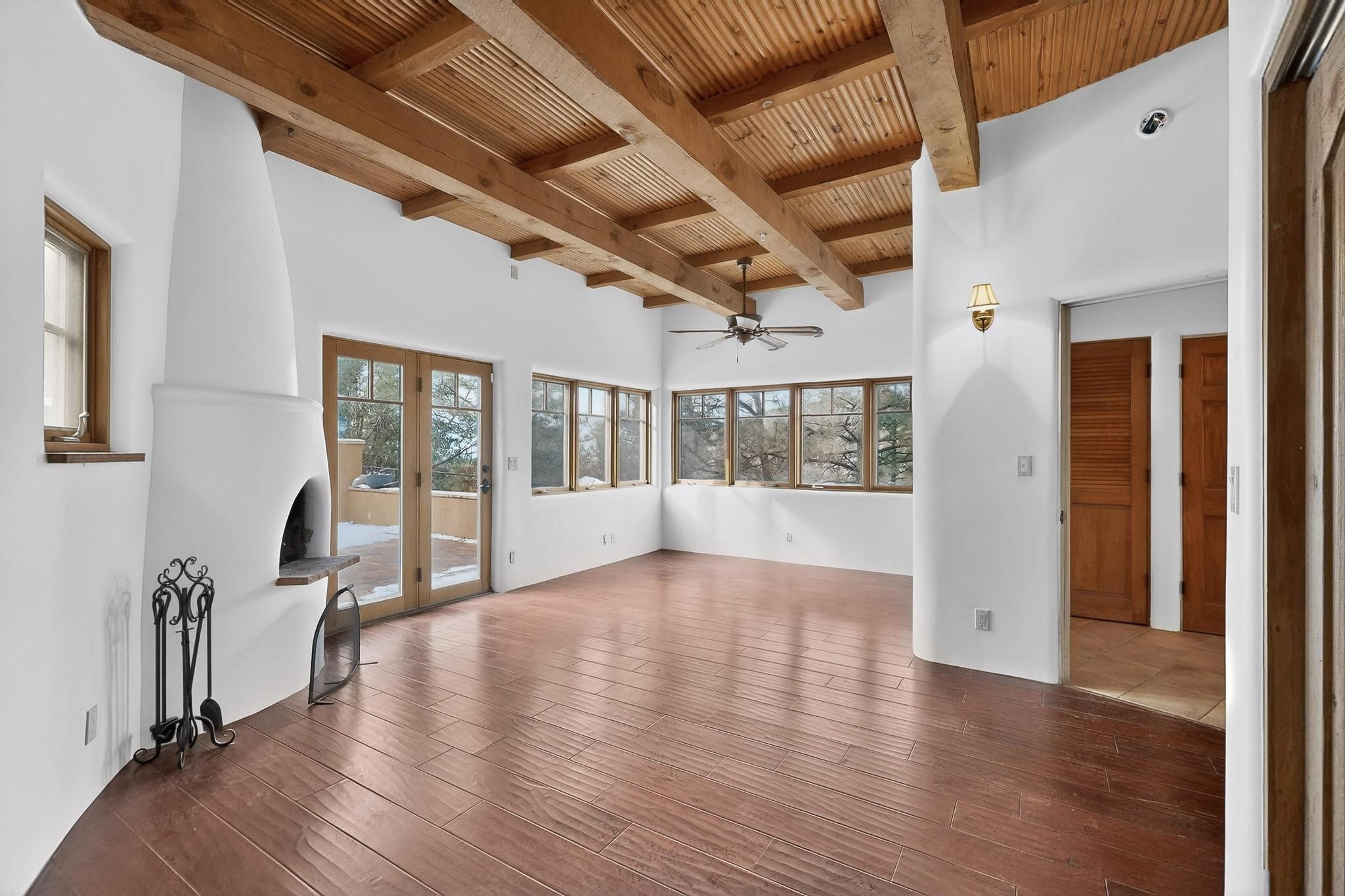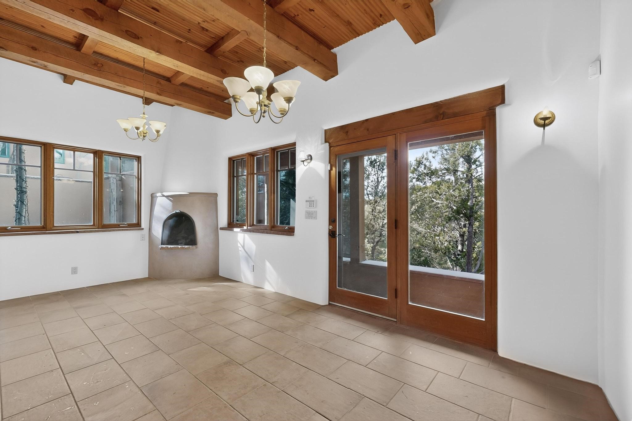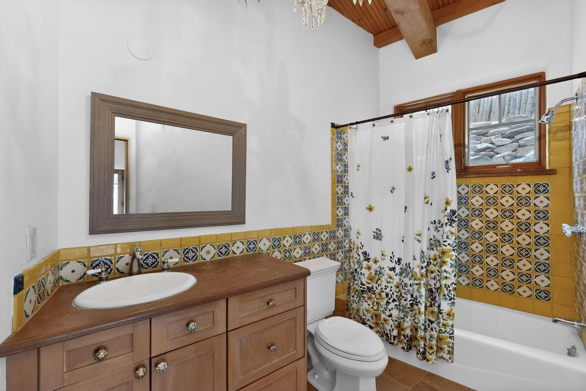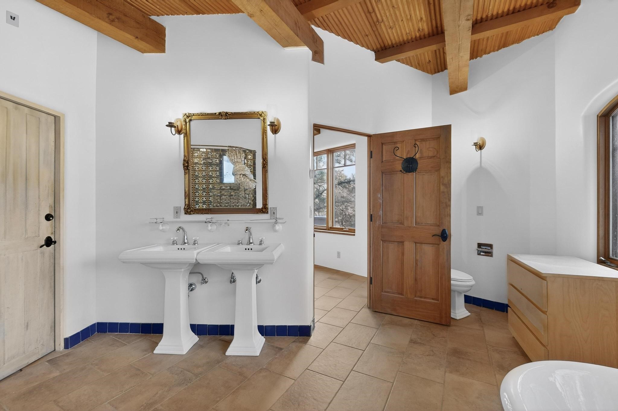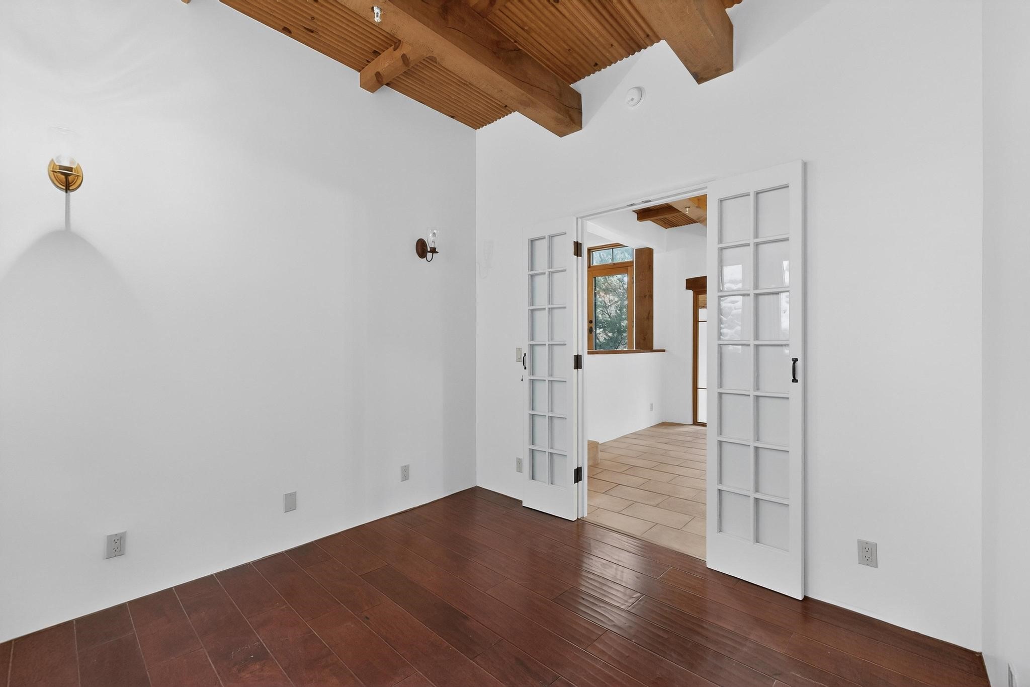 Welcome back to 80 La Barbaria! This stunning 3 bedroom 3 bath home with a 1 bed, 1 bath casita is located in the beautiful foothills of Santa Fe just off historic Old Santa Fe Trail. Back on the market with MANY updates including a NEW boiler, NEW water heater, NEW plaster and paint throughout the entire home and casita. The roof has recently been serviced and re-sealed and the stucco has been refreshed! This home boasts beamed ceilings, tiled floors, (NO CARPET), and the home offers 2 separate primary suites! The open concept dining room steps out onto a deck that overlooks the serene mountain setting. The casita has a full kitchen, bathroom, and private laundry, allowing for an instant rental property or a place for your guests to enjoy the perfect visit to Santa Fe! If privacy and serenity is what you seek, look no further!