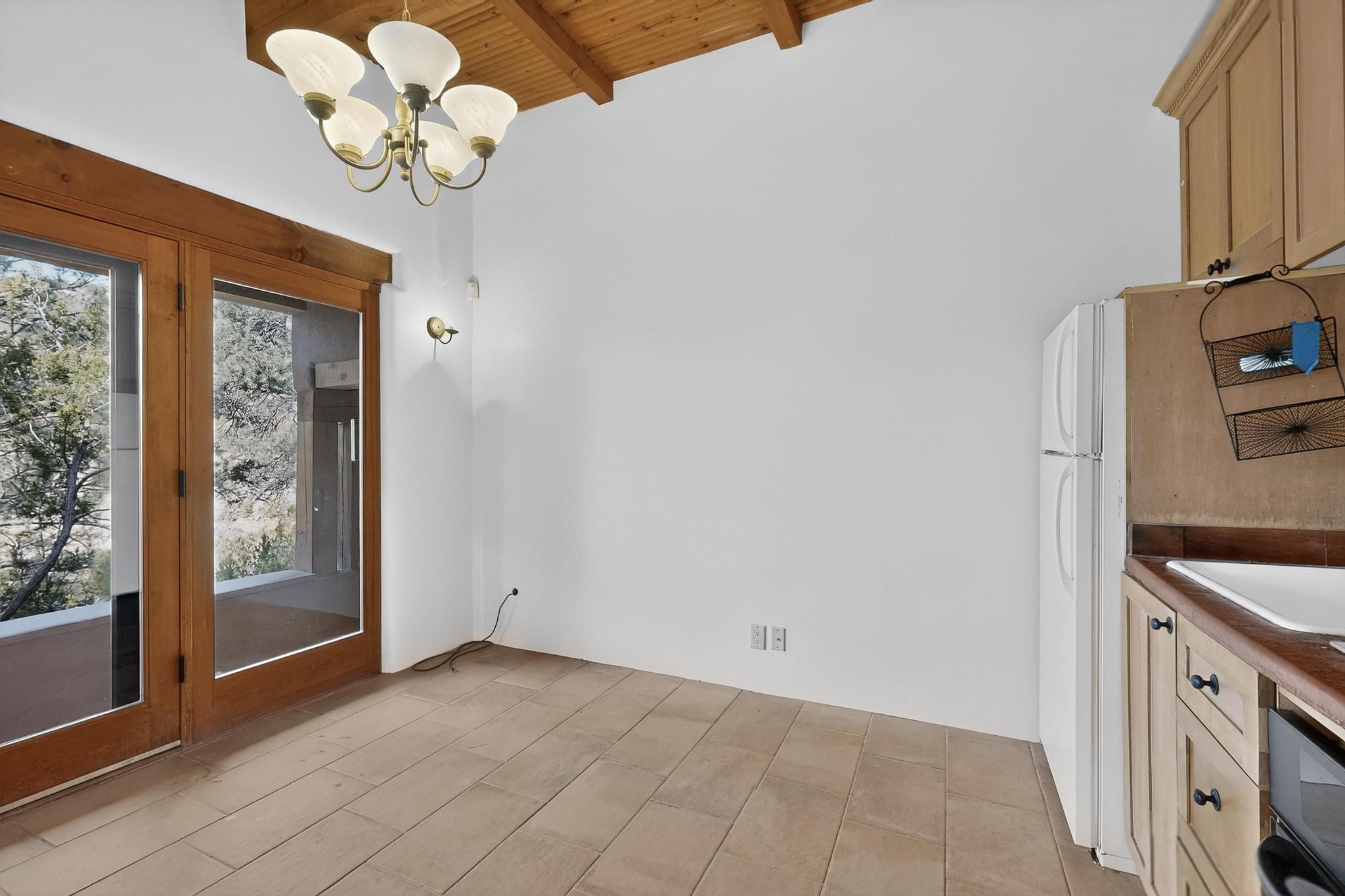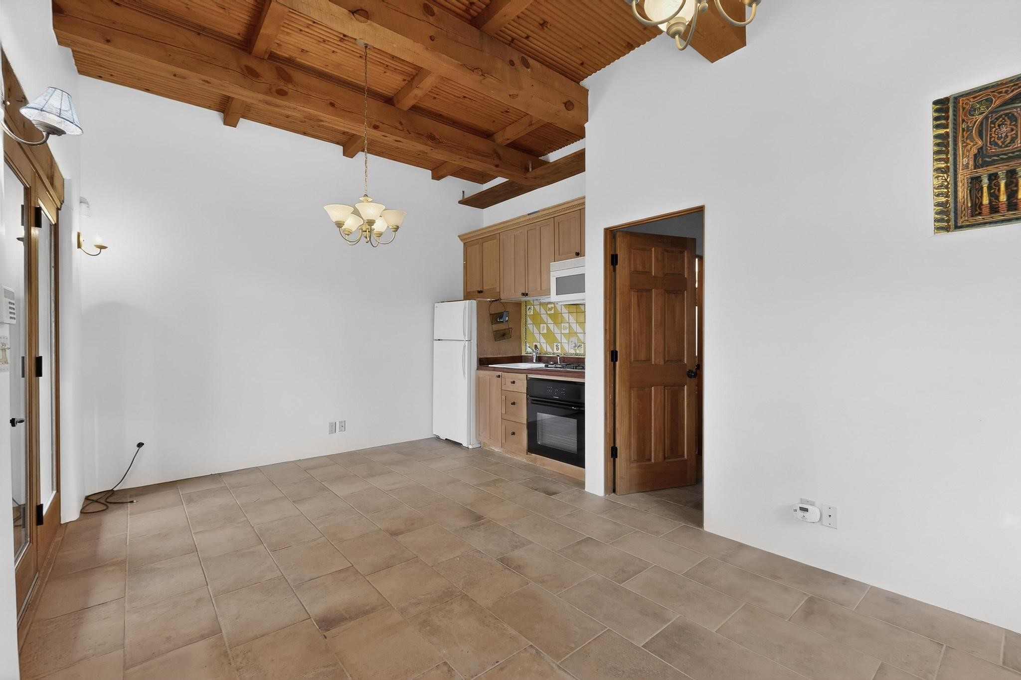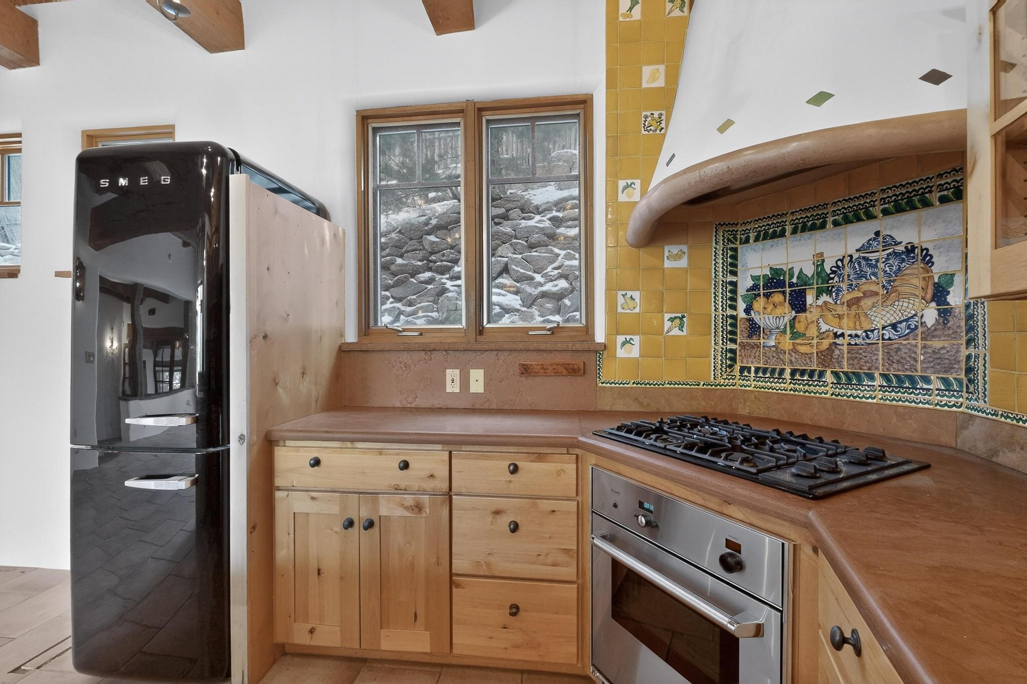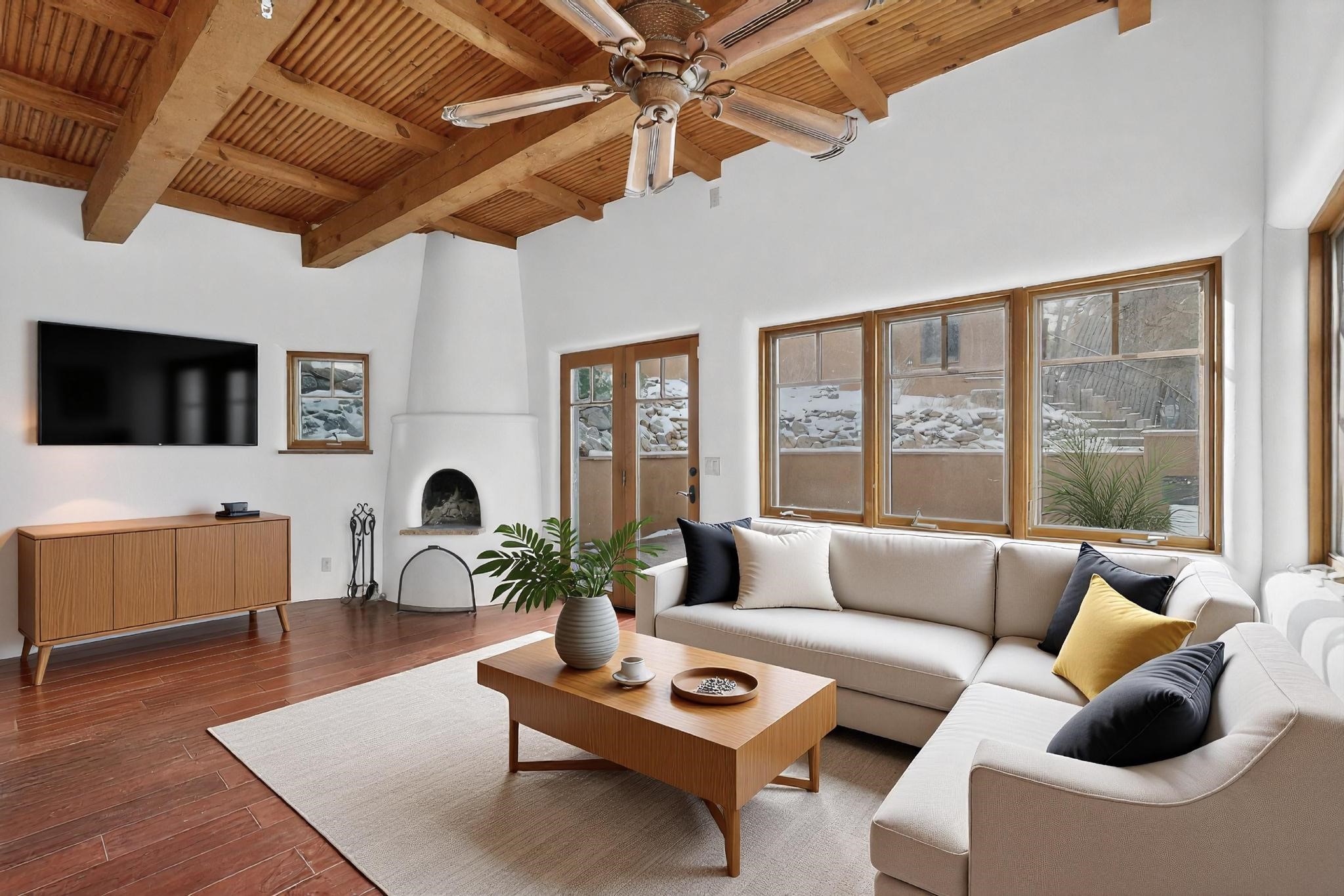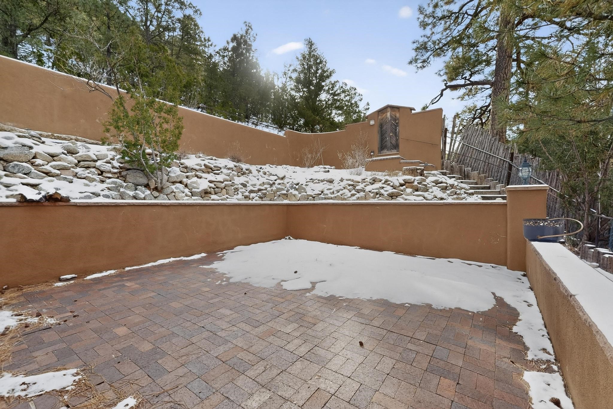 Welcome back to 80 La Barbaria! This stunning 3 bedroom 3 bath home with a 1 bed, 1 bath casita is located in the beautiful foothills of Santa Fe just off historic Old Santa Fe Trail. Back on the market with MANY updates including a NEW boiler, NEW water heater, NEW plaster and paint throughout the entire home and casita. The roof has recently been serviced and re-sealed and the stucco has been refreshed! This home boasts beamed ceilings, tiled floors, (NO CARPET), and the home offers 2 separate primary suites! The open concept dining room steps out onto a deck that overlooks the serene mountain setting. The casita has a full kitchen, bathroom, and private laundry, allowing for an instant rental property or a place for your guests to enjoy the perfect visit to Santa Fe! If privacy and serenity is what you seek, look no further!
