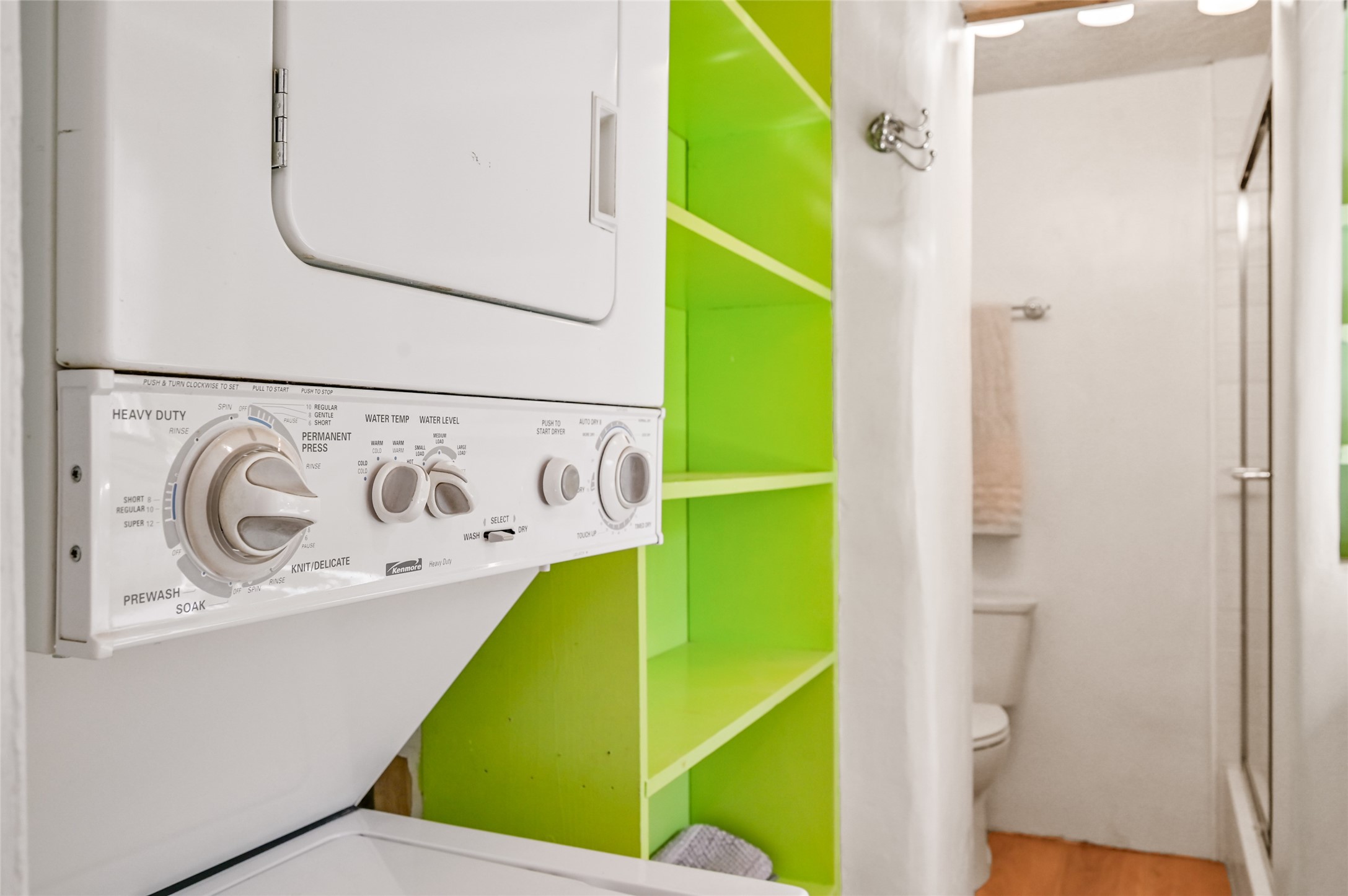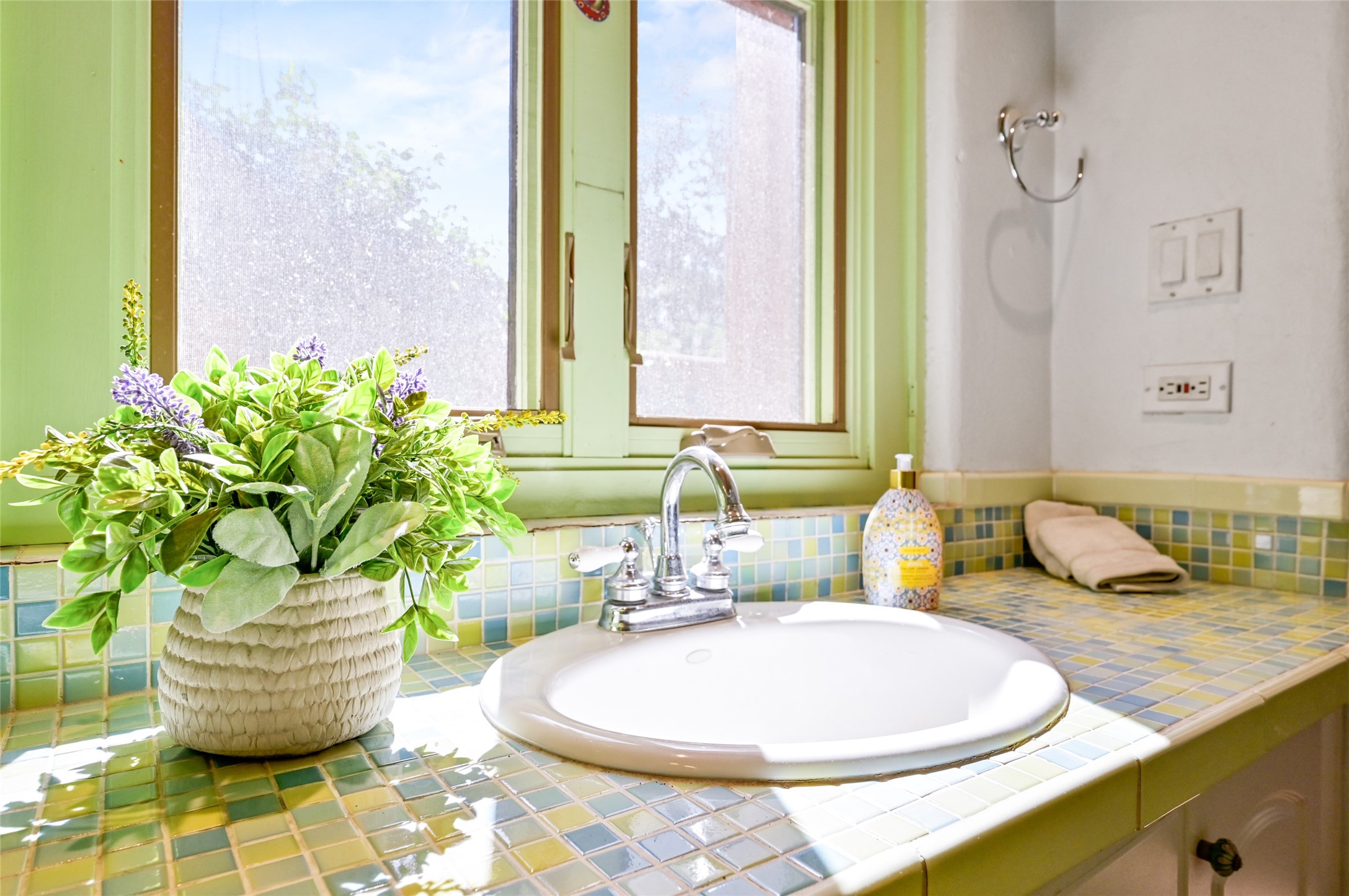 Step into Old World charm with this one-bedroom condo, part of a Pueblo-style adobe dating back to 1921. Outdoor private patio entrance greets you with south facing light. The four large windows bring warm sunlight to the tiled countertop and red bricked floor kitchen. Large dining and living room area offers beautiful old vigas and wood flooring. The pull-out Murphy bed, hidden in the living room, is perfect for those out of town guests or late night sleep-overs. Whimsical hand painted doors throughout pairs beautifully with the colorful mosaic fireplace in the bedroom. Just minutes from Kaune's and the historic Santa Fe Plaza, make this an ideal location for living the Santa Fe dream.