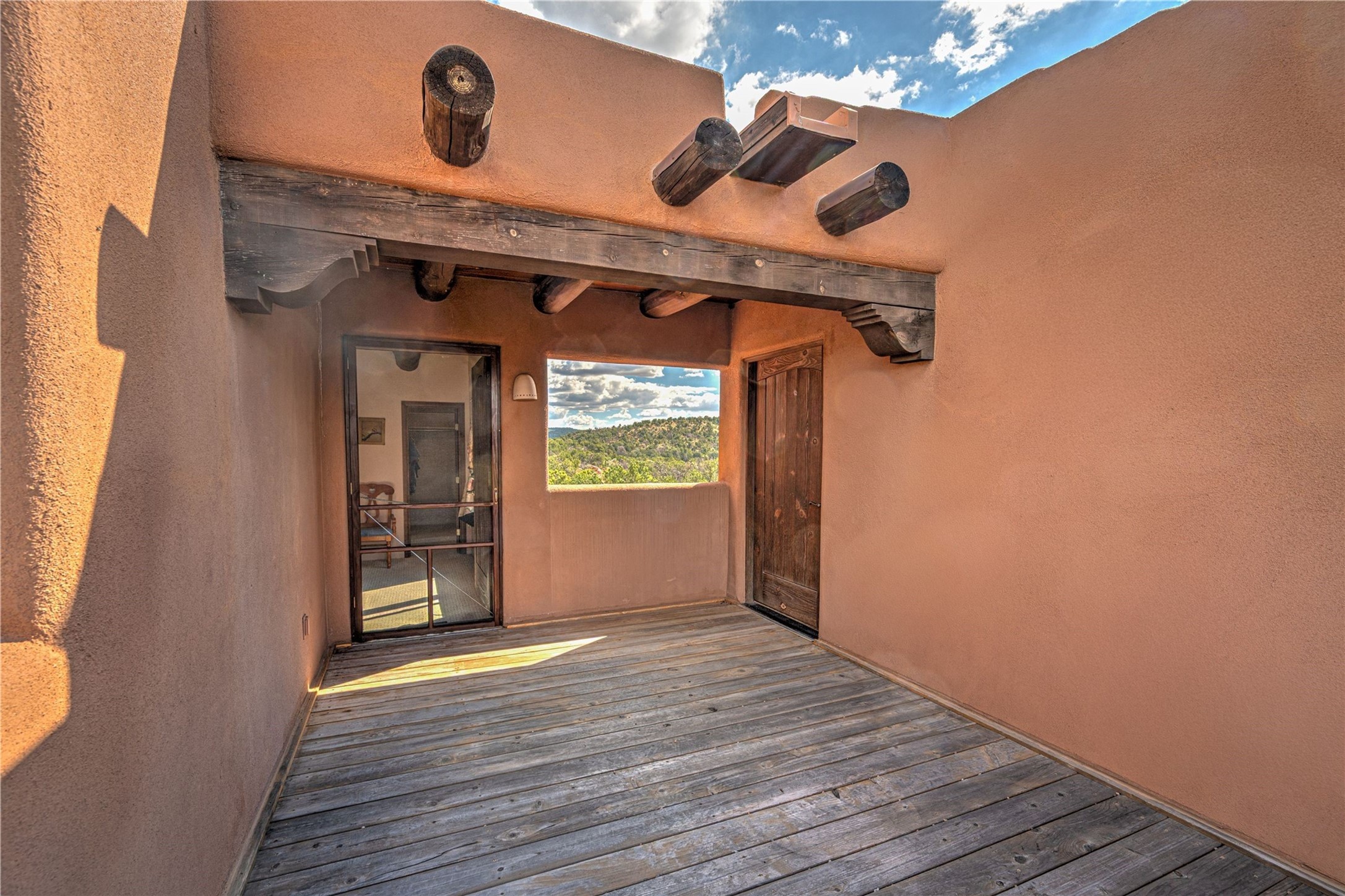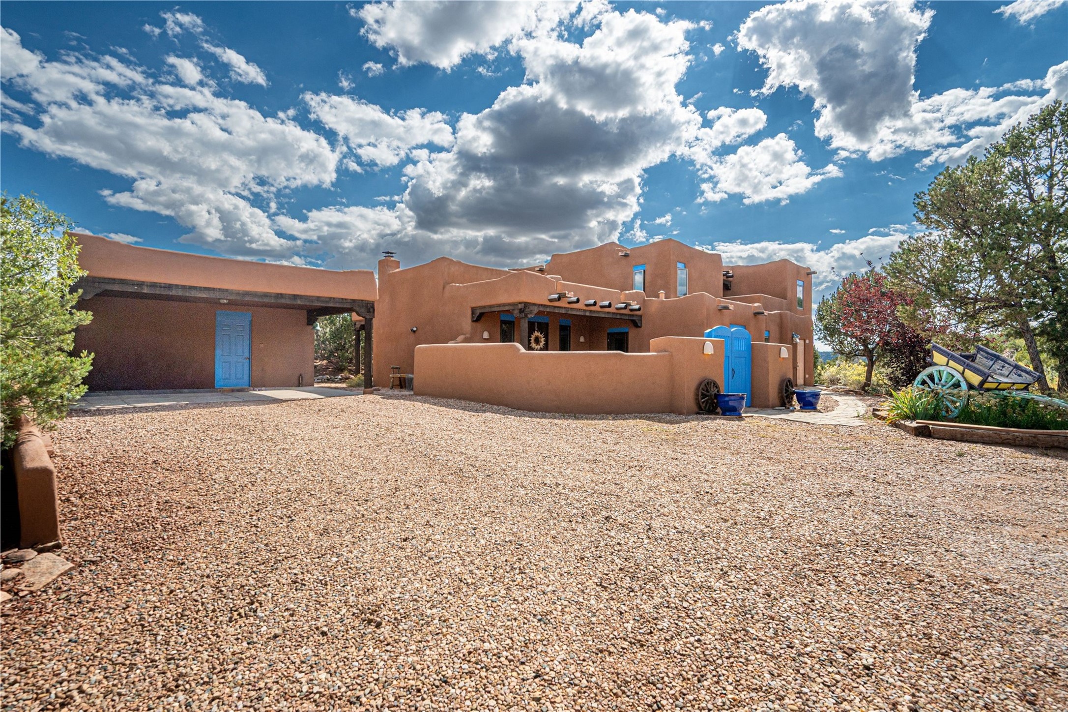 Welcome to your private Southwestern sanctuary--an enchanting 3-bedroom, 2-bathroom retreat nestled on 6.5 acres of beautifully landscaped land. Horses allowed! Acreage backs to preserved land. From the moment you step inside, you're greeted by the warmth of traditional wood vigas and the inviting glow of a kiva fireplace.The thoughtfully designed layout offers two spacious bedrooms and a full bathroom on the main level, perfect for guests or family. A bonus living area opens to a gated courtyard, creating a peaceful space for morning coffee or evening gatherings under the stars. Upstairs, the primary suite is a true haven, featuring a wood-lined deck with breathtaking mountain views and a bonus room ideal for an art studio, yoga space, or home office.Outside the magic continues to a shaded gazebo, perfect for relaxing or entertaining. A separate outbuilding offers endless possibilities--whether you dream of a workshop, creative studio, or guest space. The covered carport includes additional storage. There is no HOA.This property is more than a home--it's a lifestyle. A rare opportunity to embrace tranquility, creativity, and the natural beauty of New Mexico, all within your own private oasis.
